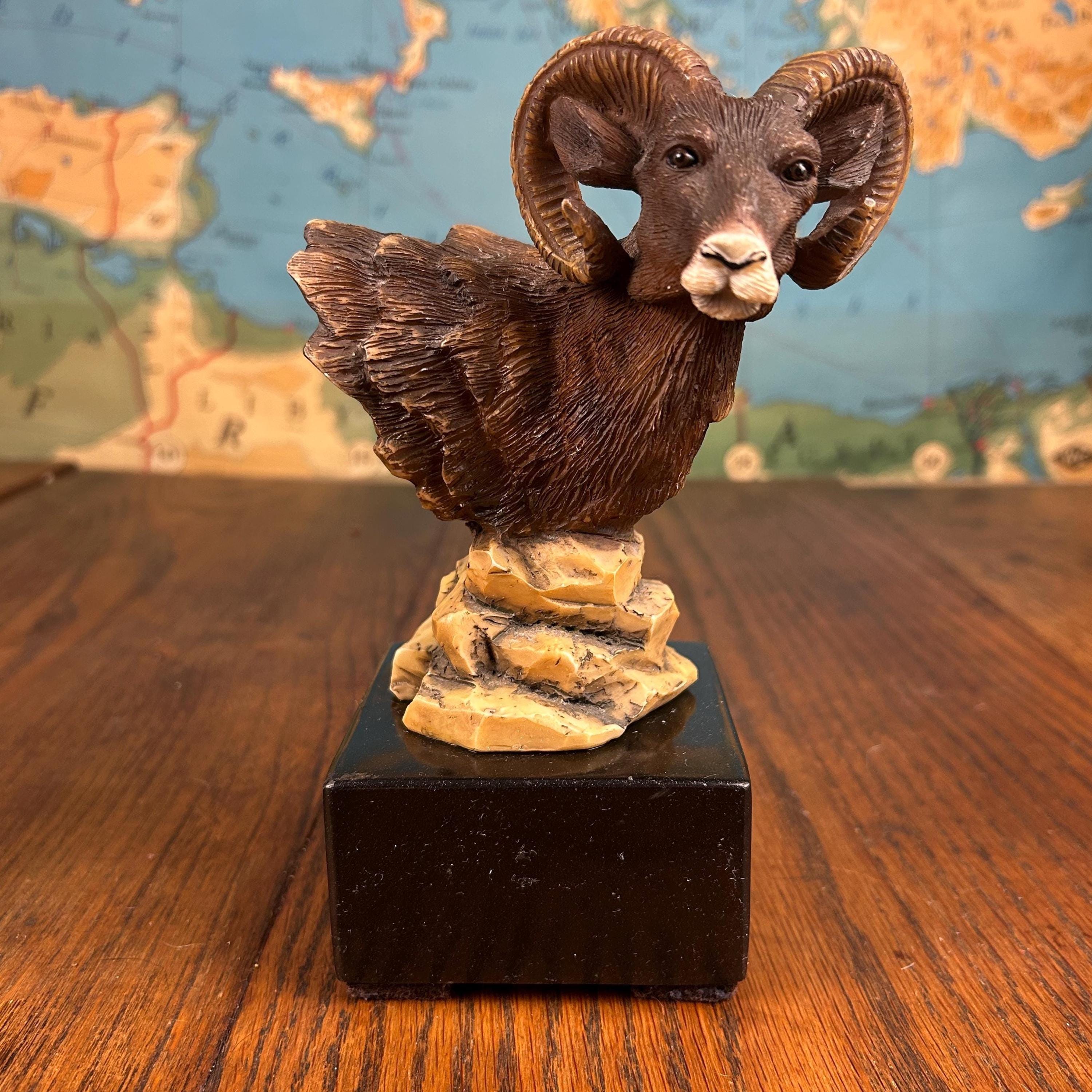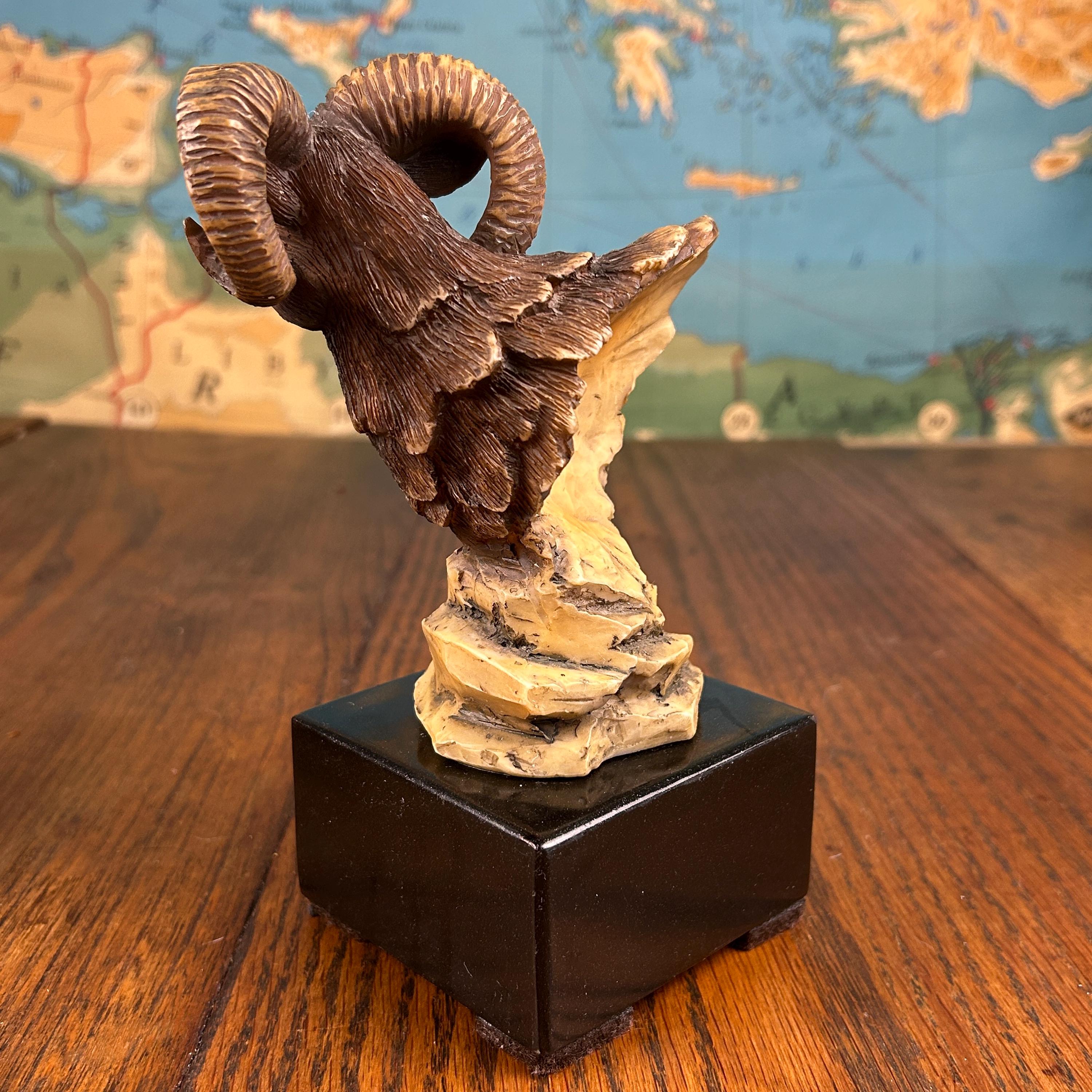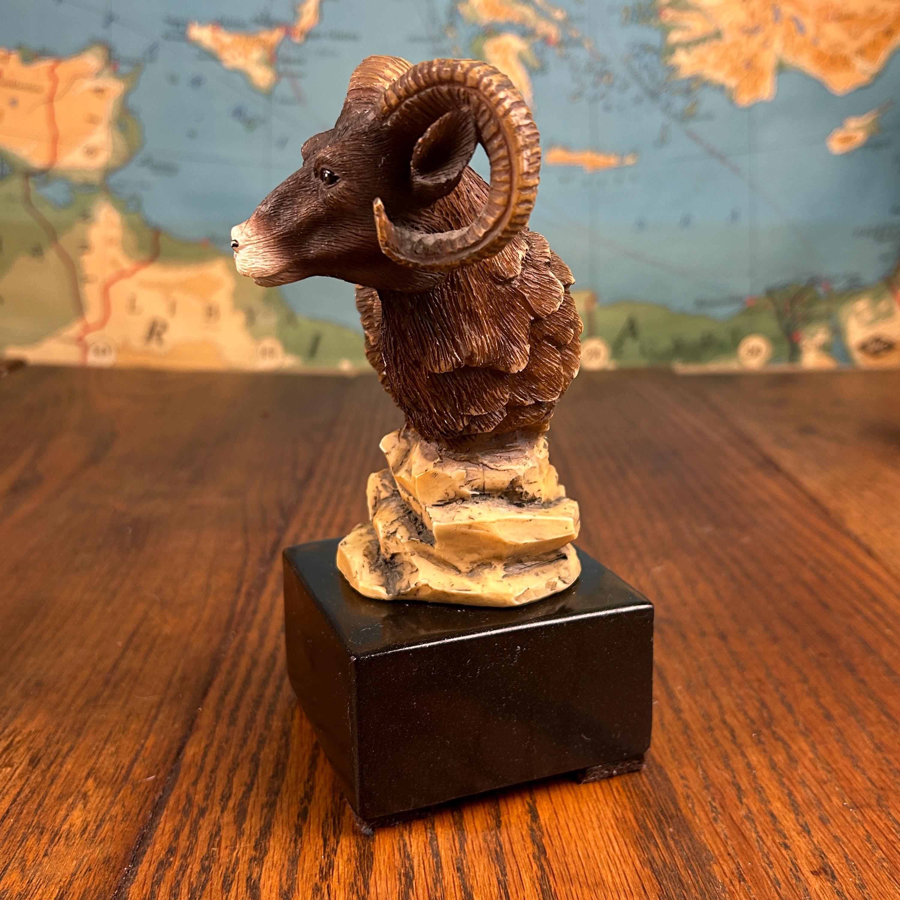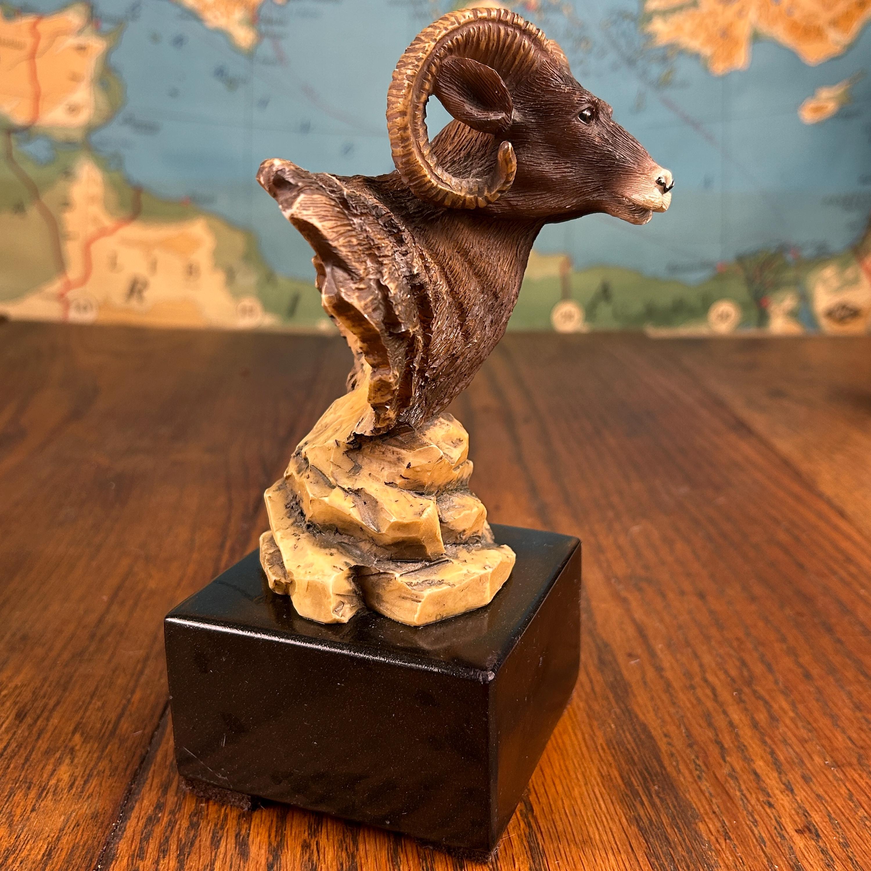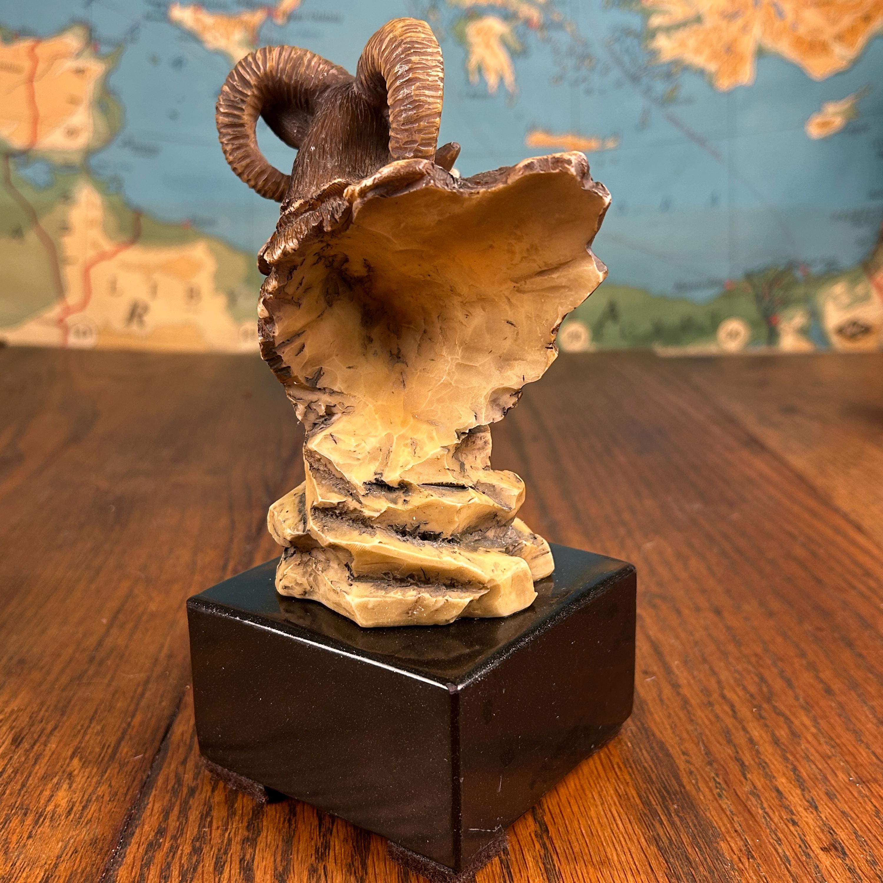 Although there is no maker's mark on this piece it appears to be vintage piece, specifically a "Big Horn Ram" statue produced by KY Mold Co. around 1975. These pieces are often characterized by their glazed ceramic finish and detailed depiction of Bighorn Sheep.