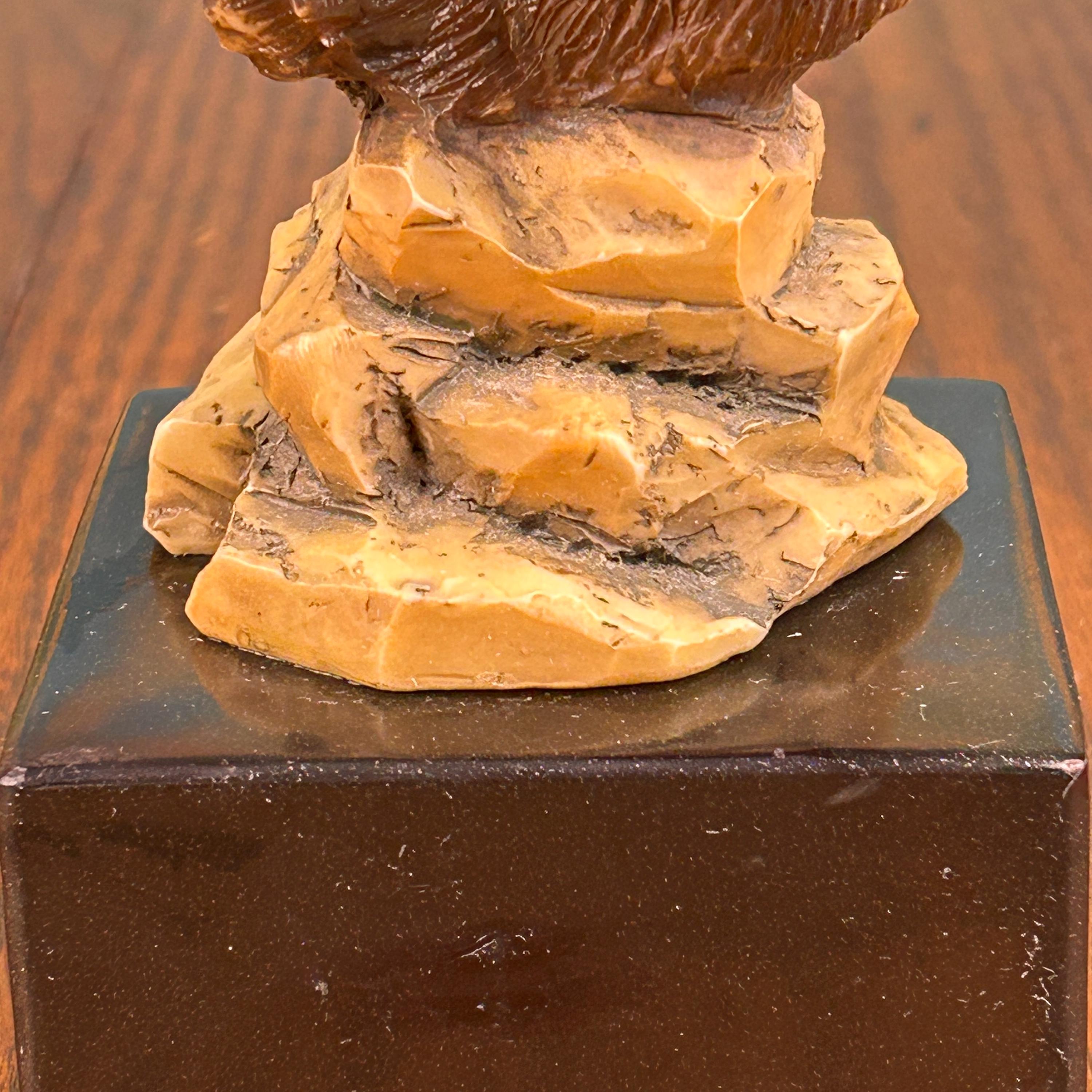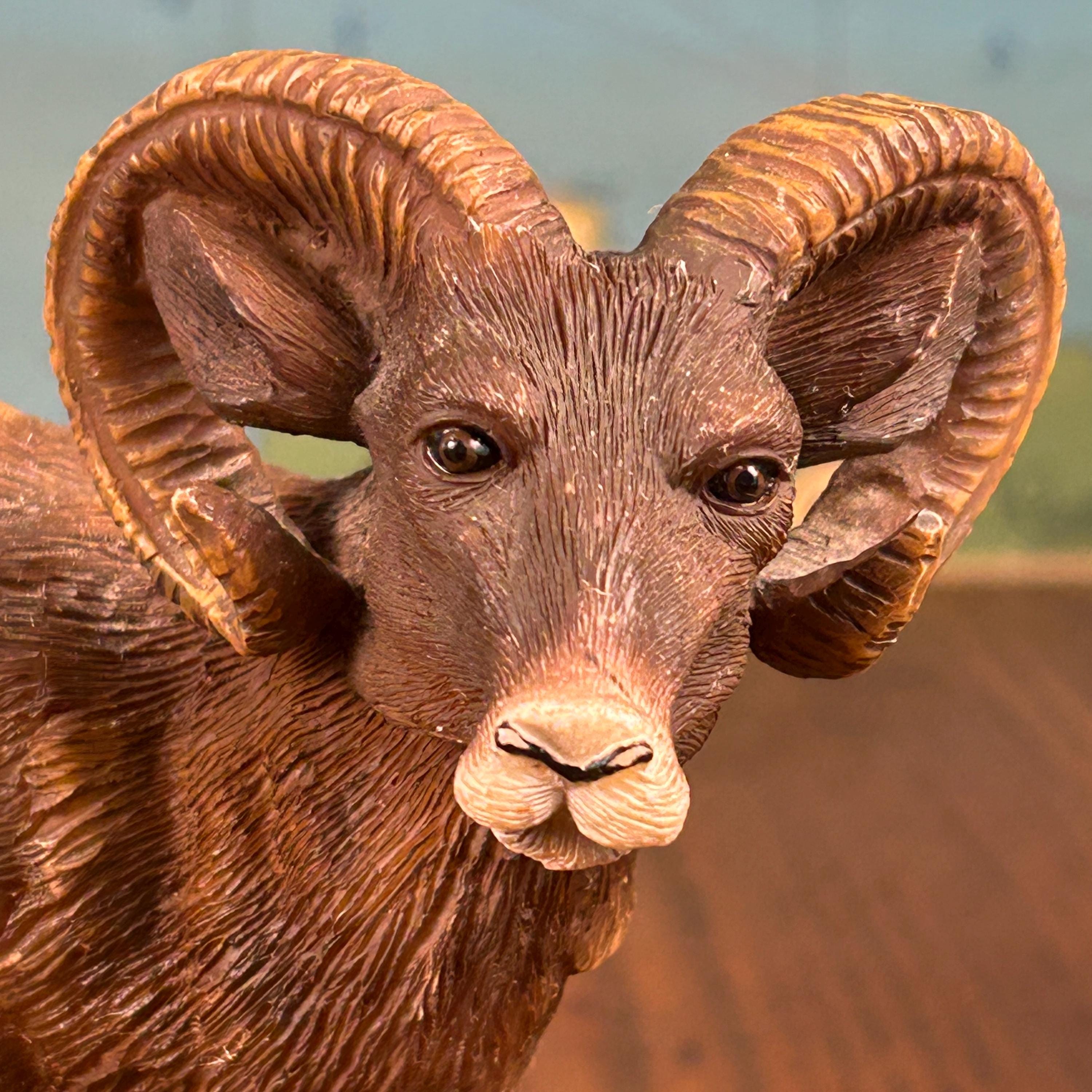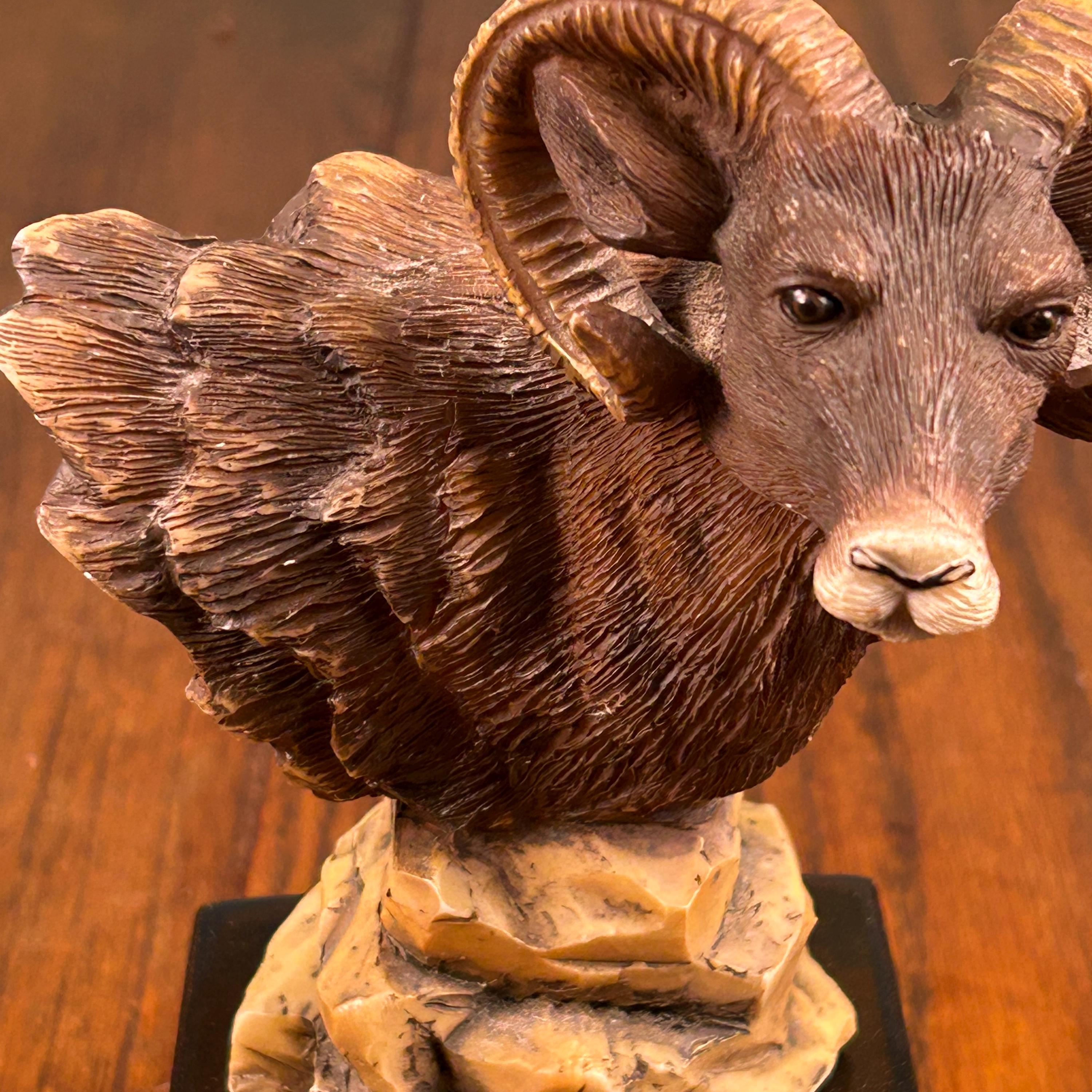 This is such a detailed and beautiful sculpture of a Big Horn Sheep. Delicately carved with realistic textures on fur and horns. Entire sculpture stands 7 1/4" and is attached to a 3 1/4" square black marble base.