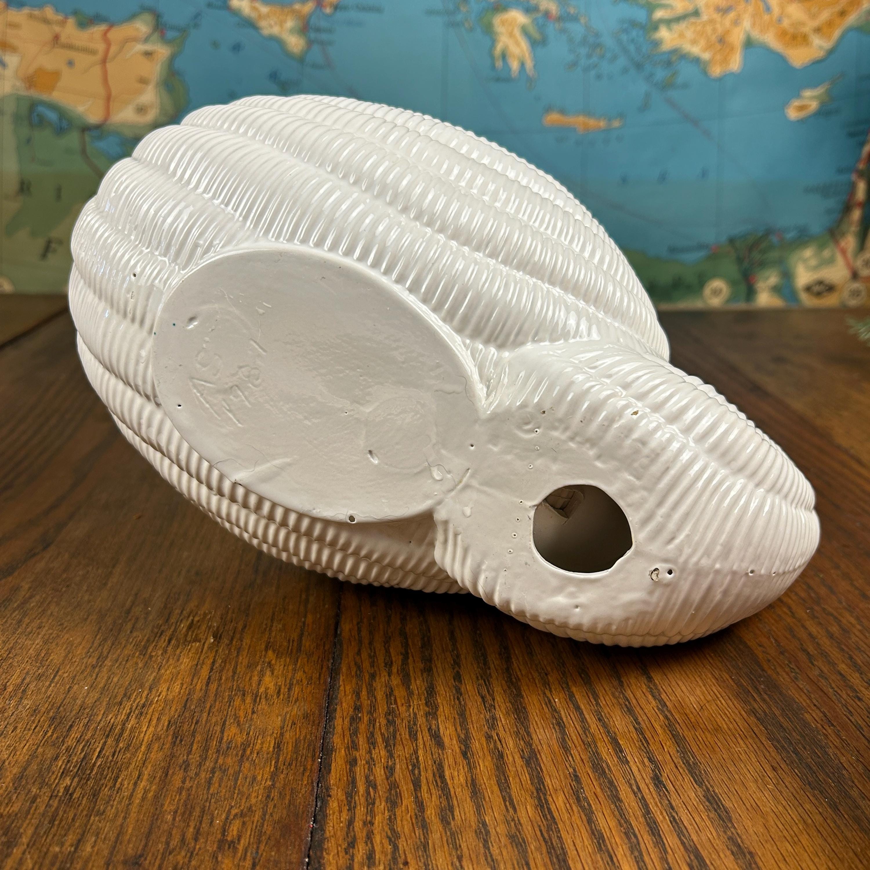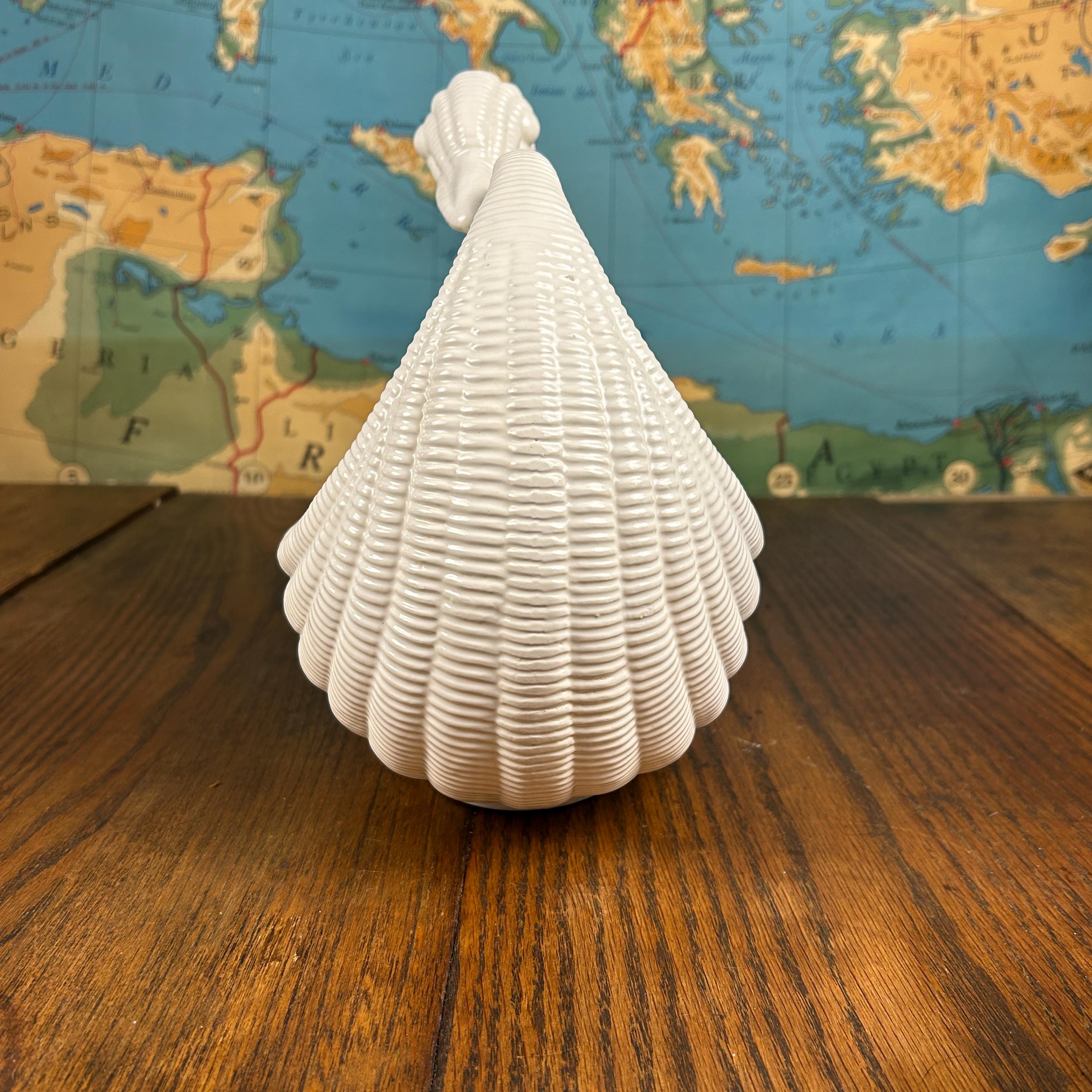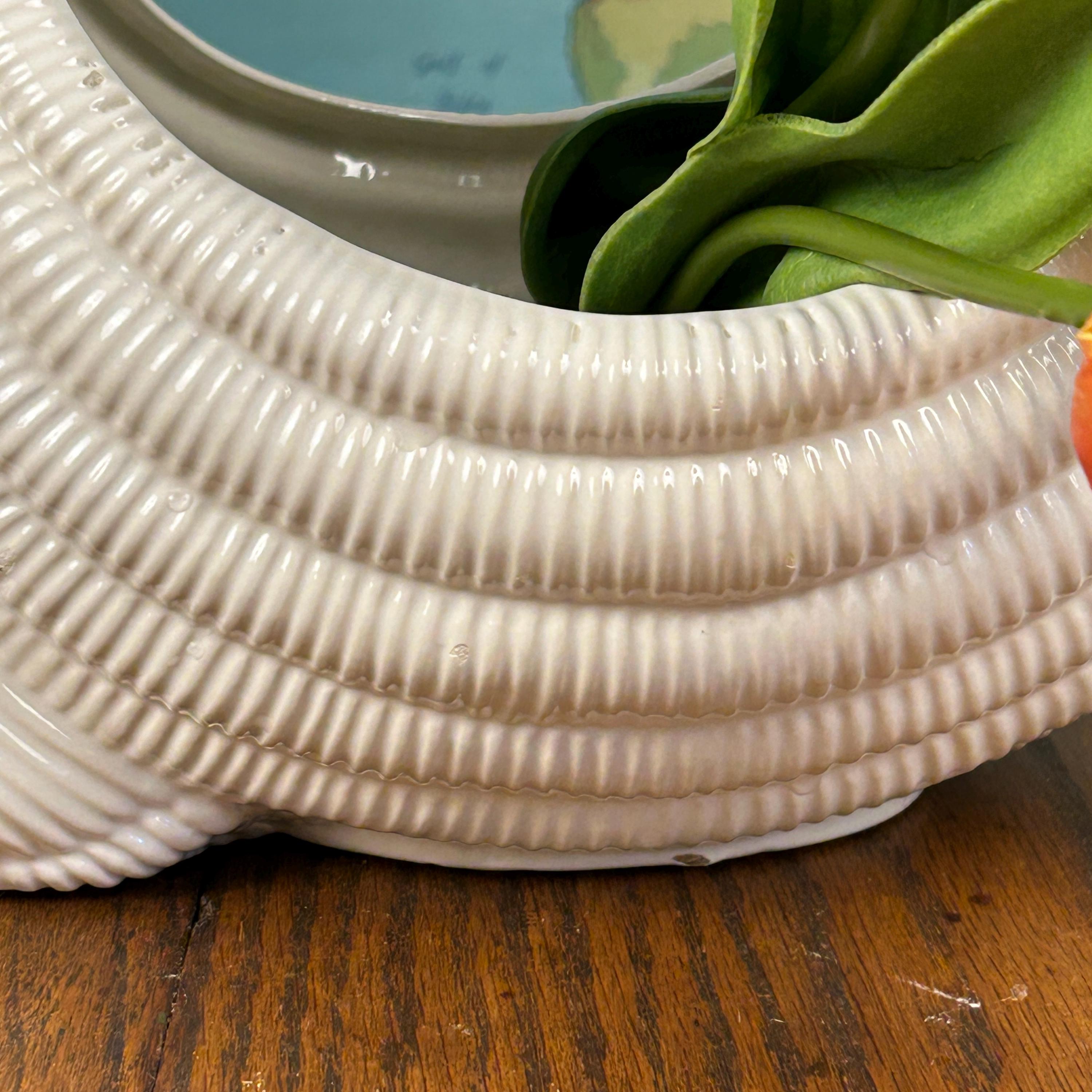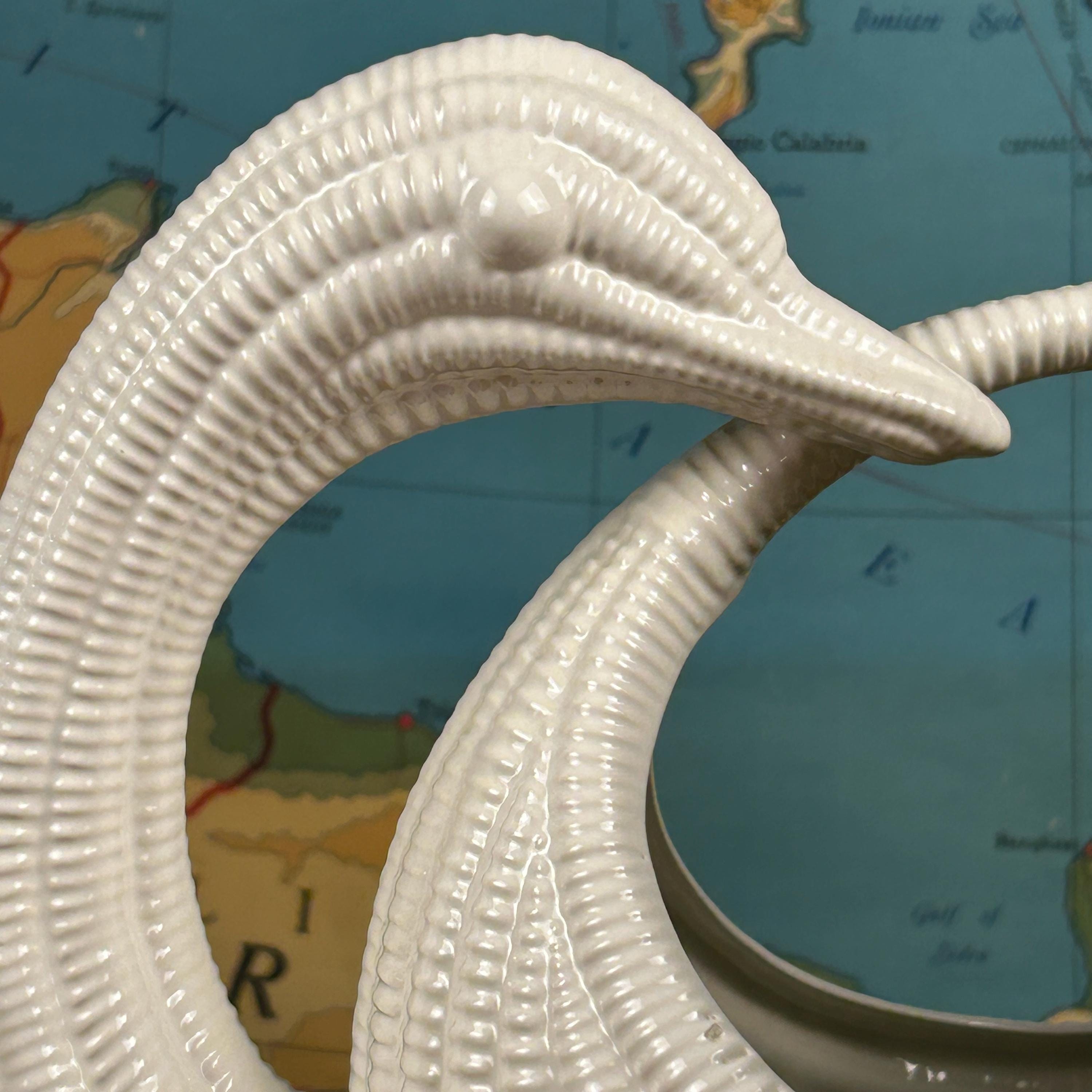 This 80s vintage ceramic faux wicker swan planter can be used as a planter, basket, or decorative piece.