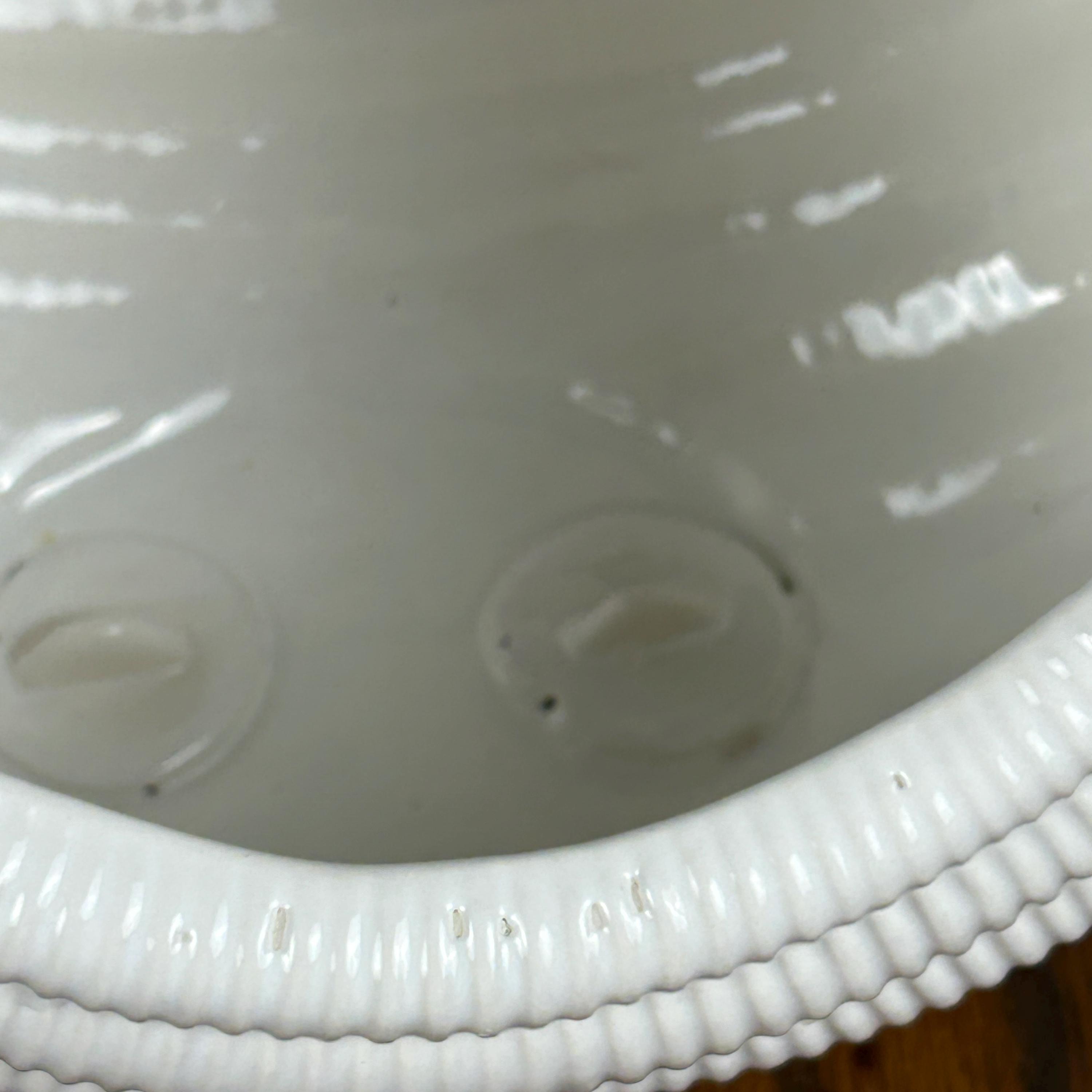 It is in excellent condition with no chips or cracks or visible crazing. It measures 9 1/2" tall x 11 1/4" wide x 6 1/4" deep.