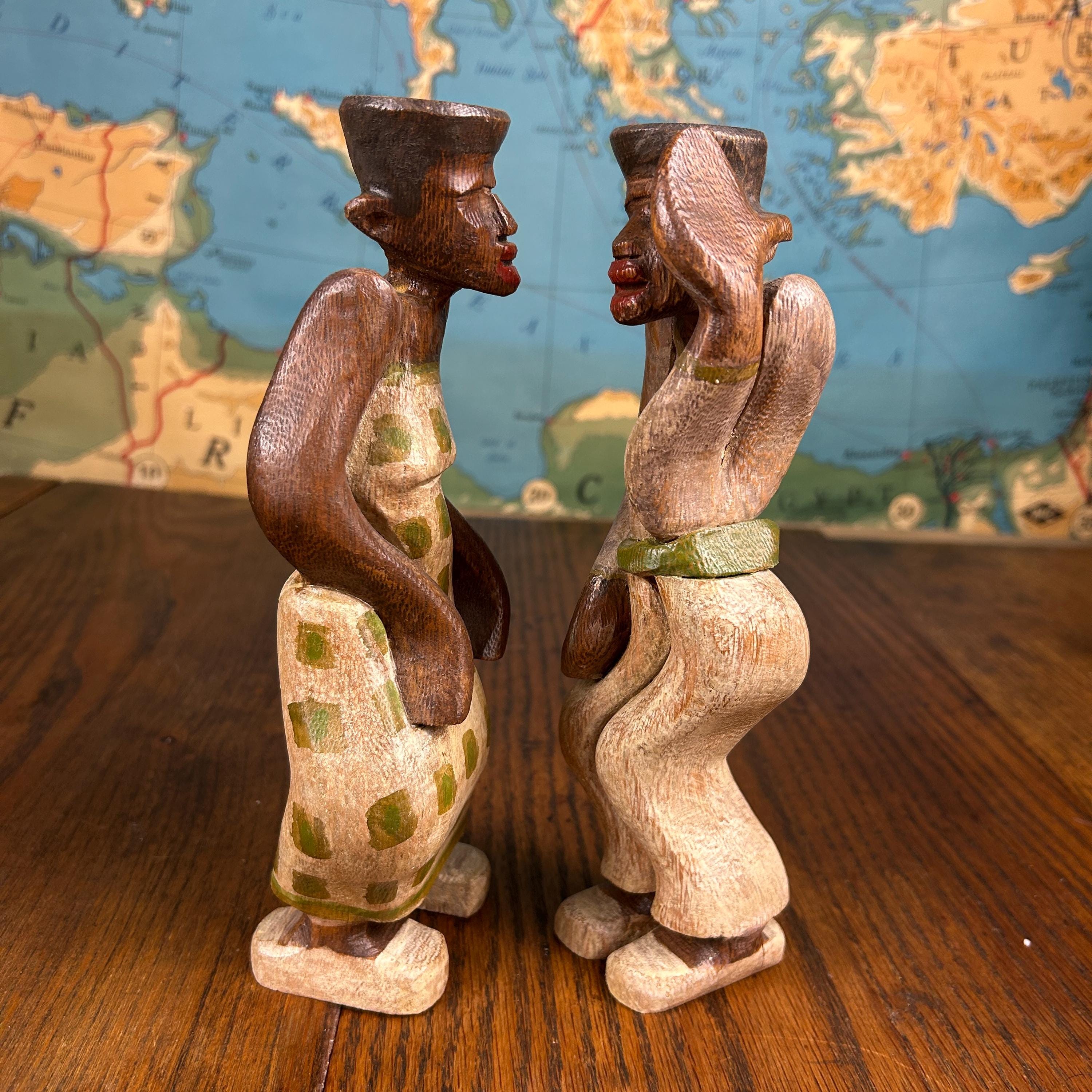 These are handmade items of wood. Carved perfectly in a shape of a man and woman from an African tribe.