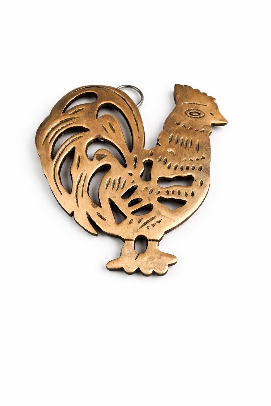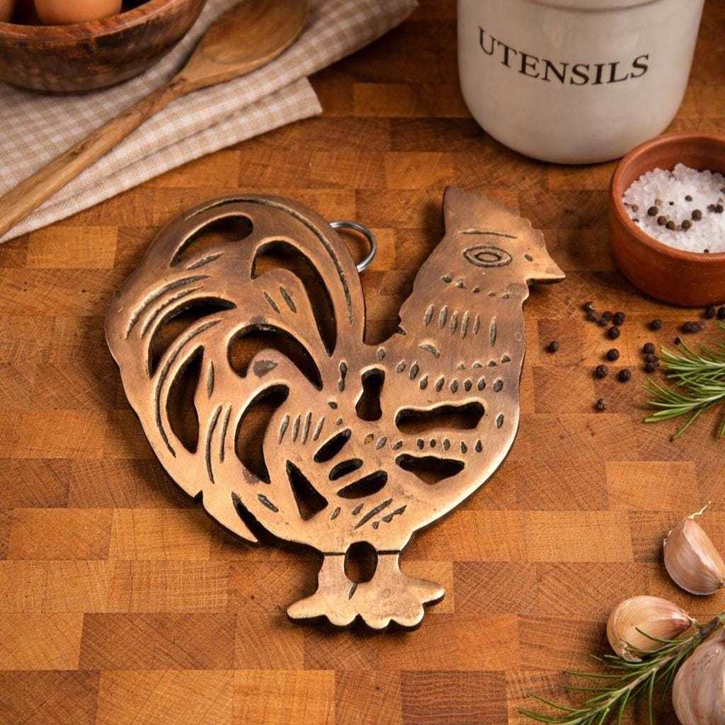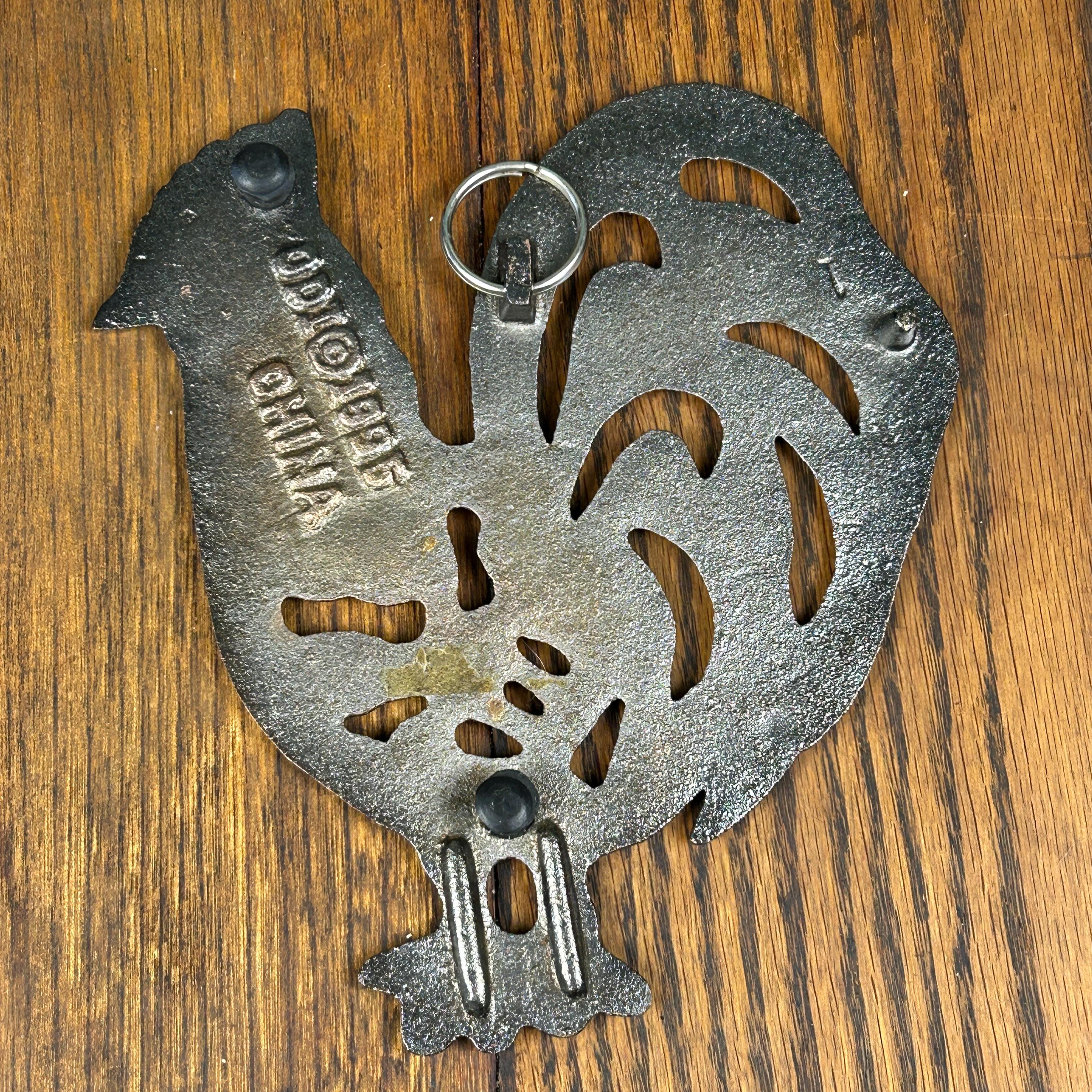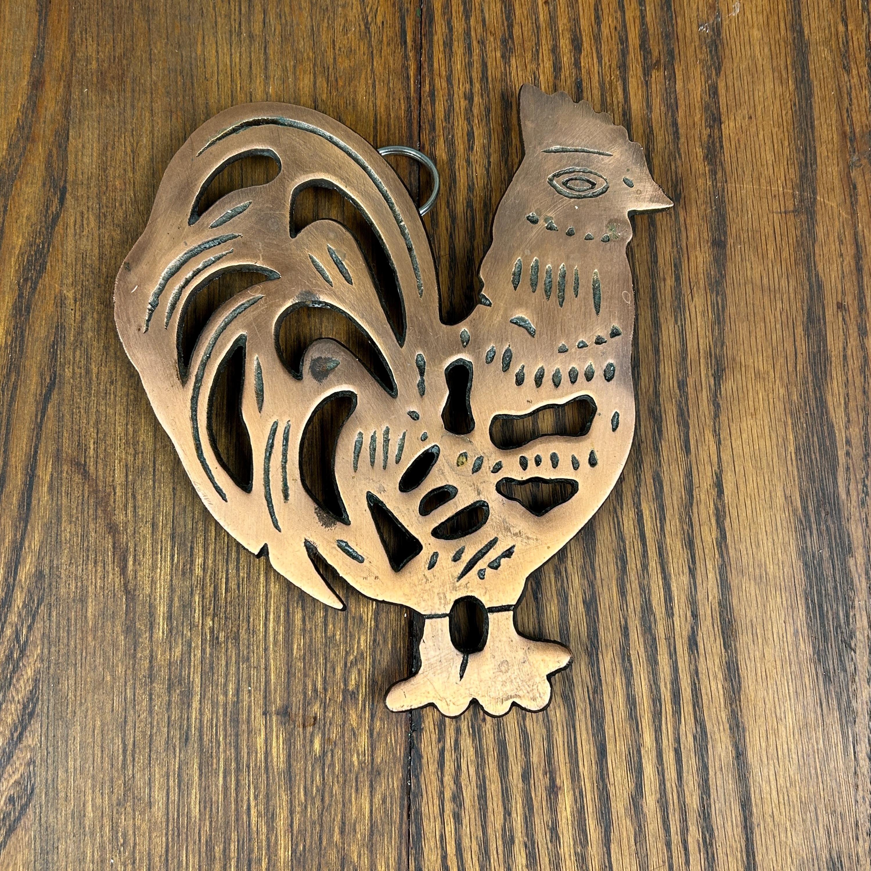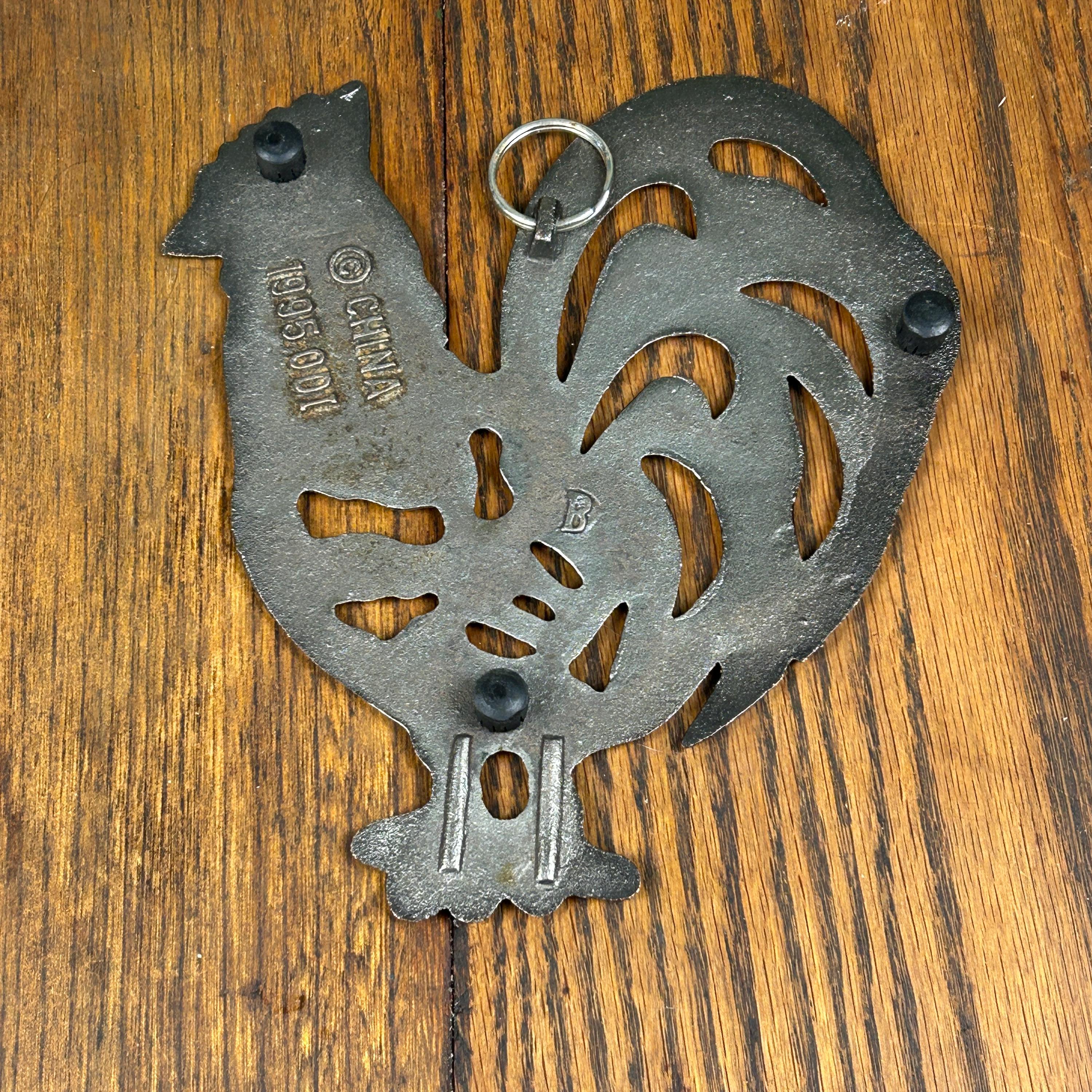 Vintage ODI Cast Iron Copper Chicken Rooster Hot Plate Trivet Home Decor 1995