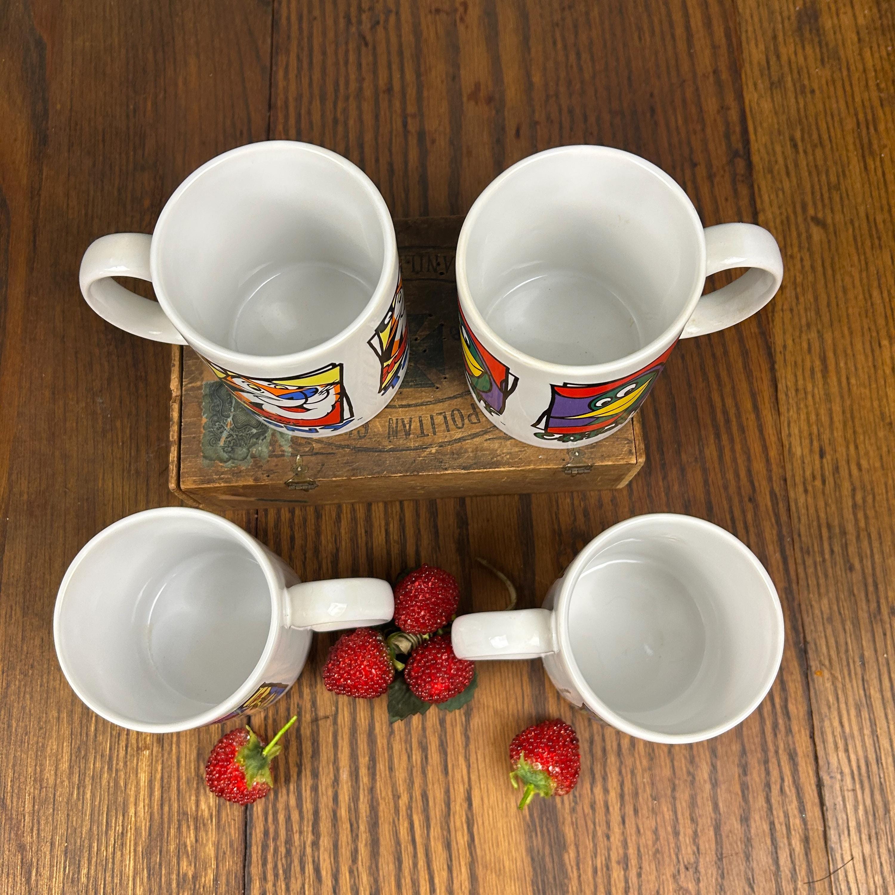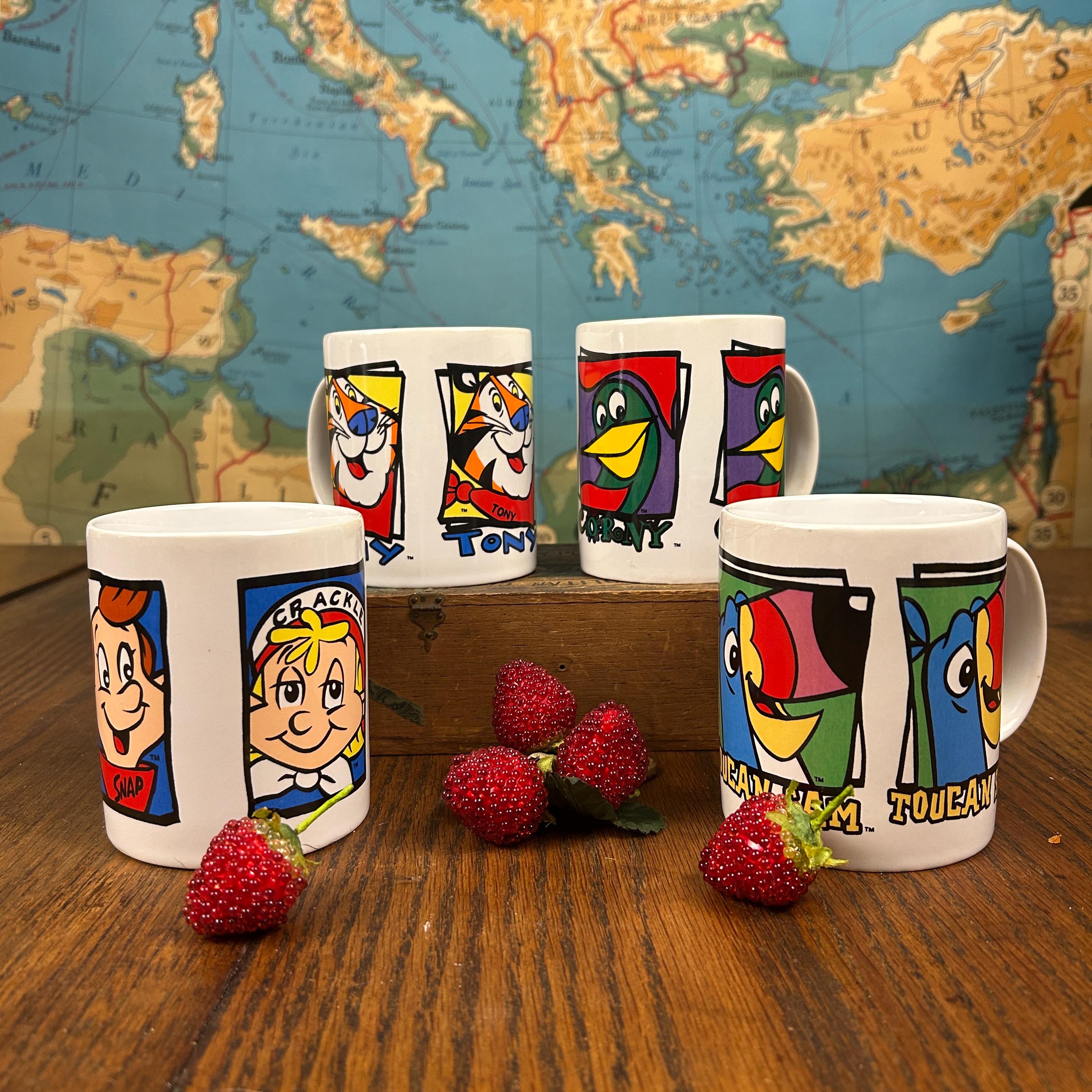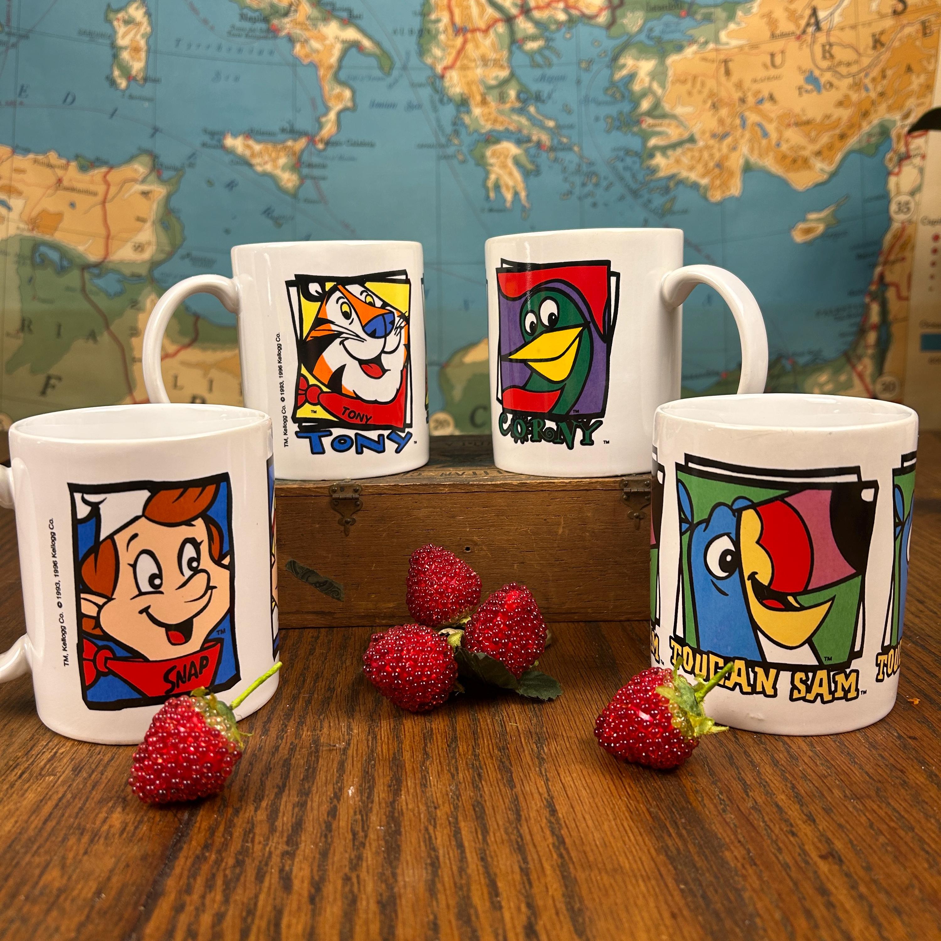 Remember Saturday morning cartoons and a bowl of your favorite cereal? These vintage Kellogg's 90s cereal mugs are in excellent condition with no cracks, chips or paint loss. Copyright 1993, 1996.