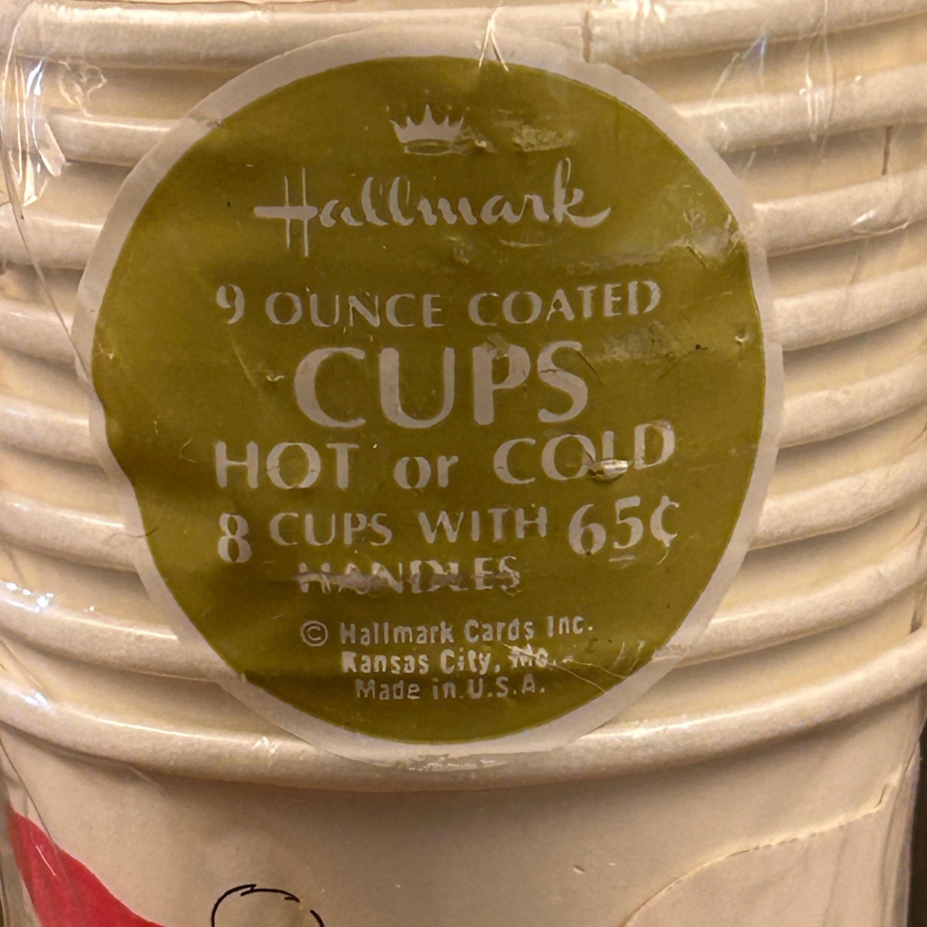 The cups hold 9 ounces and are coated to hold hot or cold beverages. In original Hallmark wrapping.