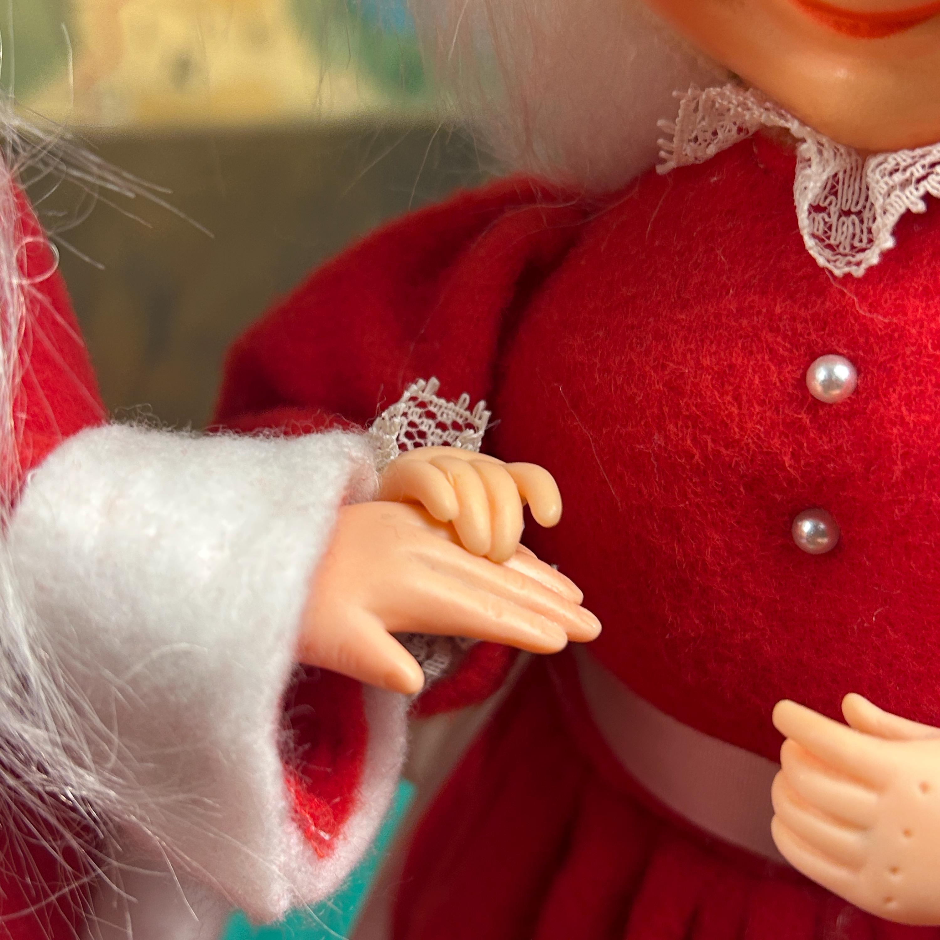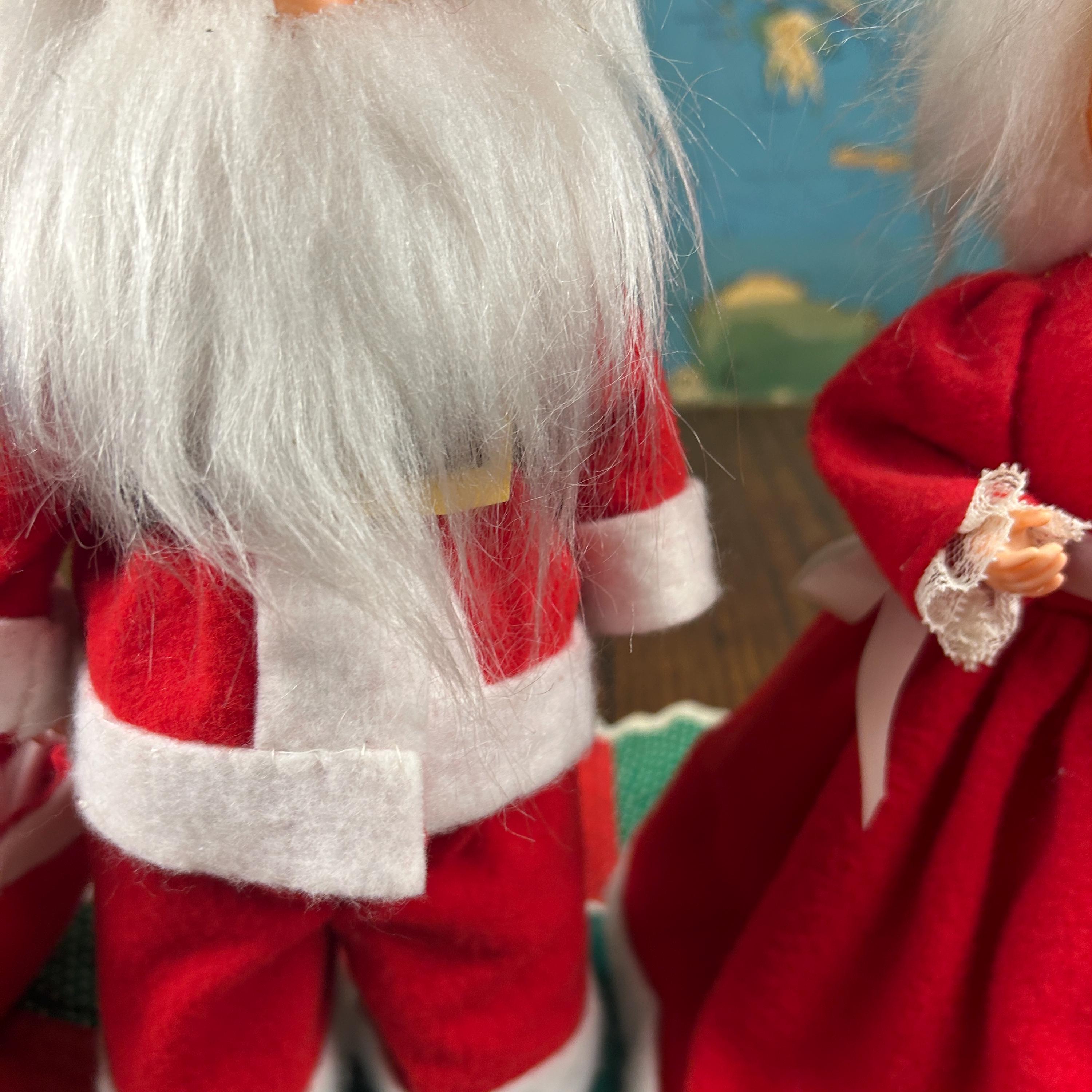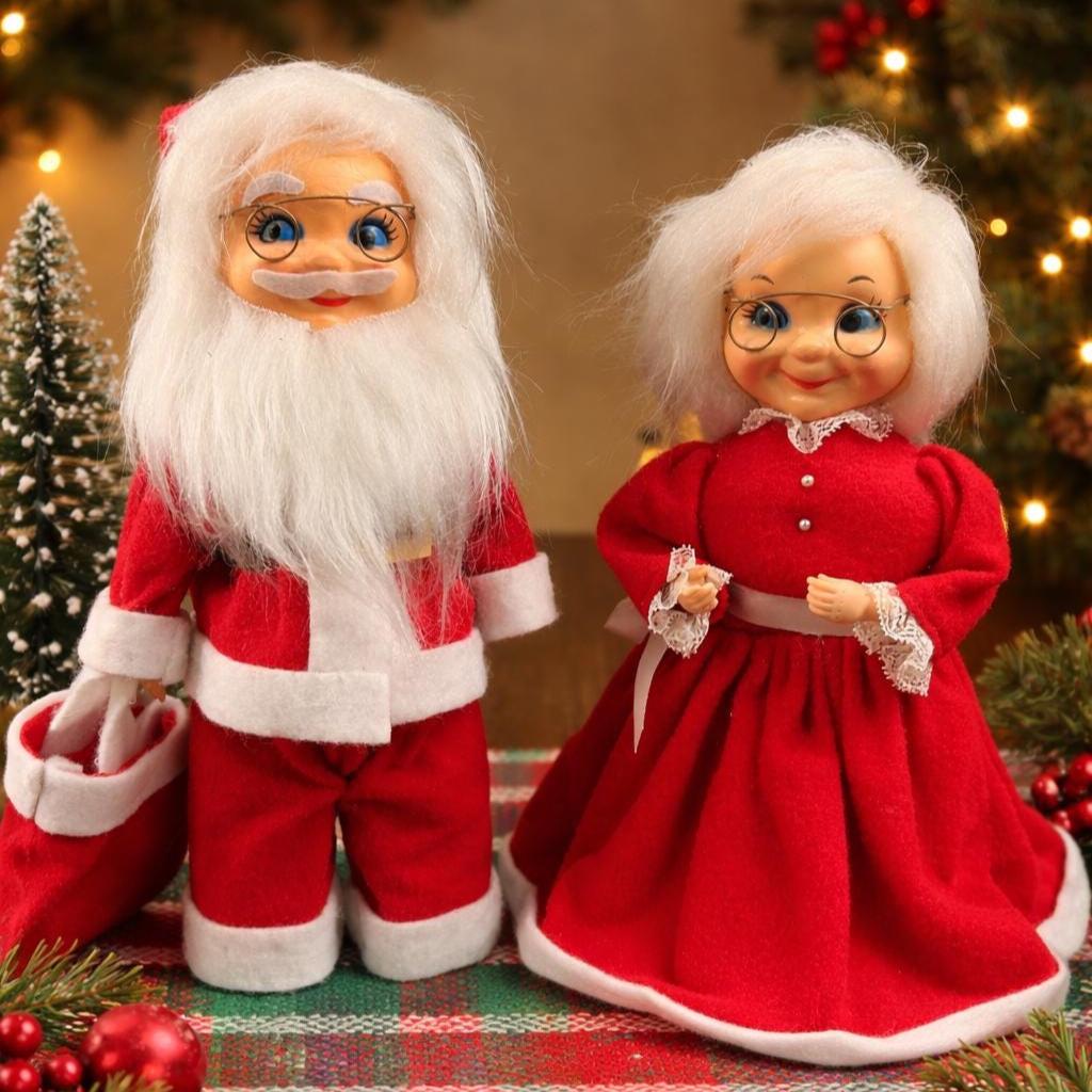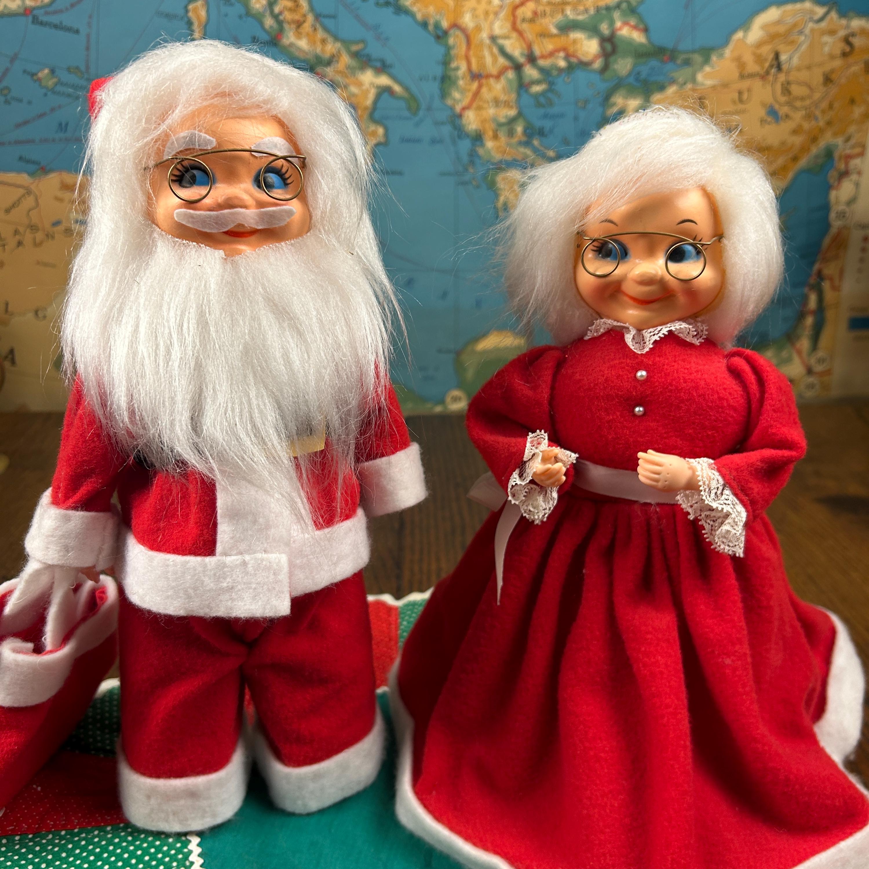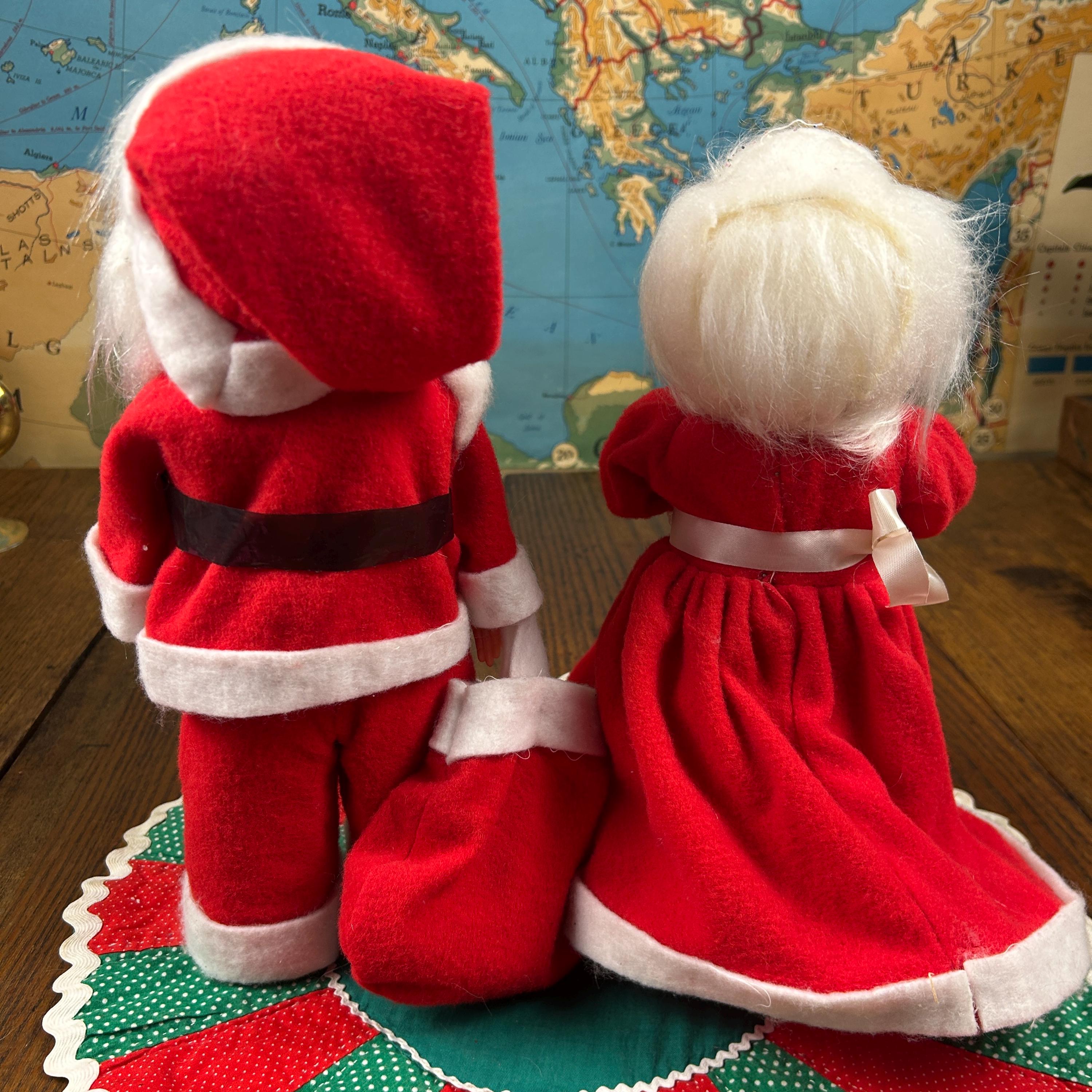 Add some nostalgic charm to your holiday decor with this vintage Mr. and Mrs. Santa Claus figurine set. Handmade with mixed materials including felt and plastic, these hand-made figurines feature intricate detailing and vibrant colors. Perfect for collectors, this bundle includes both Santa and Mrs. Claus dolls standing at 12 inches tall. These were popular diy projects back in the day!