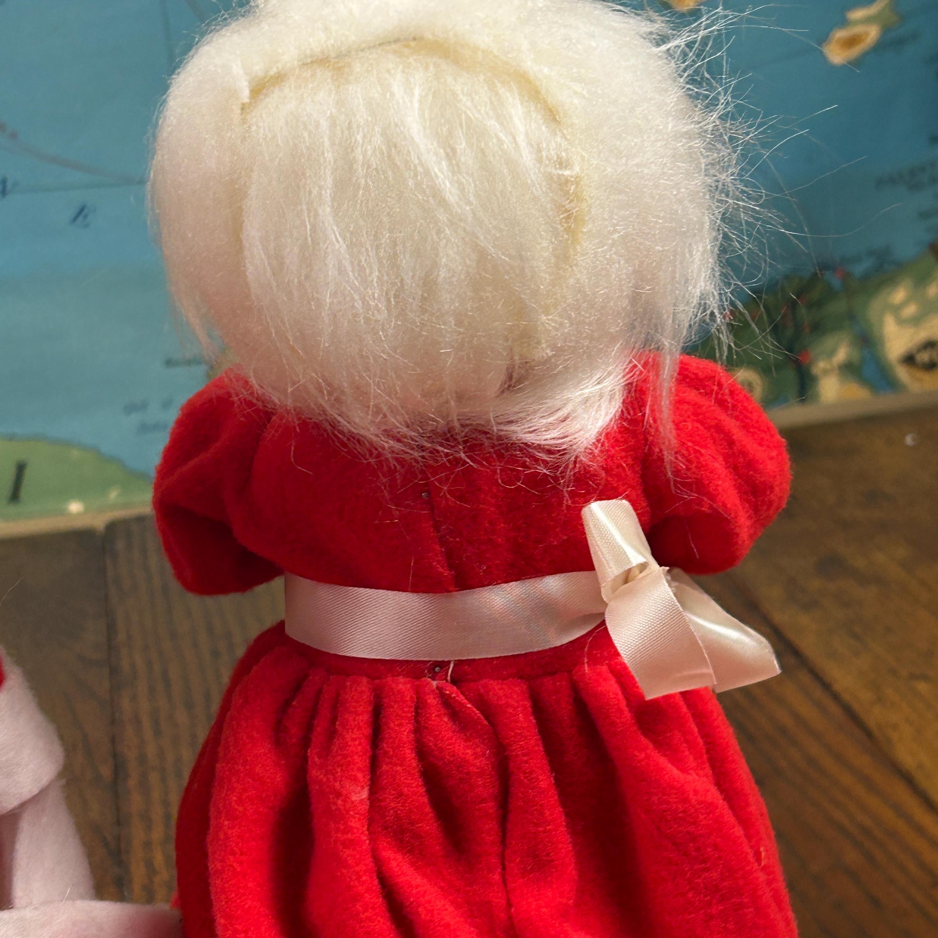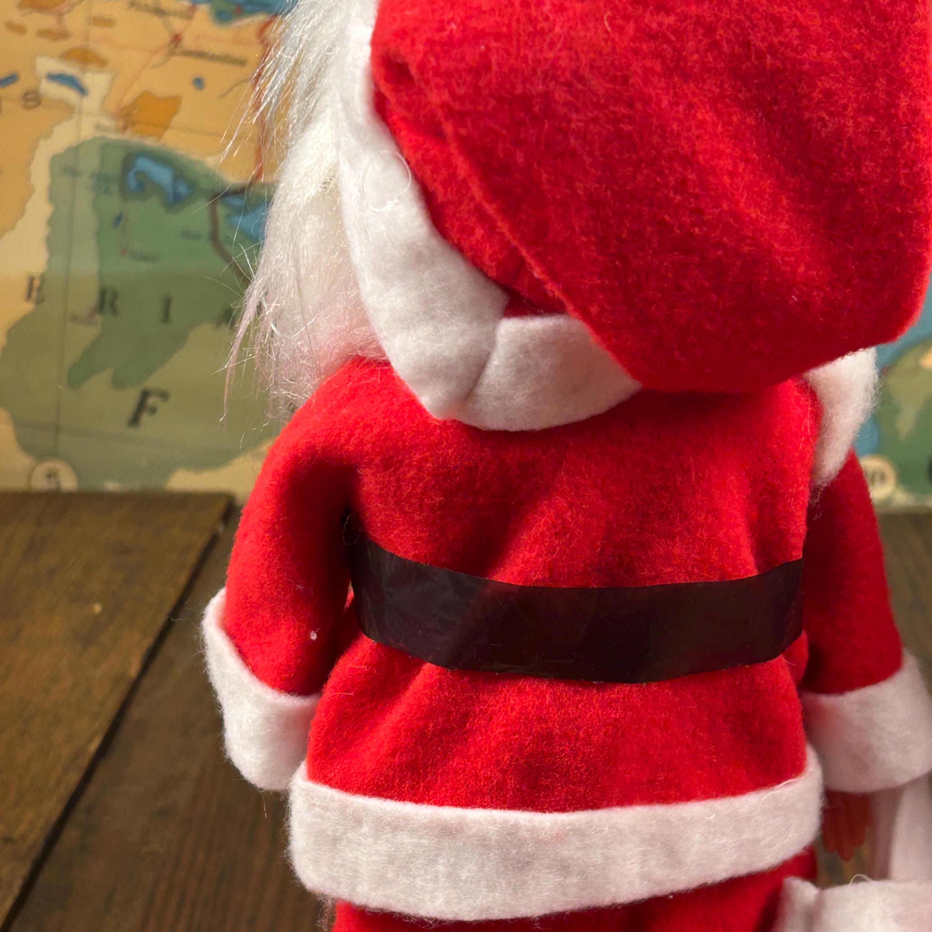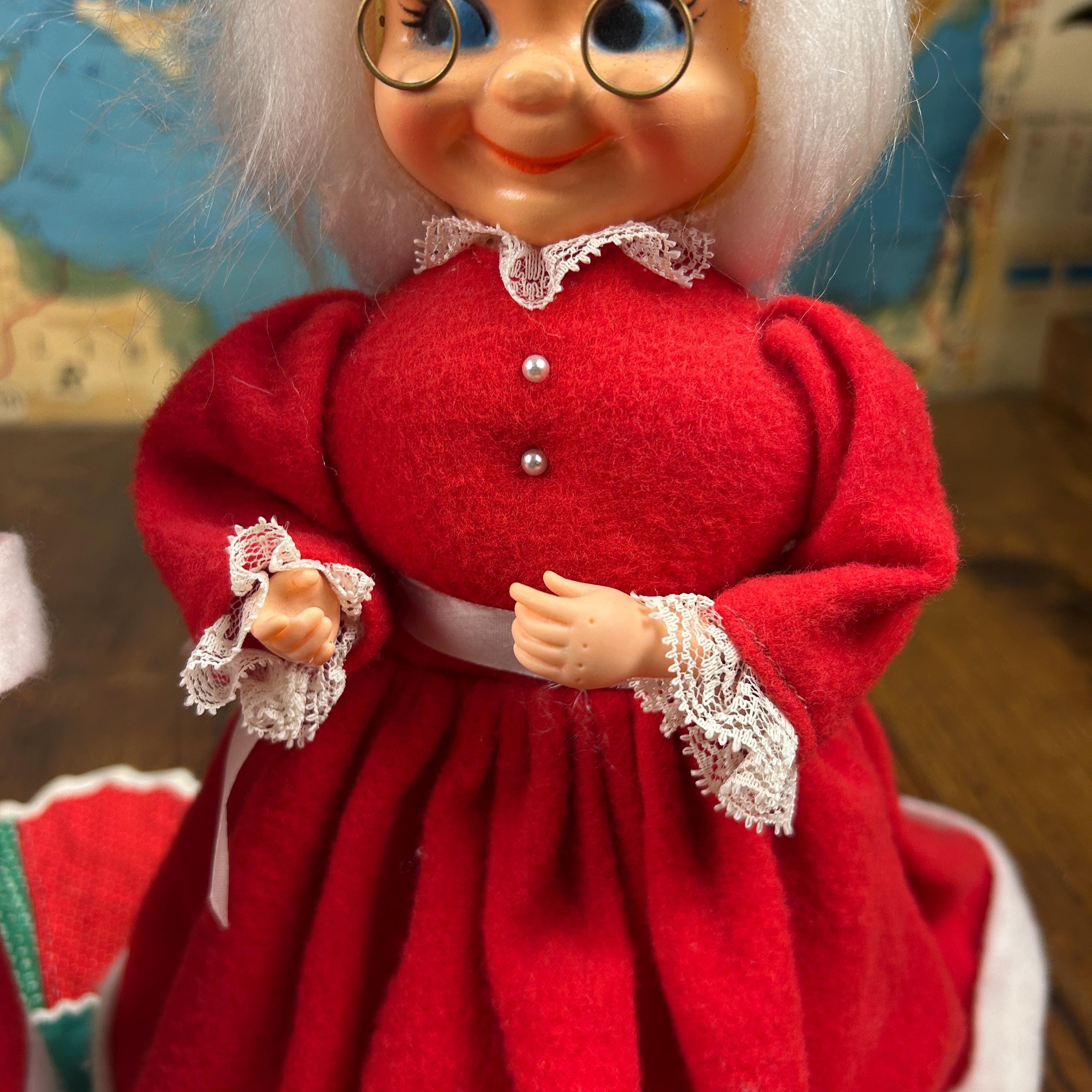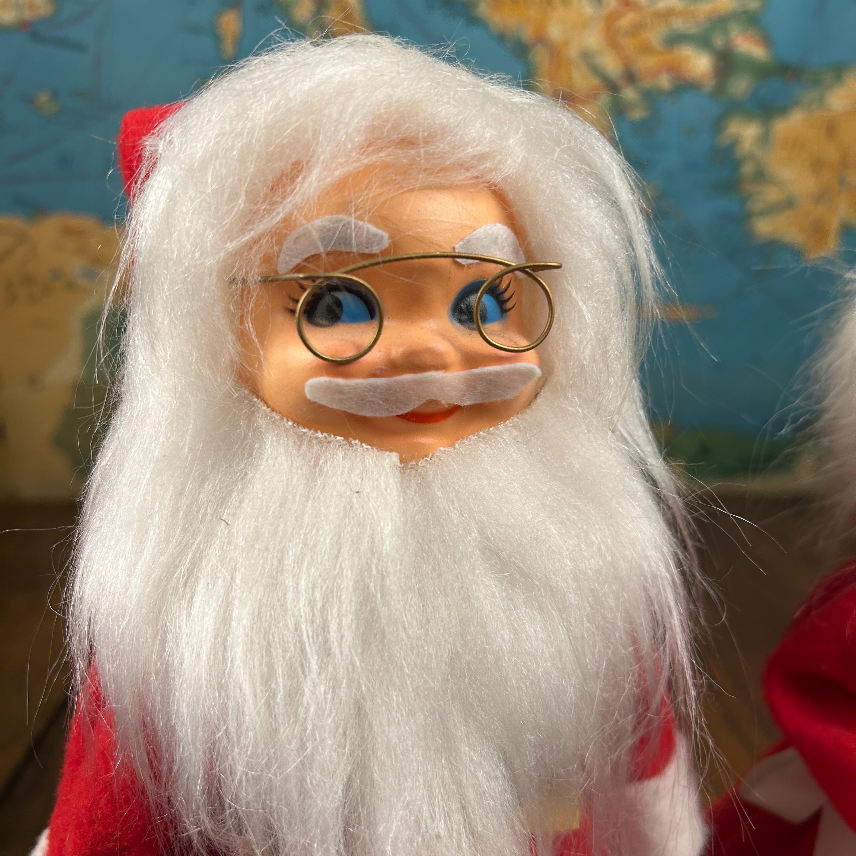 Add some nostalgic charm to your holiday decor with this vintage Mr. and Mrs. Santa Claus figurine set. Handmade with mixed materials including felt and plastic, these hand-made figurines feature intricate detailing and vibrant colors. Perfect for collectors, this bundle includes both Santa and Mrs. Claus dolls standing at 12 inches tall. These were popular diy projects back in the day!