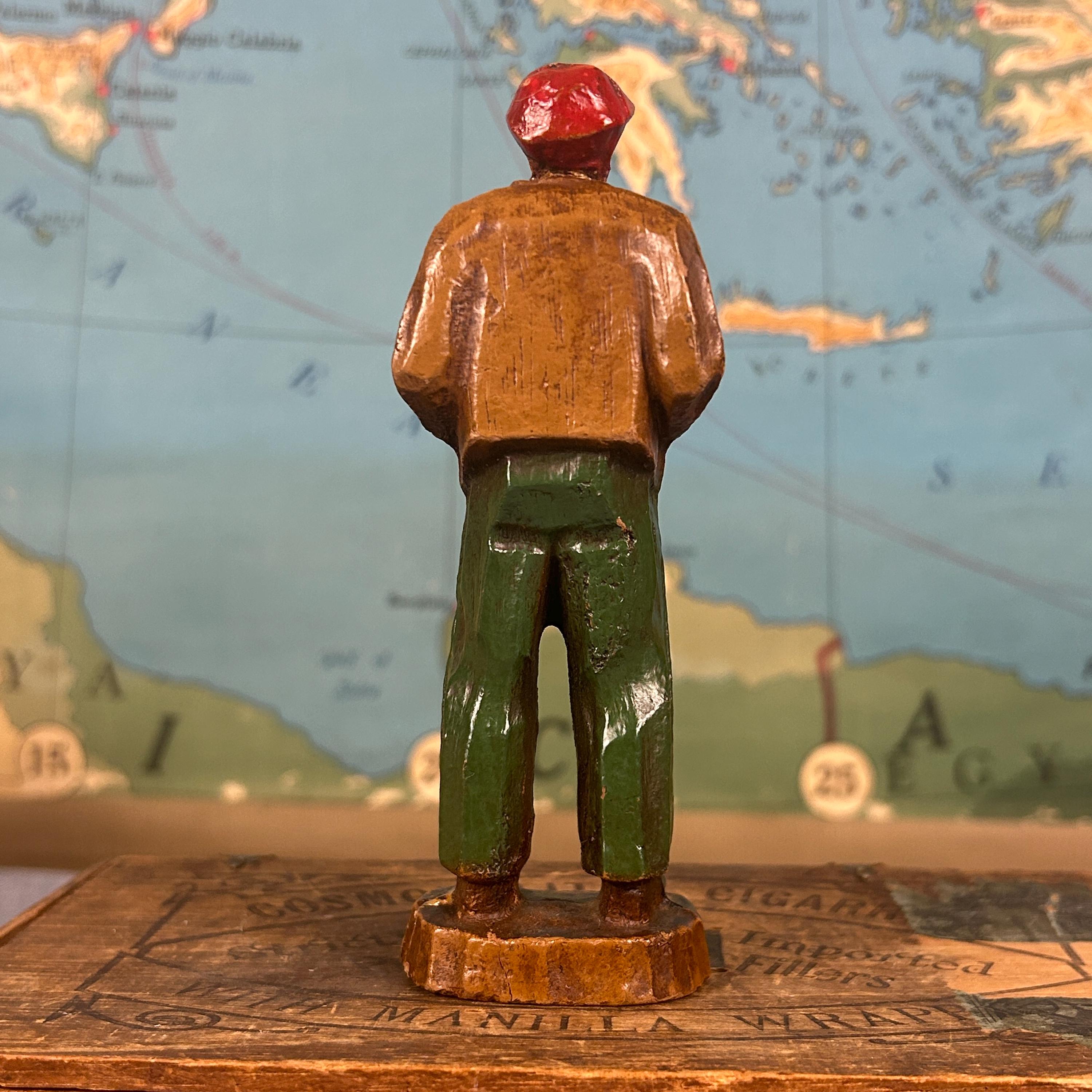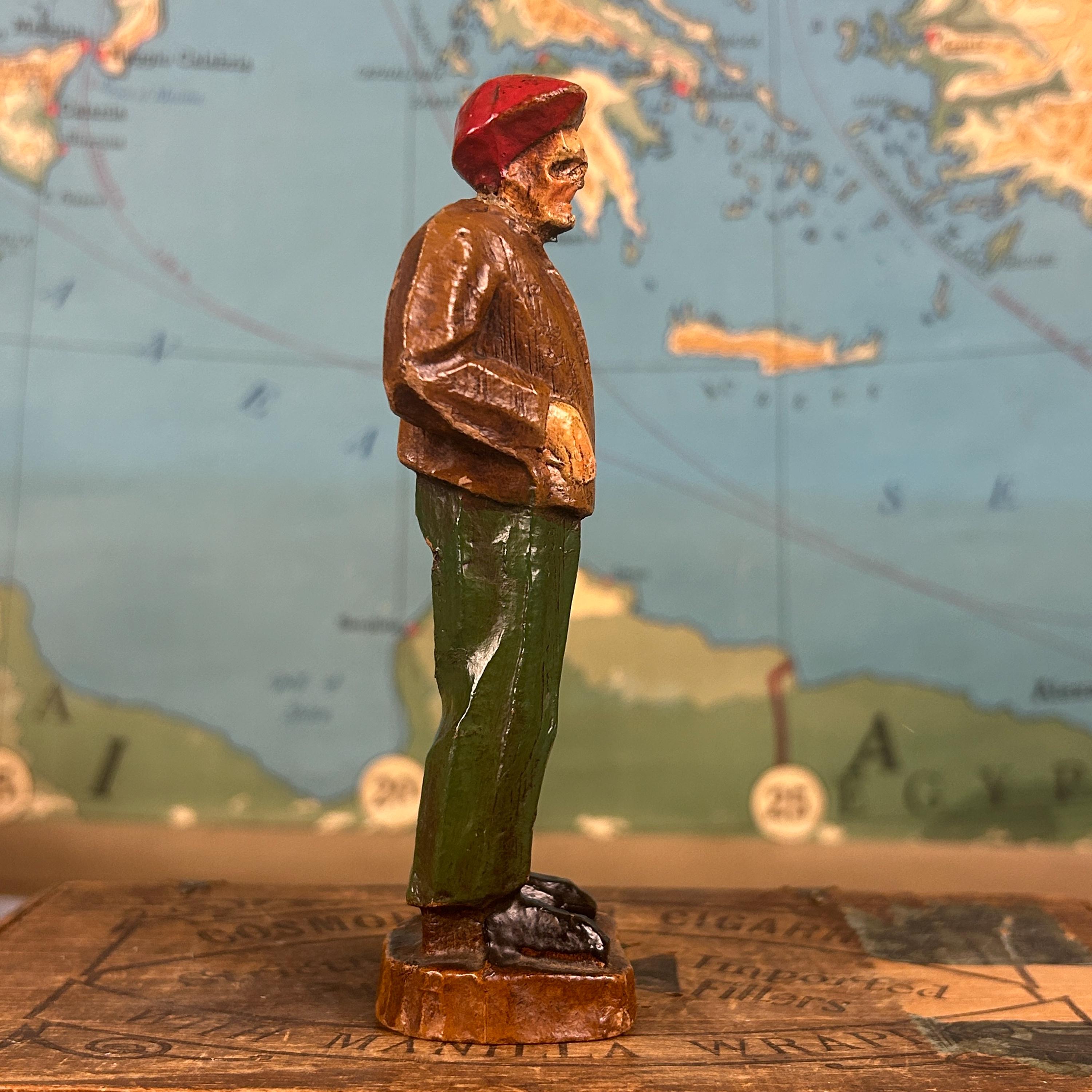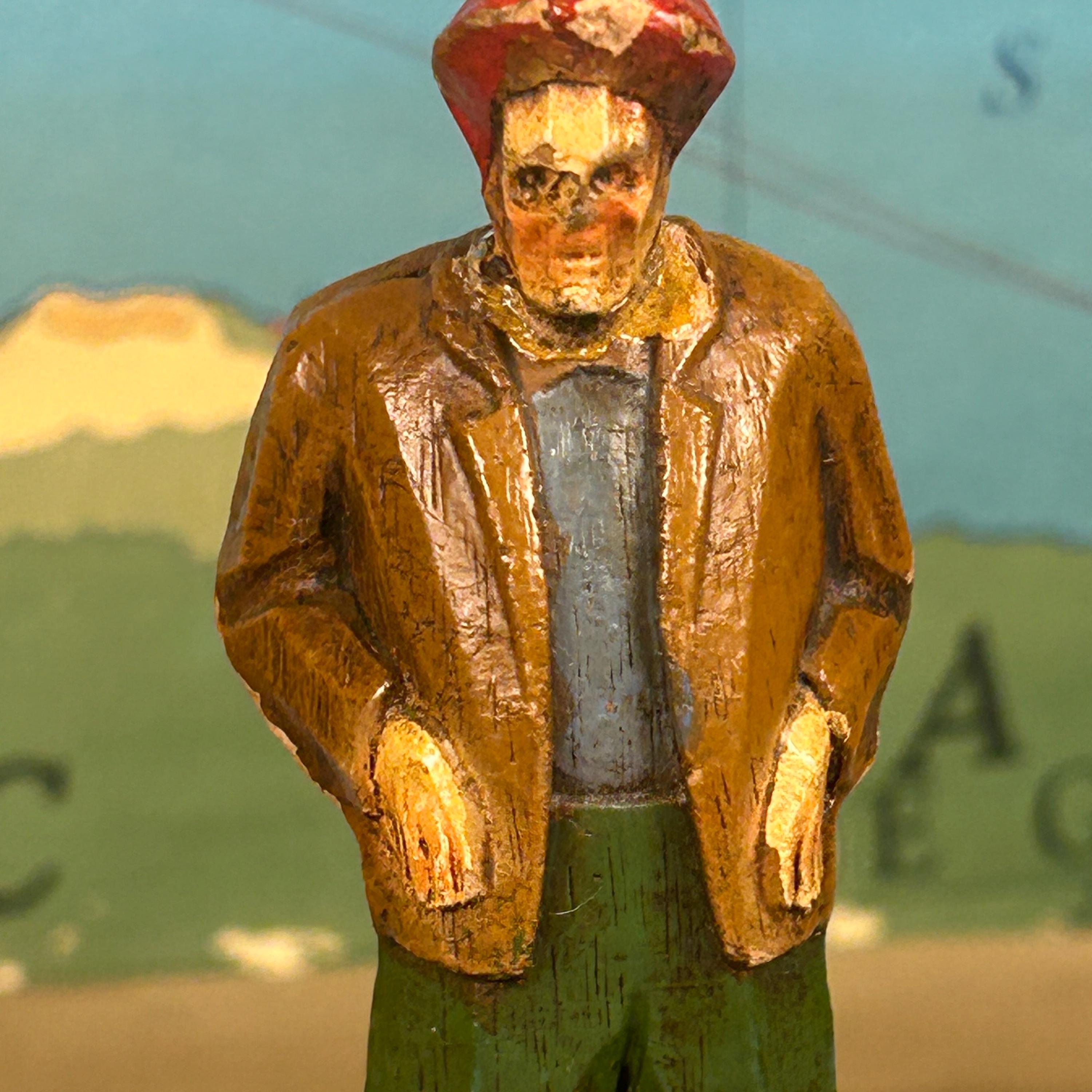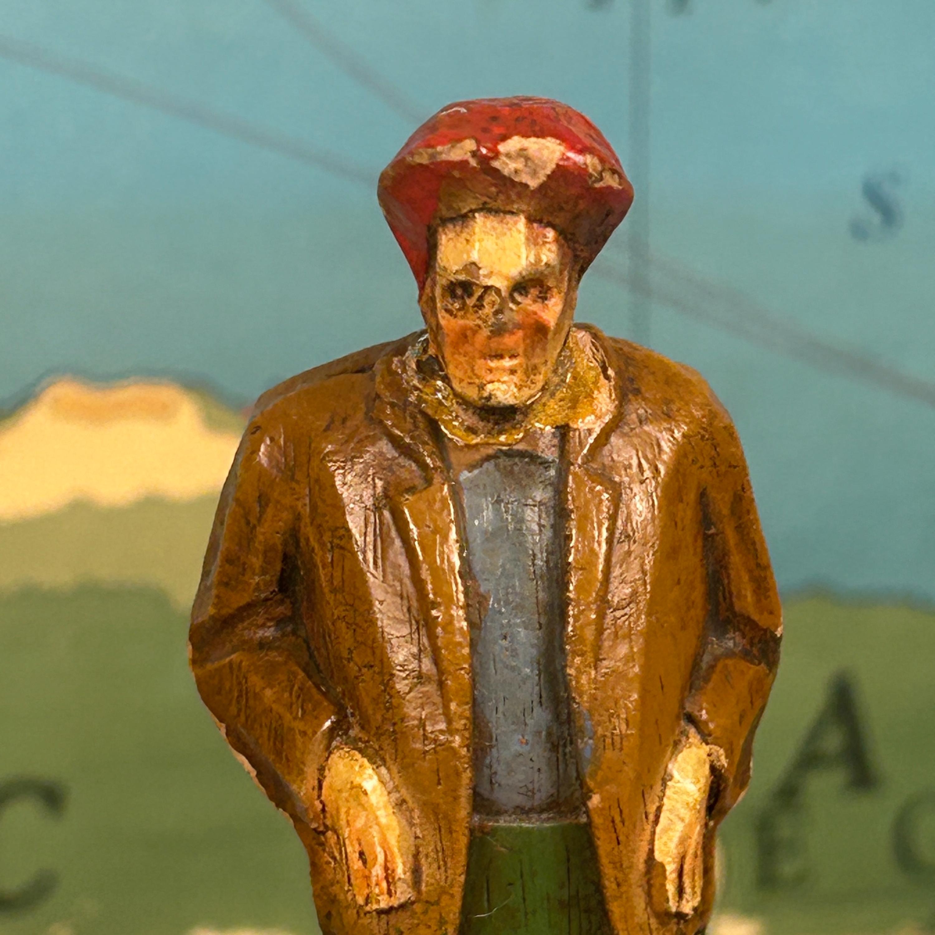 Discover this unique hand-carved old man sculpture, featuring a charming figure donned in a red hat, jacket, and pants. Artisan crafted from high-quality wood, this one-of-a-kind piece of art brings warmth and character to any space. Ideal for collectors or as a standout decorative item, this unsigned artisan creation showcases meticulous craftsmanship and timeless appeal. Elevate your home décor with this delightful sculpture that captures the essence of artistry and individuality!