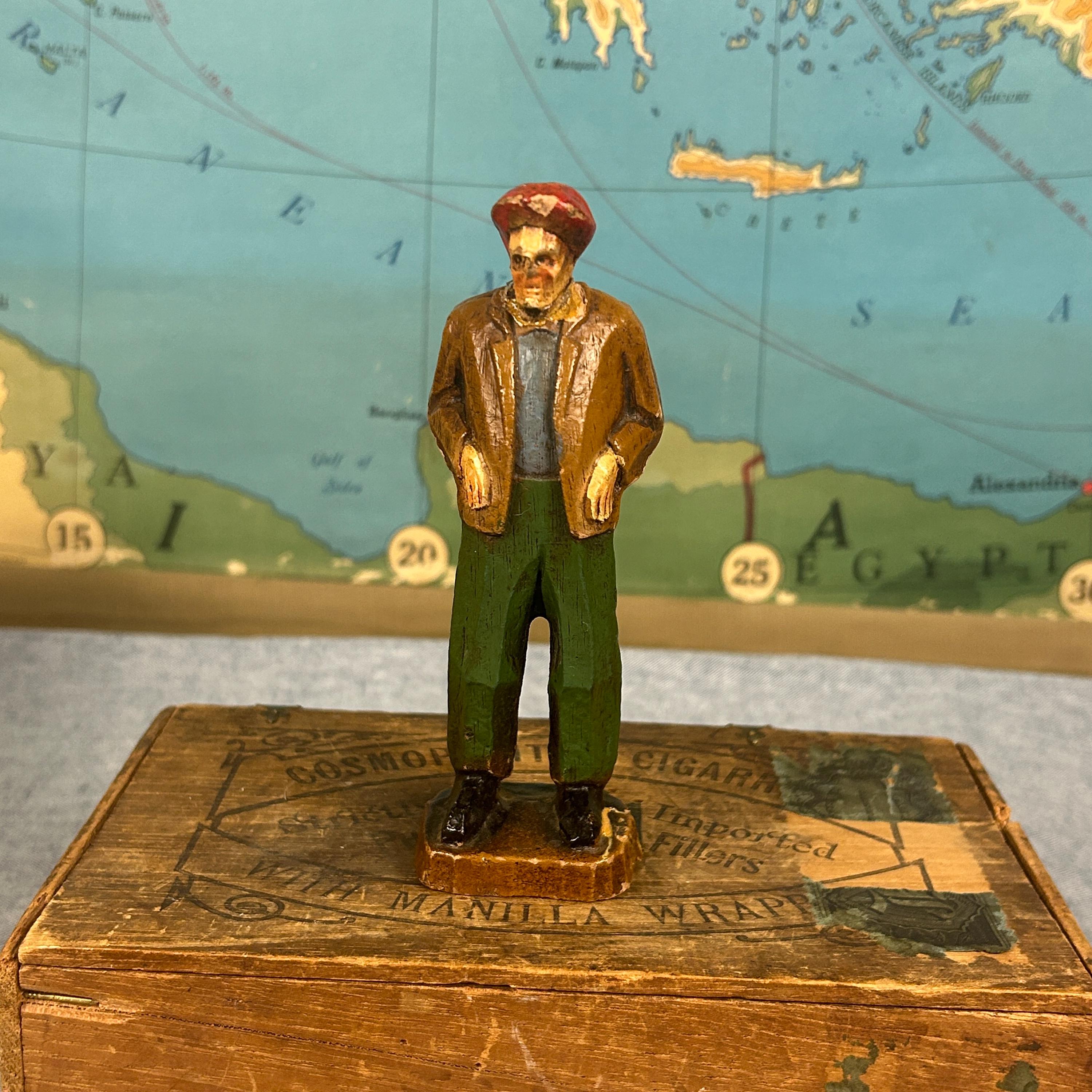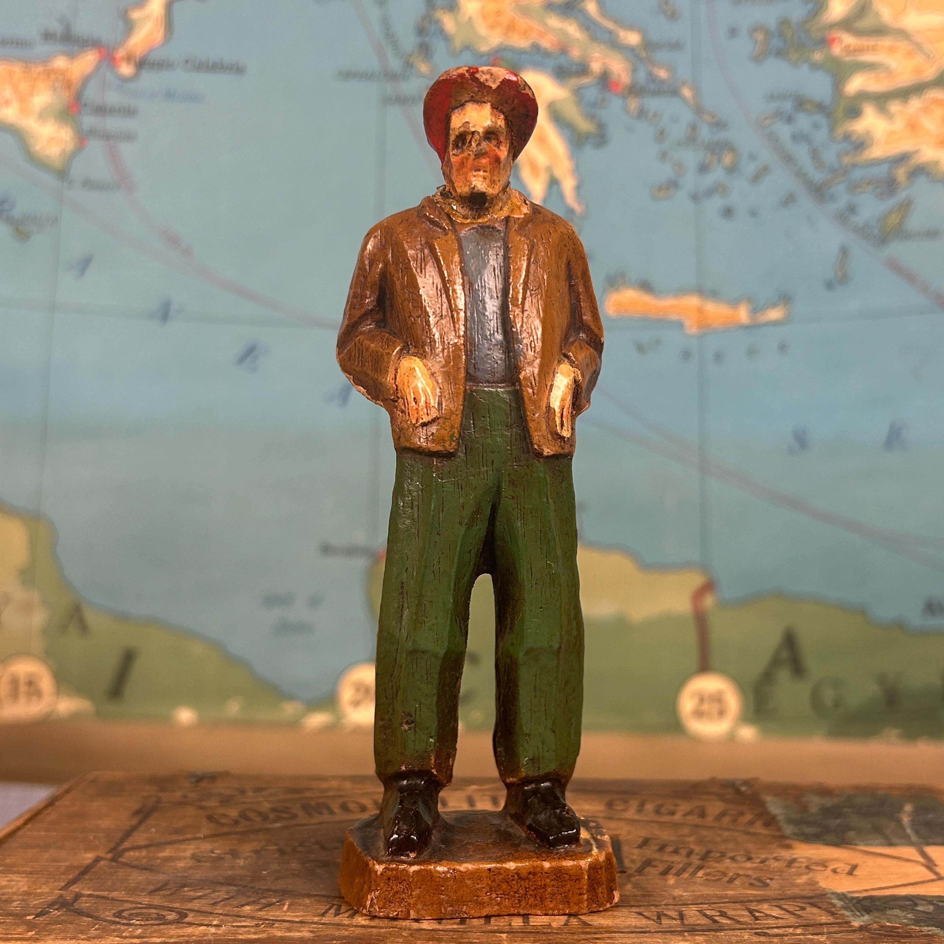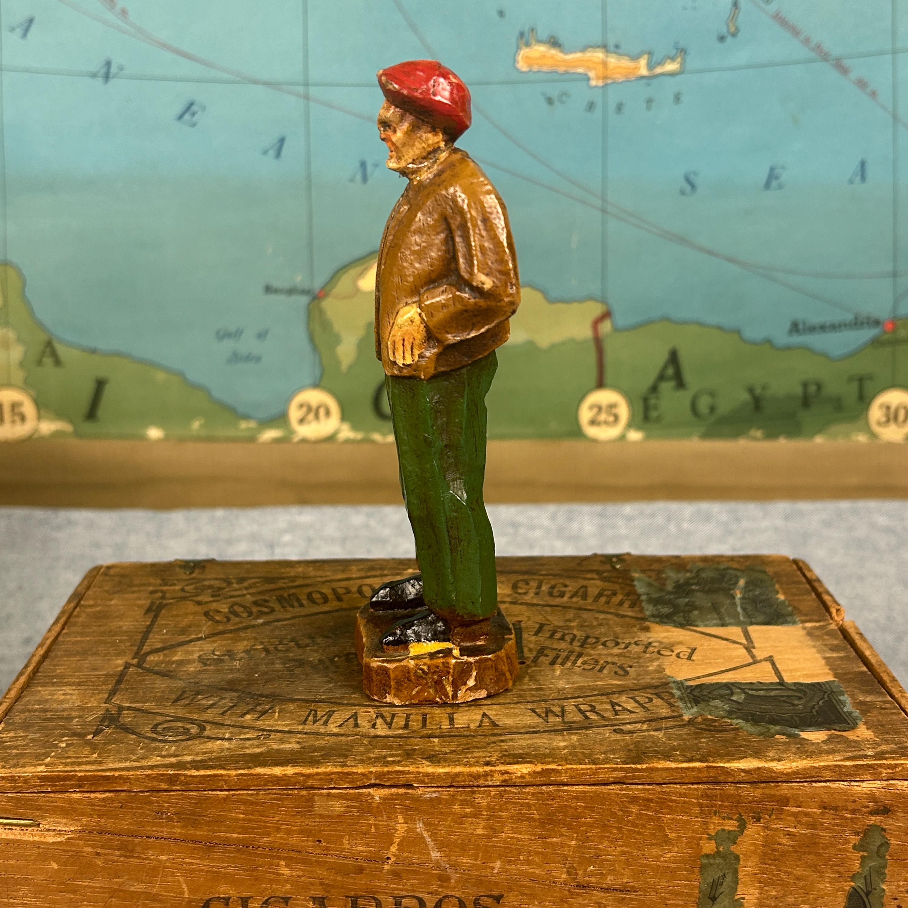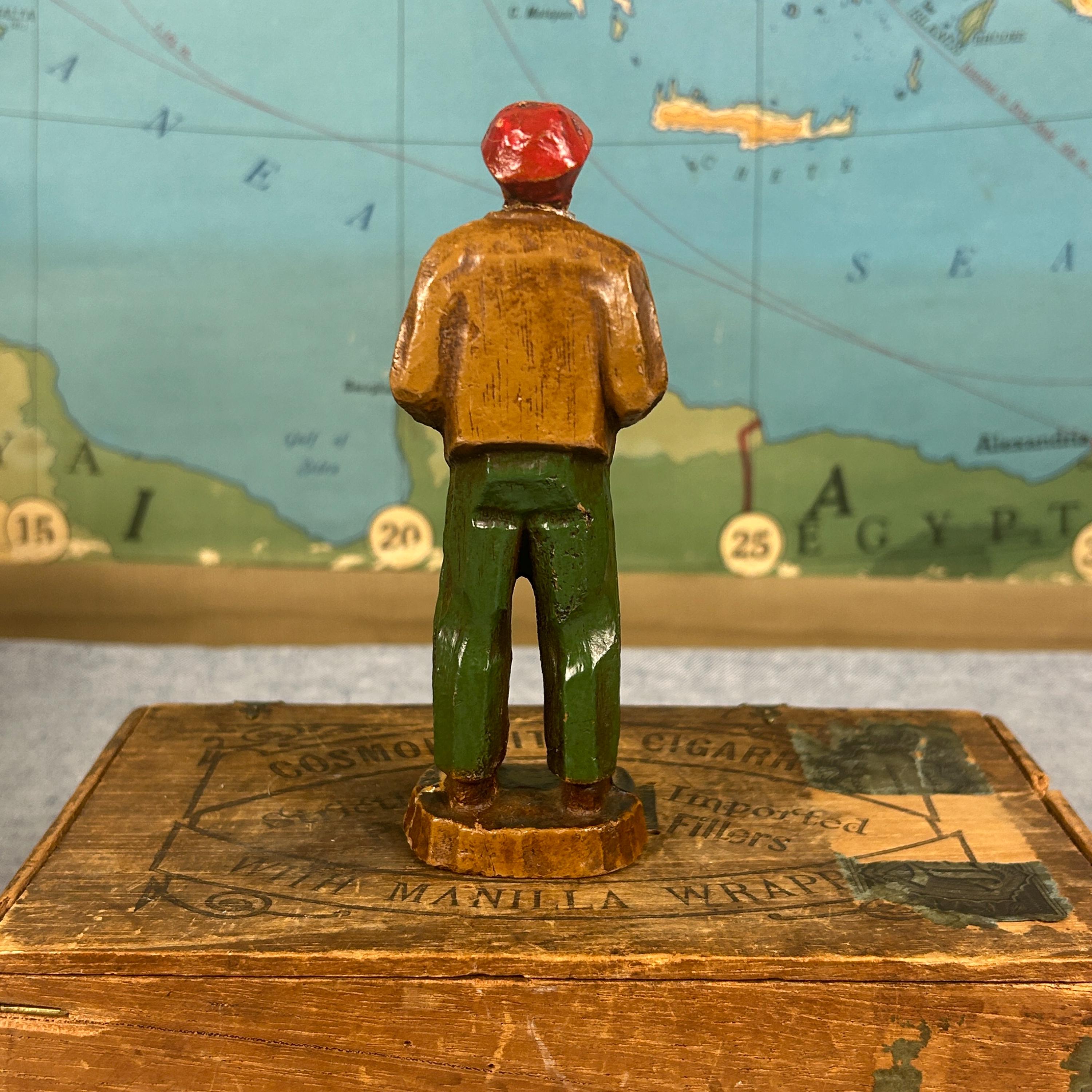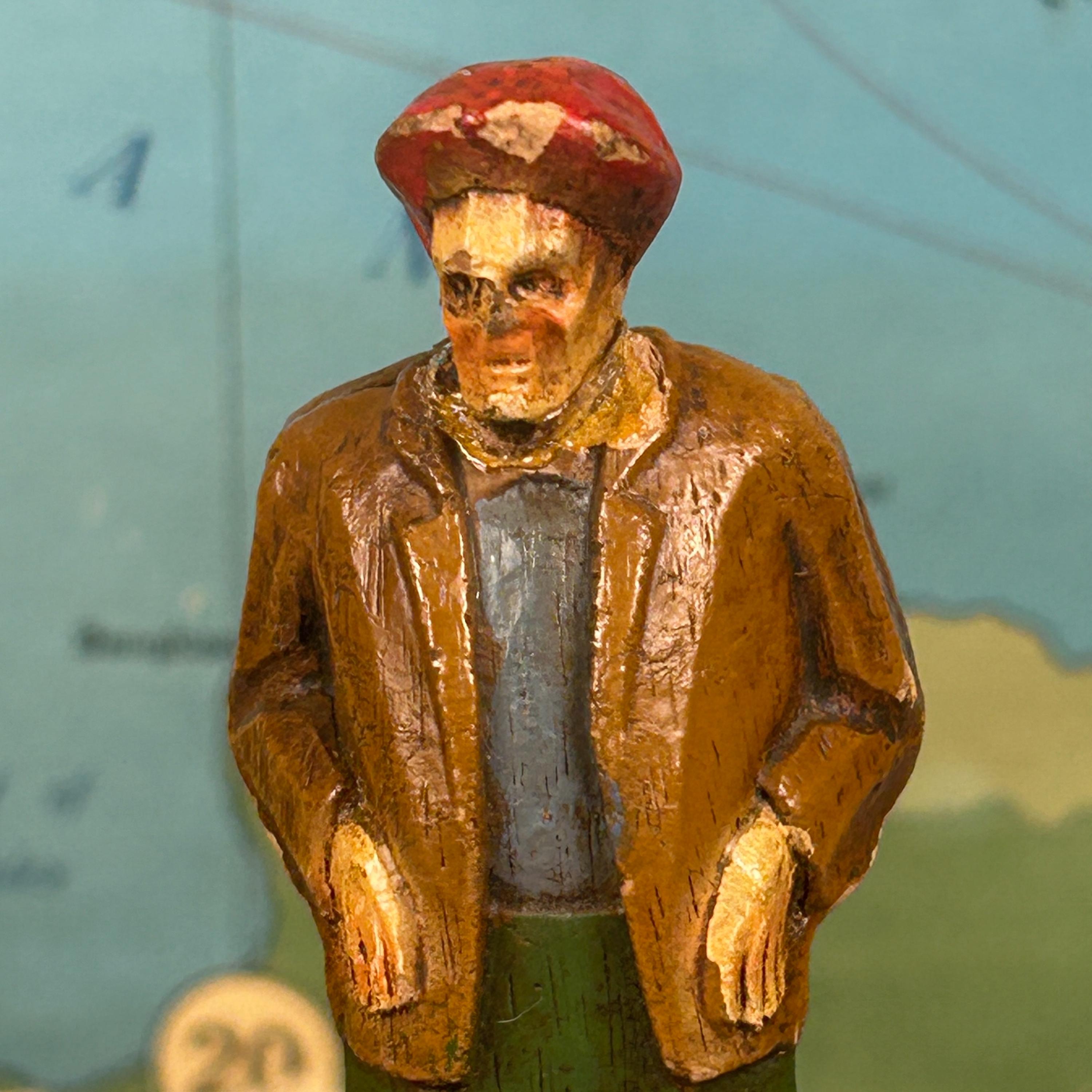 Discover this unique hand-carved old man sculpture, featuring a charming figure donned in a red hat, jacket, and pants. Artisan crafted from high-quality wood, this one-of-a-kind piece of art brings warmth and character to any space. Ideal for collectors or as a standout decorative item, this unsigned artisan creation showcases meticulous craftsmanship and timeless appeal. Elevate your home décor with this delightful sculpture that captures the essence of artistry and individuality!