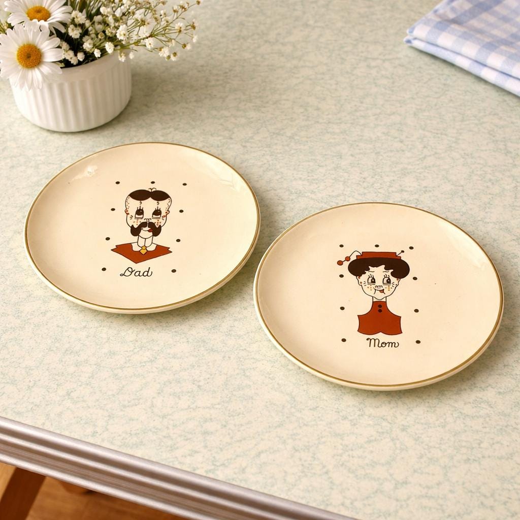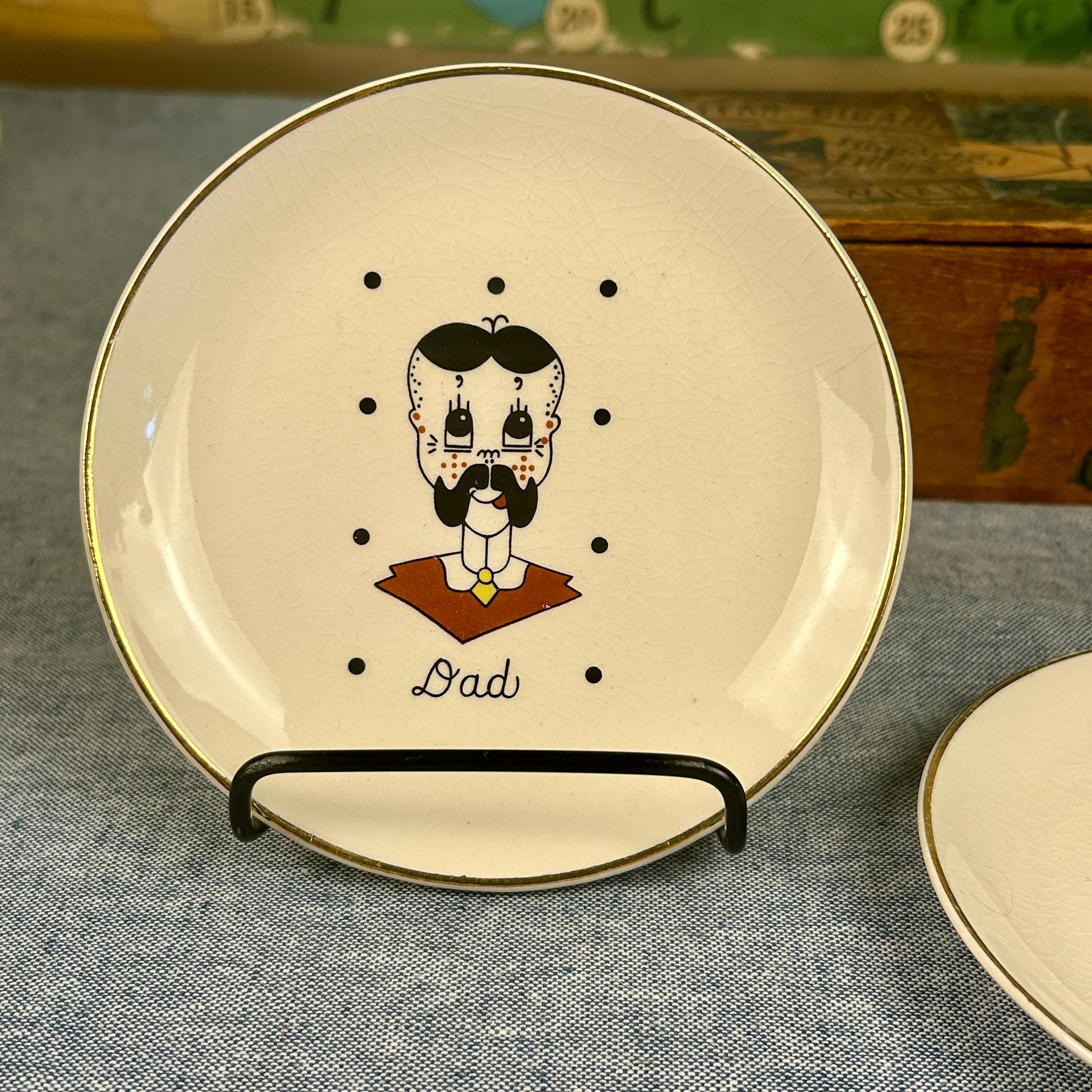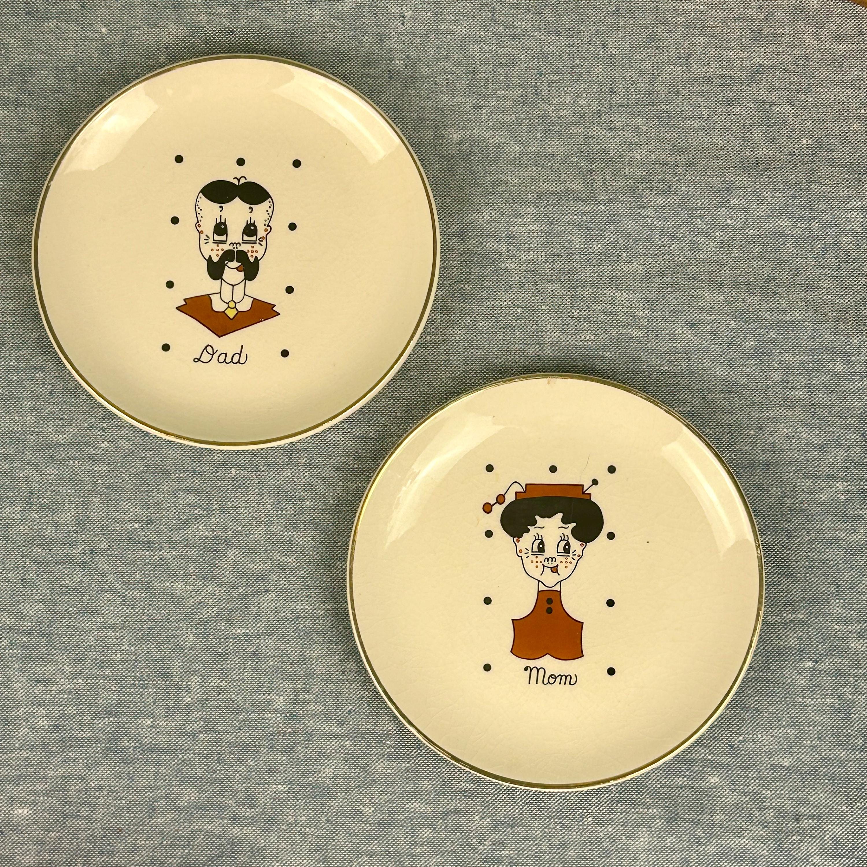 Discover a charming Vintage 50s Set of 2 decorative plates featuring hilarious Mom and Dad illustrations! These 7" plates are not just functional—they’re a delightful conversation starter. Adorned with a stunning 22 karat gold rim, they add a touch of elegance to any home decor. Each plate is in excellent condition with just the right amount of crazing, making them perfect for collectors or as a unique gift. Bring a piece of nostalgia into your space with this unique set! 🥳✨