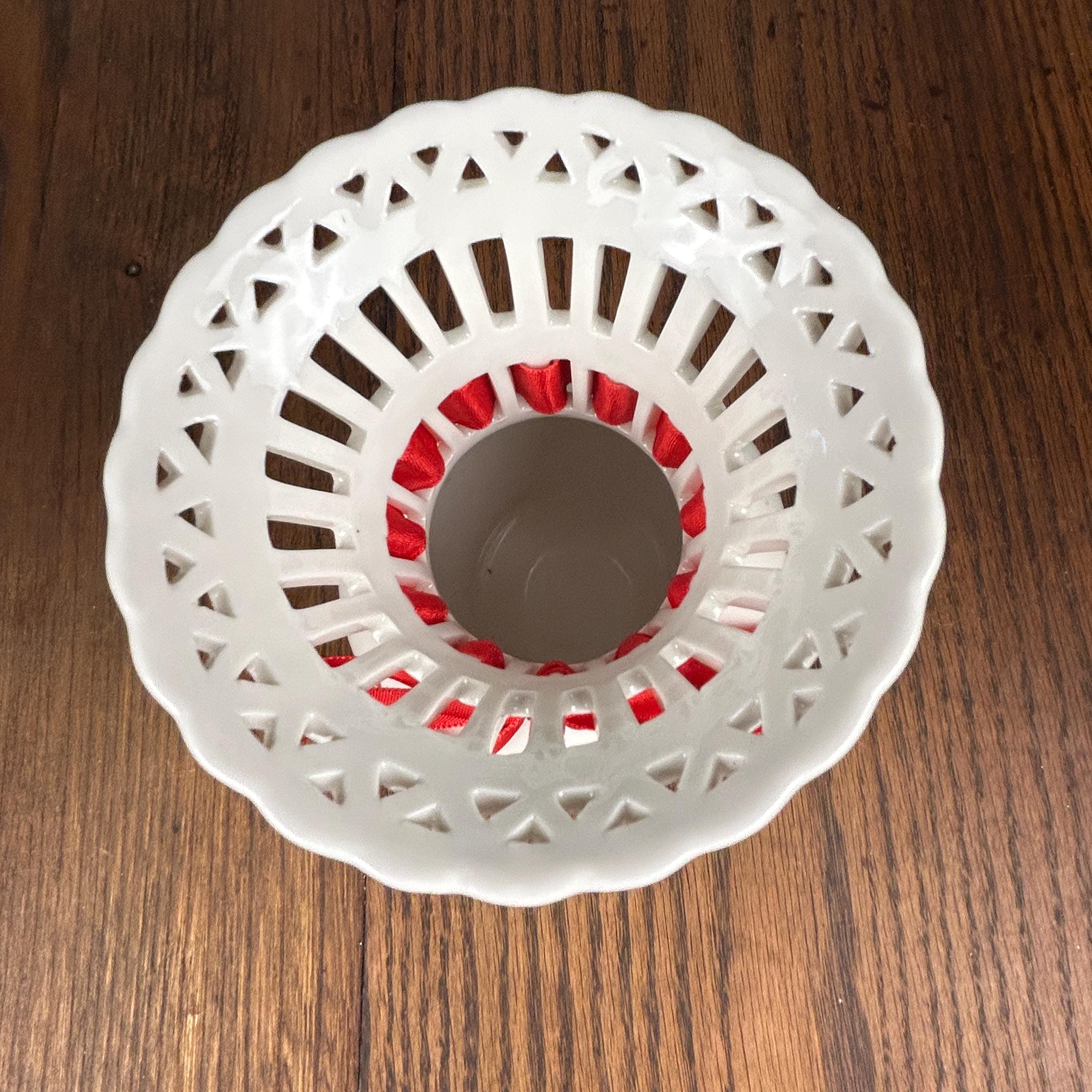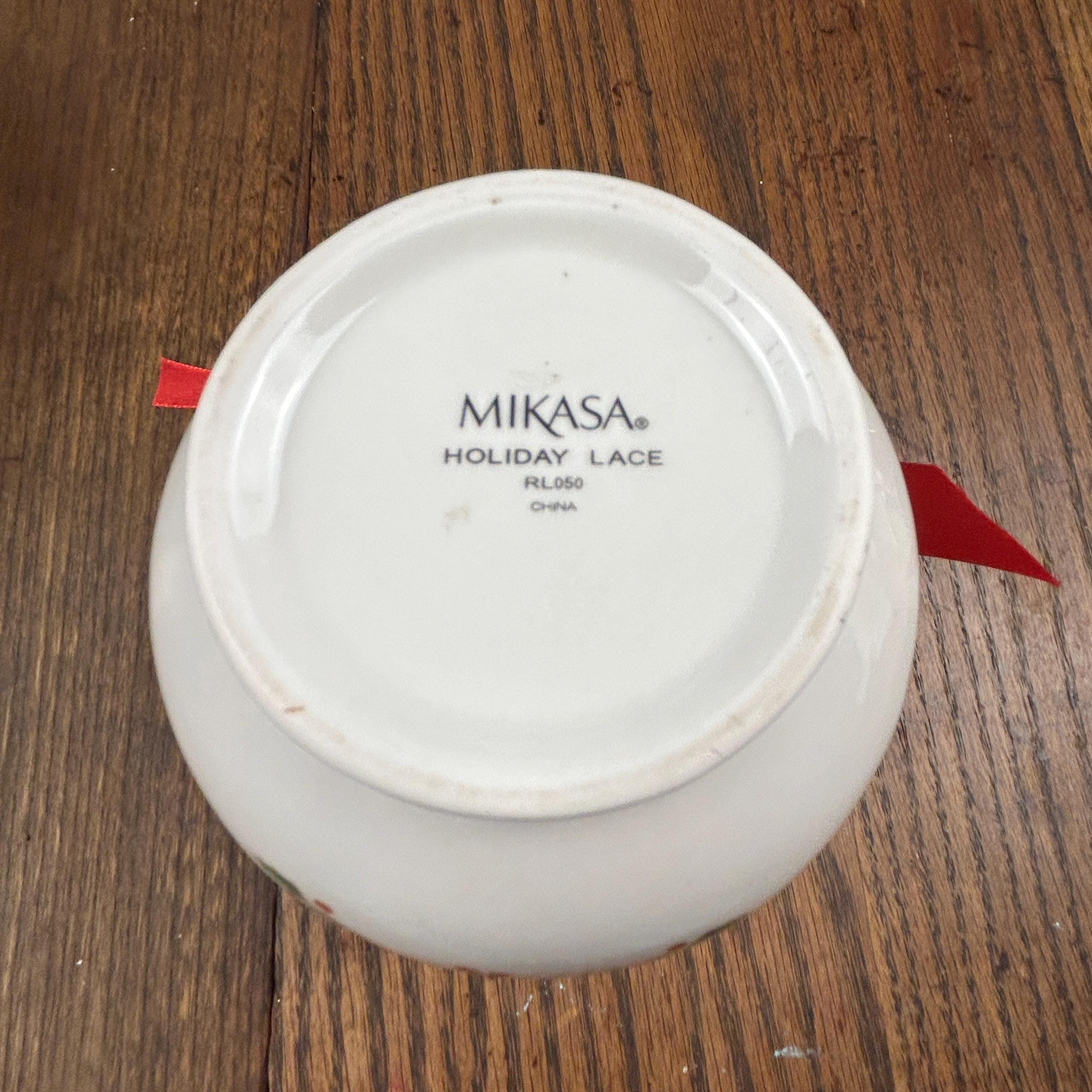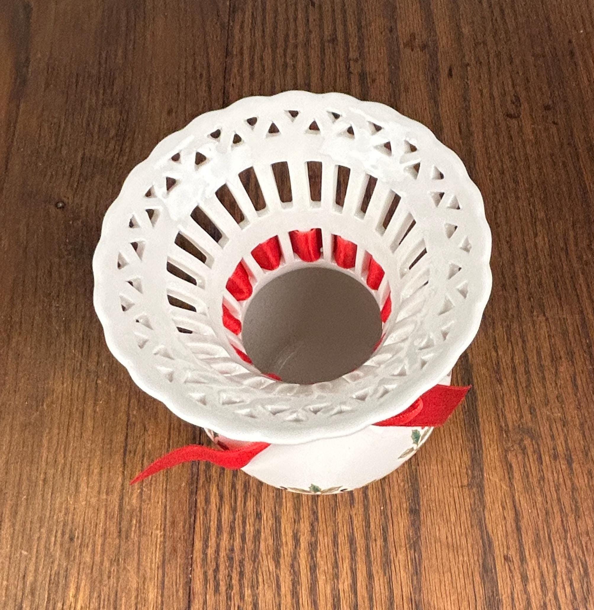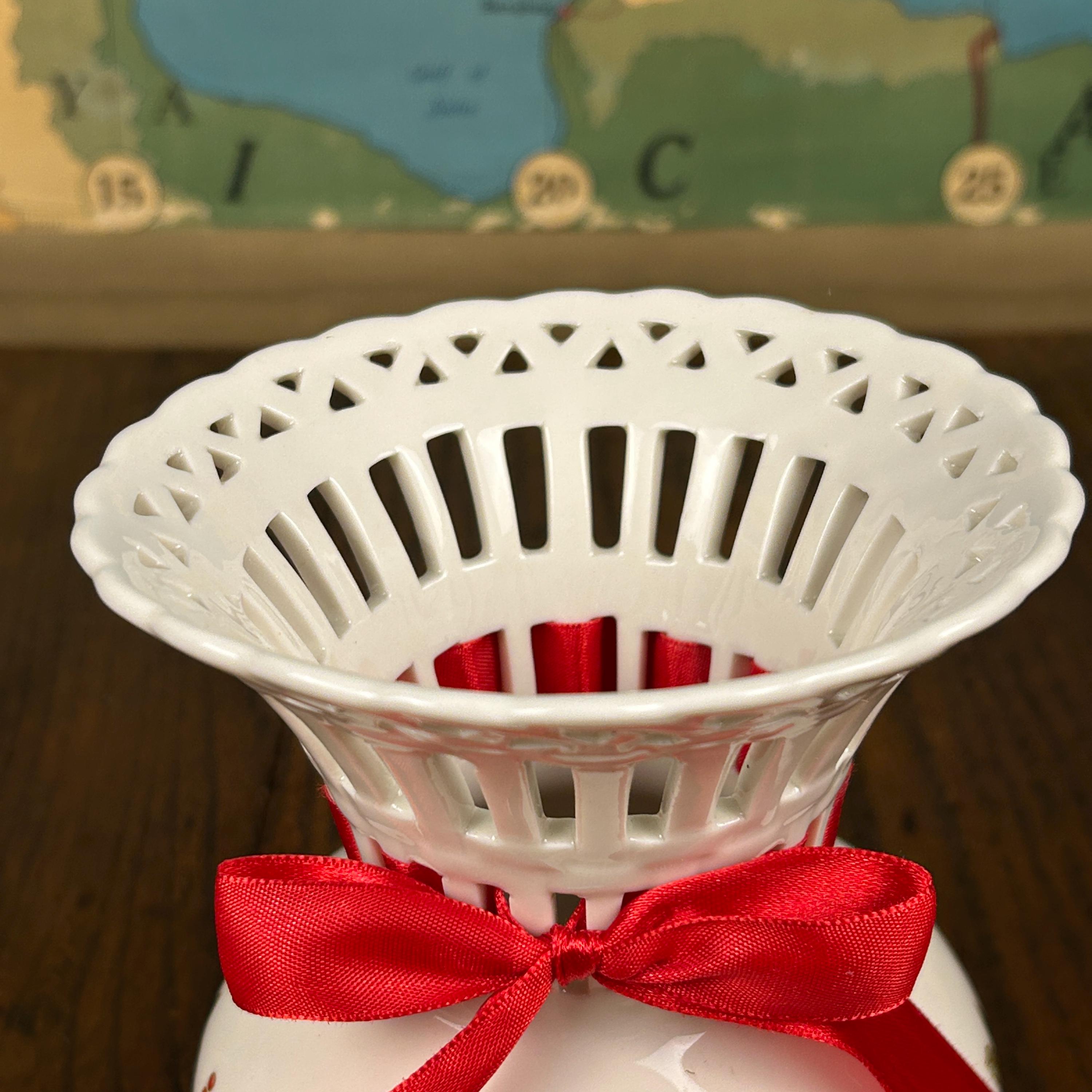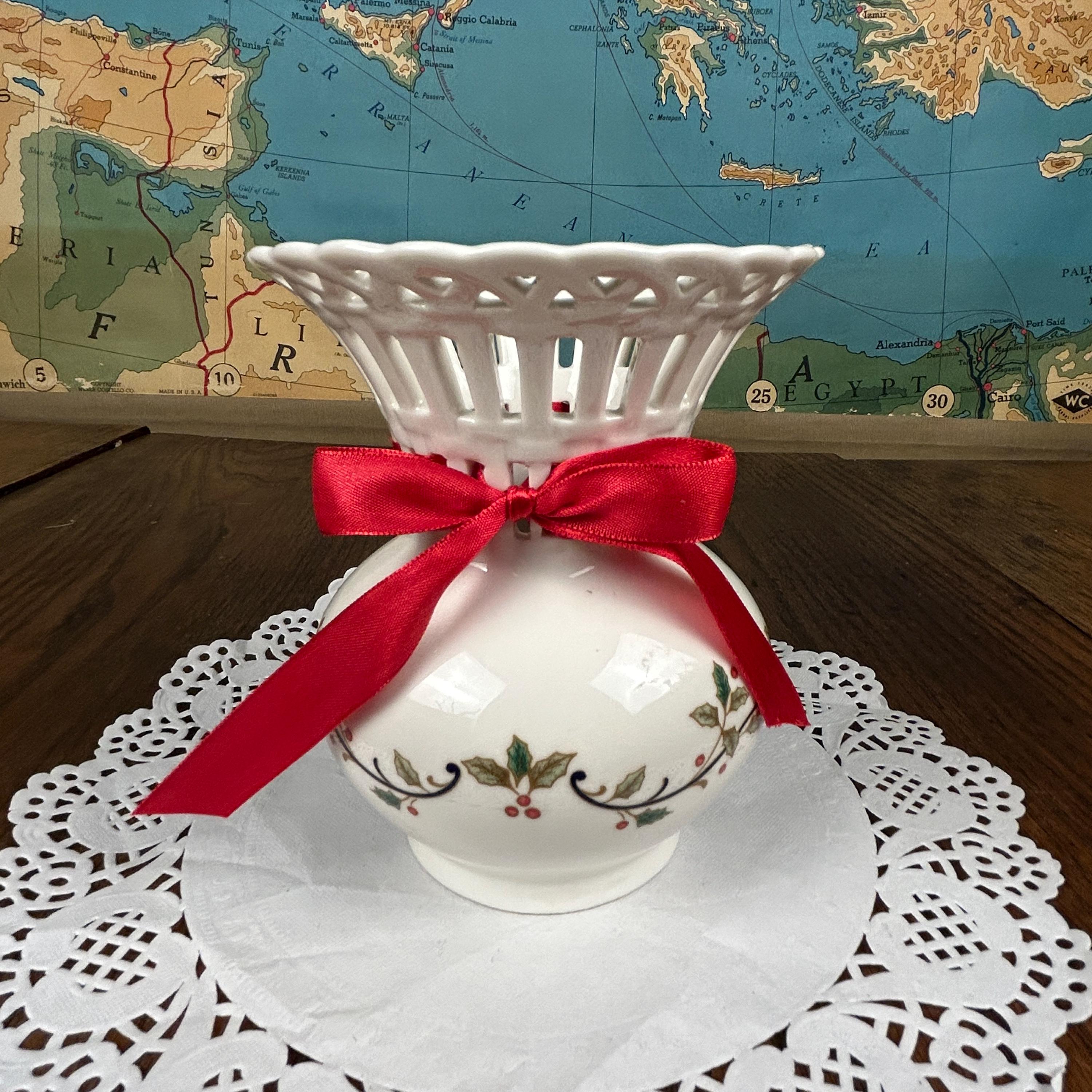 Vintage Mikasa Porcelain Christmas Holiday Lace Cut Out 6" Holly Theme Vase