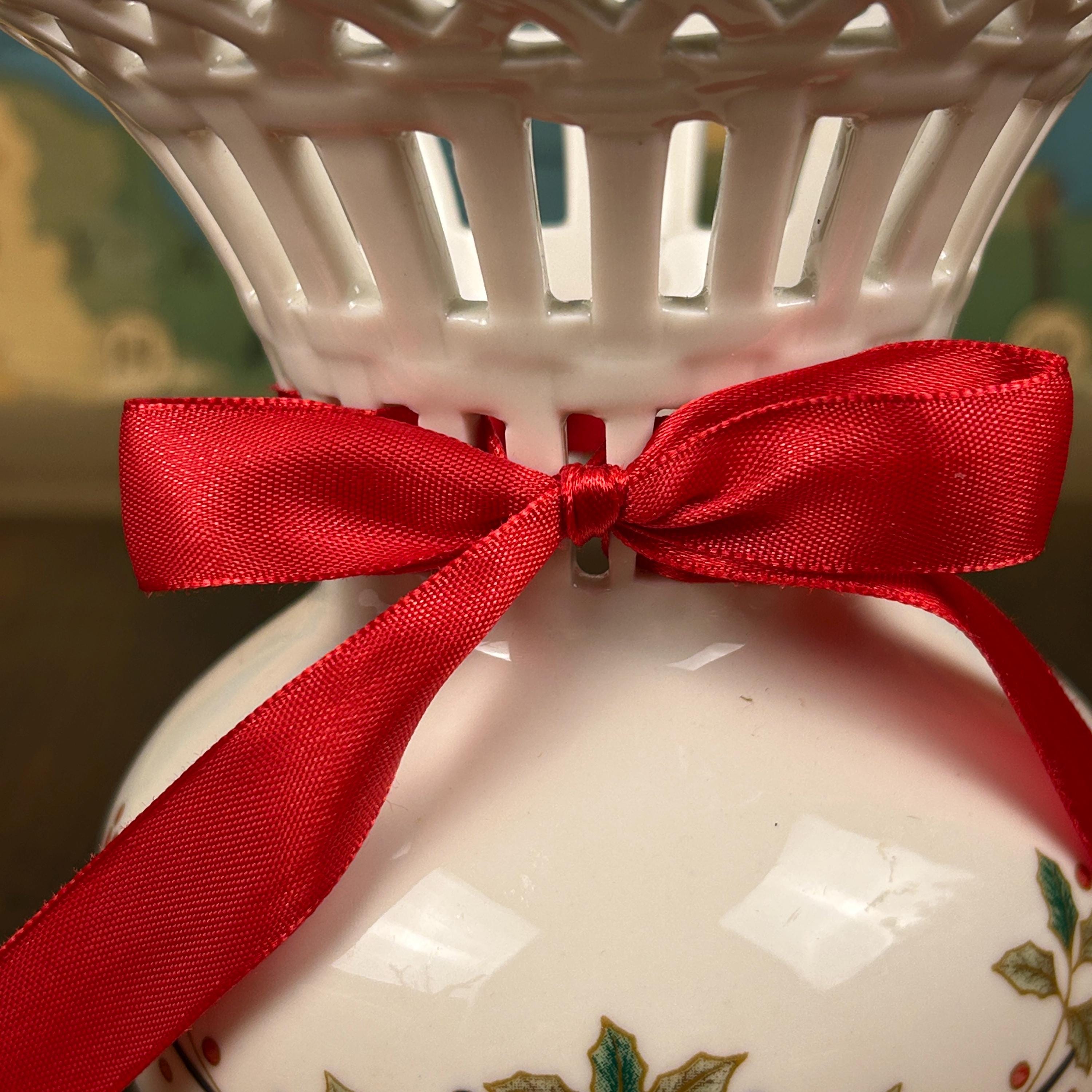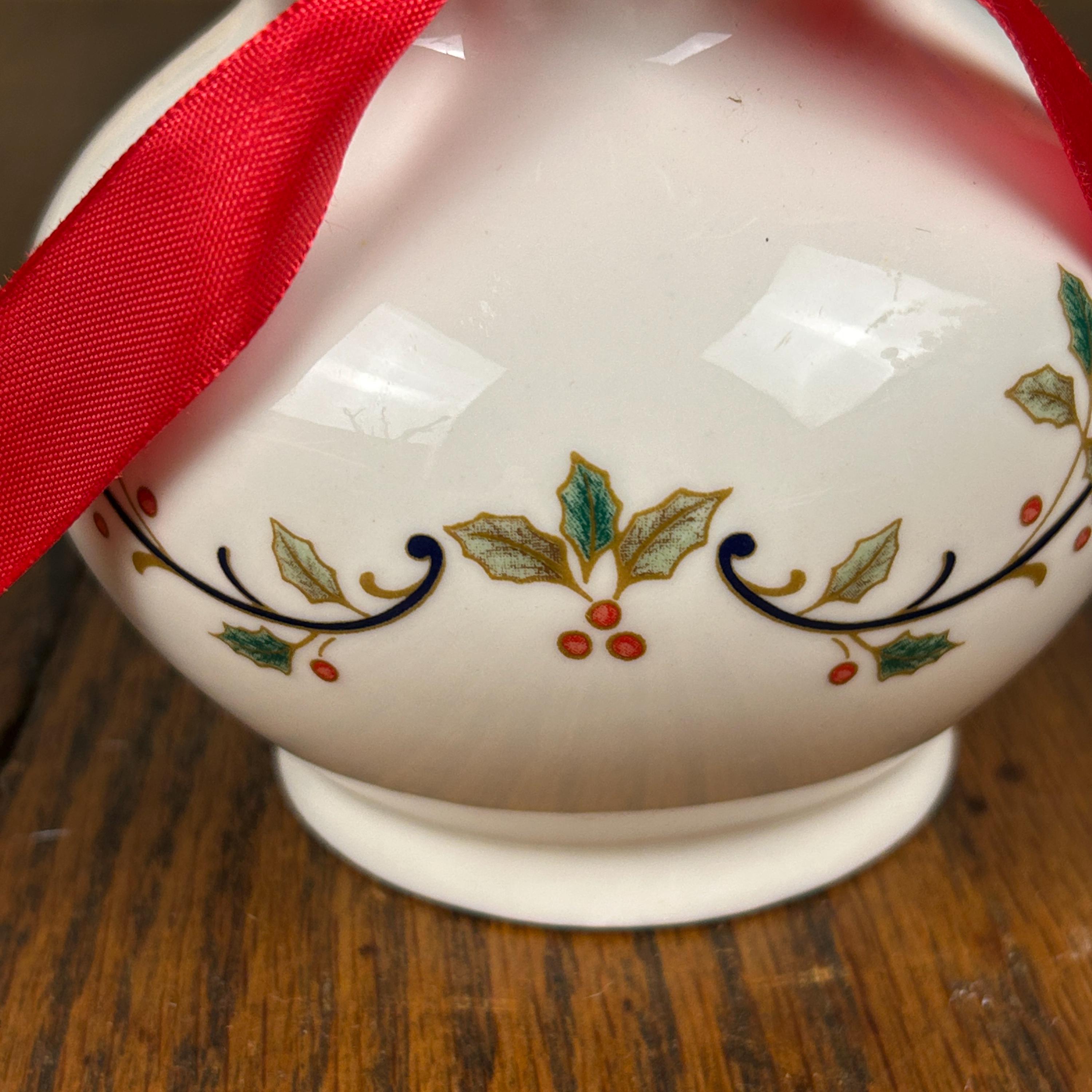 Get into the festive spirit with this beautiful vintage Mikasa porcelain vase. The intricate lace cutouts add a touch of elegance to this round shaped vase, which features a holly theme that’s perfect for Christmas. Measuring 6 inches in length, this small vase is made from high-quality porcelain and finished with a glossy coat for a stunning look that will enhance any room. The contemporary style of this licensed reproduction vase makes it a great addition to any collection of decorative collectibles. The white color of the vase complements the intricate holly design, while the features of this vase include its durability and versatility. This vase was manufactured in China in the 1990s and is a must-have for anyone looking to add a touch of holiday cheer to their home décor.