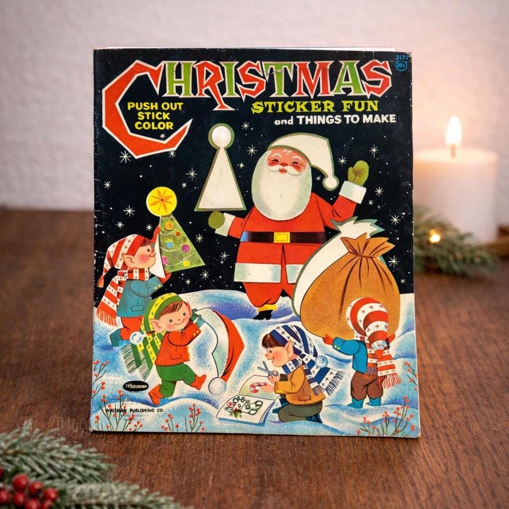 Dive into nostalgia with this charming 1967 Christmas Sticker Fun and Things to Make Children's Book by Whitman Publishing Co! Made in the U.S.A., this delightful vintage item is complete and in excellent condition, perfect for collectors and kids alike. Packed with fun stickers and creative activities, it's a wonderful way to celebrate the holiday season. Gift it to a loved one or keep it for yourself—either way, it’s sure to bring joy! Don't miss out on this timeless treasure!