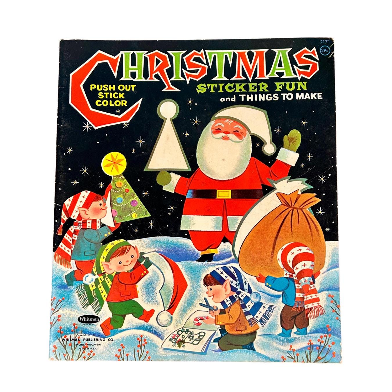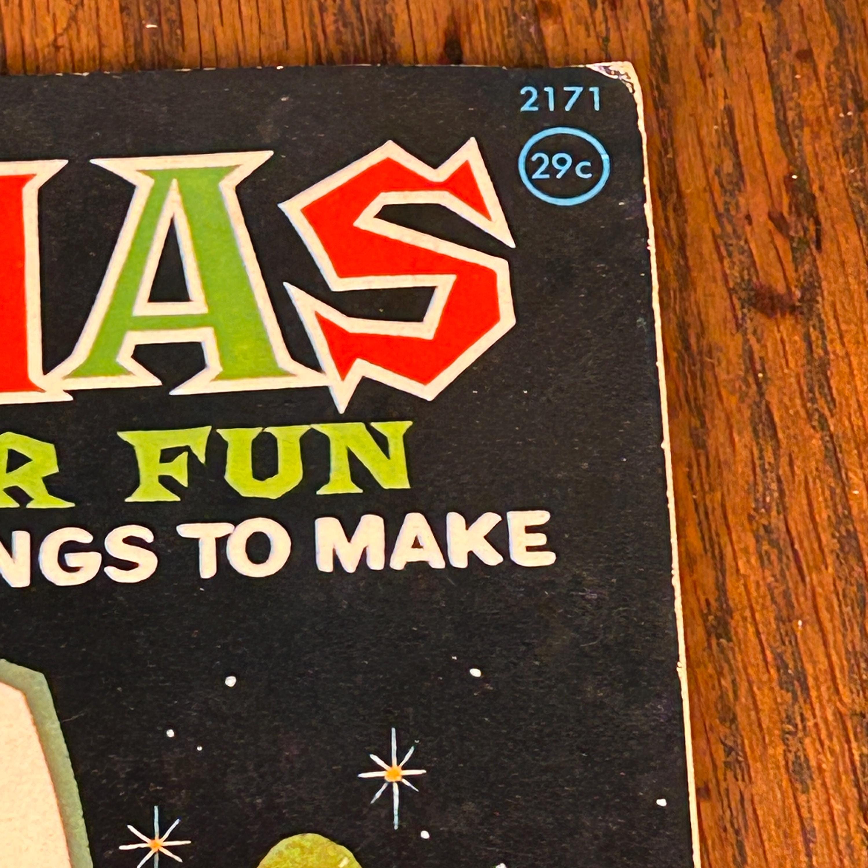 Includes, 'Make Your Own CHRISTMAS CARDS' and cut and fold 'ELVES AND SNOWMEN to decorate your table'. Original price was 29 cents. Book measures 12" x 10 1/4".