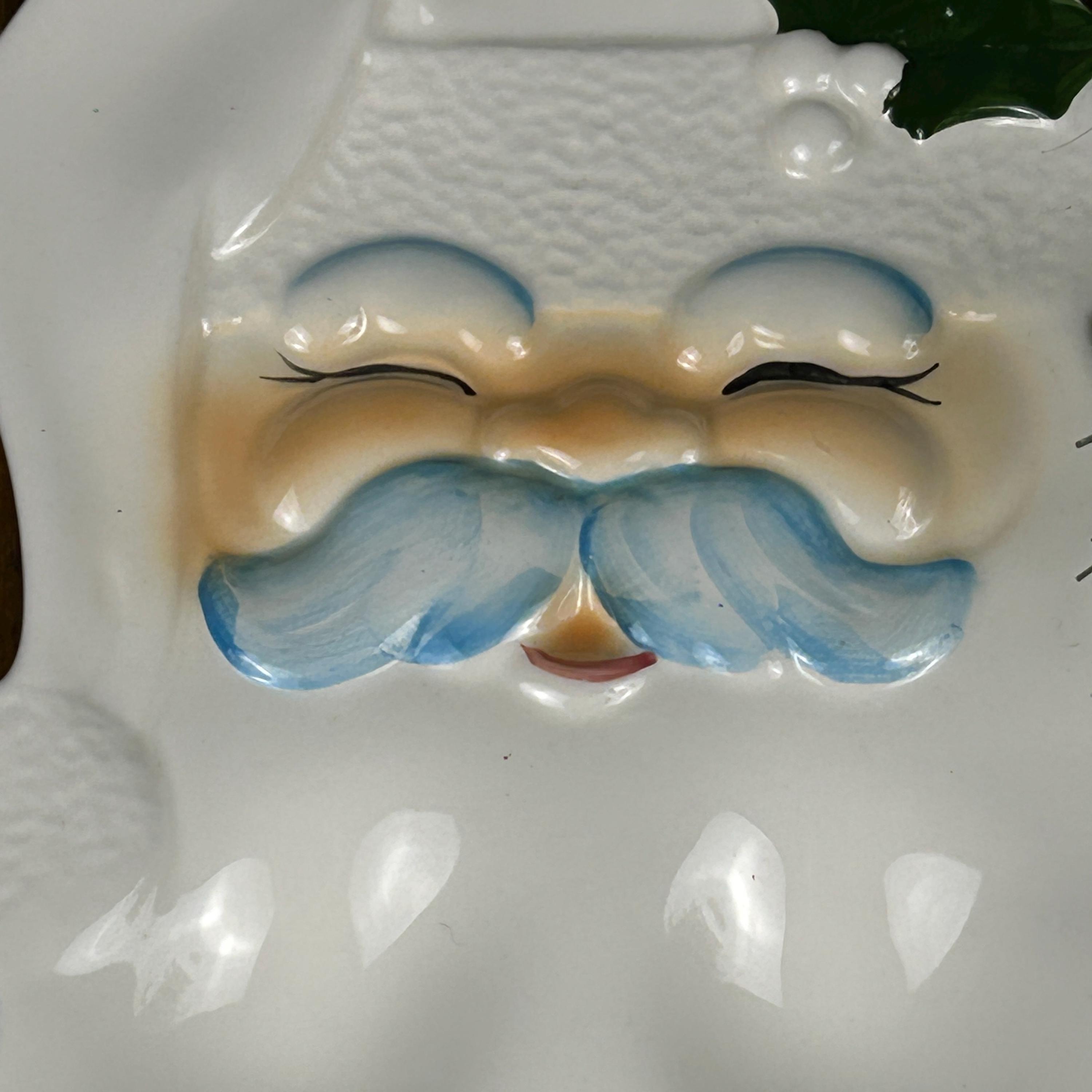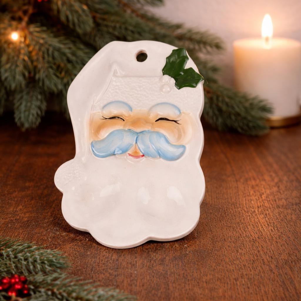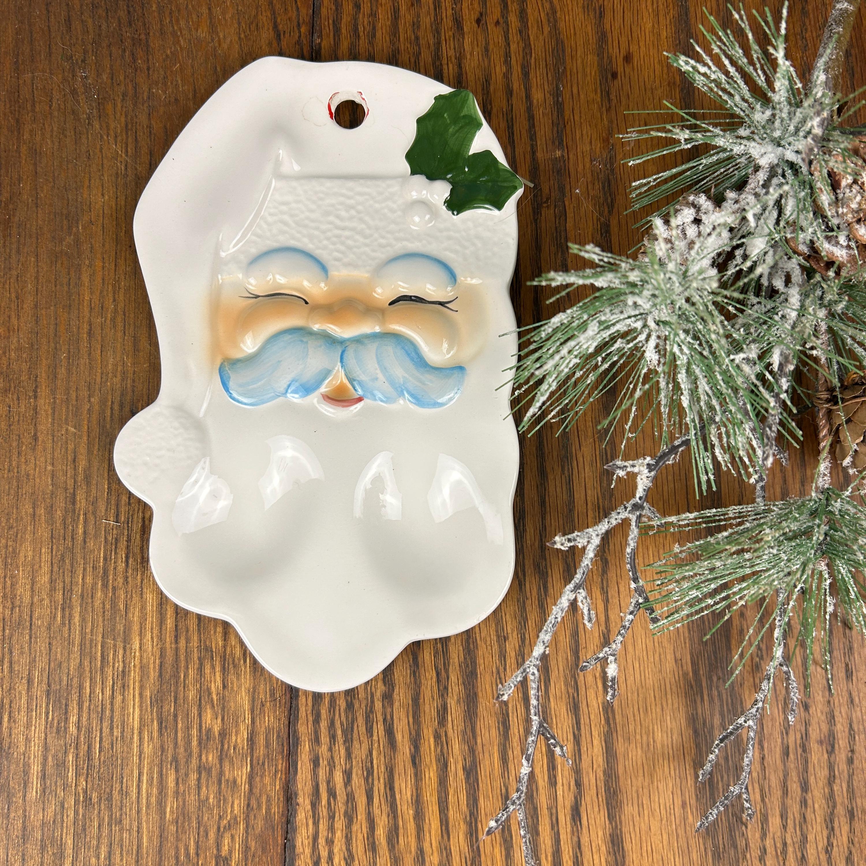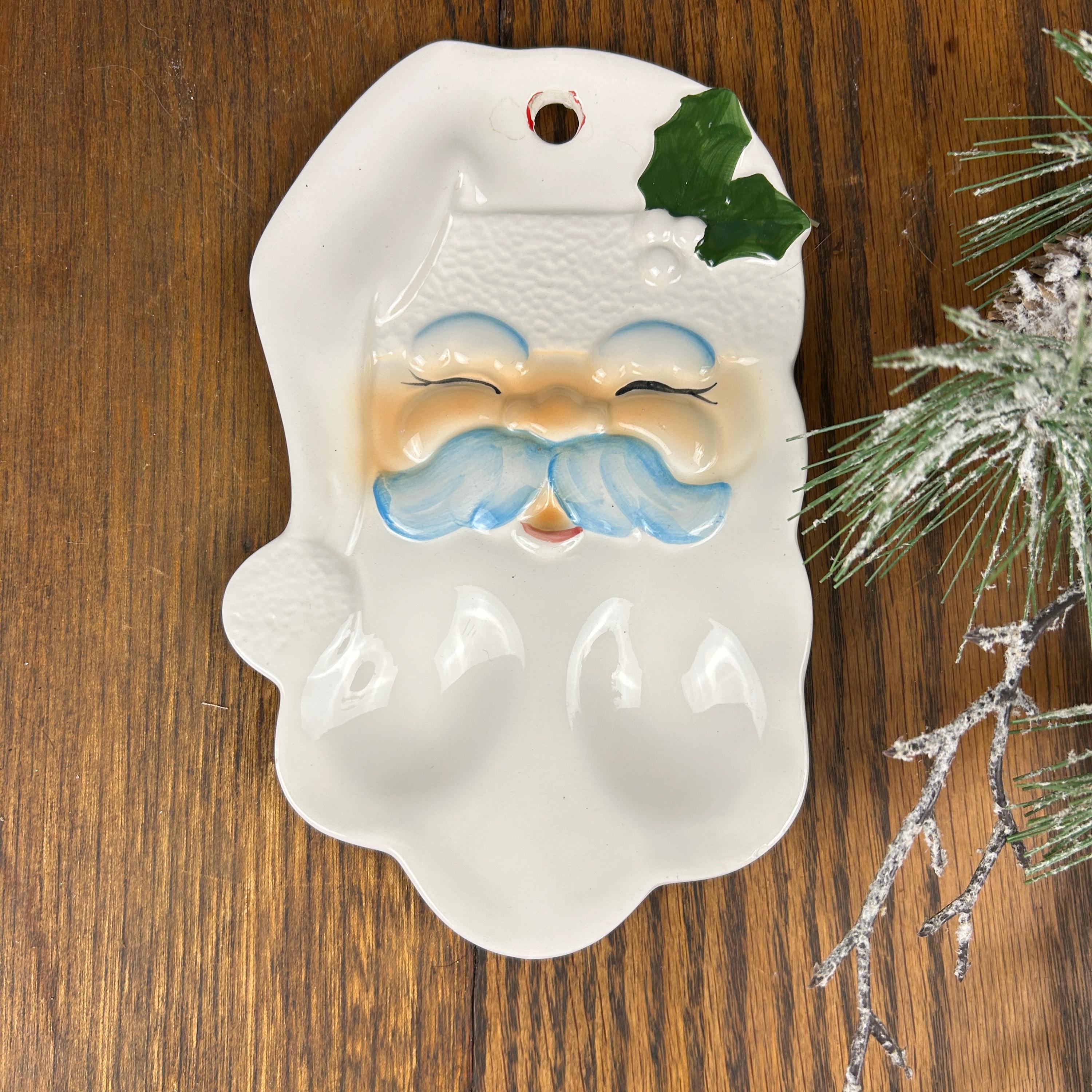 Vtg Enesco SANTA FACE Dish Spoon Rest/Wall Hanging. No makers mark. Possibly hand-painted or studio made from a mold.