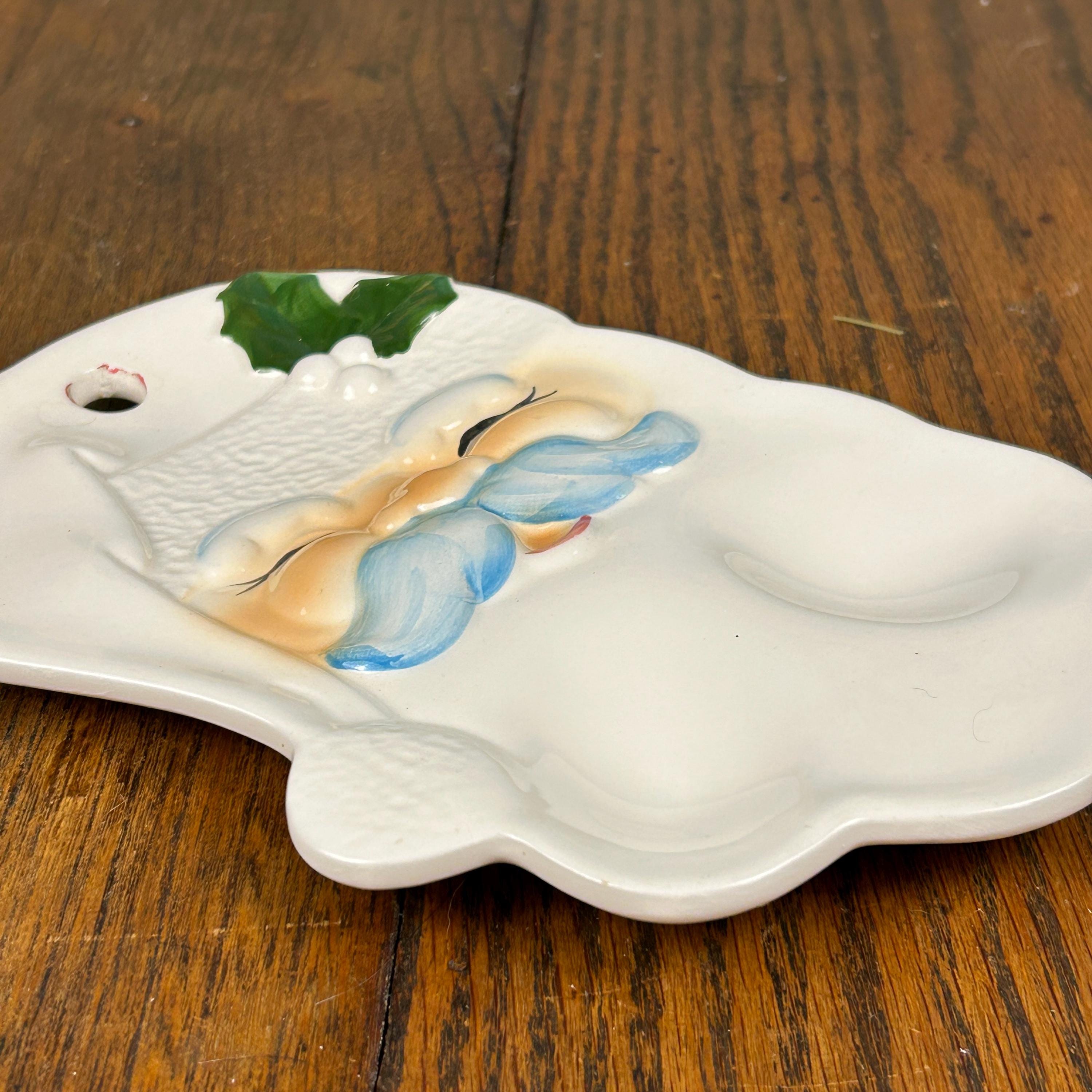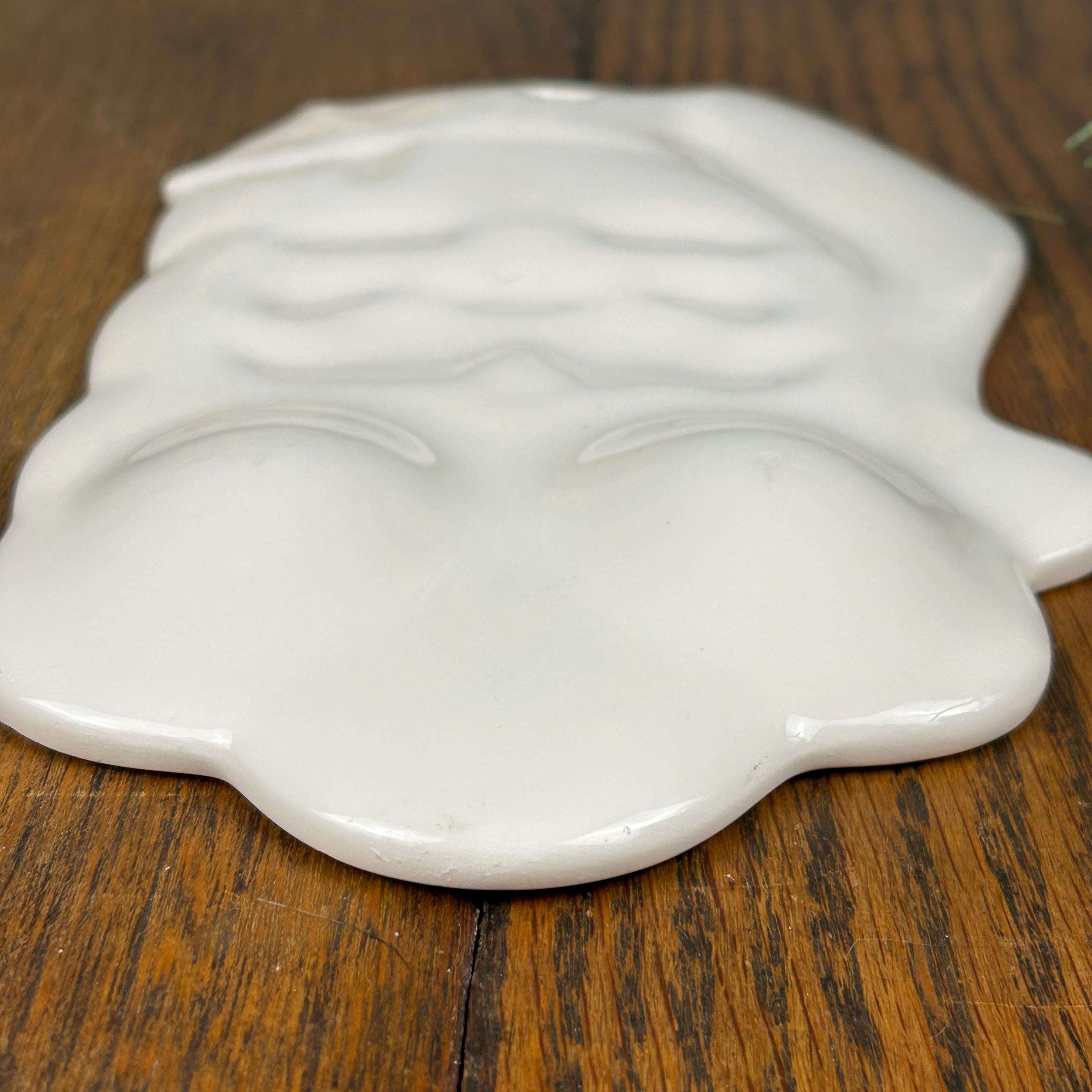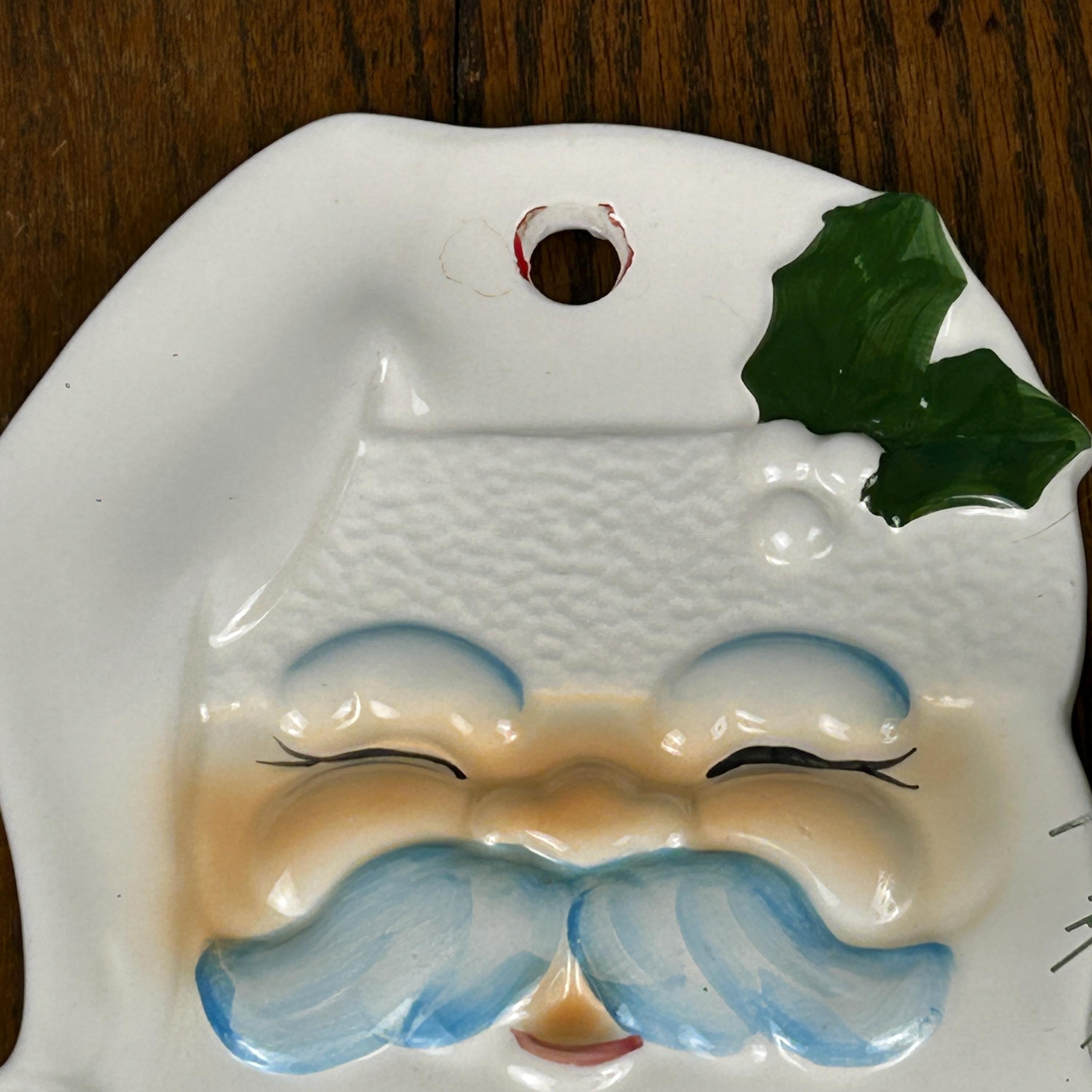 Vtg Enesco SANTA FACE Dish Spoon Rest/Wall Hanging. No makers mark. Possibly hand-painted or studio made from a mold.