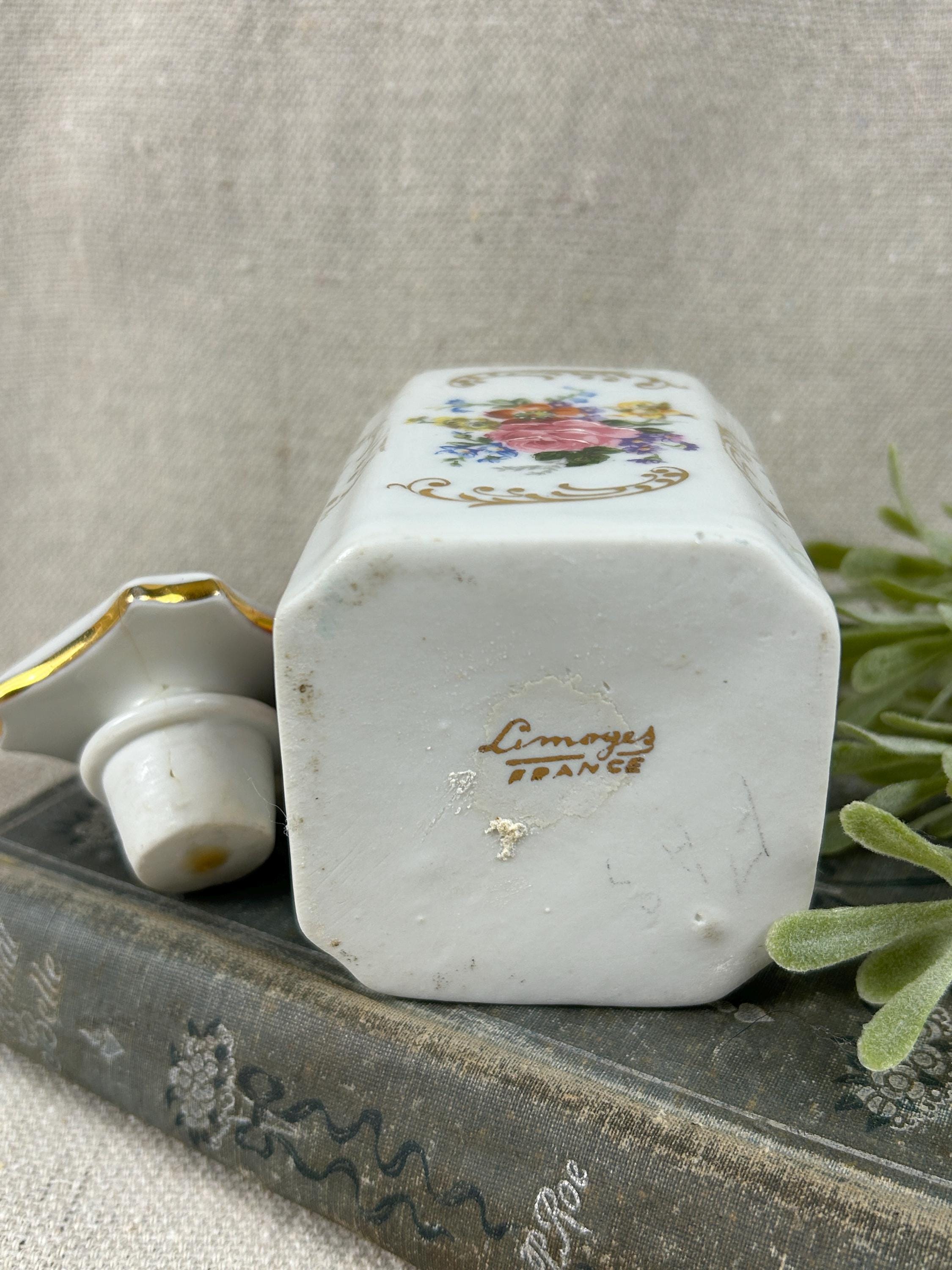 Beautiful display piece for a vanity, end table or vintage vignette. Bottom of bottle has 'Limoges France' marked on it in gold.