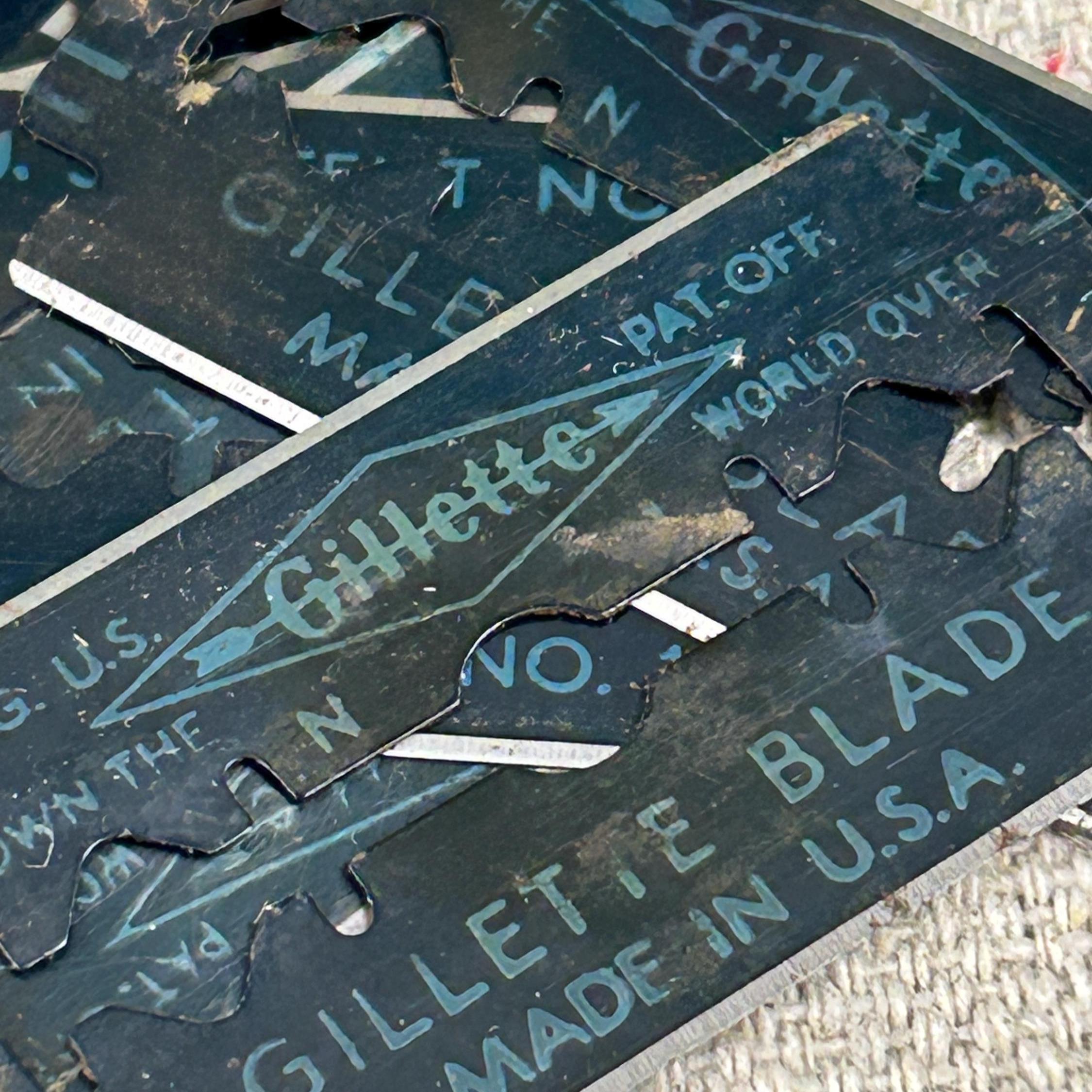 The item shown is a vintage Gillette Tech safety razor, which was a popular model first introduced in the 1930s.