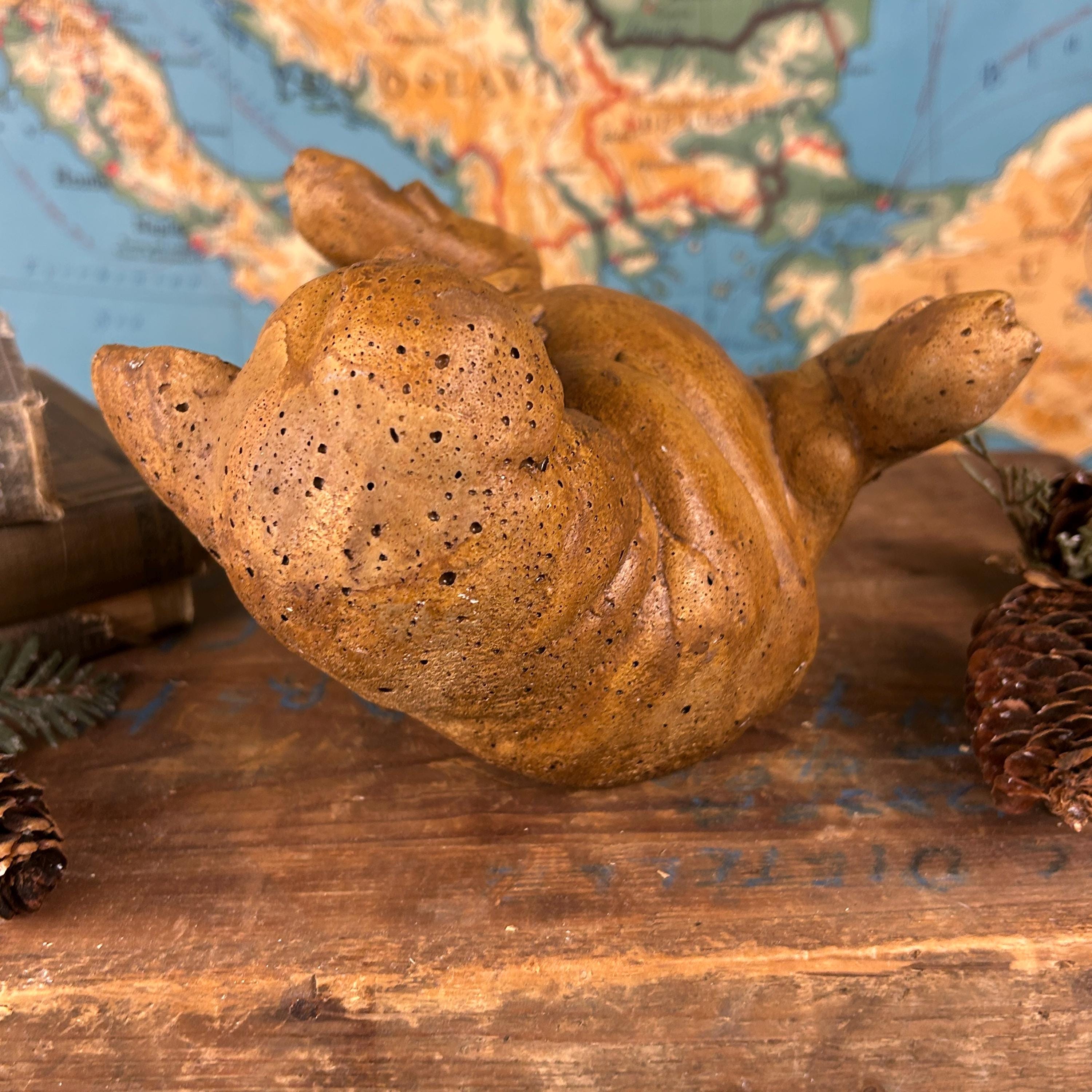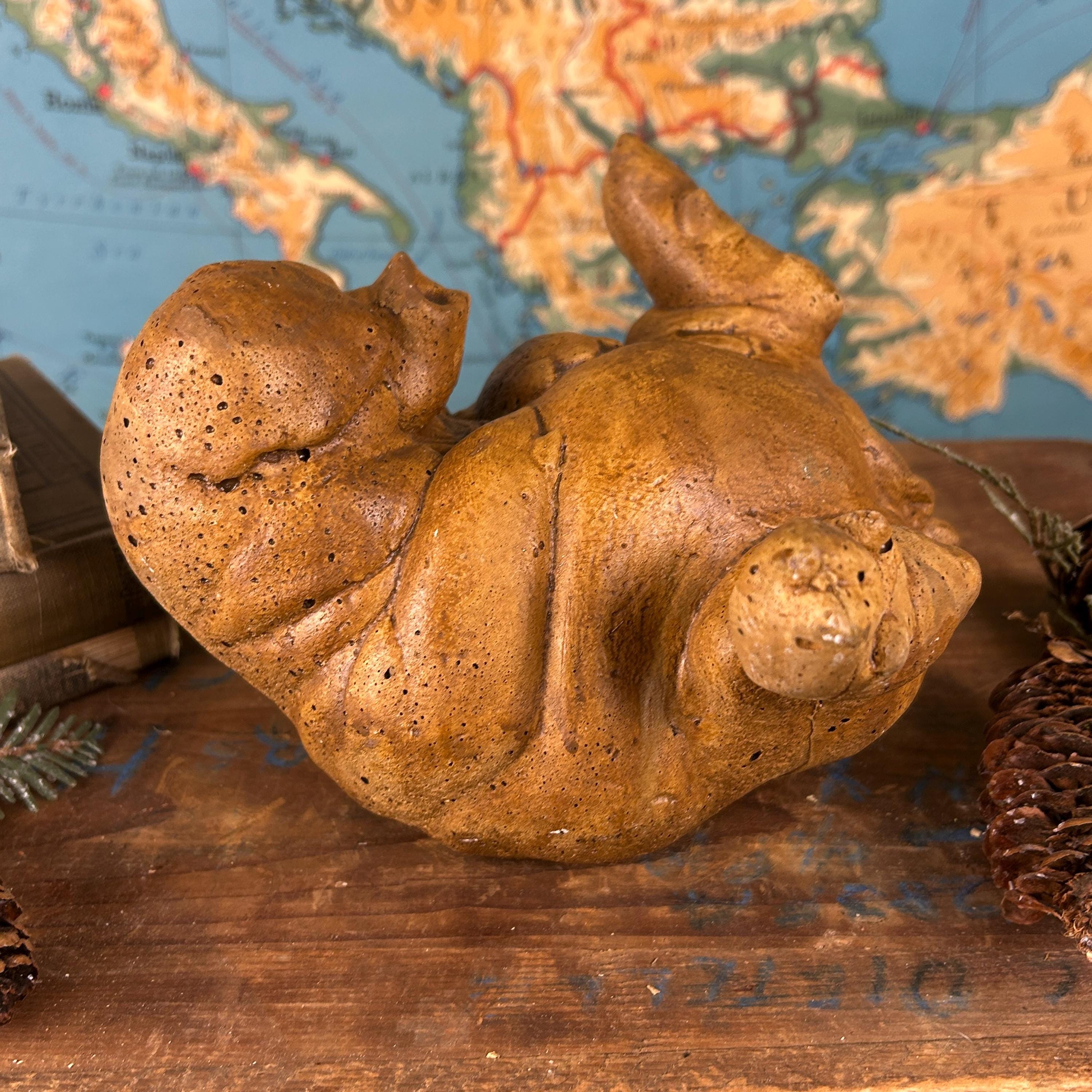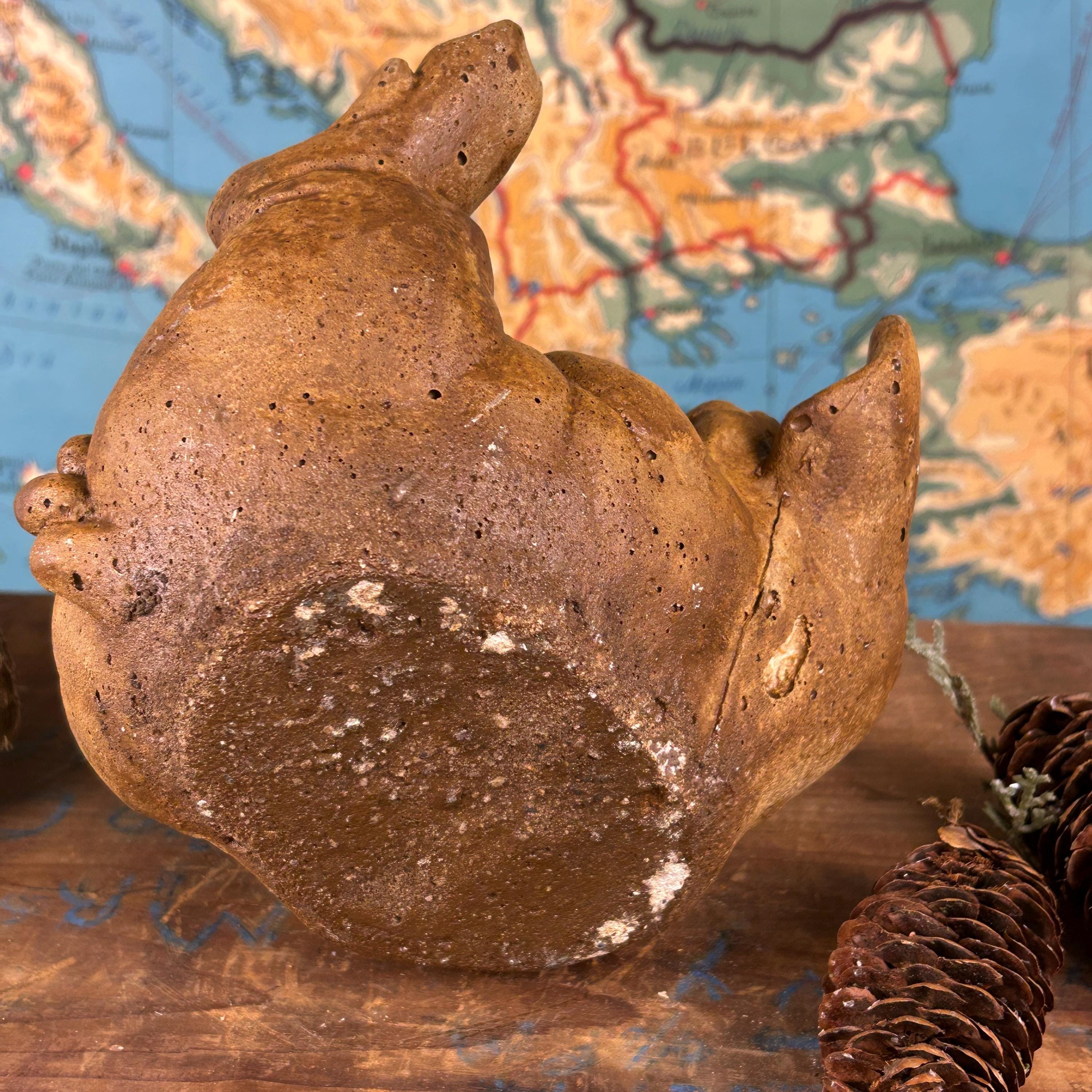 Such a fun piece for indoor or out! In excellent vintage condition. There is a crack along its back side which appears to have happened during casting. It does not in any way effect the overall design or quality.