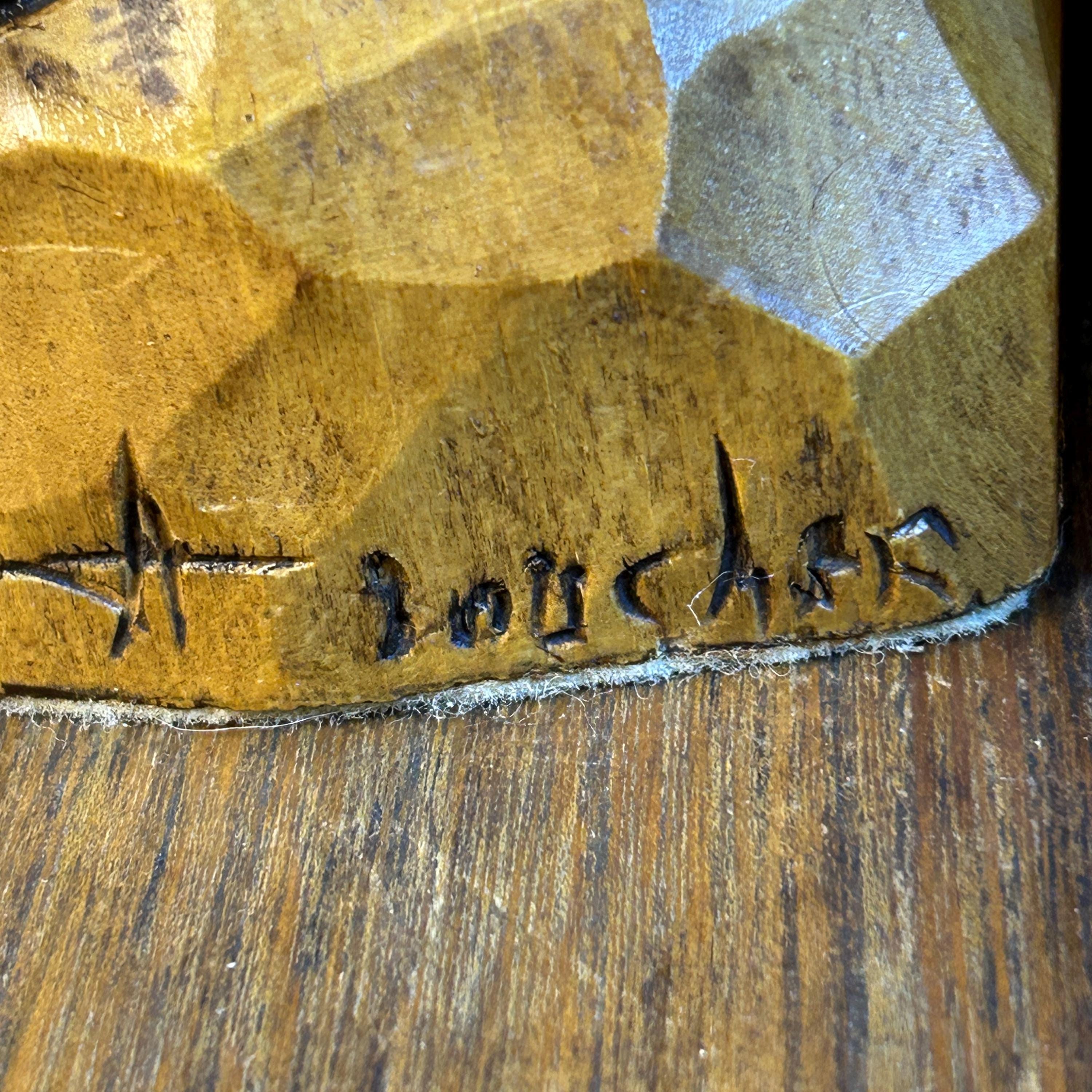 André Boucher was a Canadian folk artist, specifically a flat-plane woodcarver from Quebec, active in the 1970s. He is known for intricate, painted relief carvings and souvenir-style pieces, often depicting figures and scenes from Canadian life. His work includes relief carvings of subjects like blacksmiths, fishermen, and those involved in collecting maple sap.