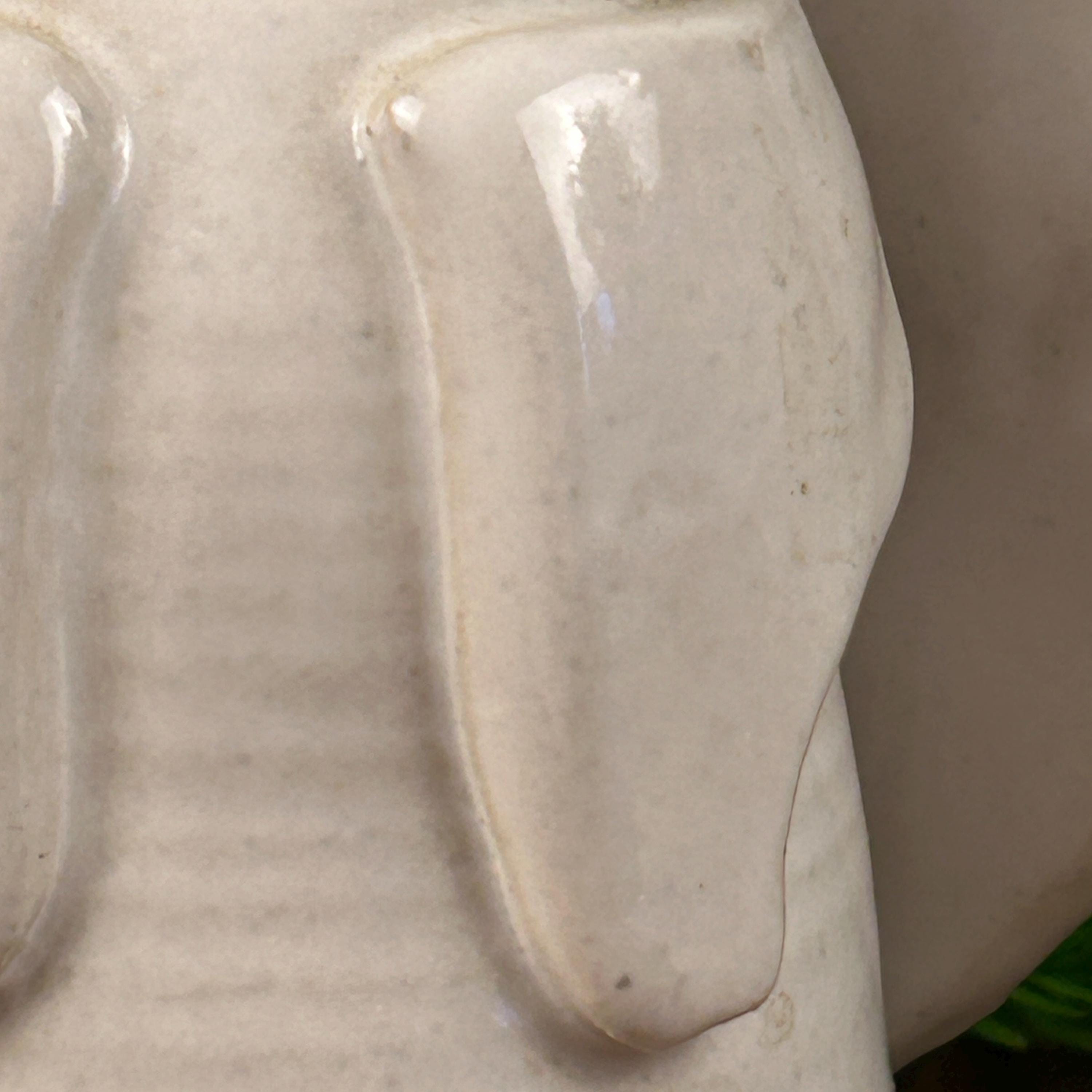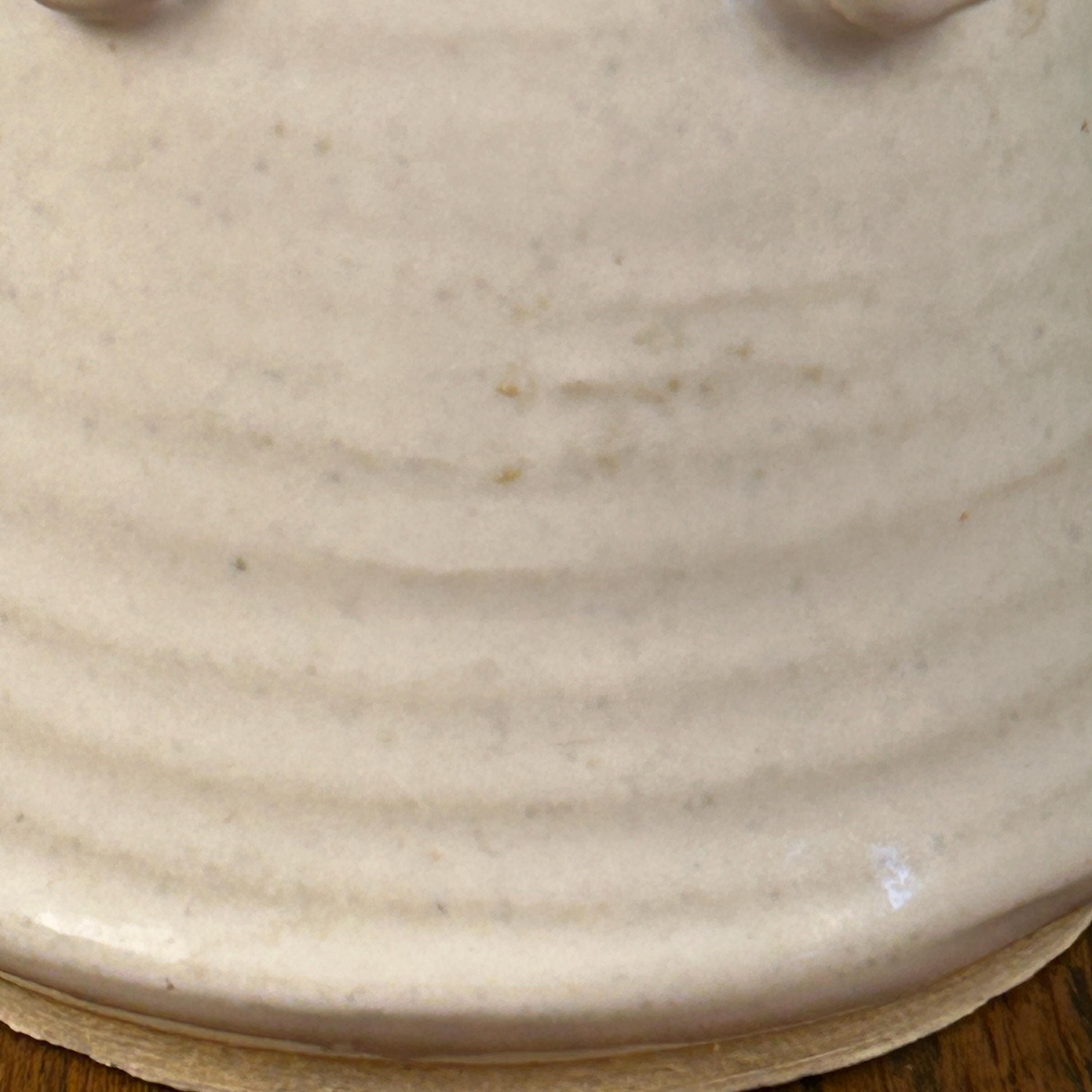 It is a collectible item. The piece features a light-colored, cream or white glaze with a distinct, minimalist design.