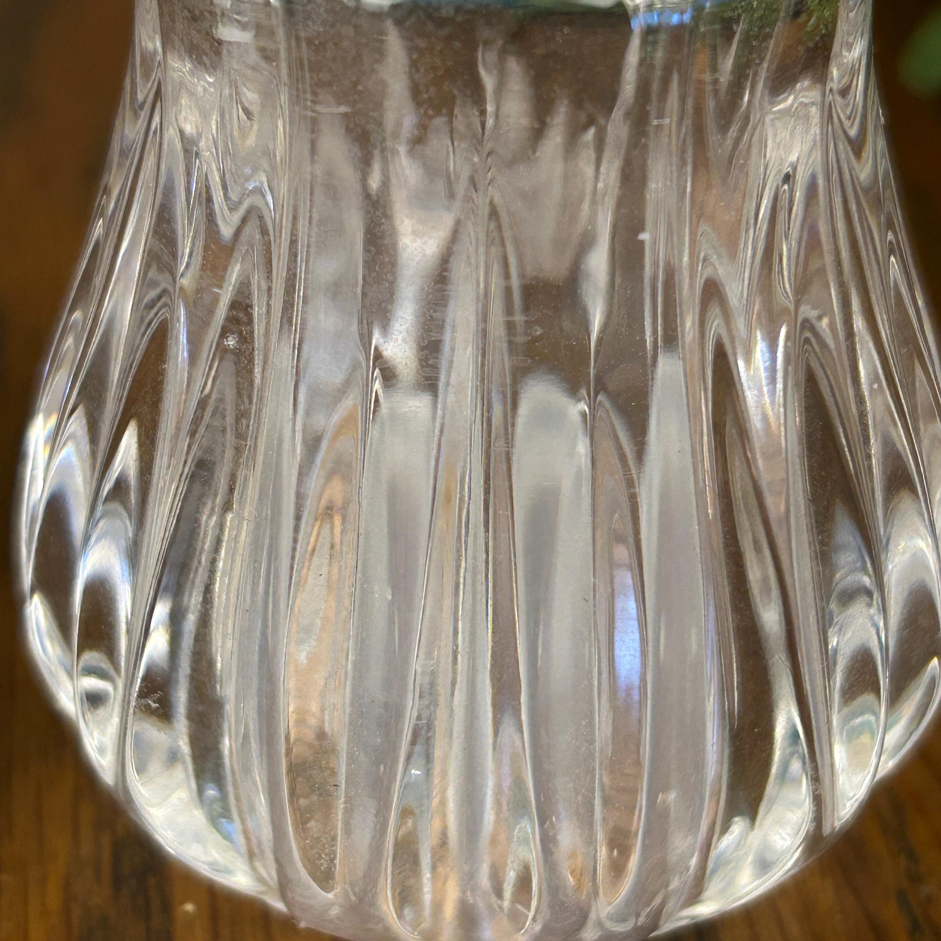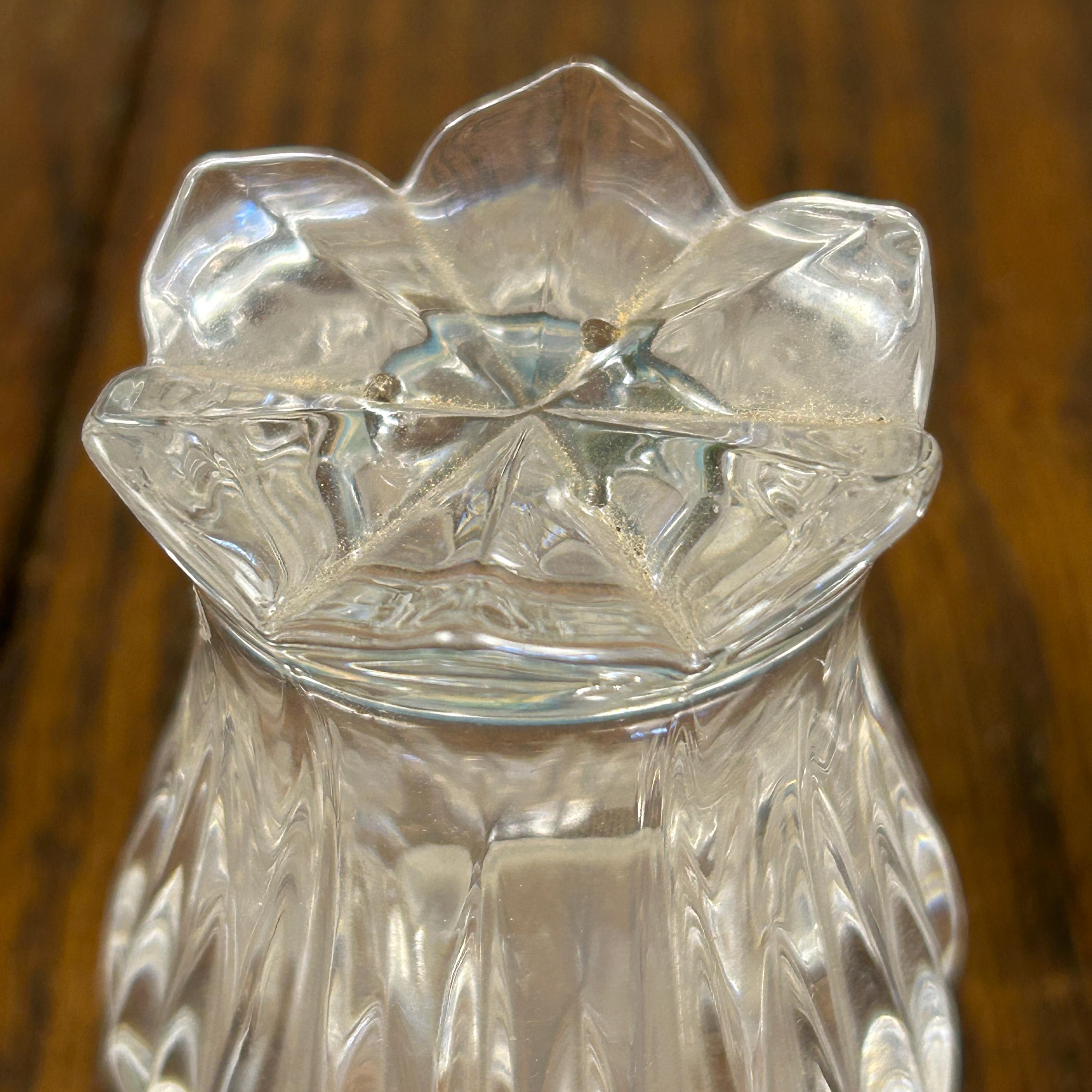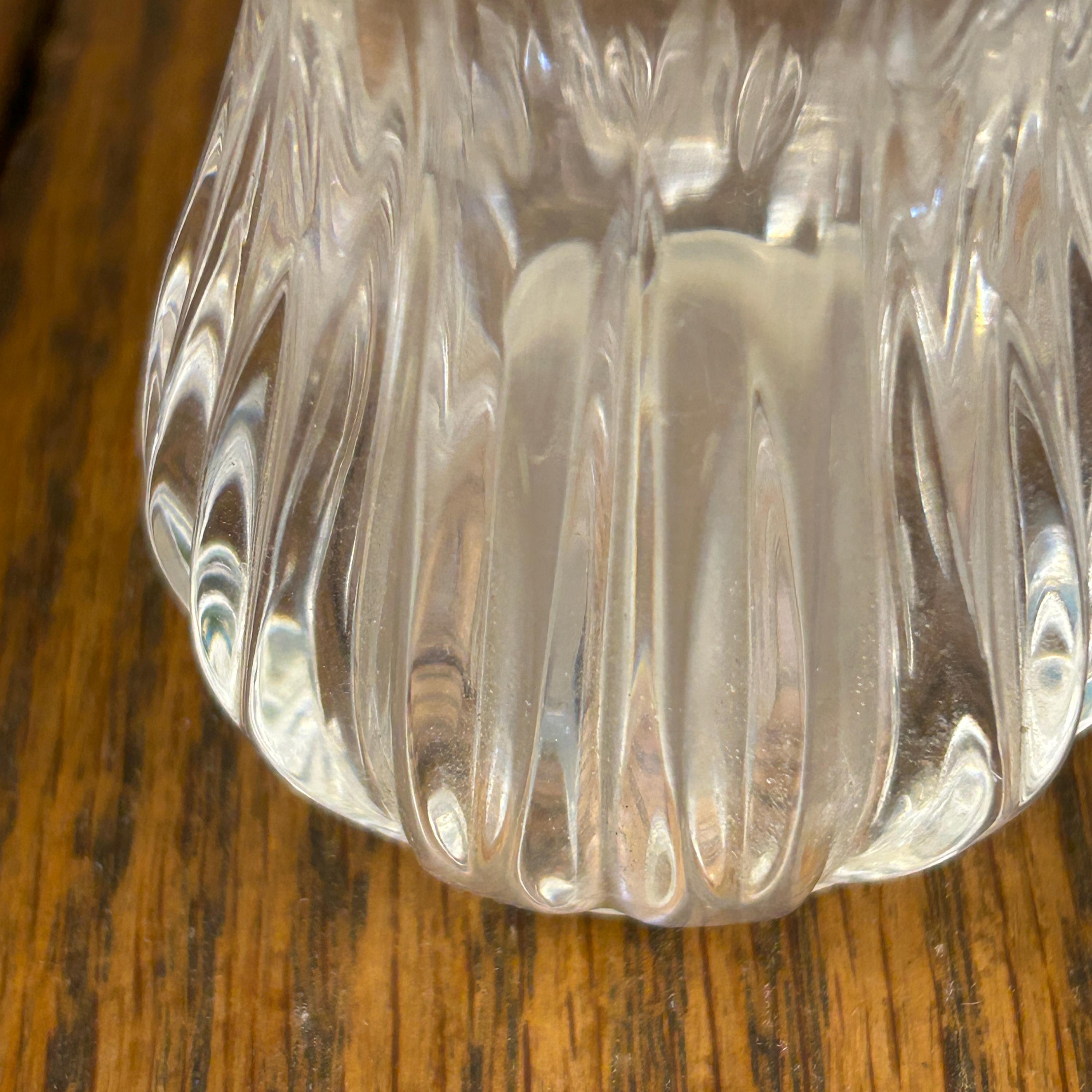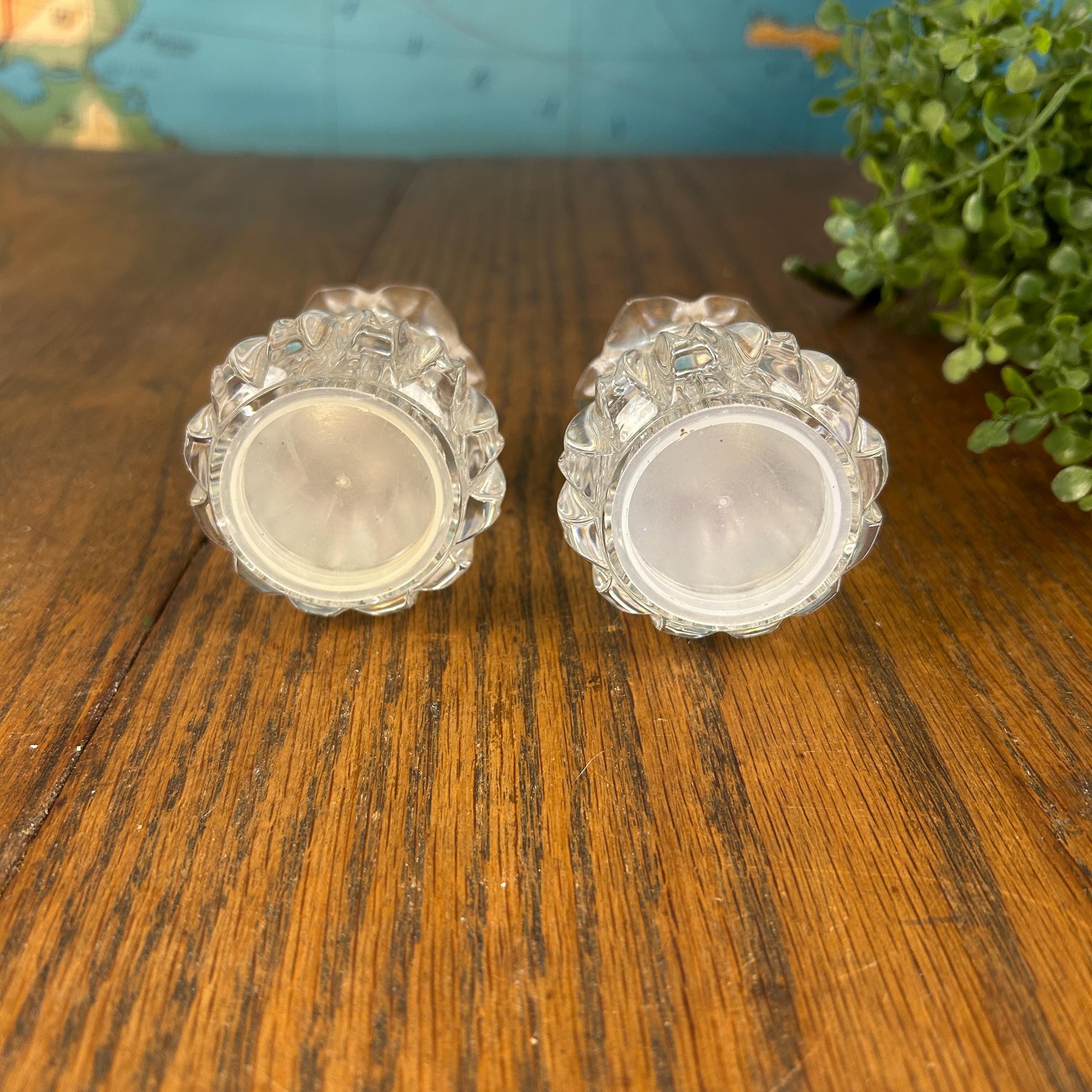 This is a pair of Gorham Crystal Lotus salt and pepper shakers. They are made of clear, cut lead crystal.