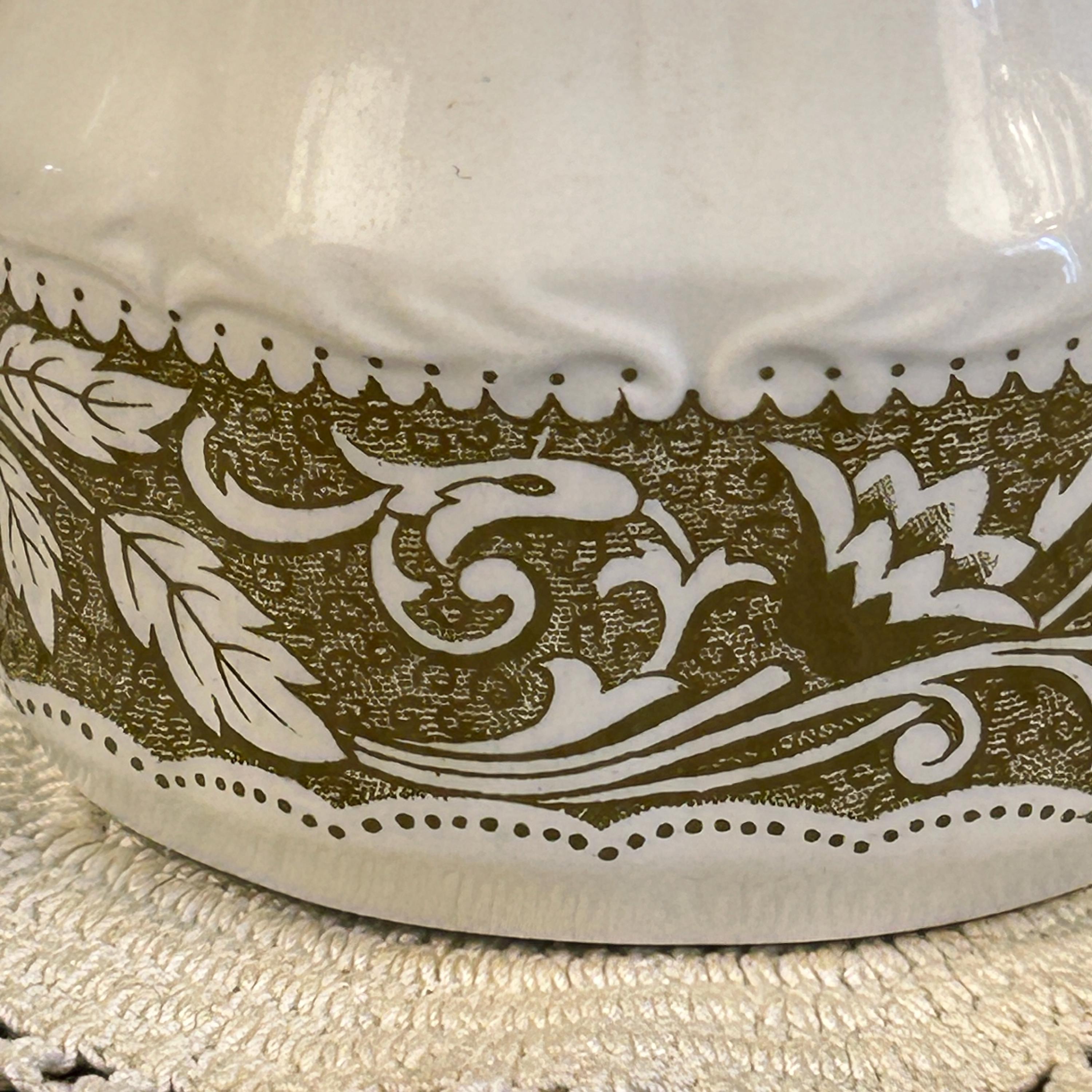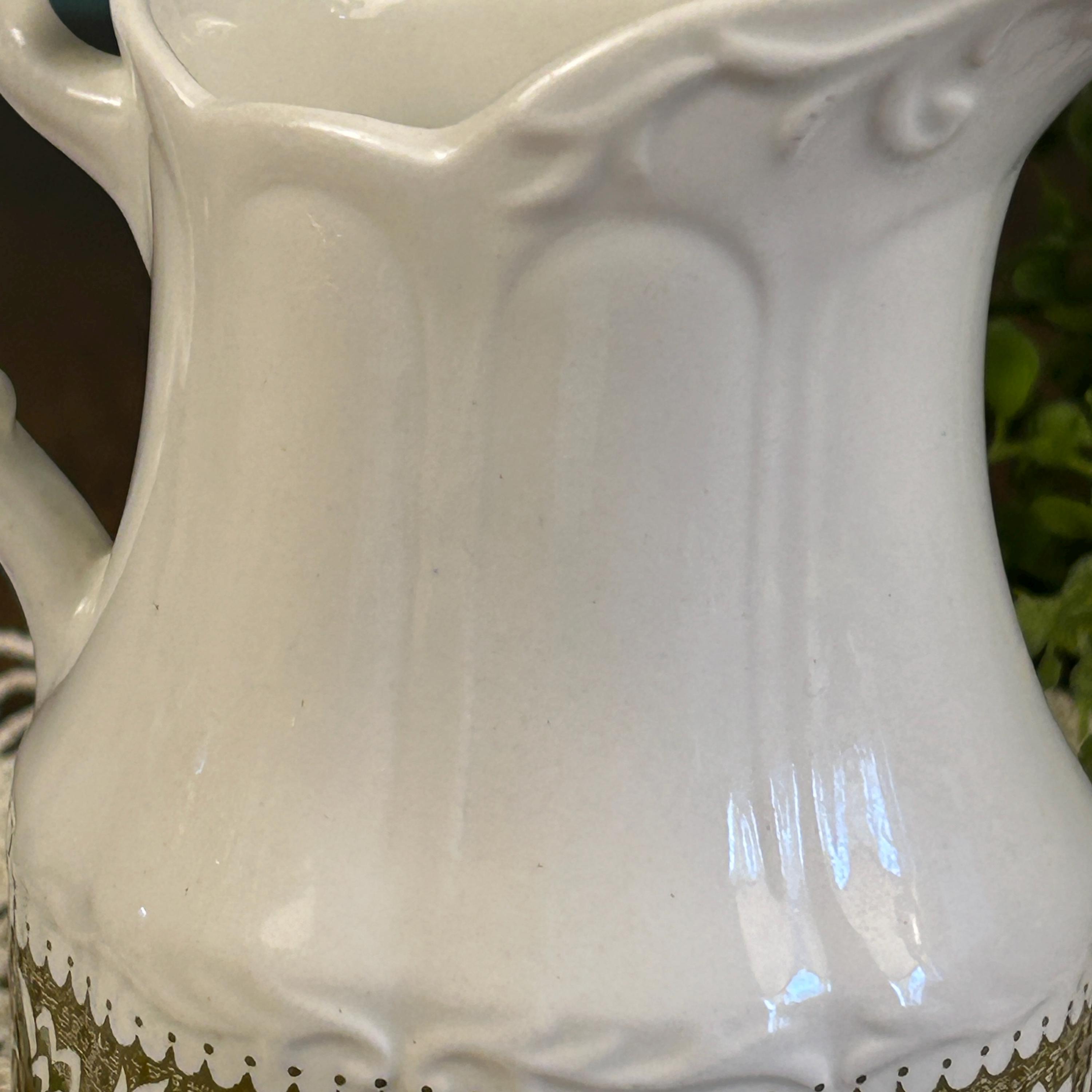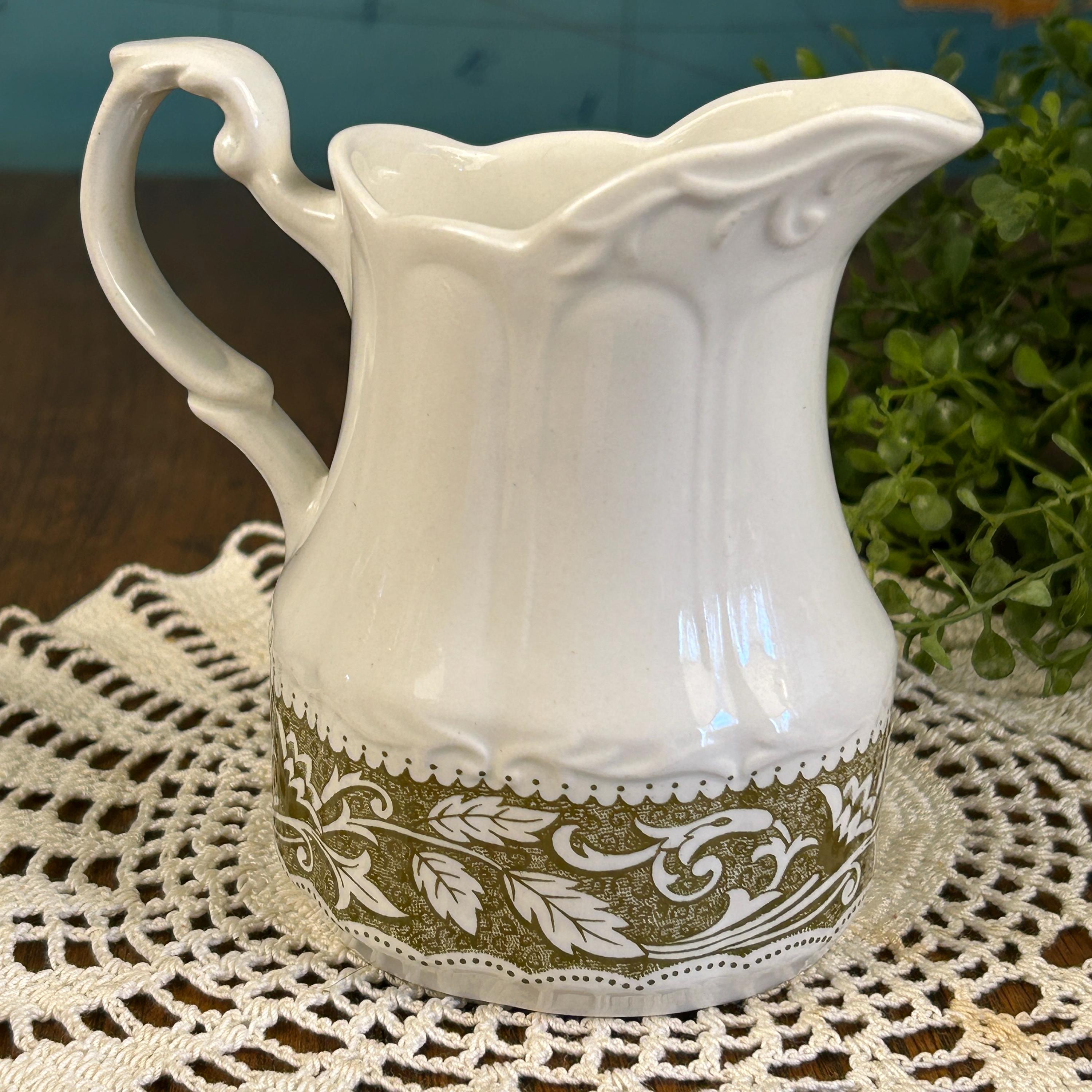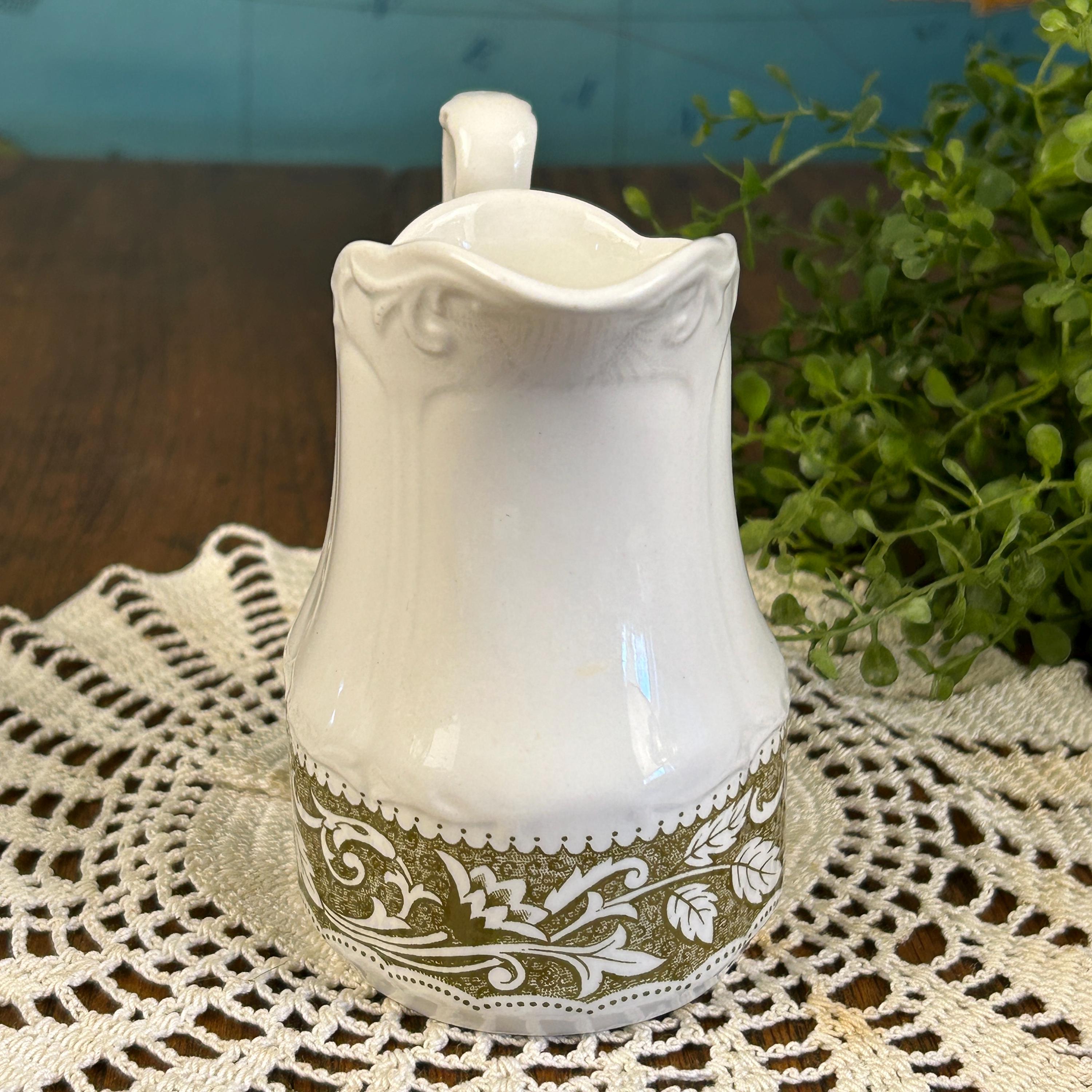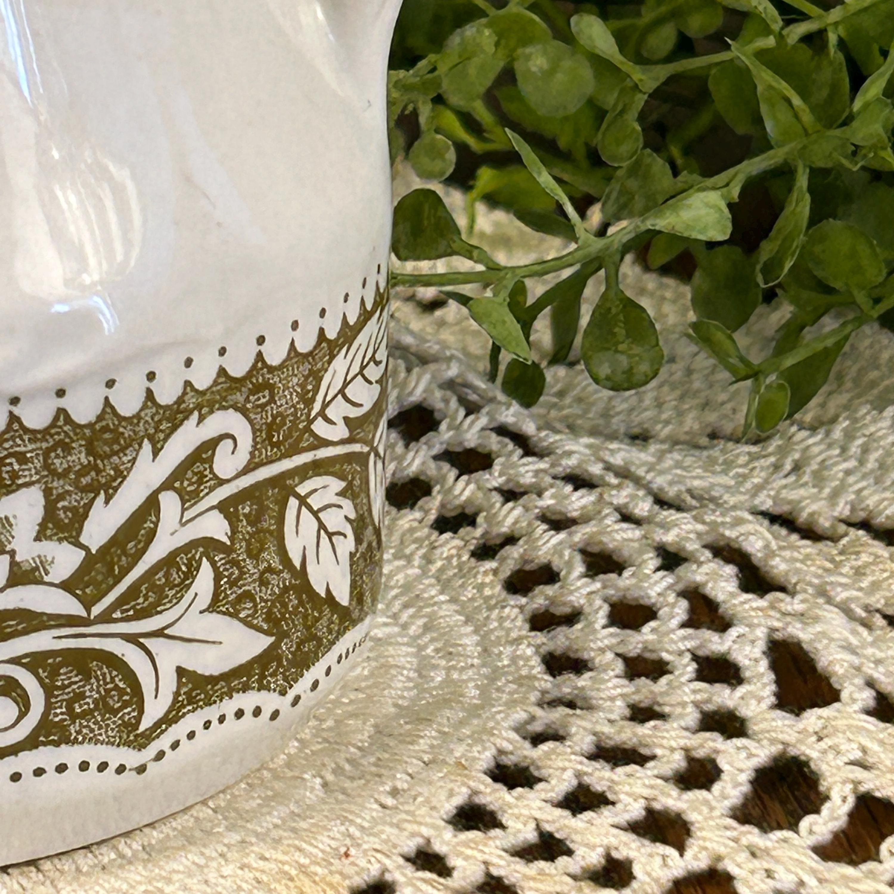 Add timeless English charm to your table with this beautiful vintage J&G Meakin “Renaissance Green” creamer, crafted in durable English ironstone. Featuring a classic green transferware pattern with ornate Renaissance-inspired detailing, this piece blends elegance with everyday functionality.
