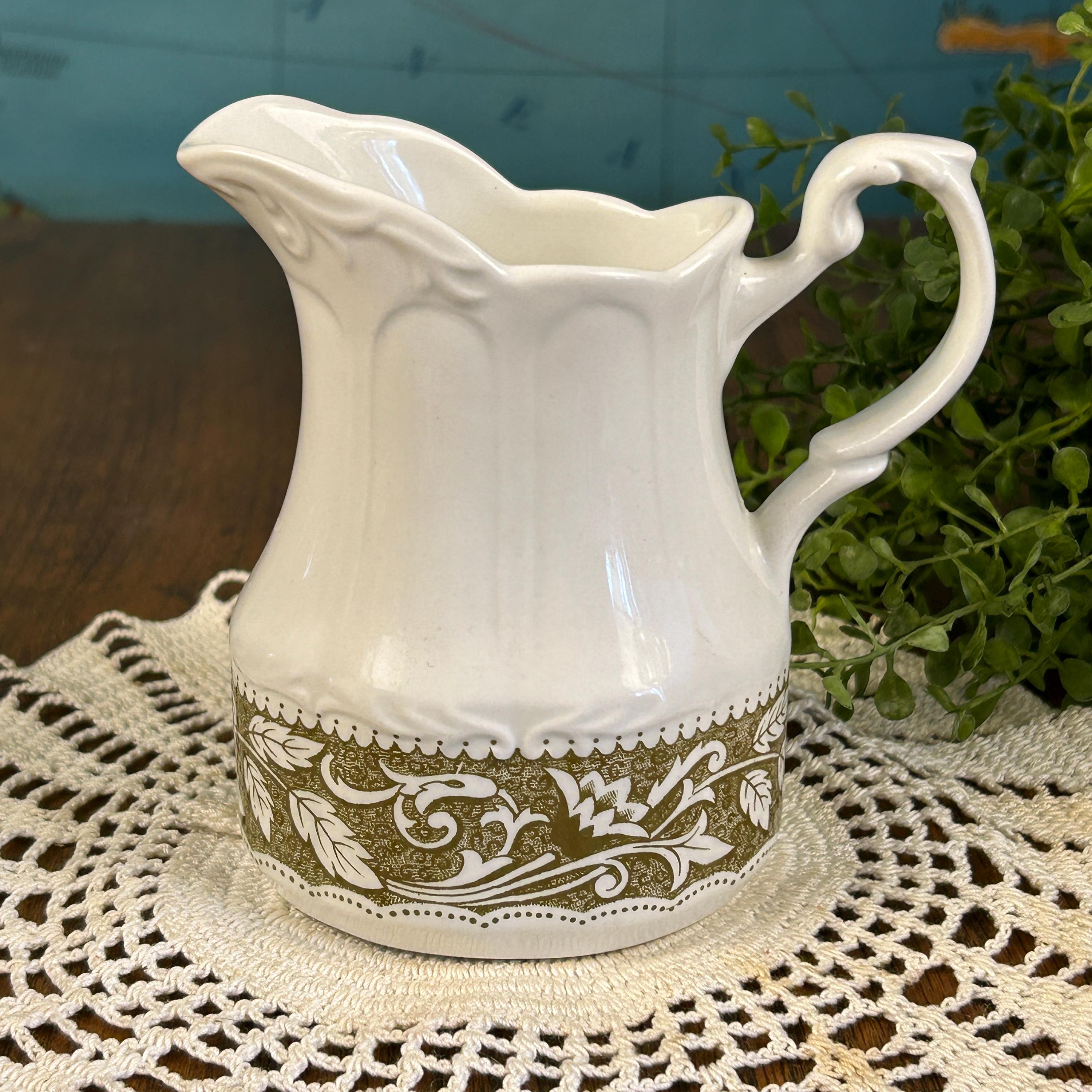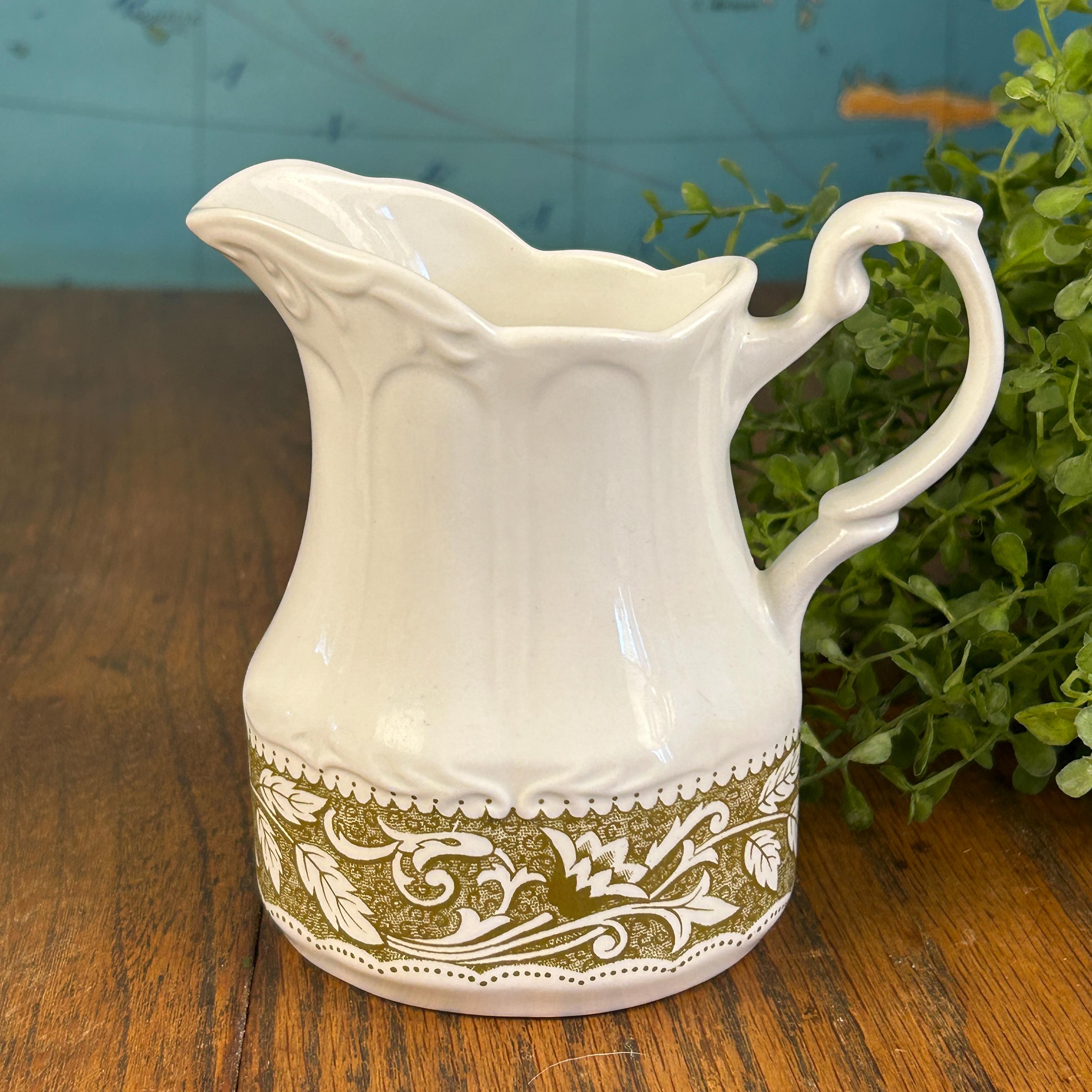 This creamer pairs beautifully with other Renaissance Green pieces or stands alone as a charming accent in your vintage kitchen decor. A wonderful gift idea for collectors, tea lovers, or anyone who appreciates classic English tableware.This is a J&G Meakin "Renaissance Green" creamer in English ironstone.