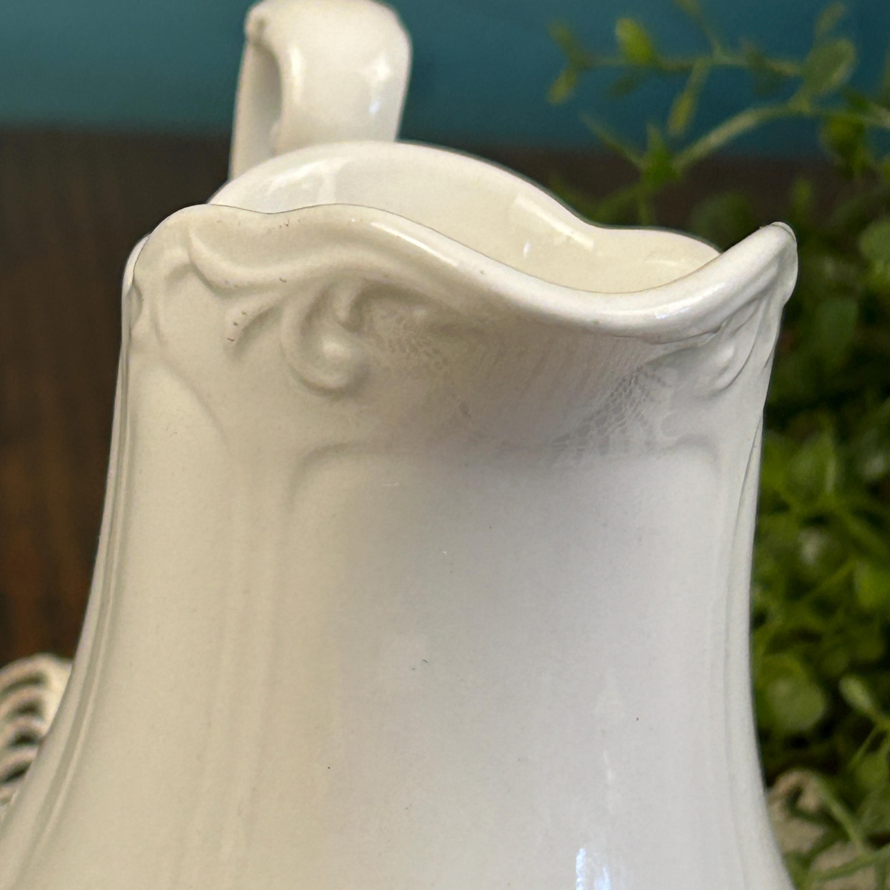 Made in England by the highly respected J&G Meakin pottery, this creamer reflects the quality craftsmanship and enduring style that made British ironstone beloved around the world. Whether used for serving cream, milk, sauces, or displayed as part of a vintage collection, it adds instant character to any setting.