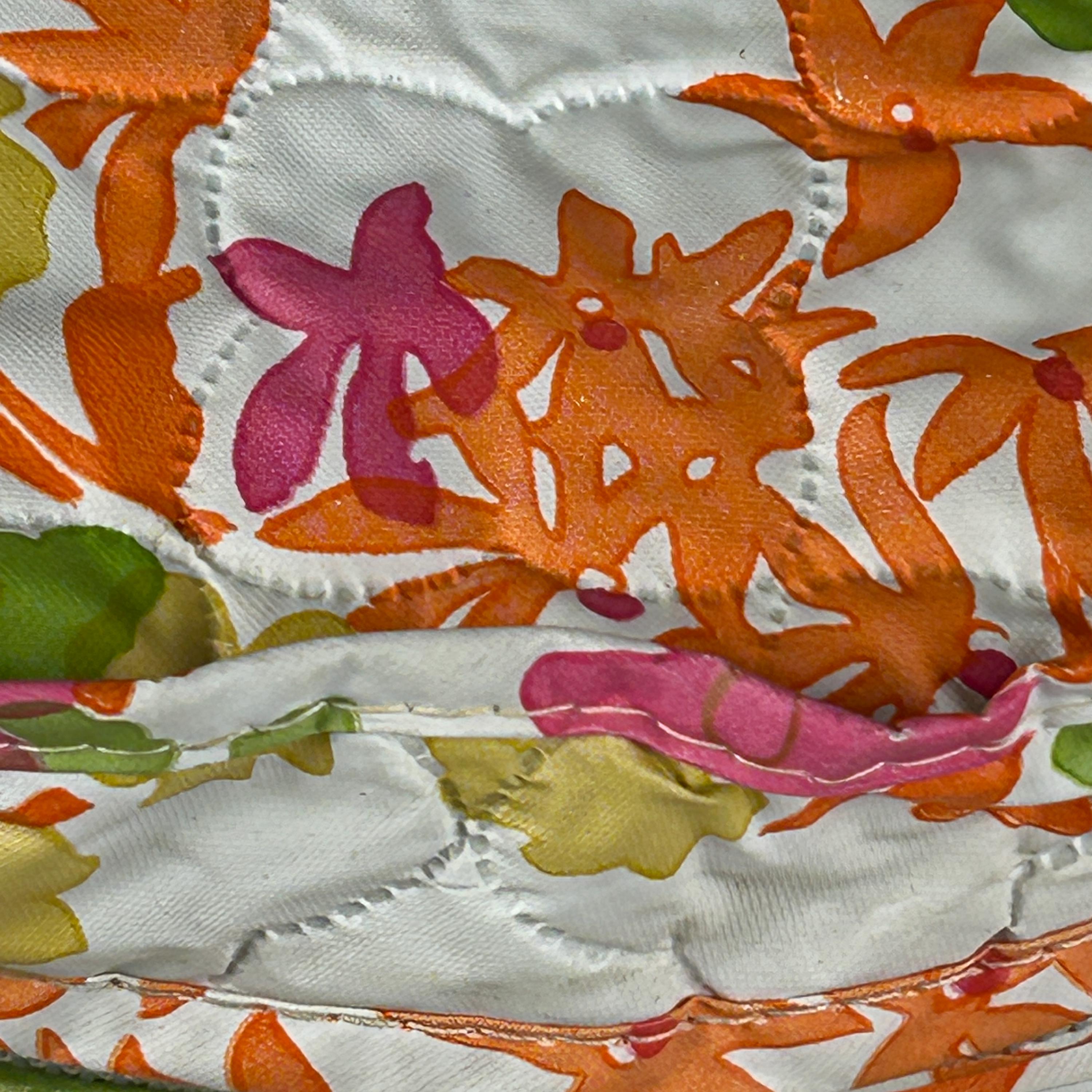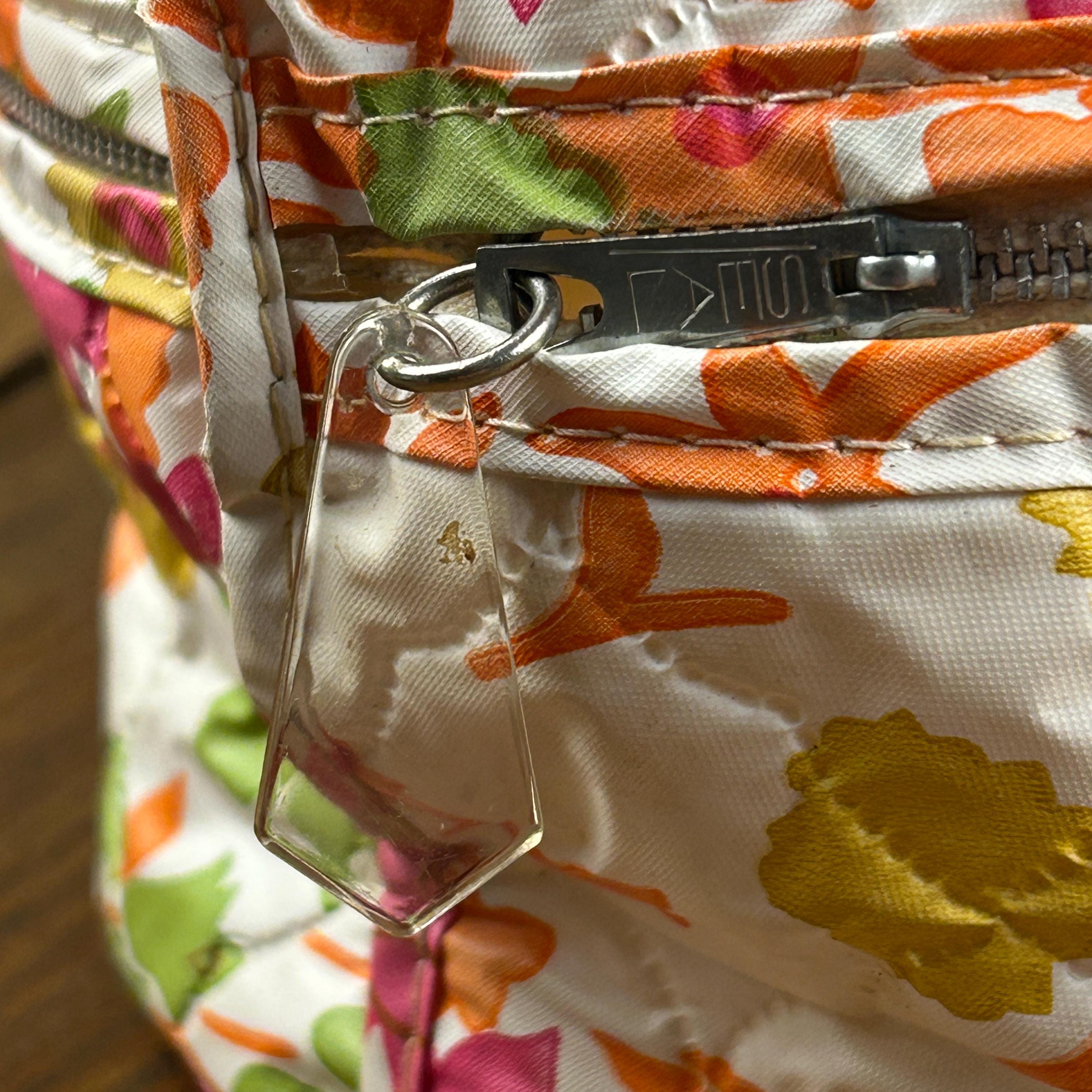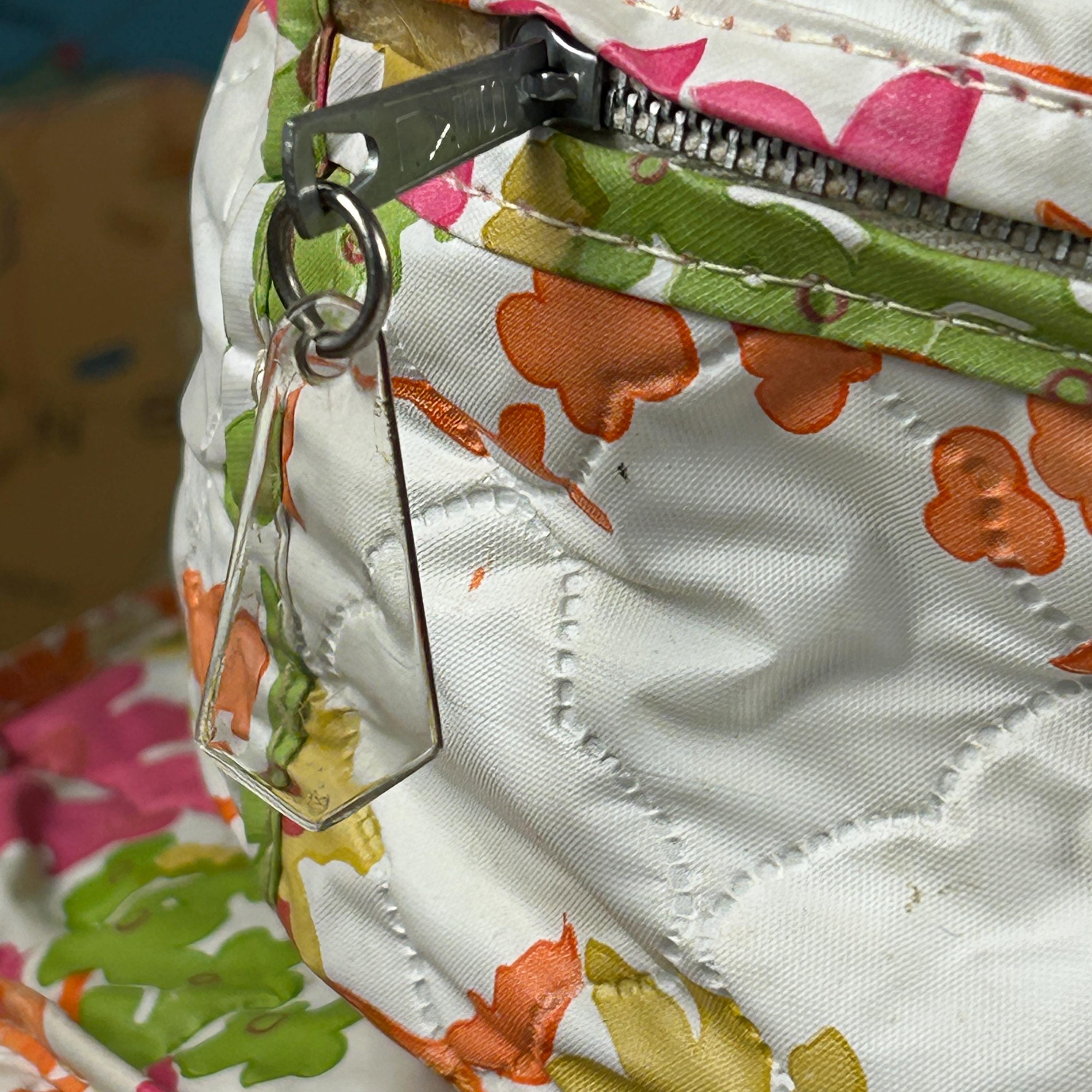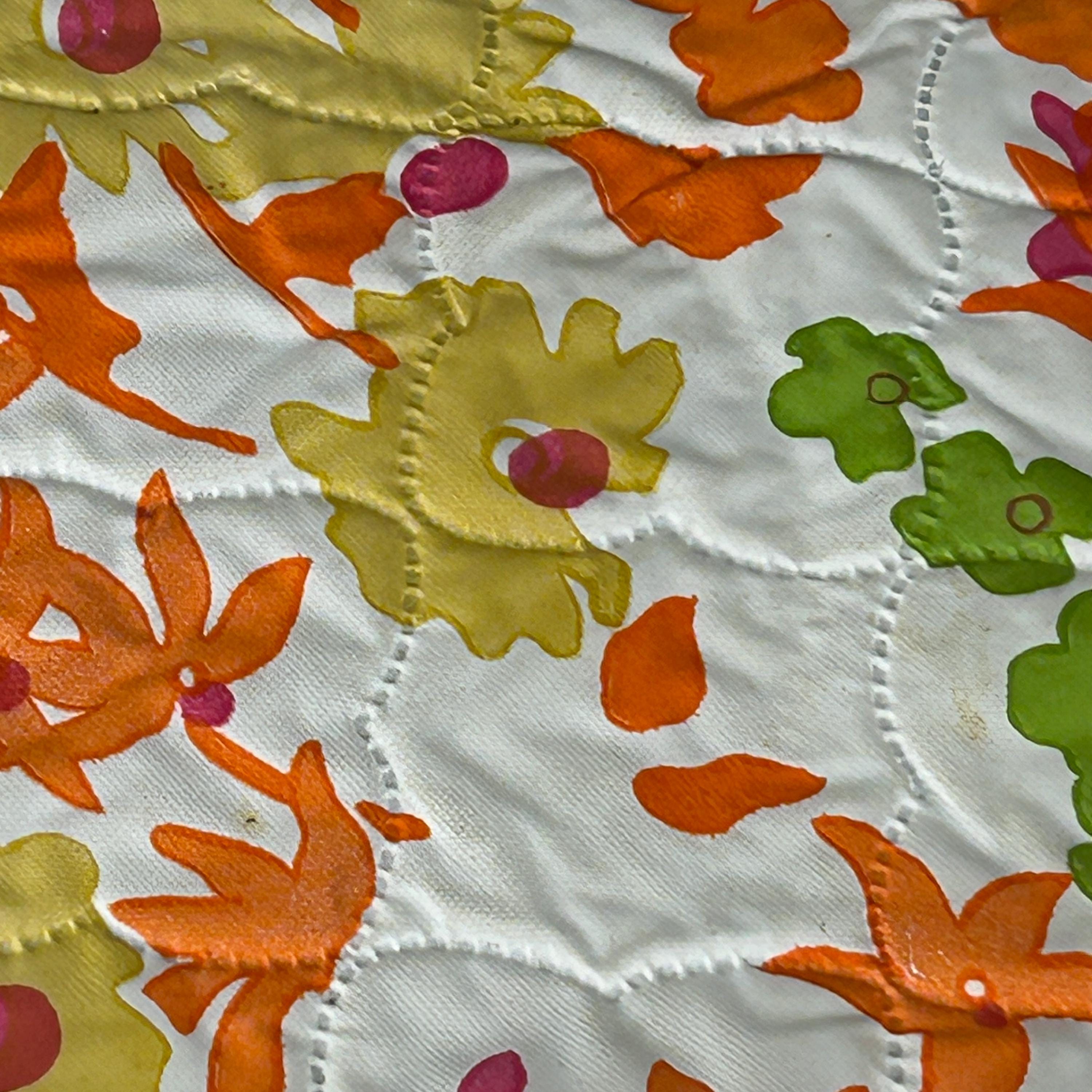 This set includes five round vinyl Seal Sac containers, each featuring a vibrant 1960s hippie floral print in hot pink, orange, yellow, green, and white. A true pop of color for any retro-inspired space!