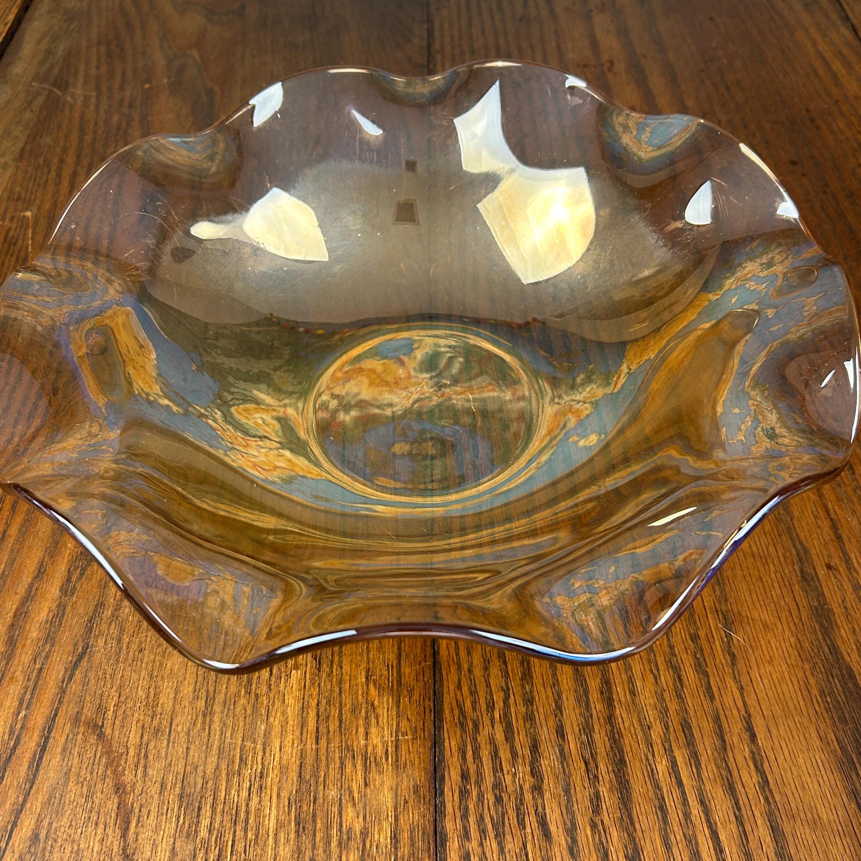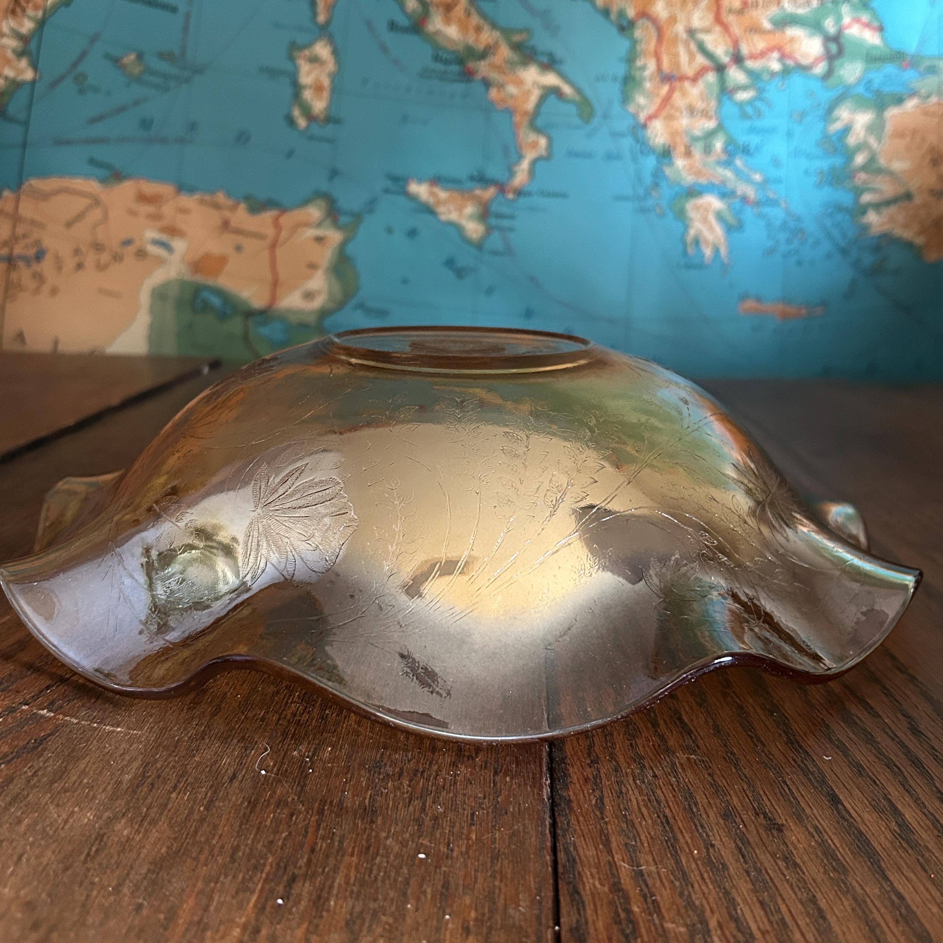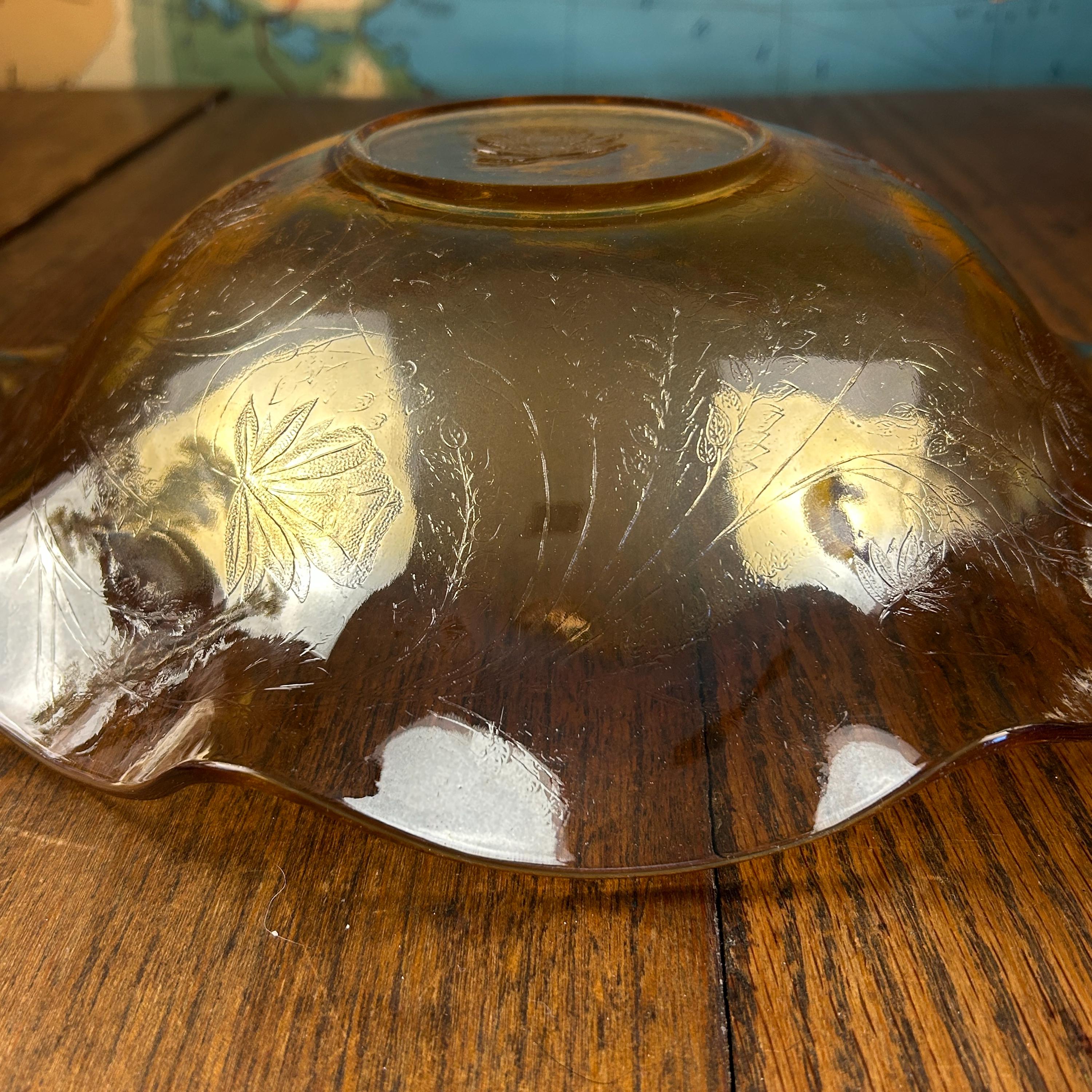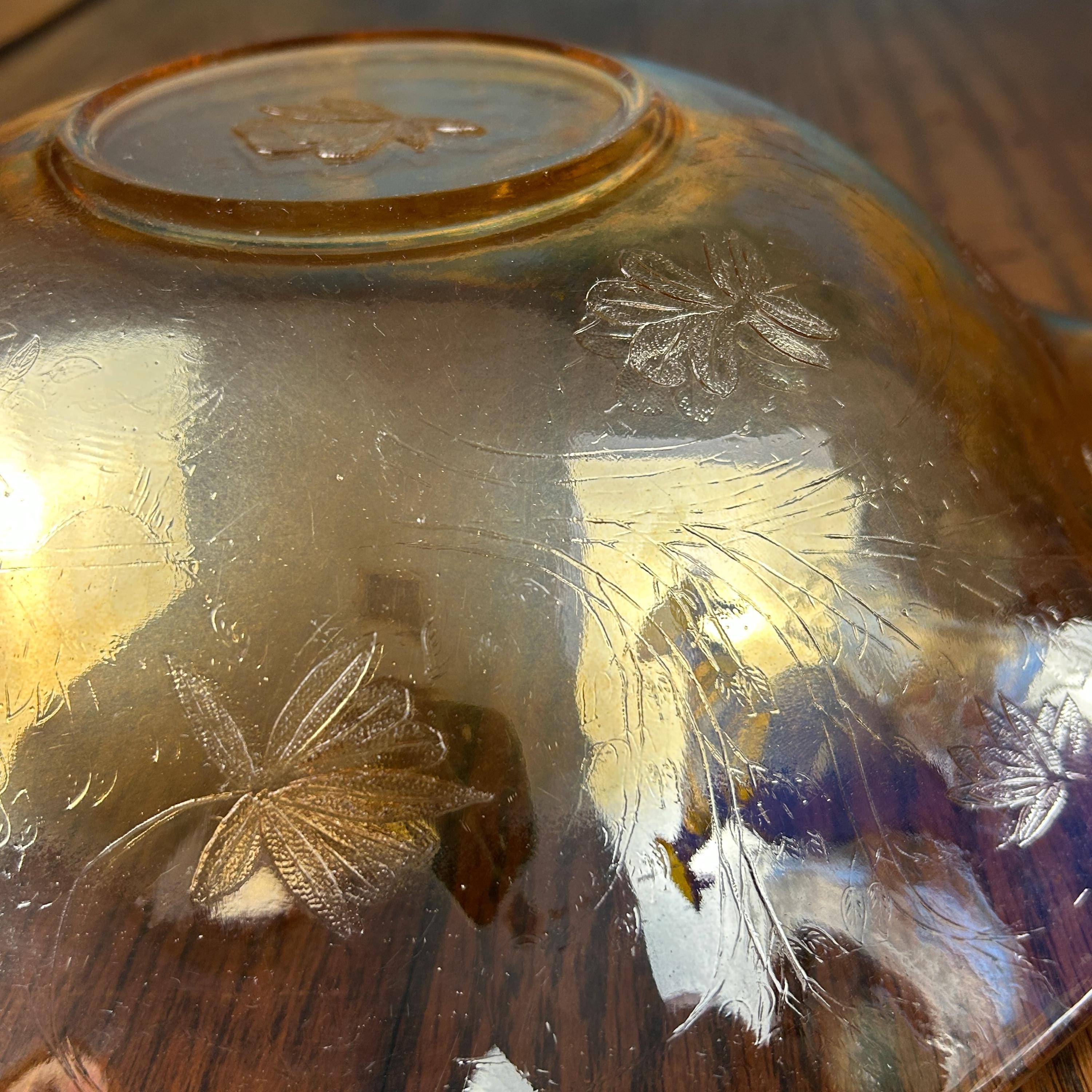 The Vintage Jeannette Glass Co. Louisa Floragold Ruffled Bowl is a notable piece from the Floragold collection, a carnival glass line produced by Jeannette Glass Company in the late 1940s and early 1950s. Here’s a deeper dive into its history, characteristics, and collectibility: