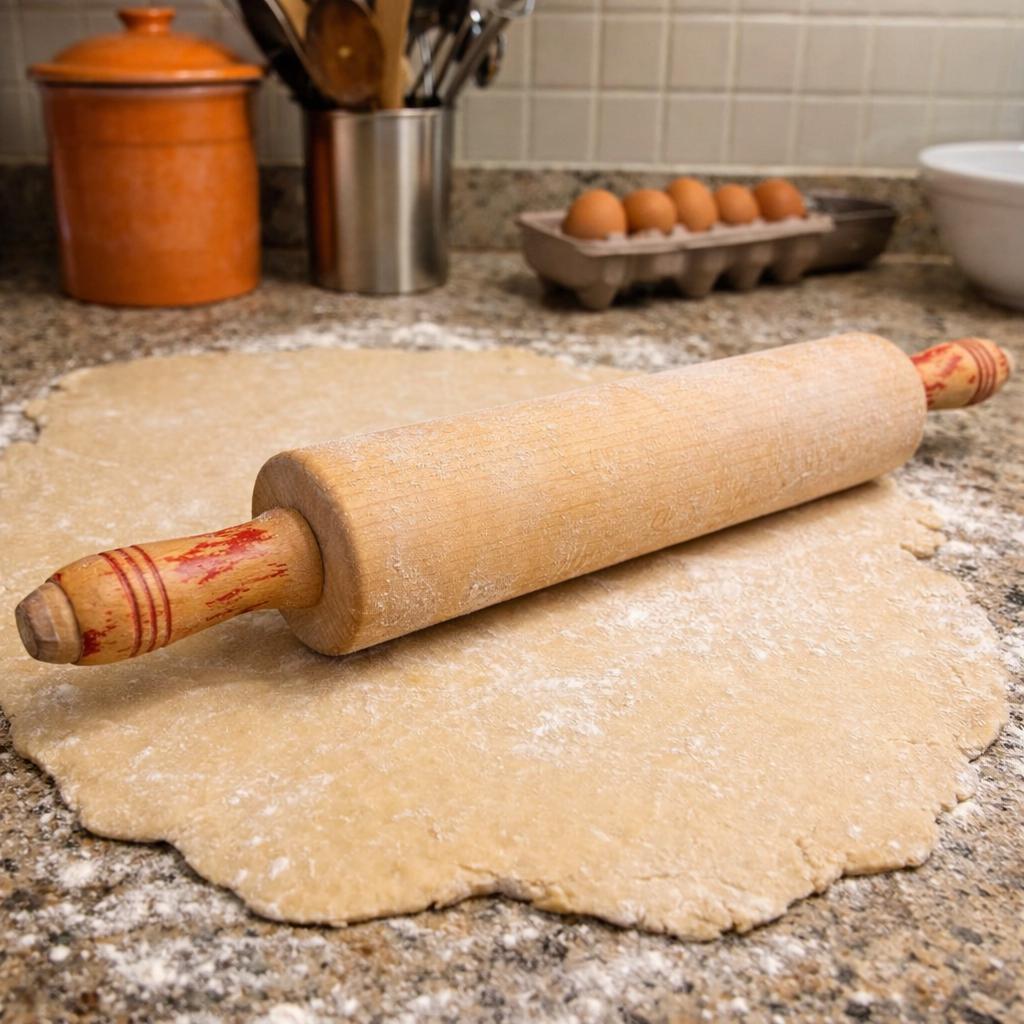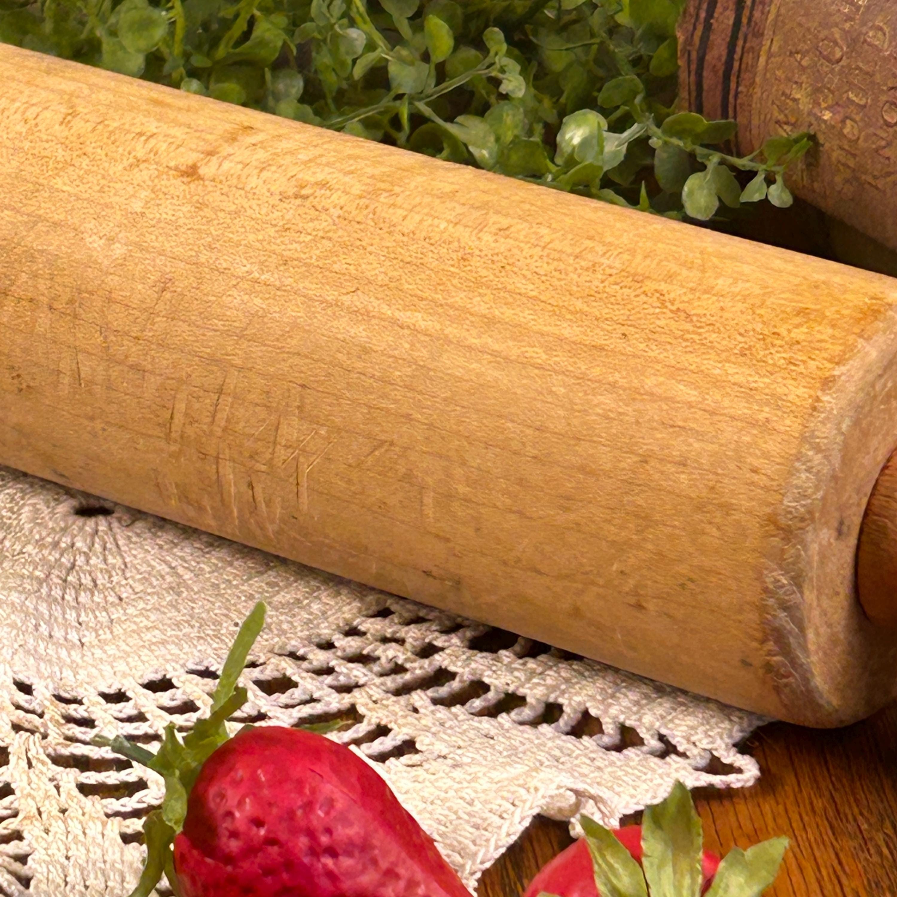 Whether displayed in a crock, hung on a wall, or used for light baking, this rolling pin brings warmth and nostalgia to any space. Similar vintage rolling pins are often sought after as collectibles and decorative accents, prized for their craftsmanship and character.
