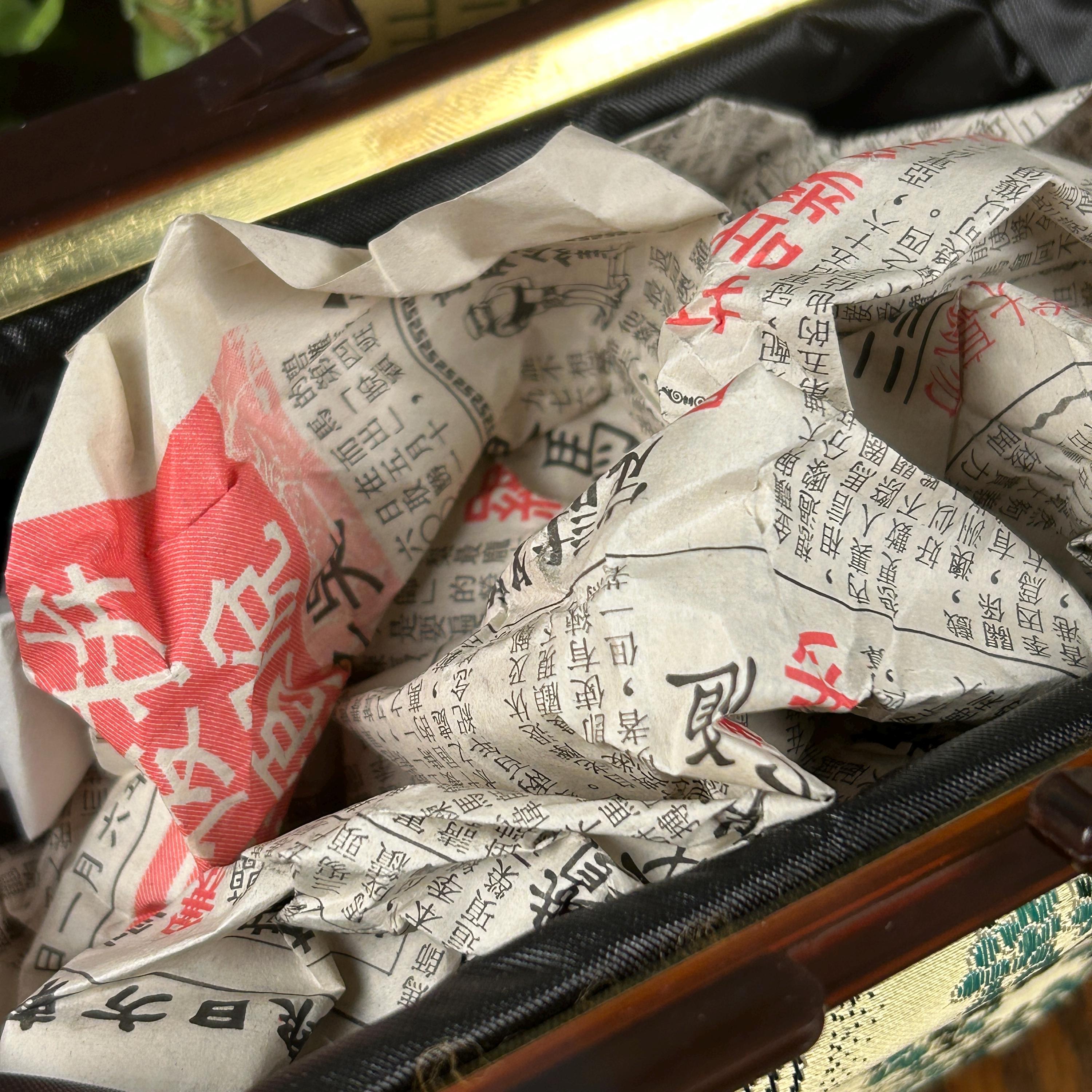 Measures 7 inches by 5 inches. In wonderful condition inside and out. No snags, tears, scratches. Beautiful vintage condition. Inside is clean. A page of Asian newspaper is tucked inside, just a sweet little surprise.