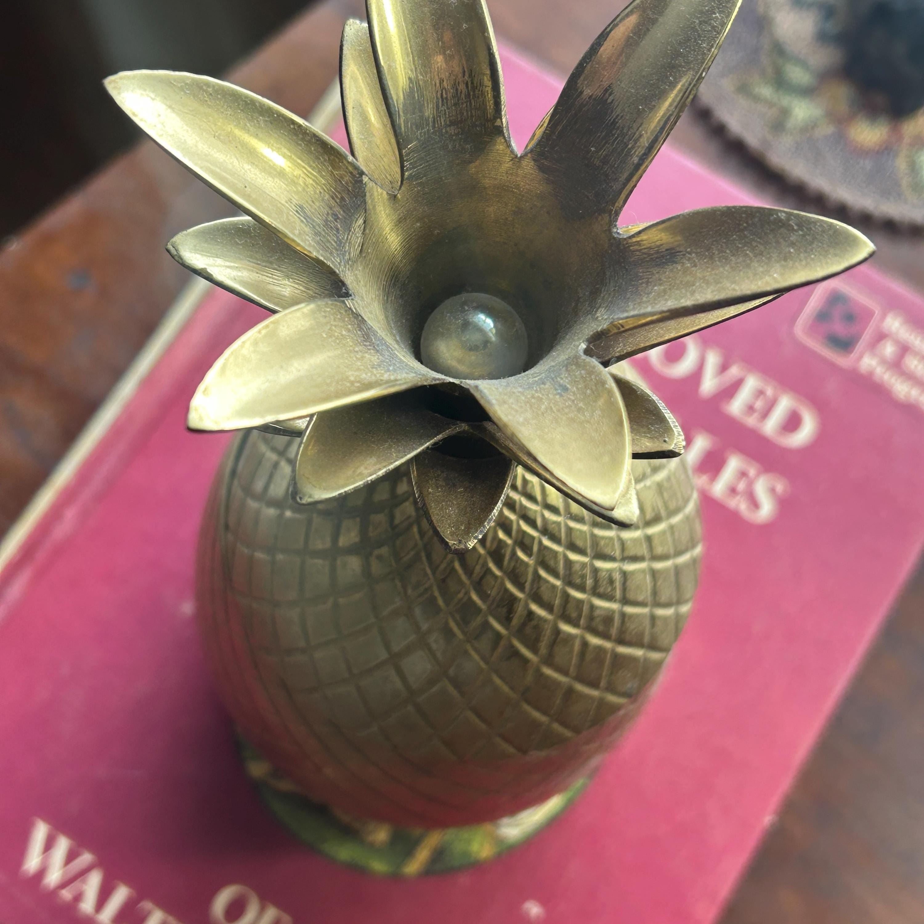 Vintage brass pineapple container / trinket box