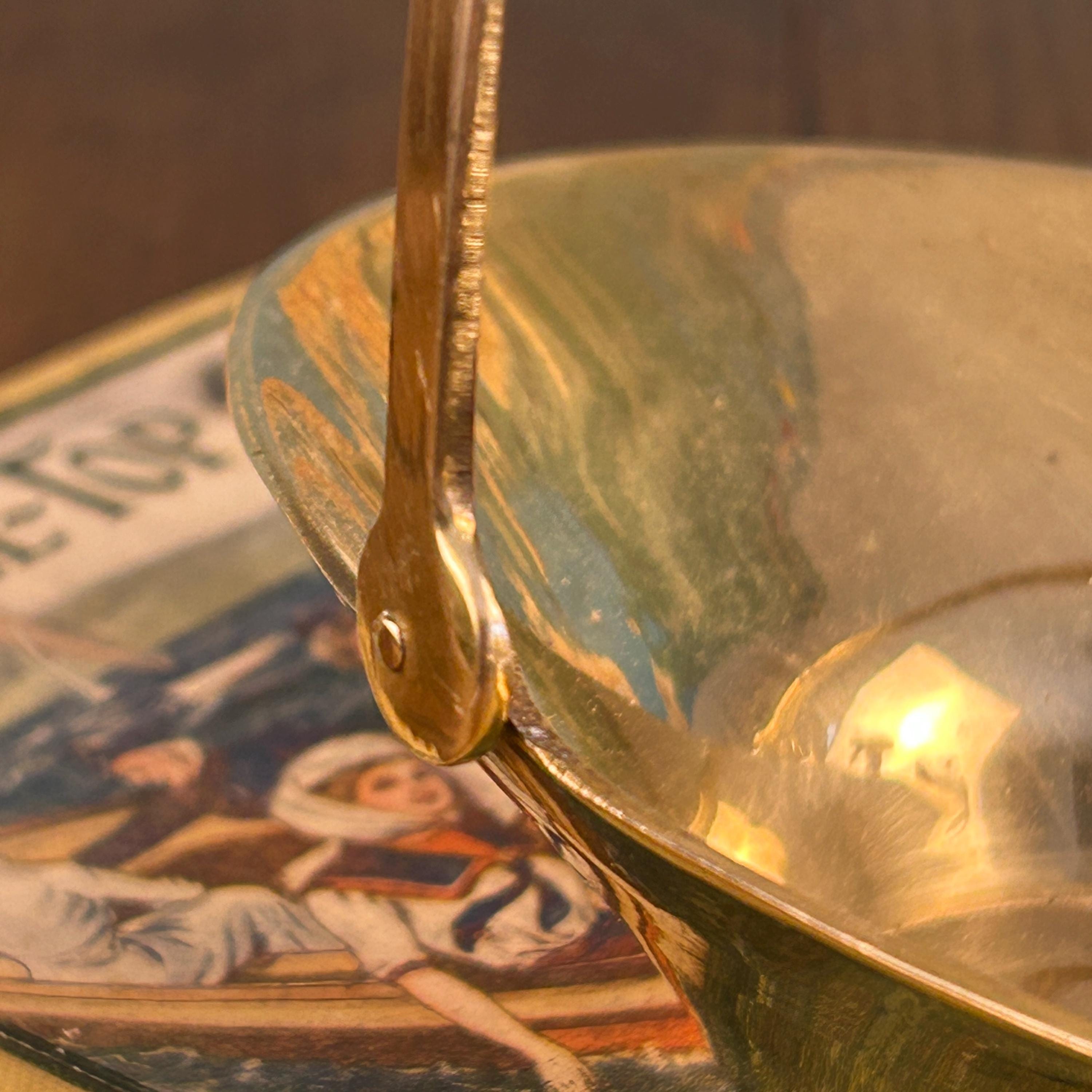This vintage solid brass basket is a timeless decorative accent with classic appeal. Featuring a graceful oval (elliptical) shape and a movable hinged handle, this piece blends form and function beautifully. Its smooth lines and warm polished brass finish give it an elegant, understated look that complements a variety of interiors—from traditional to mid-century and cottage-inspired spaces.