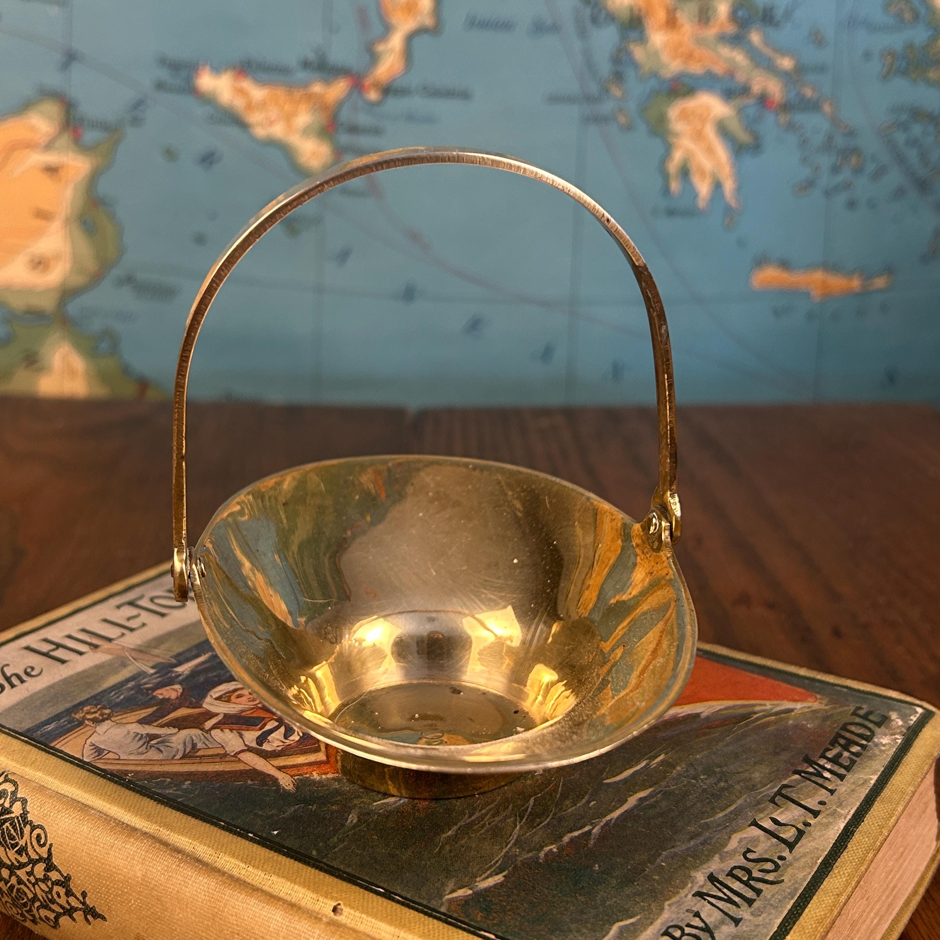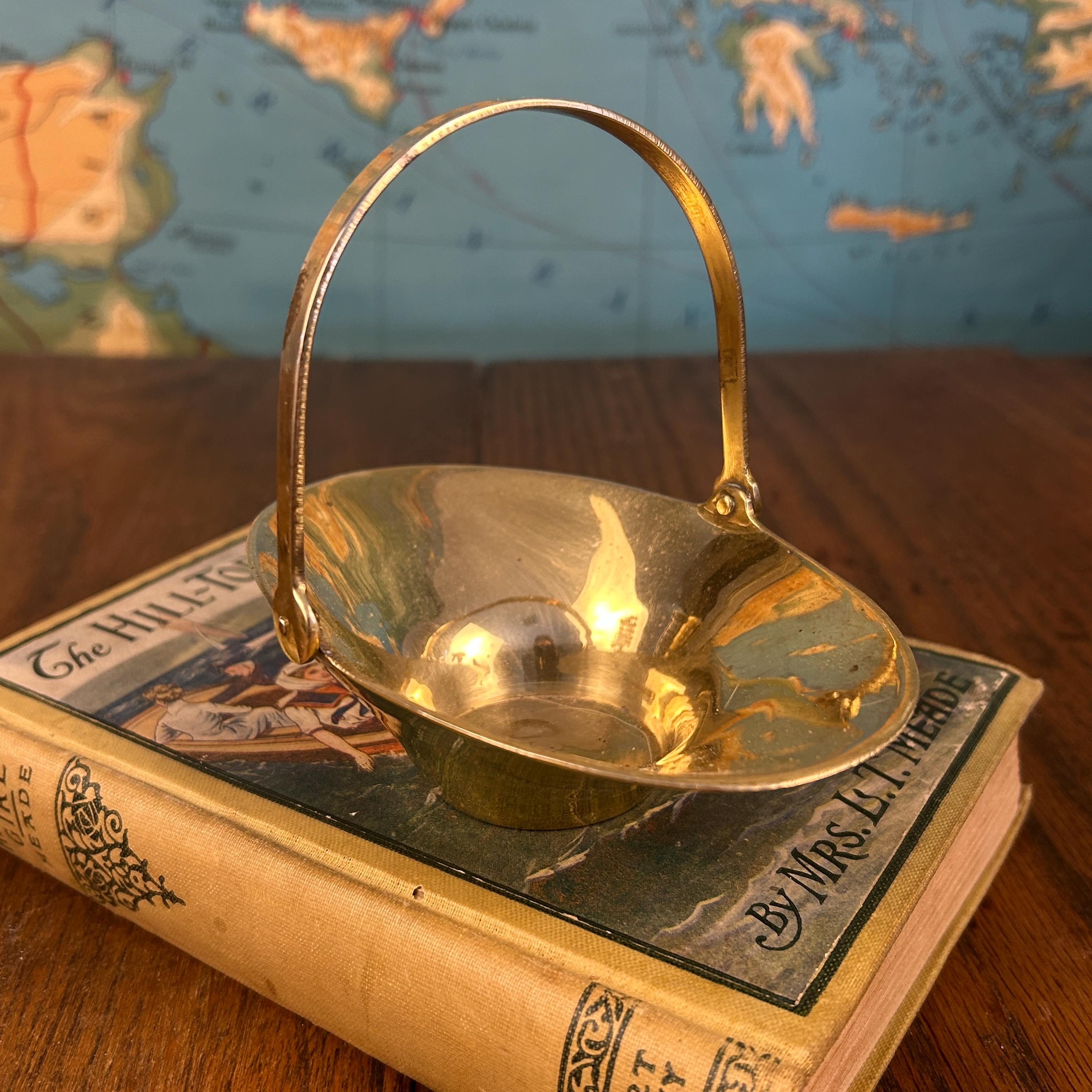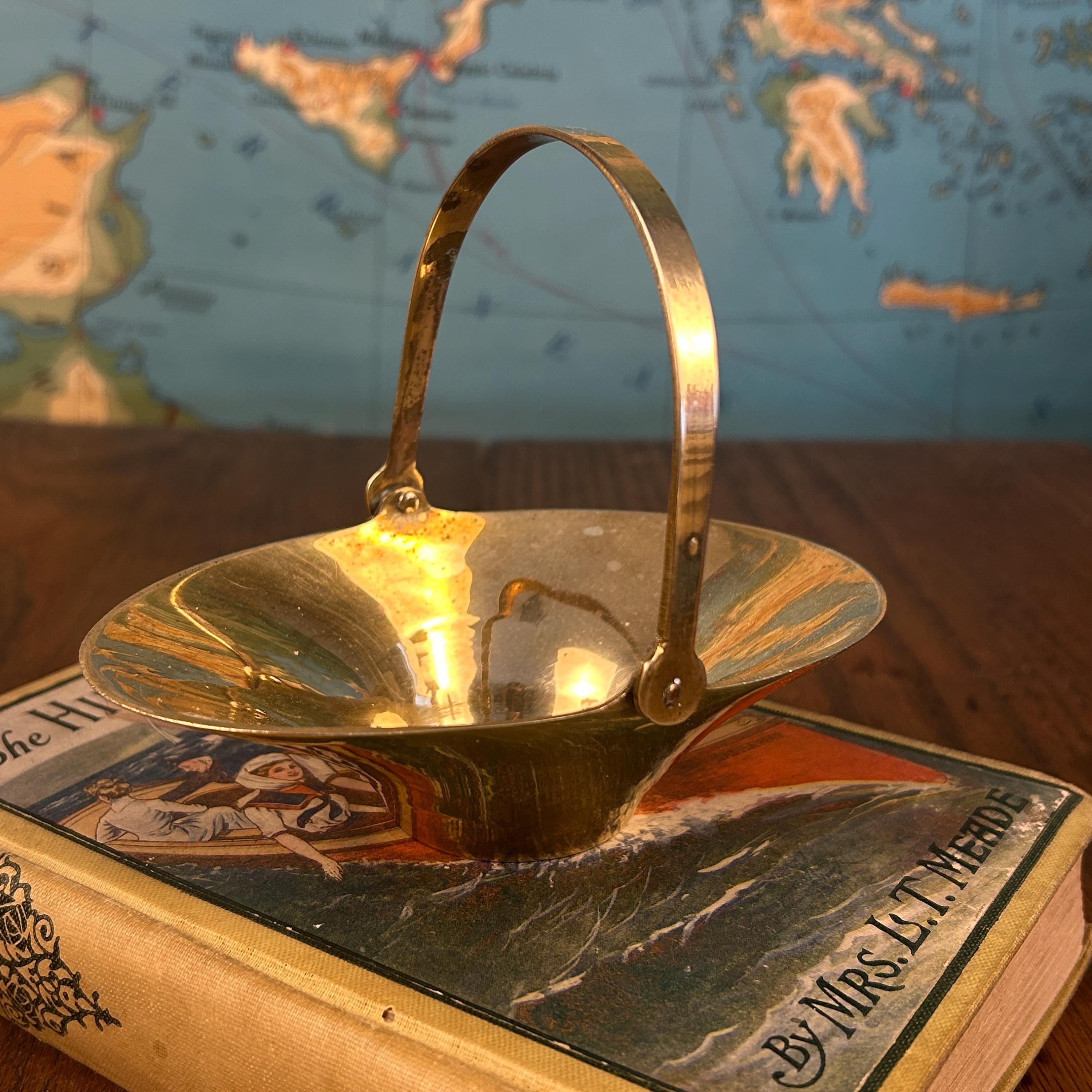 Originally designed as a candy or nut dish, this brass basket is wonderfully versatile. Use it as a trinket dish for jewelry, a stylish catchall for keys, or simply as a decorative display piece on a coffee table, vanity, or shelf.