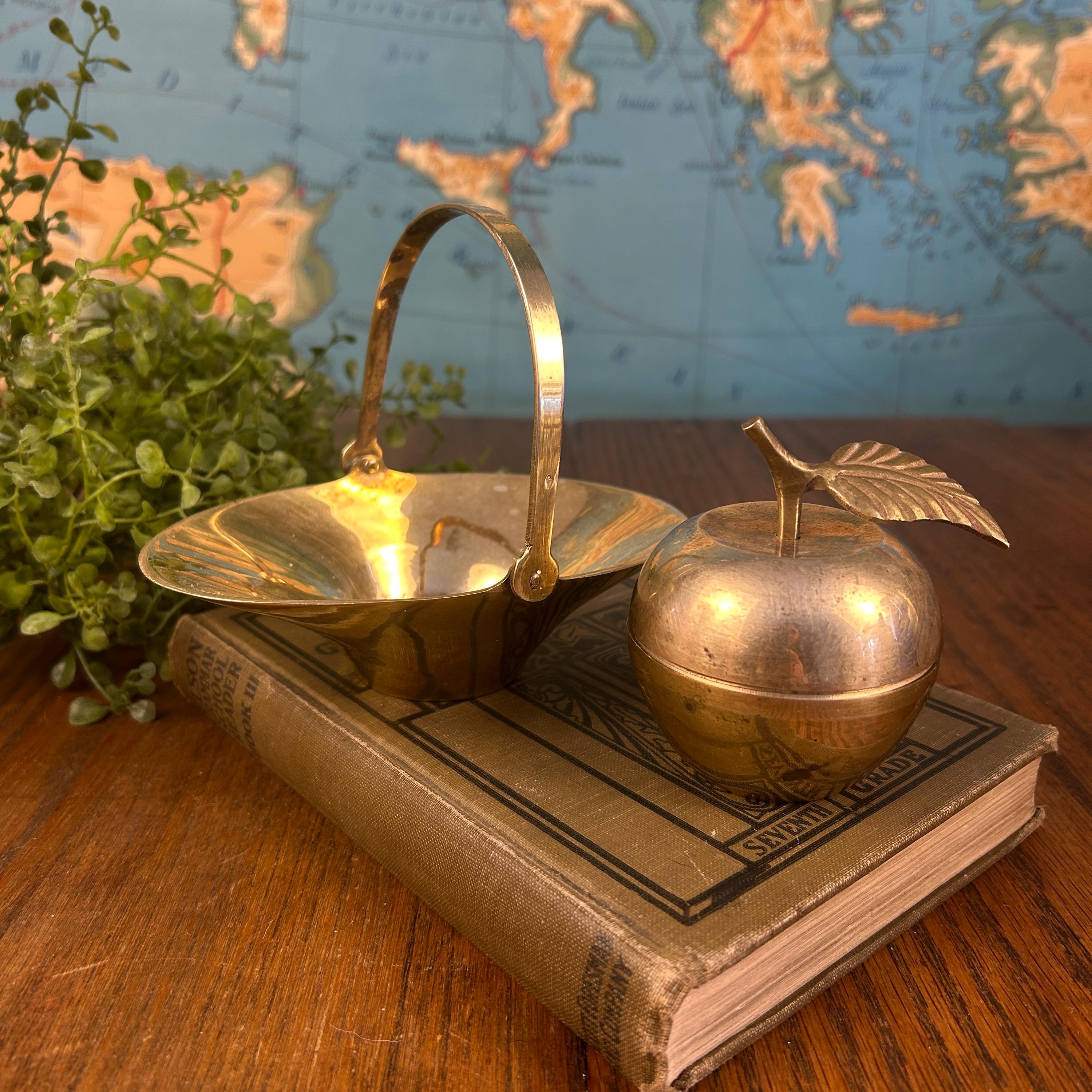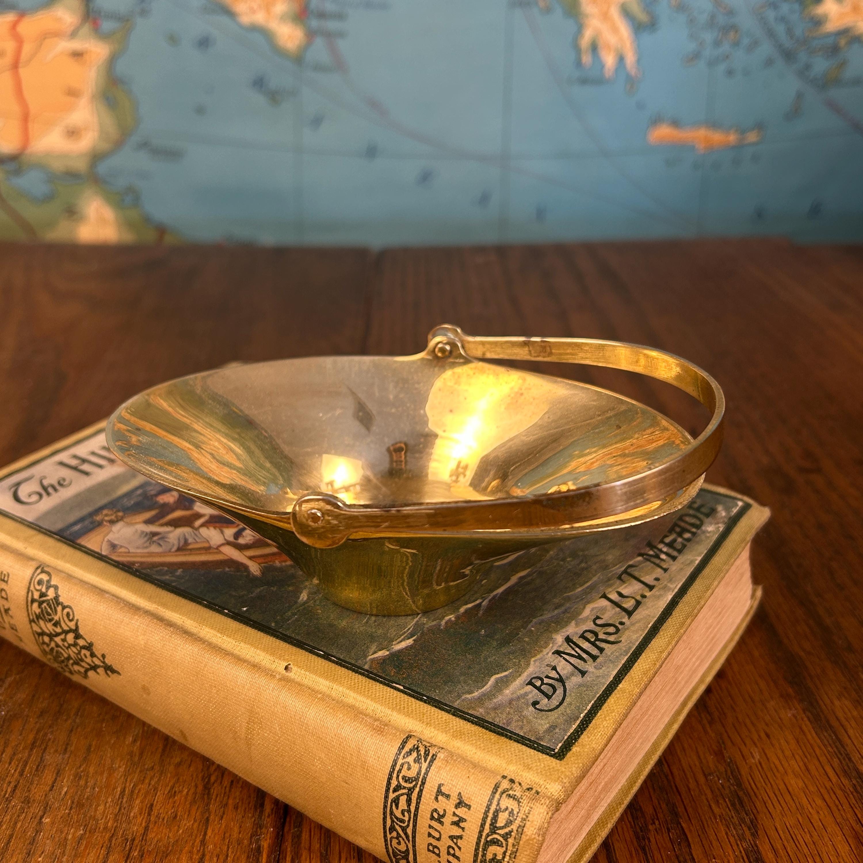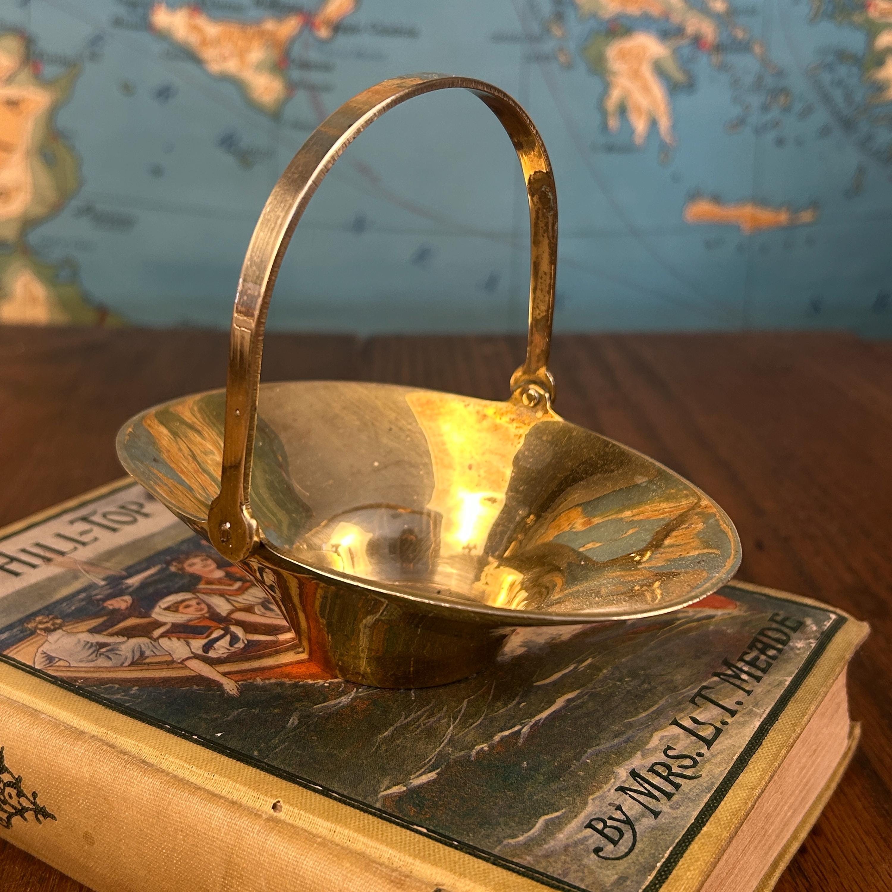 Originally designed as a candy or nut dish, this brass basket is wonderfully versatile. Use it as a trinket dish for jewelry, a stylish catchall for keys, or simply as a decorative display piece on a coffee table, vanity, or shelf.