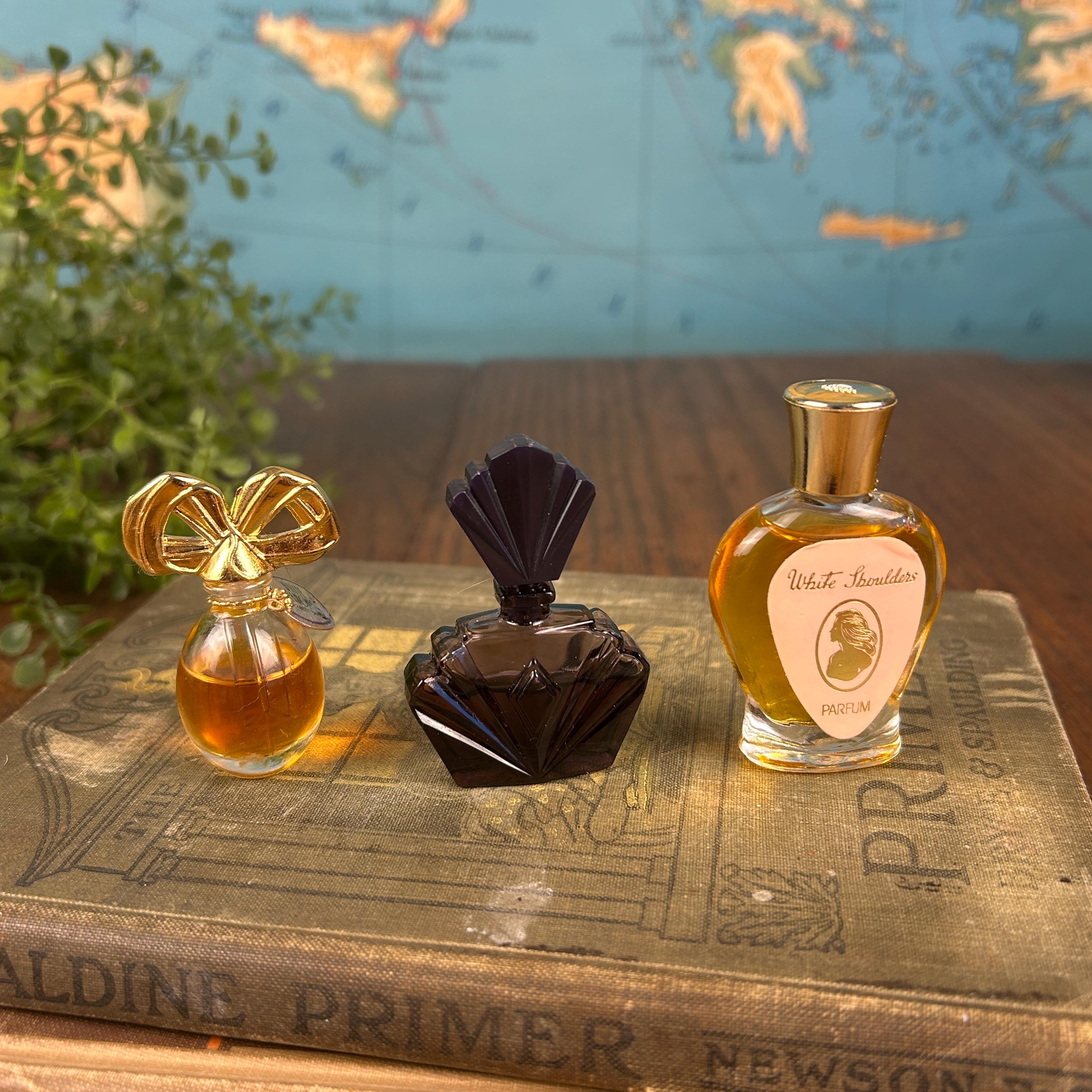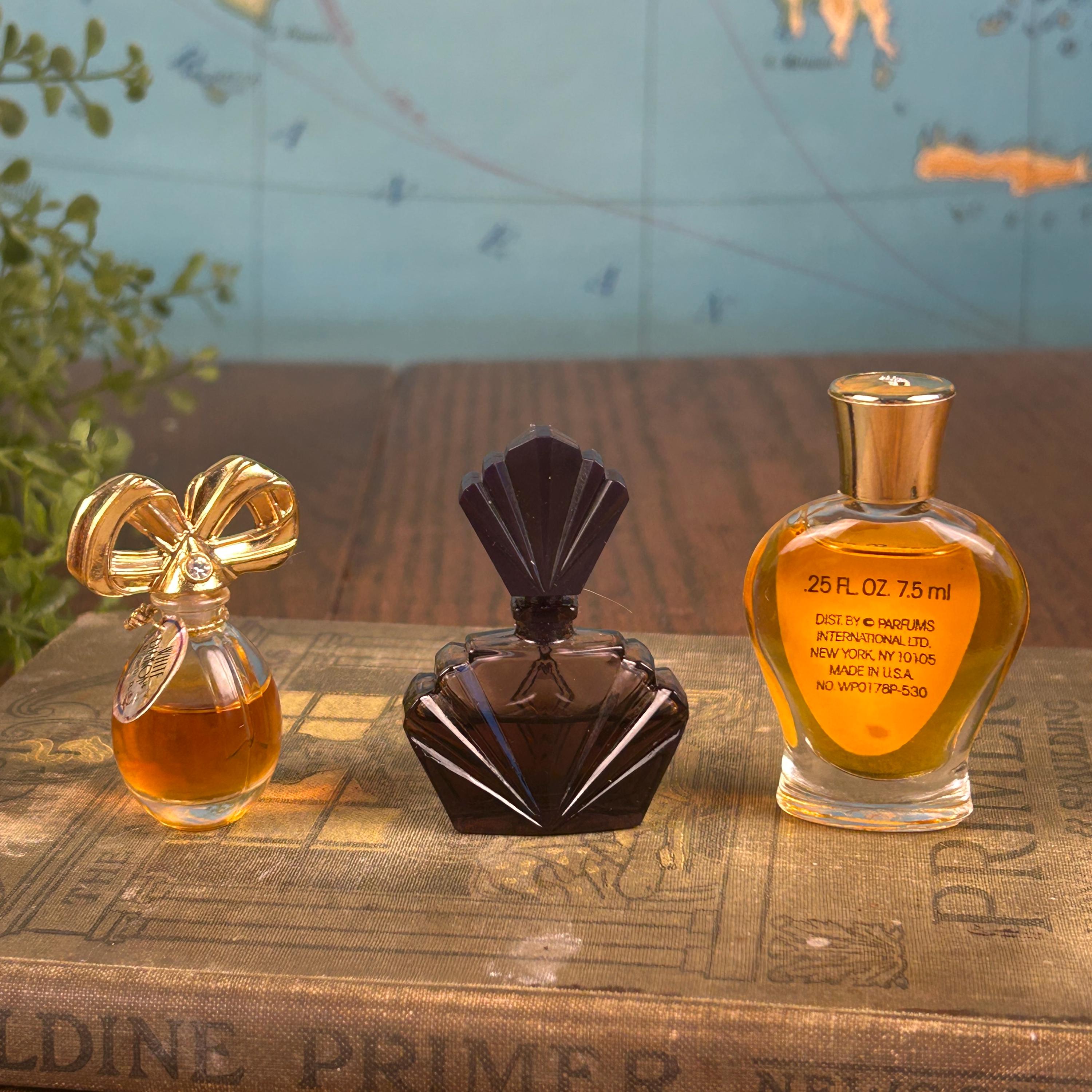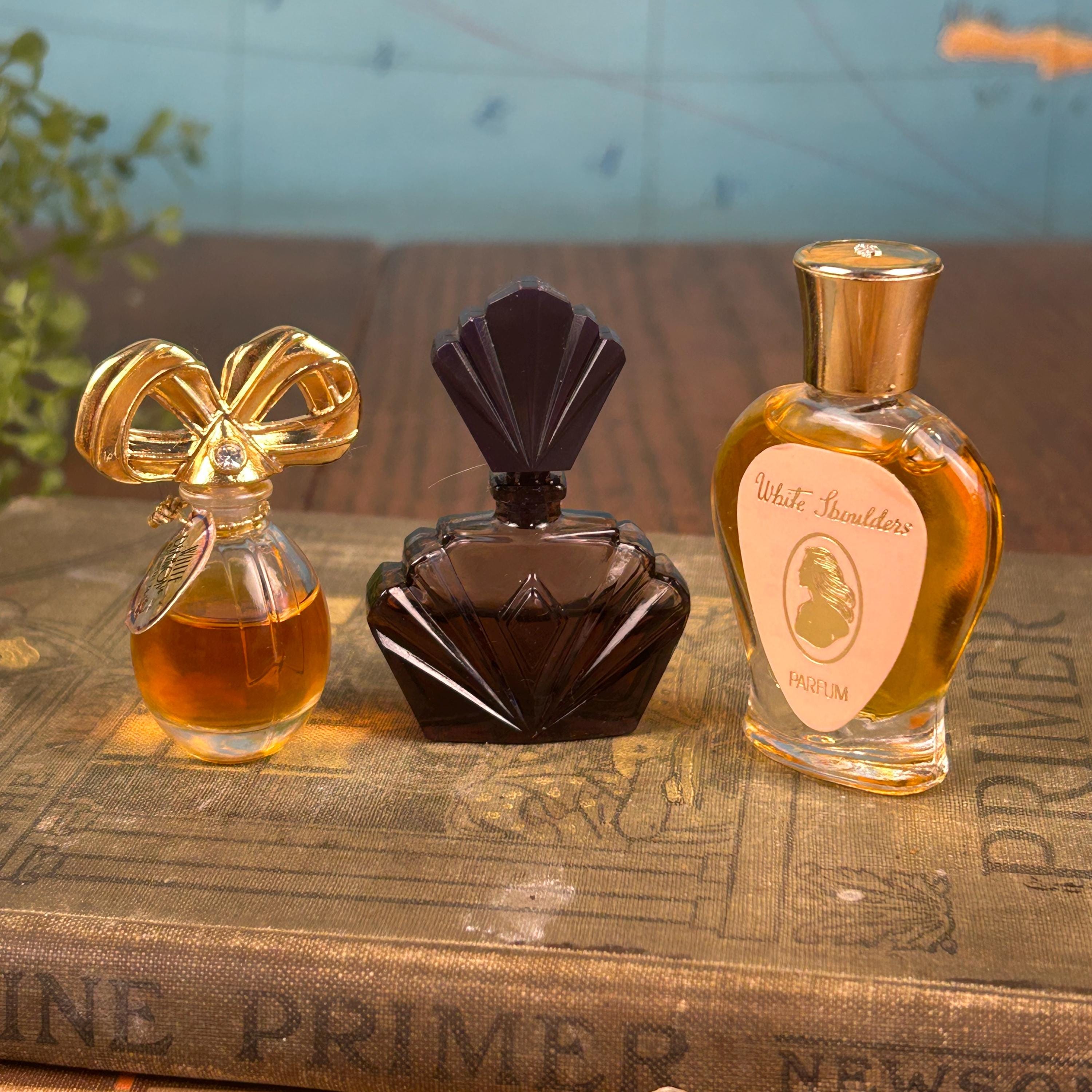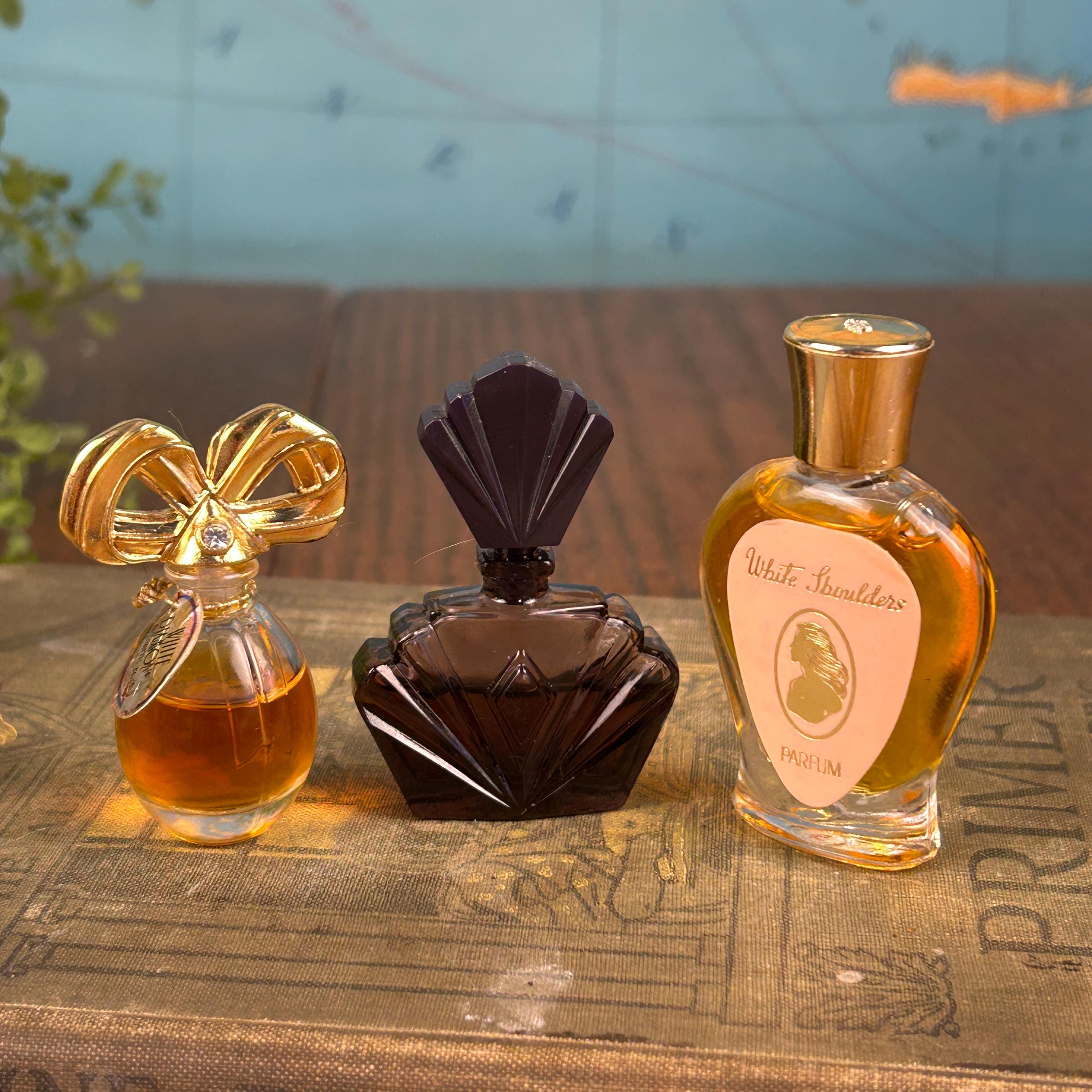 A beautiful set of three vintage perfume bottles featuring iconic fragrances that defined classic glamour and timeless femininity. Perfect for collectors, vanity styling, or lovers of vintage beauty history.