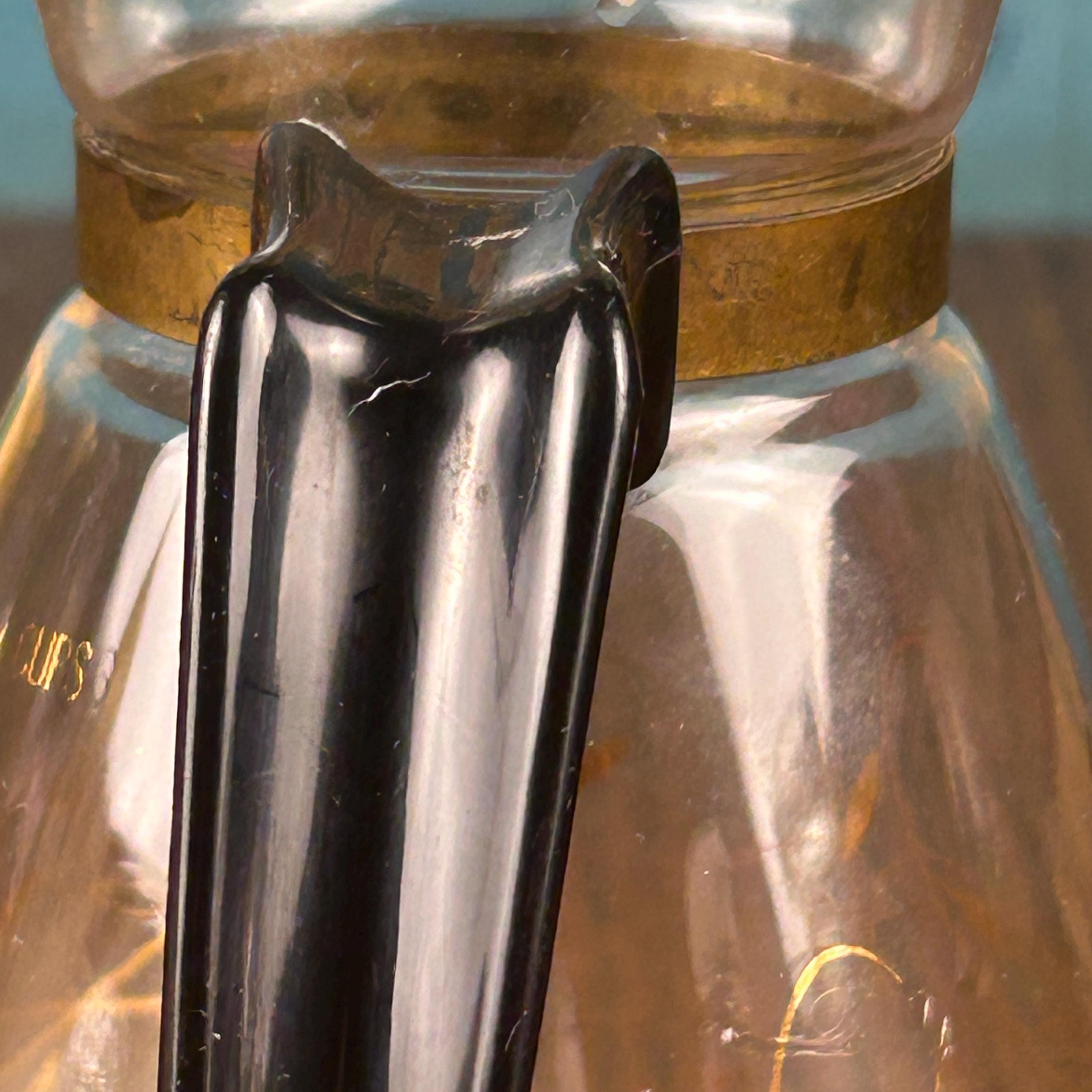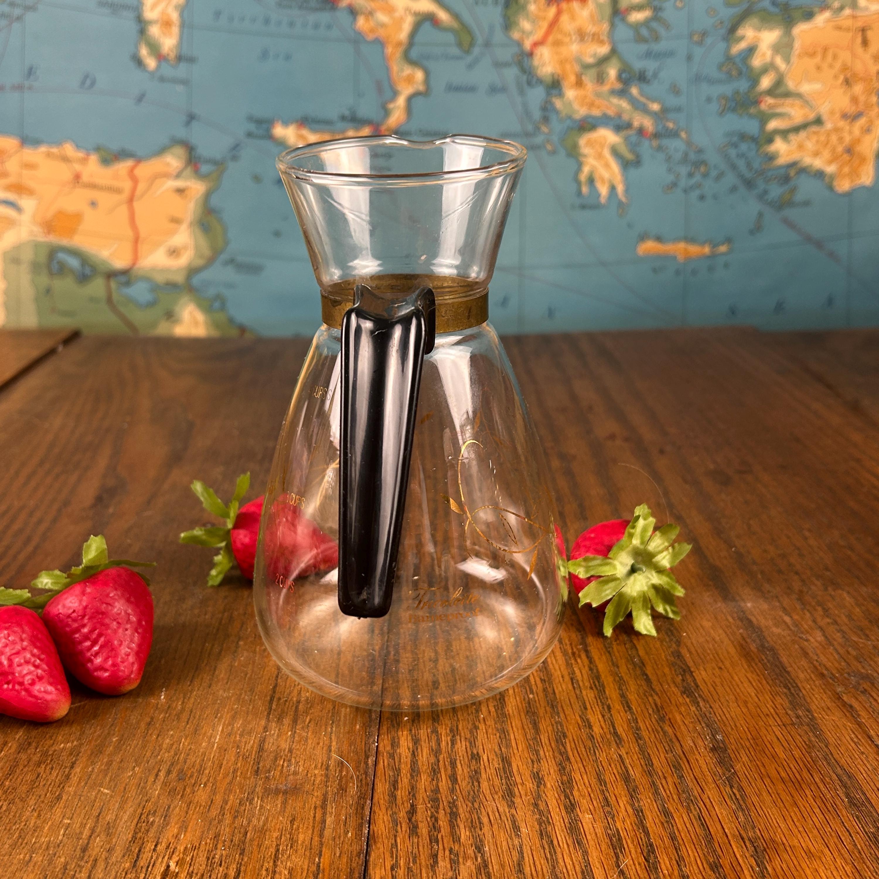 Add a touch of classic mid-century charm to your coffee service with this vintage Tricolette flameproof clear glass coffee carafe. Made from heat-proof glass, this carafe was likely produced in the 1950s–1960s and is designed for everyday function with elegant retro style.
