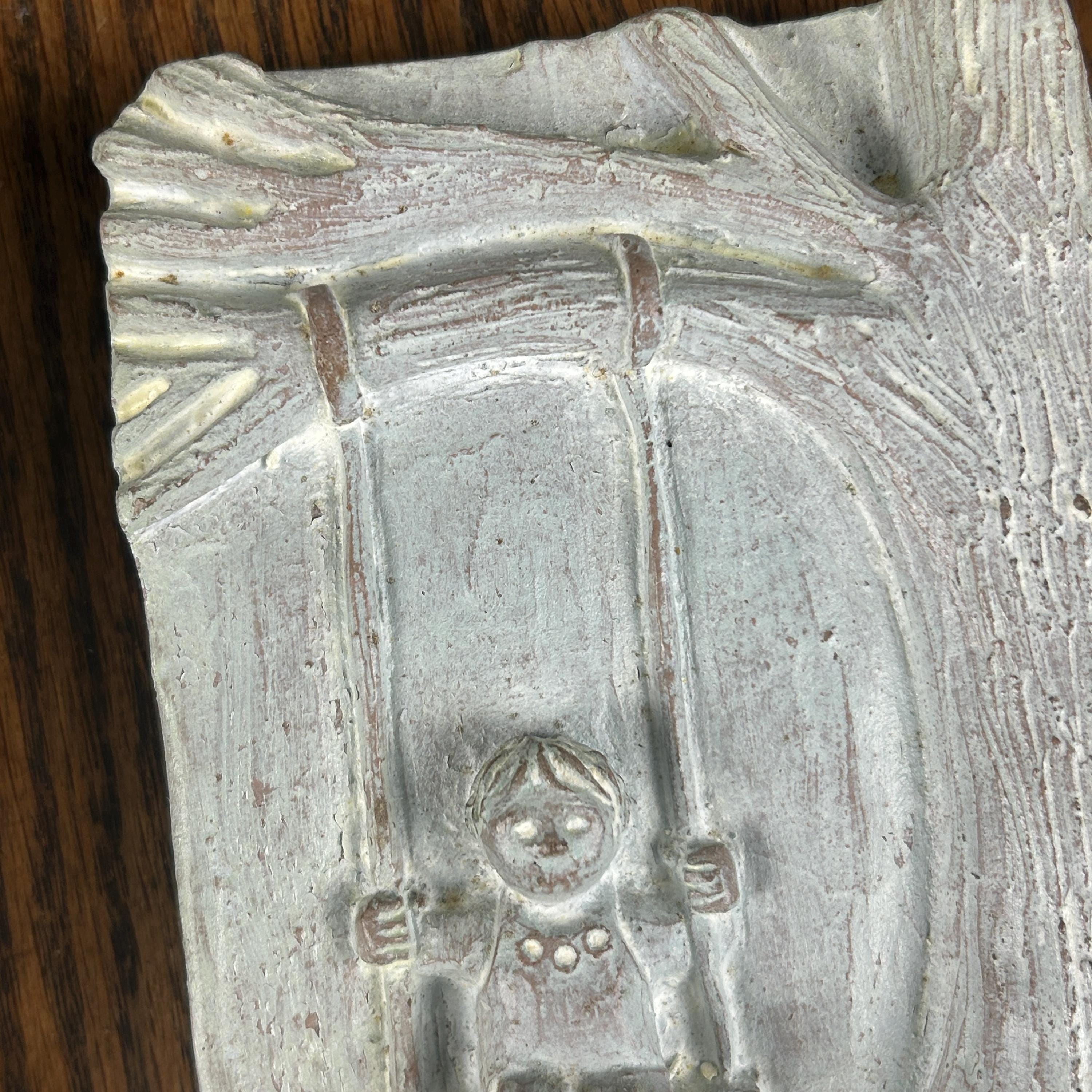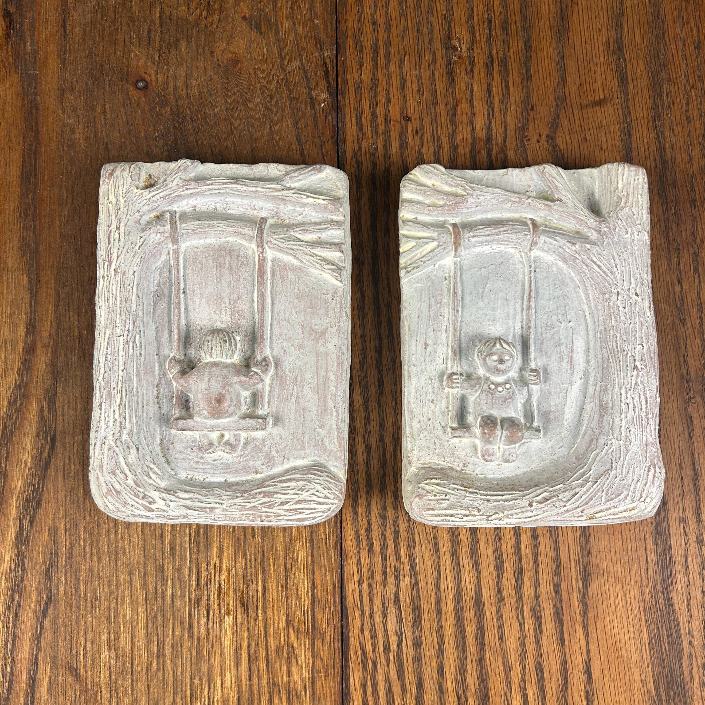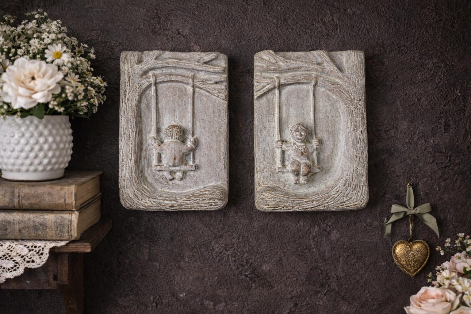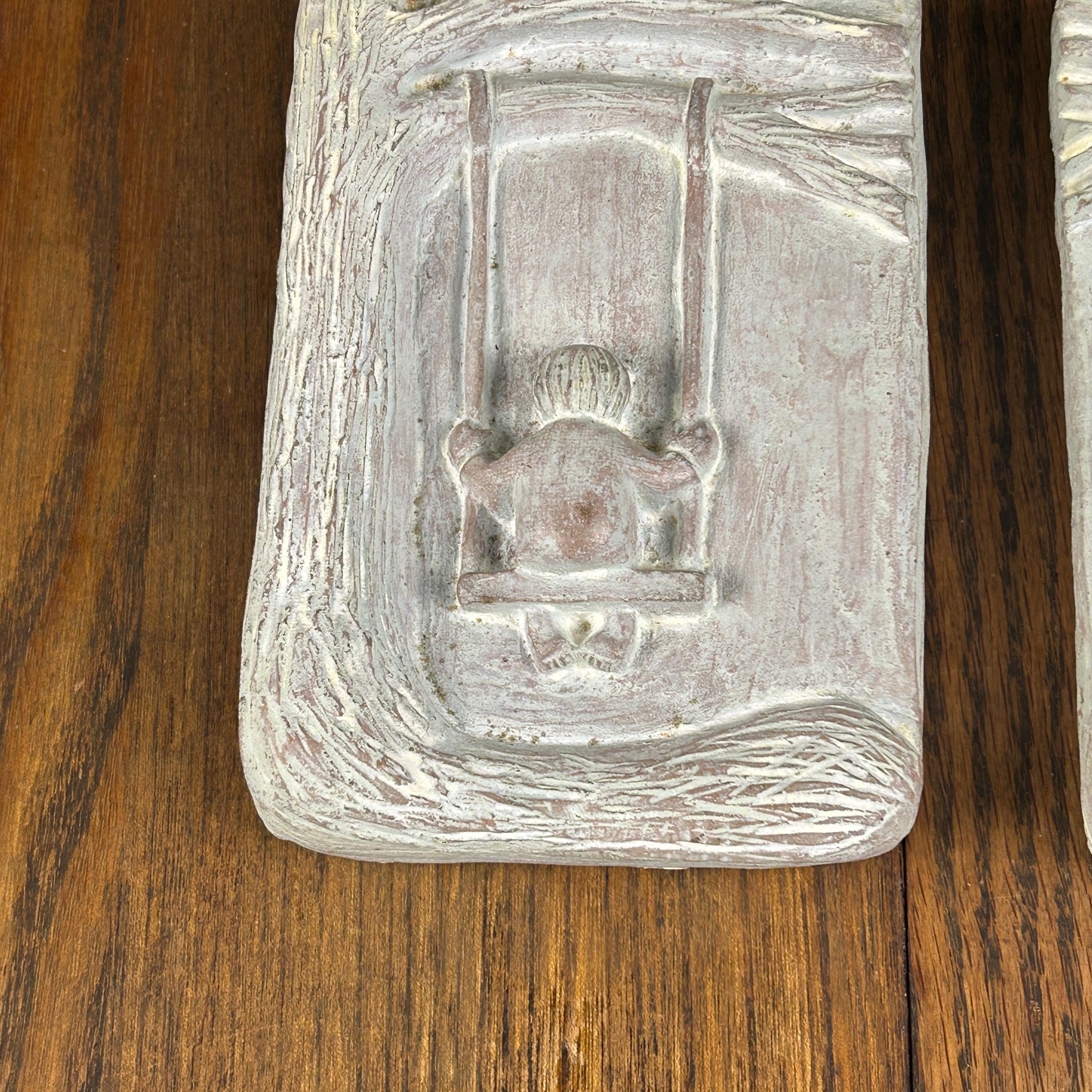These plaques are perfect for a gallery wall, nursery, garden room, hallway, or cottage décor. They may show light age-appropriate wear consistent with vintage concrete pieces, which only adds to their charm and authenticity.