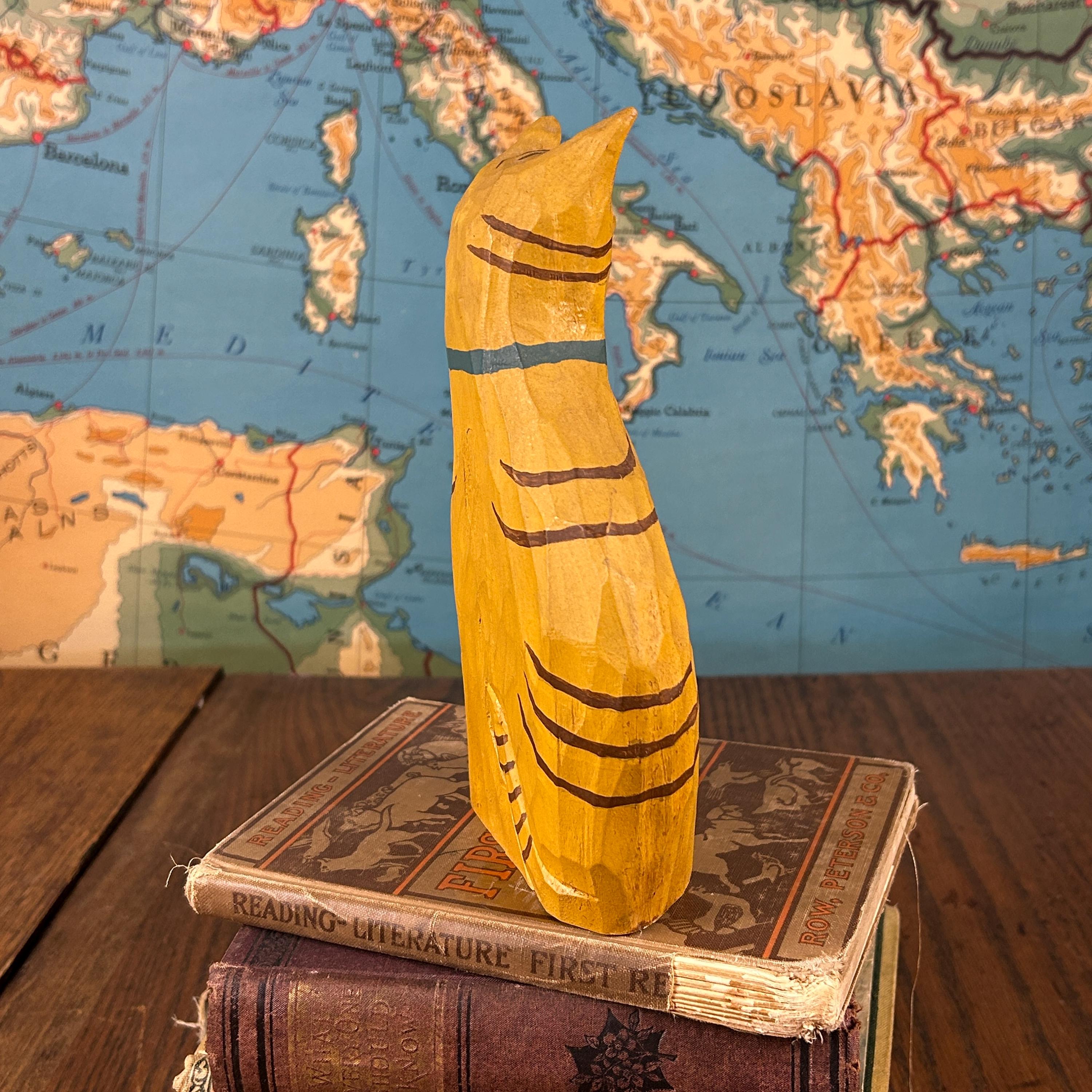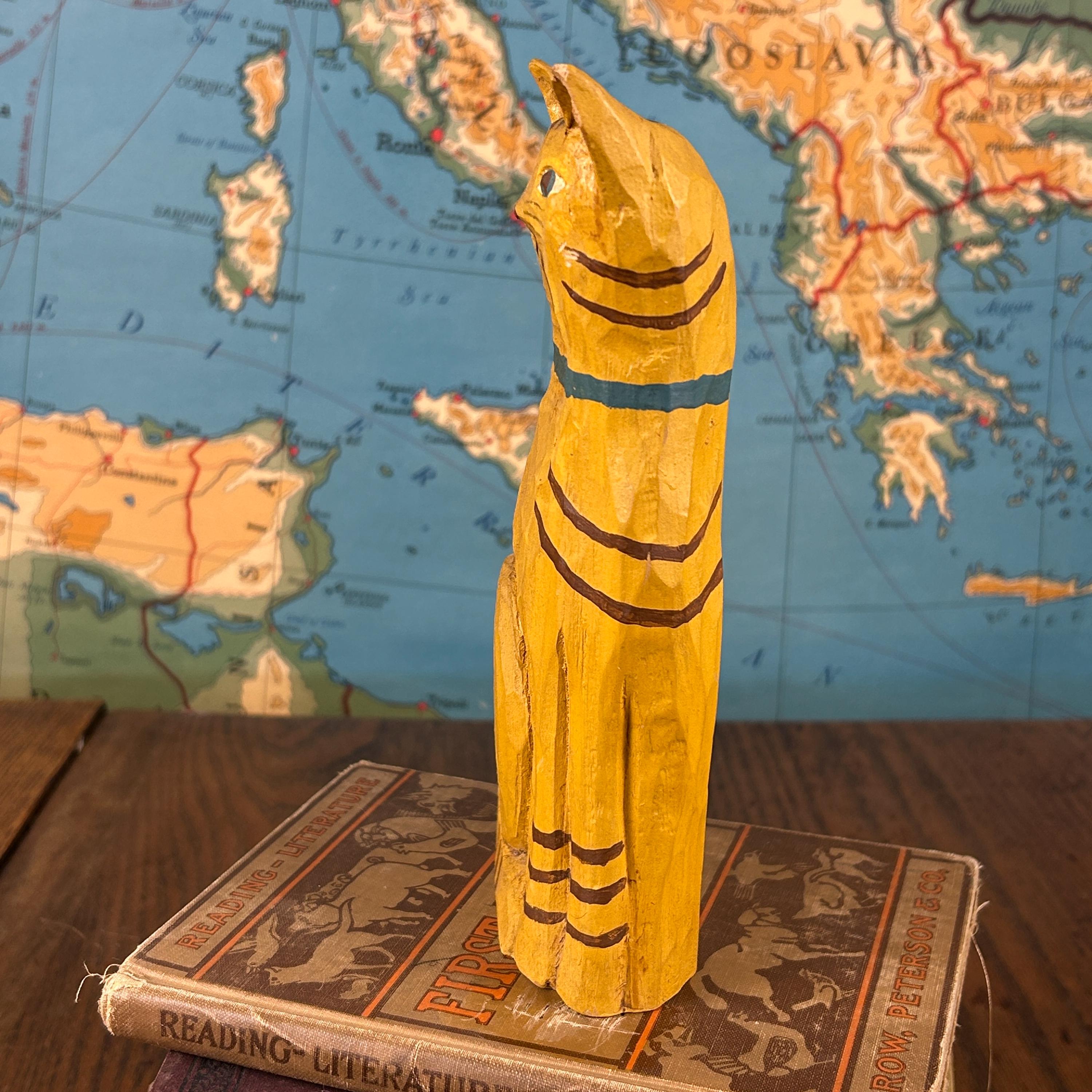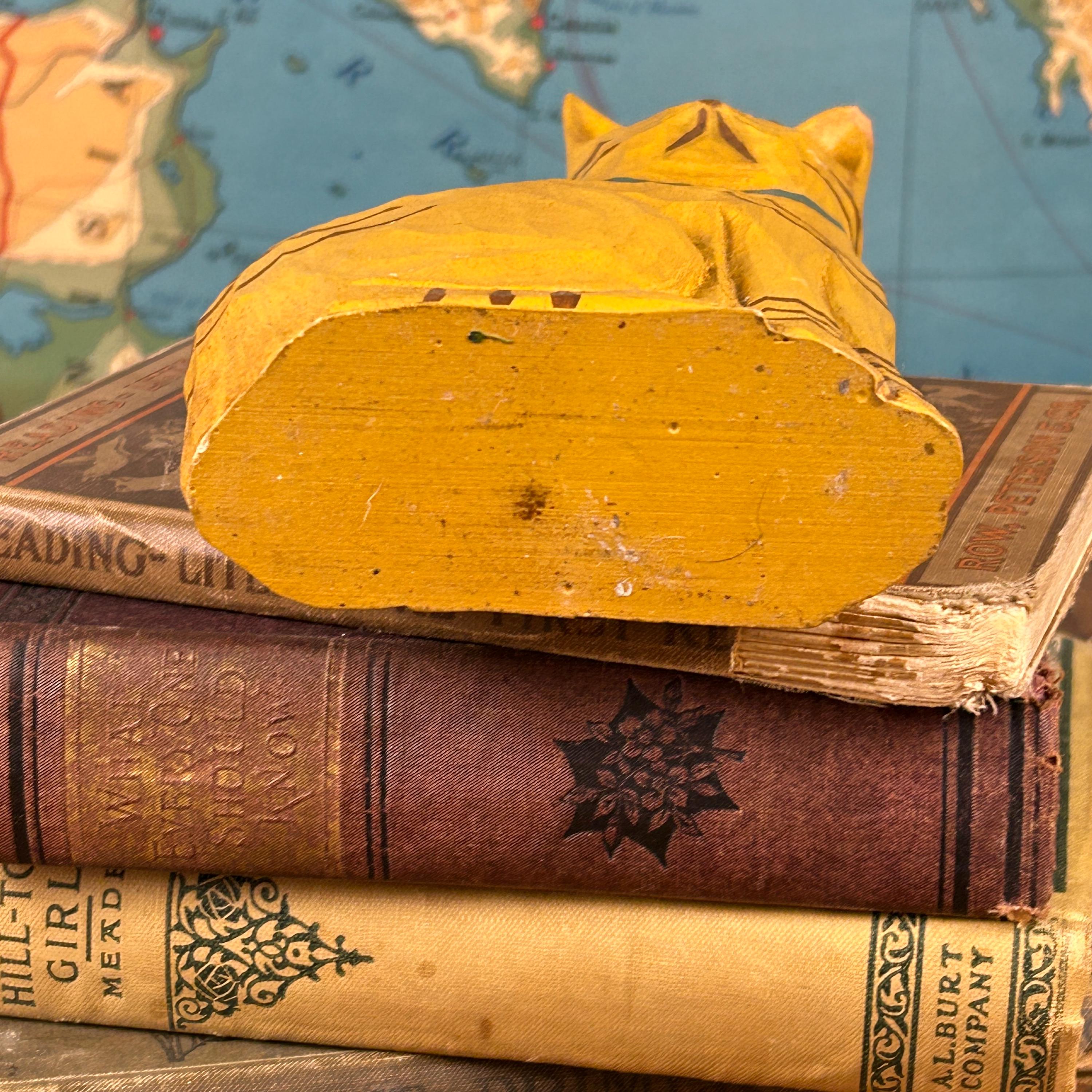 The paint shows signs of wear consistent with age and handling, enhancing the vintage look and feel of the piece. A wonderful addition to a cat lover’s collection, folk art display, or eclectic boho décor.