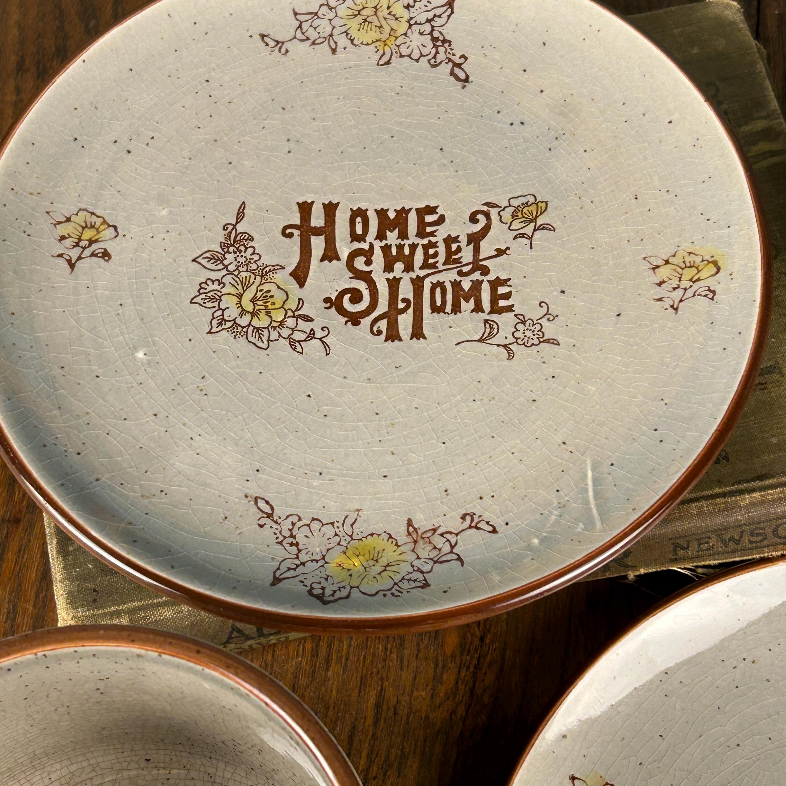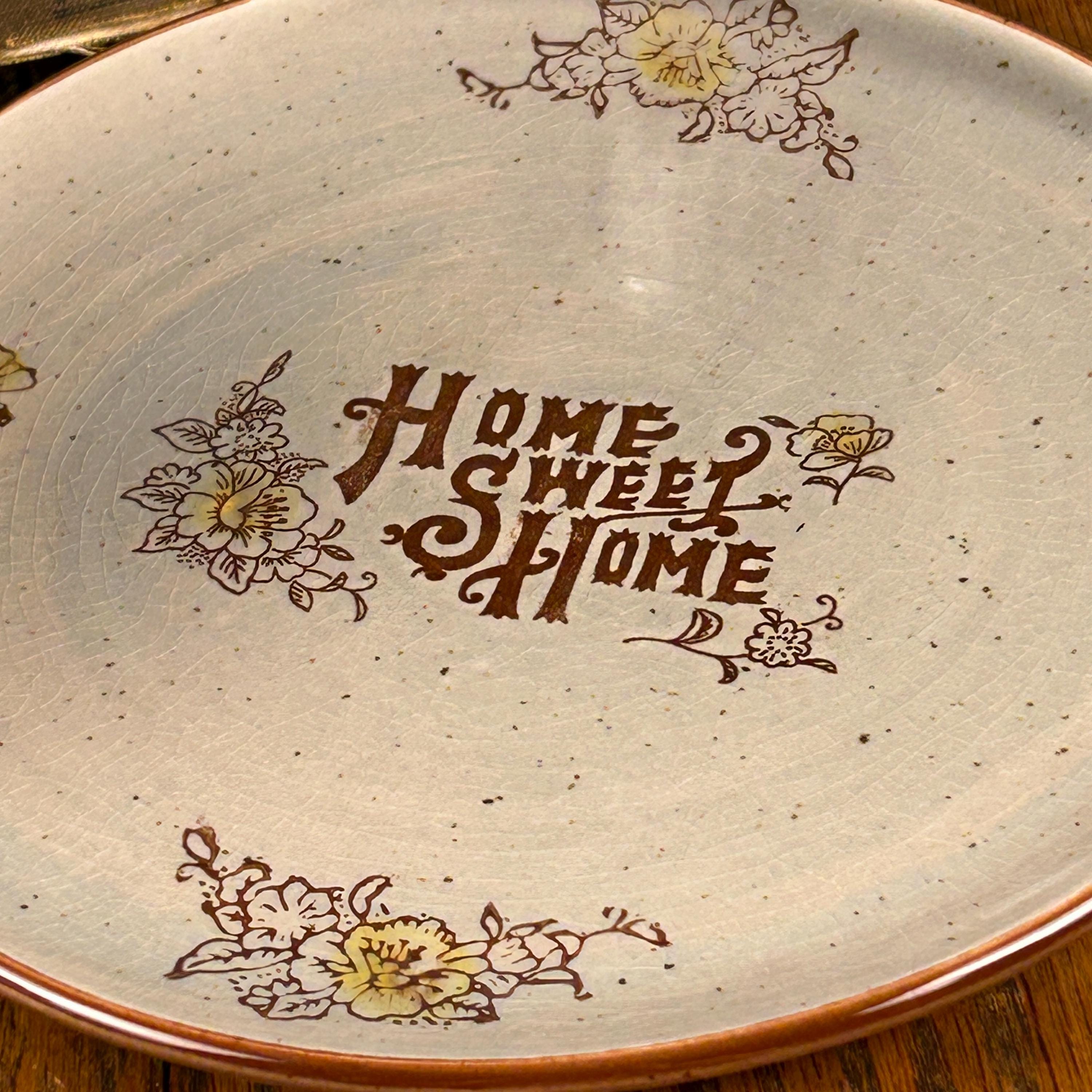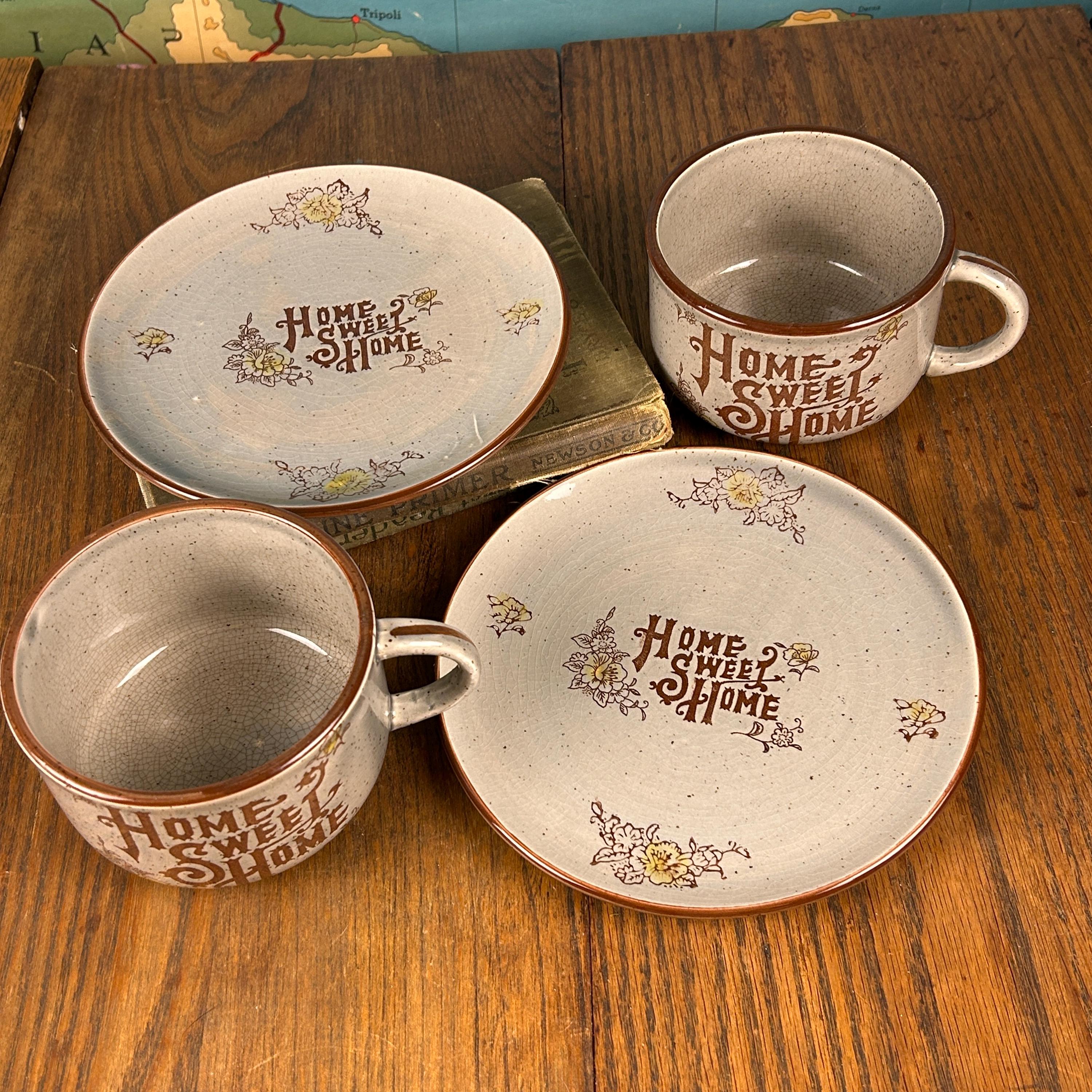 The mug and saucer can be used separately. A beautiful 'Home Sweet Home' plate decor would be beautiful on a wall. A sweet addition to cottagecore, farmhouse, rustic kitchen, and 1970s retro decor!