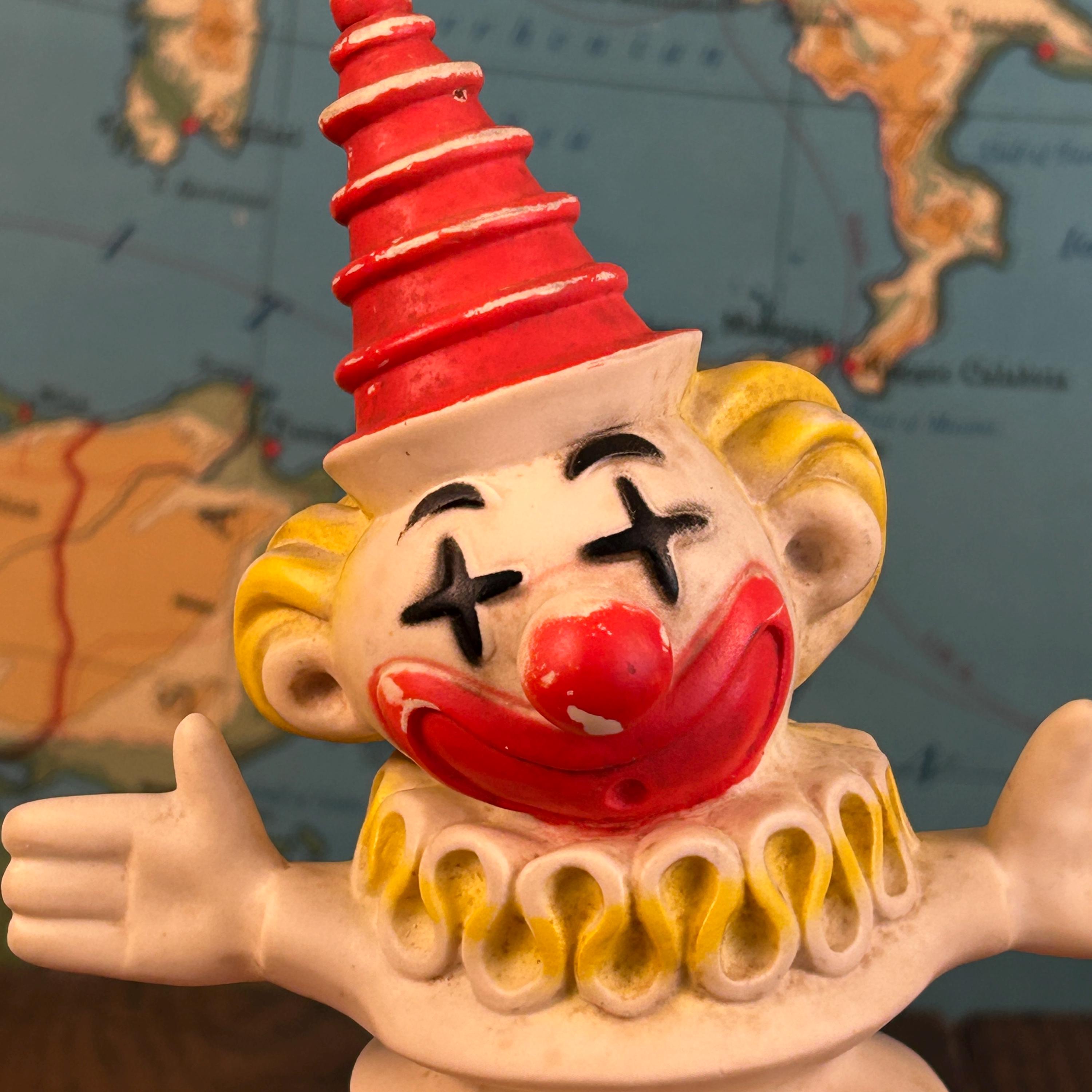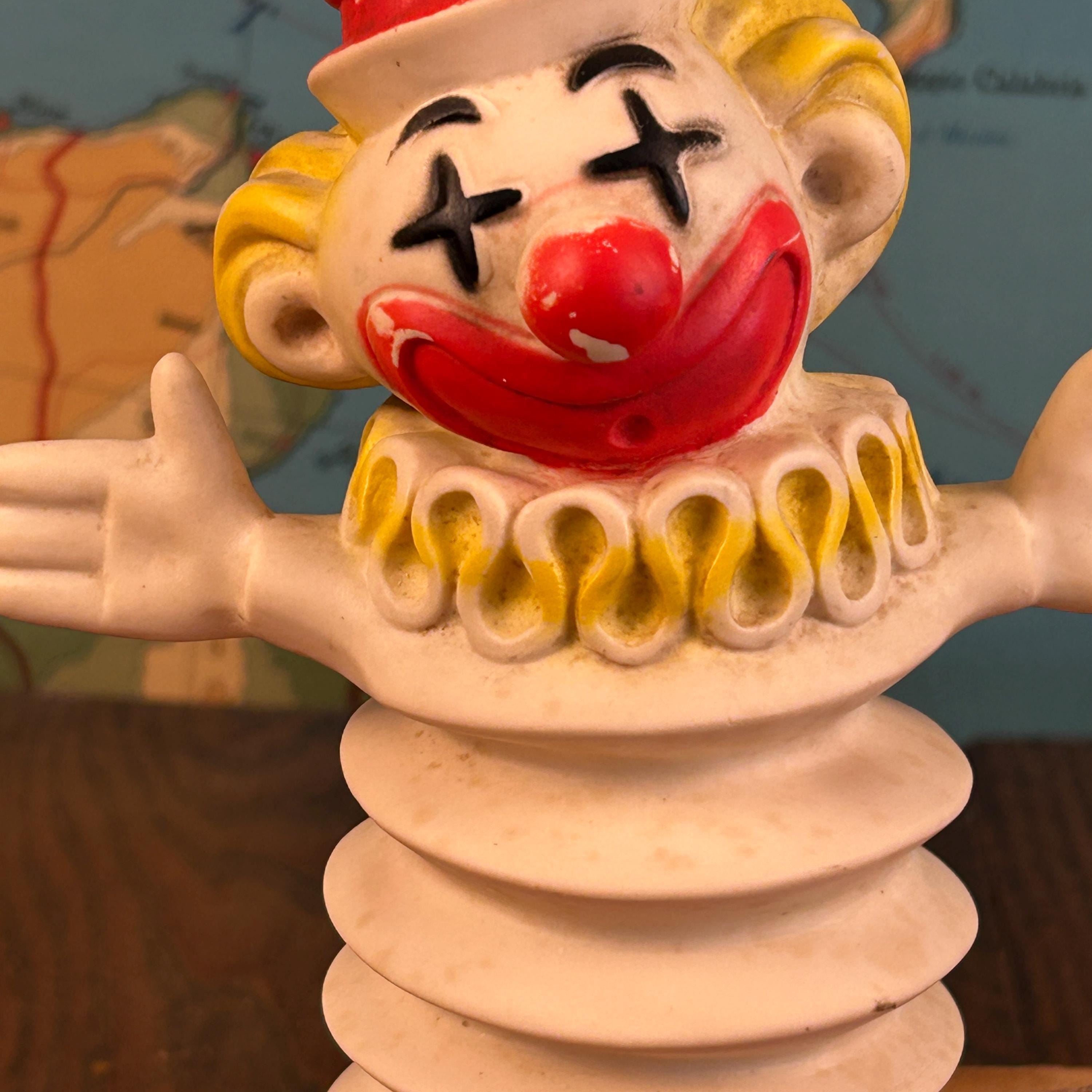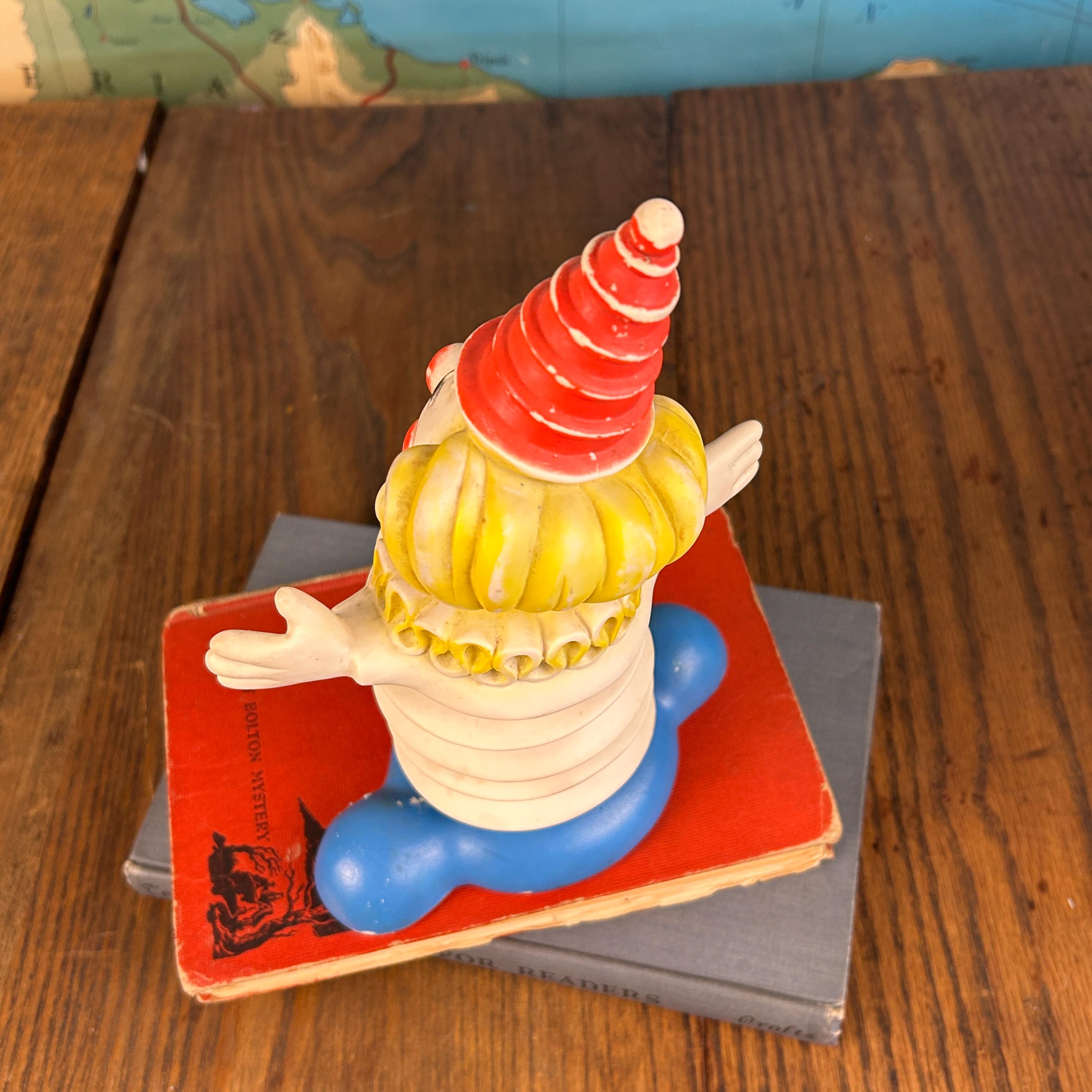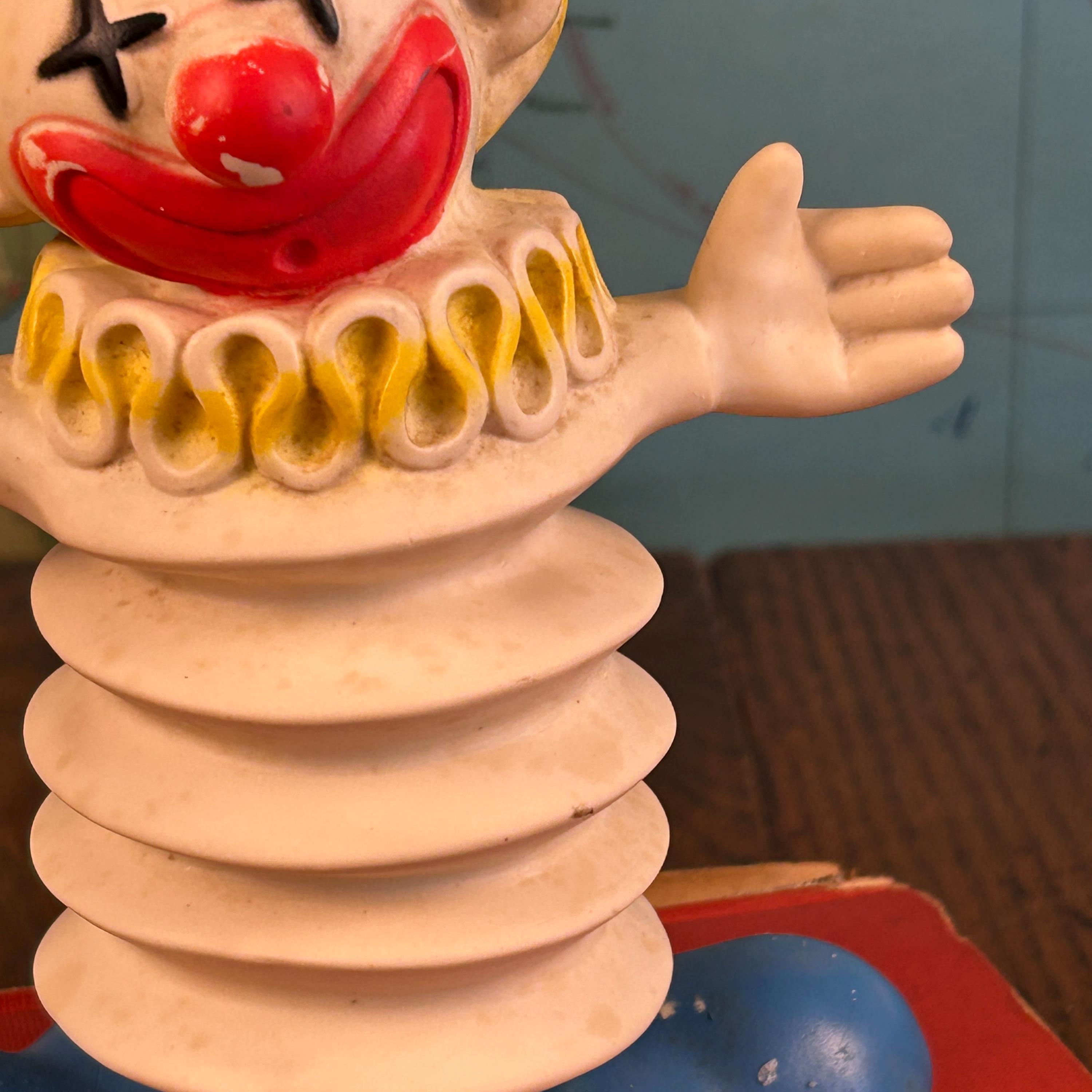 A wonderful piece for vintage toy collectors, clown memorabilia enthusiasts, or anyone who loves unique mid-century decor. Perfect for display in a retro nursery, curio shelf, or vintage collection.