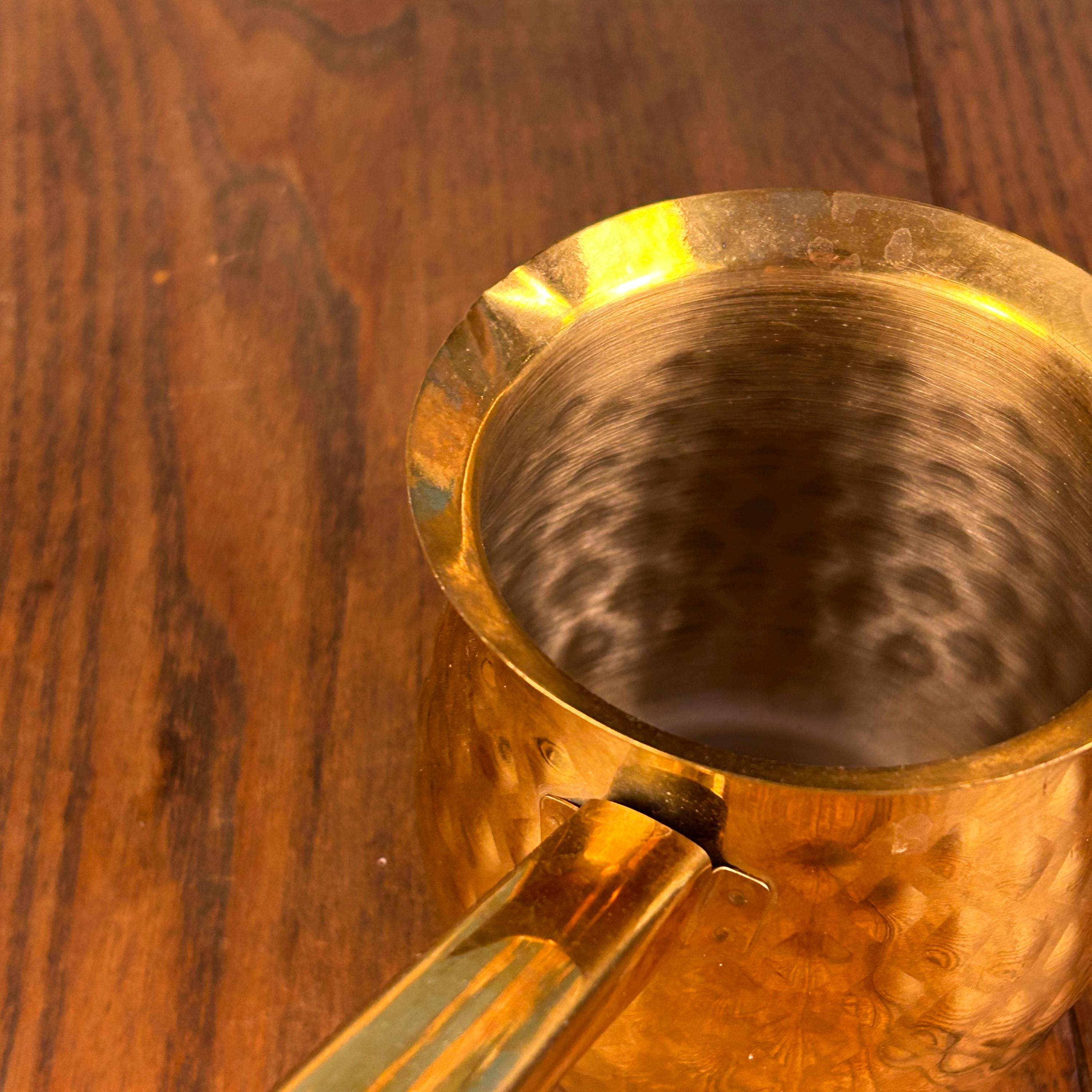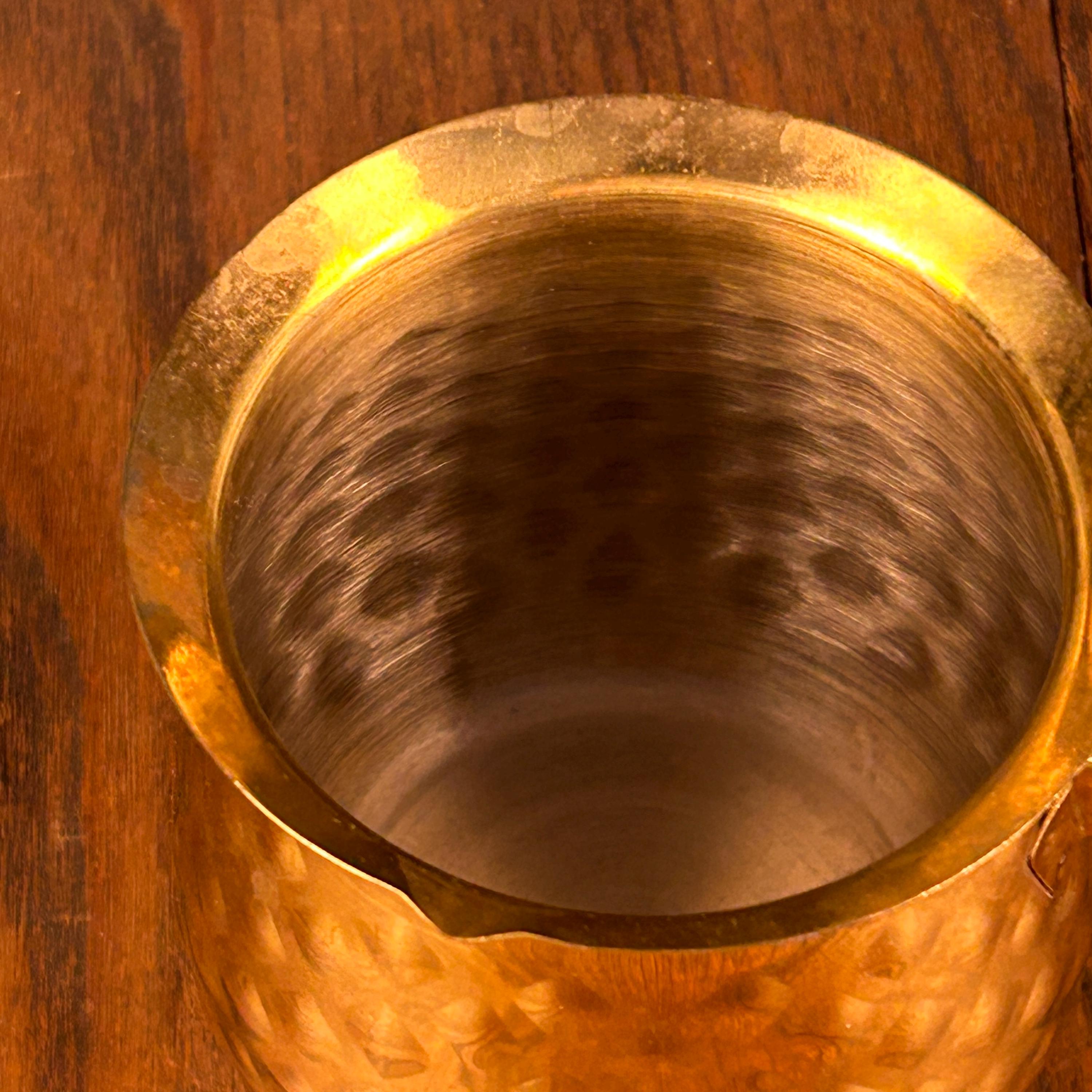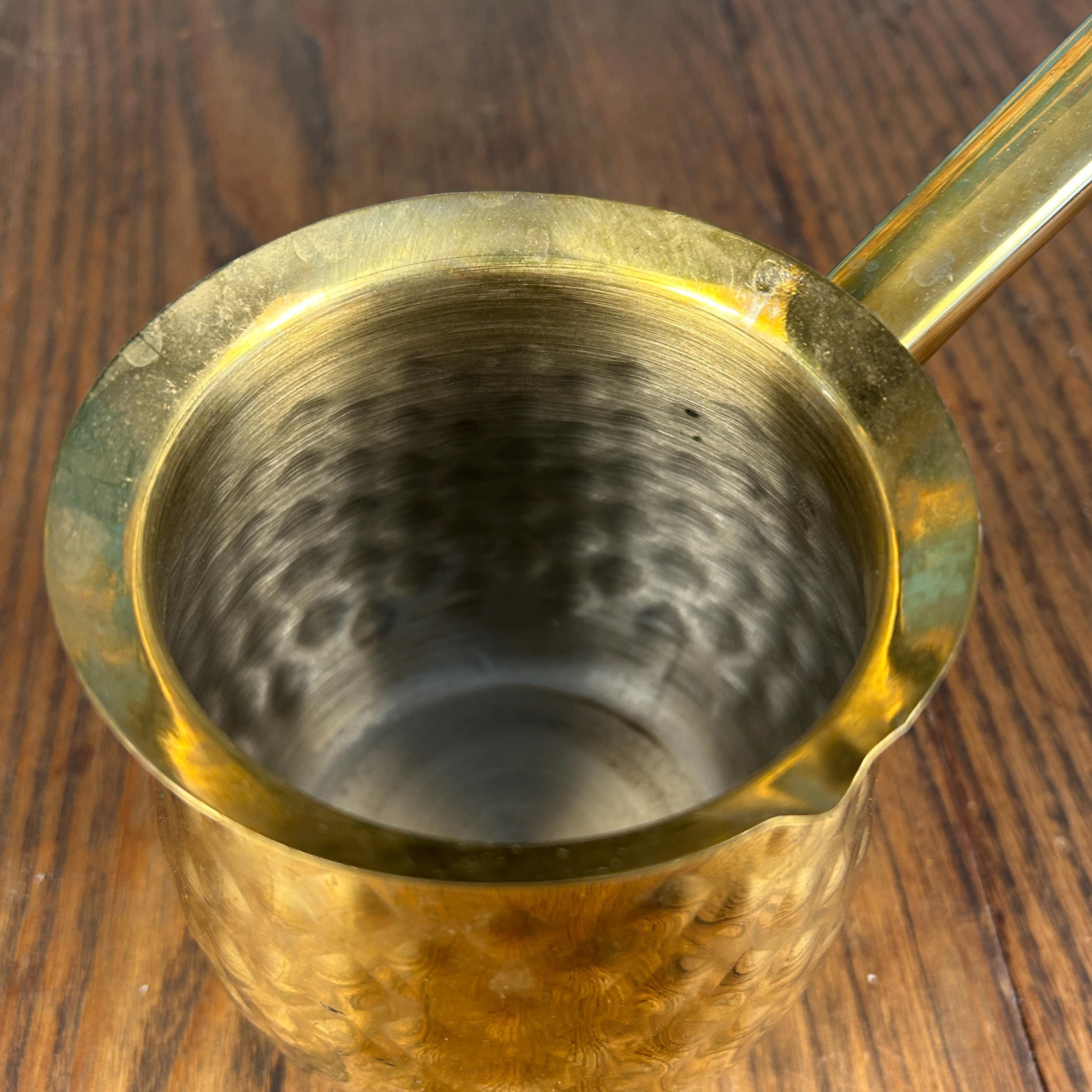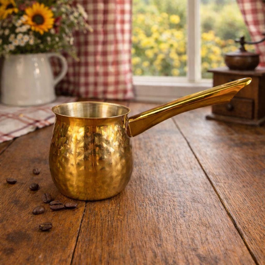 Brew coffee the traditional way with this beautiful brass Turkish coffee pot, also known as a cezve, ibrik, or briki. Handcrafted from solid brass, this piece features a classic hammered, textured finish that gives it timeless character and old-world charm.