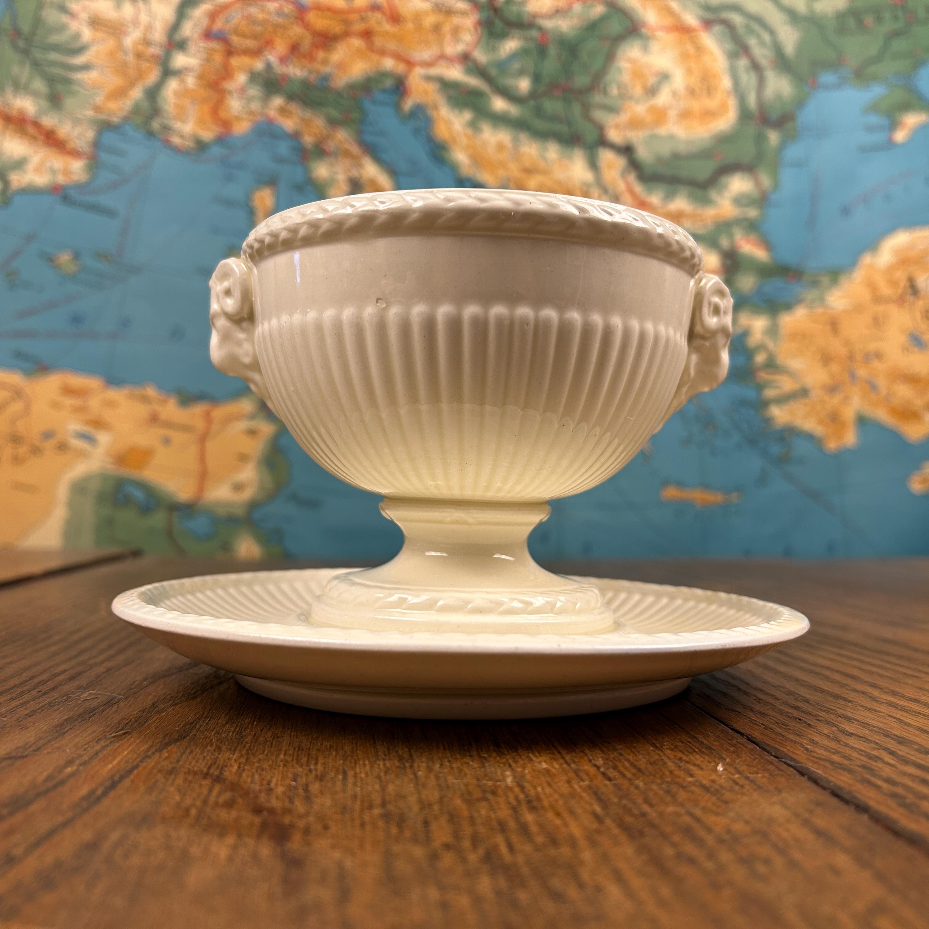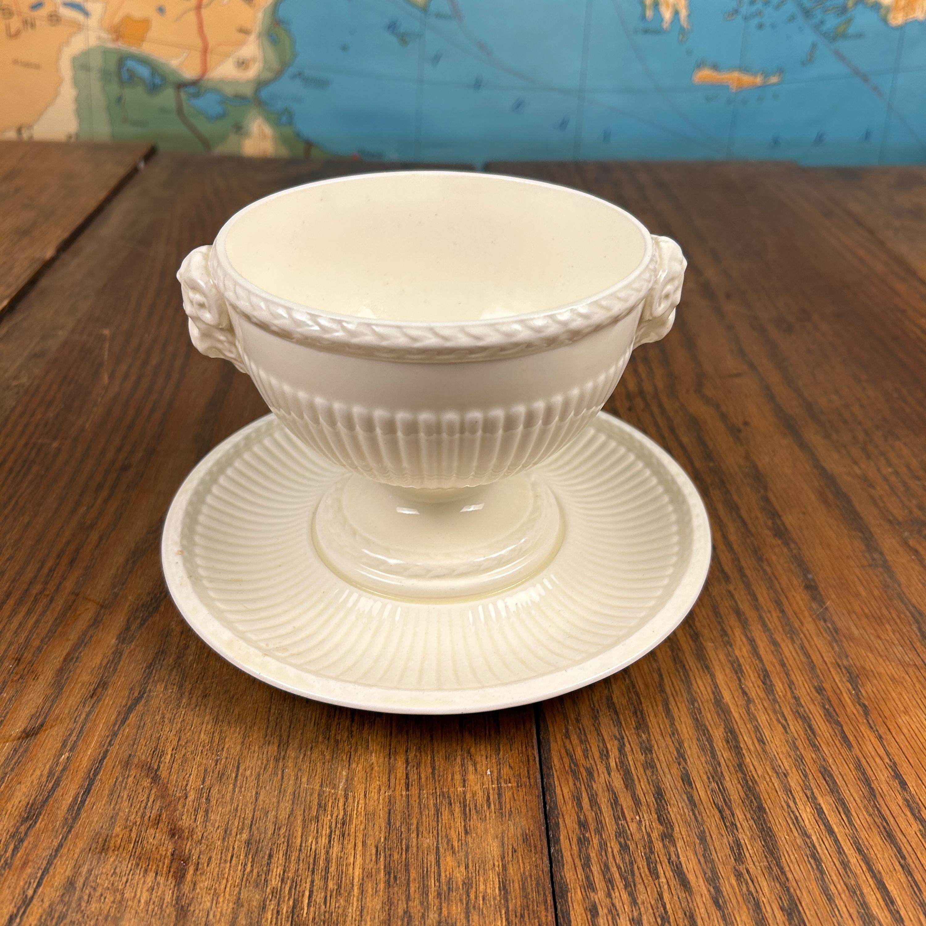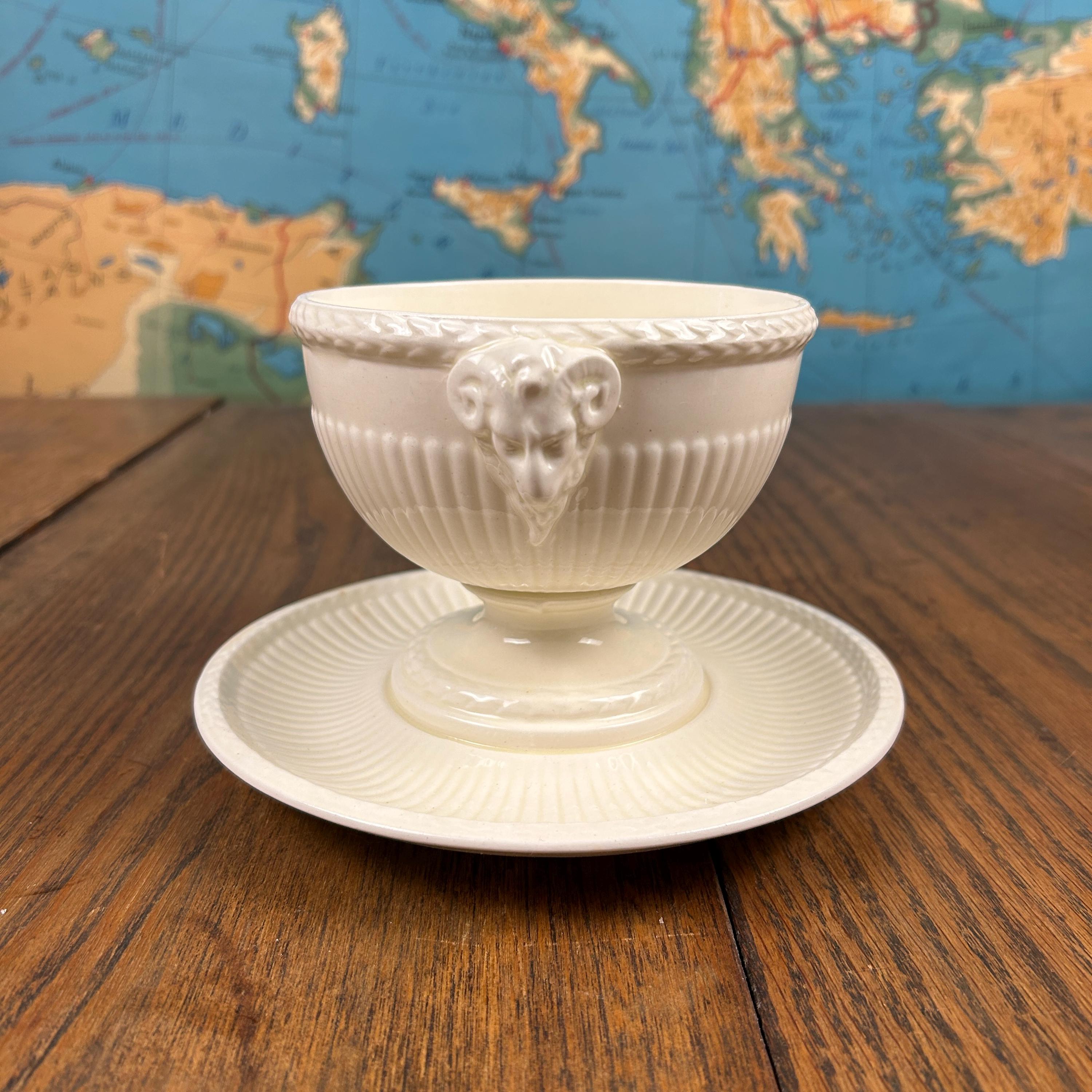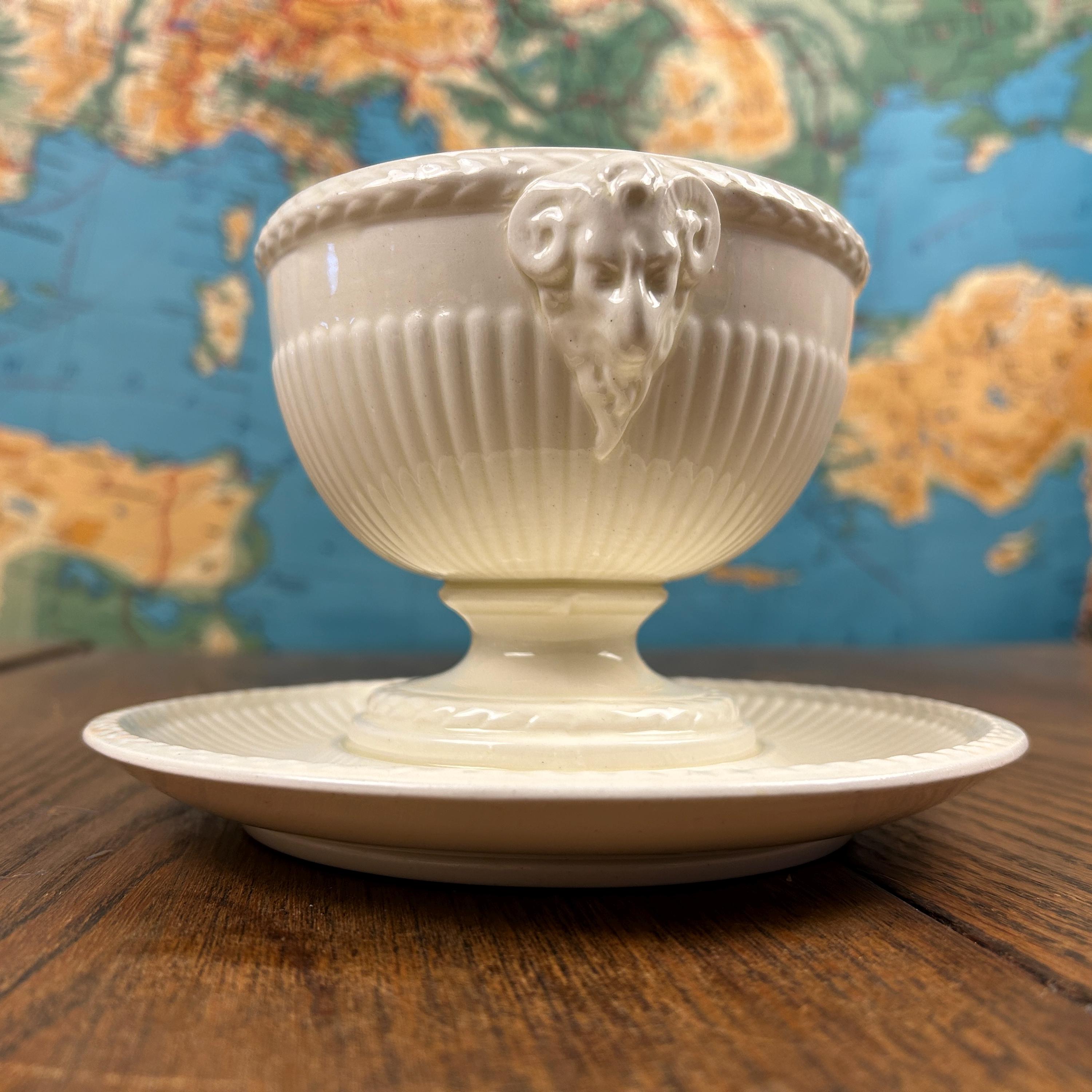 The bowl features graceful ram’s head handles, fluted detailing, and a pedestal base, lending it a sculptural presence that works beautifully both at the table and on display. Designed by John Goodwin, Wedgwood’s former art director, the Edme pattern is known for its neoclassical influence and enduring appeal.