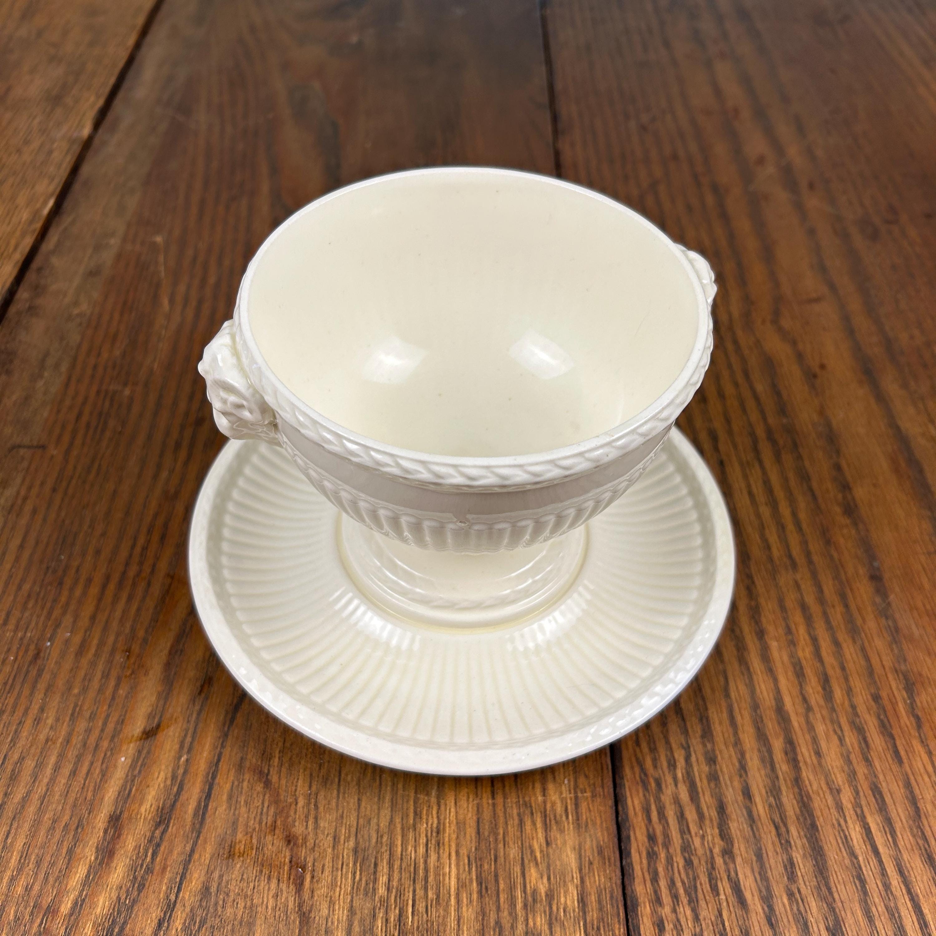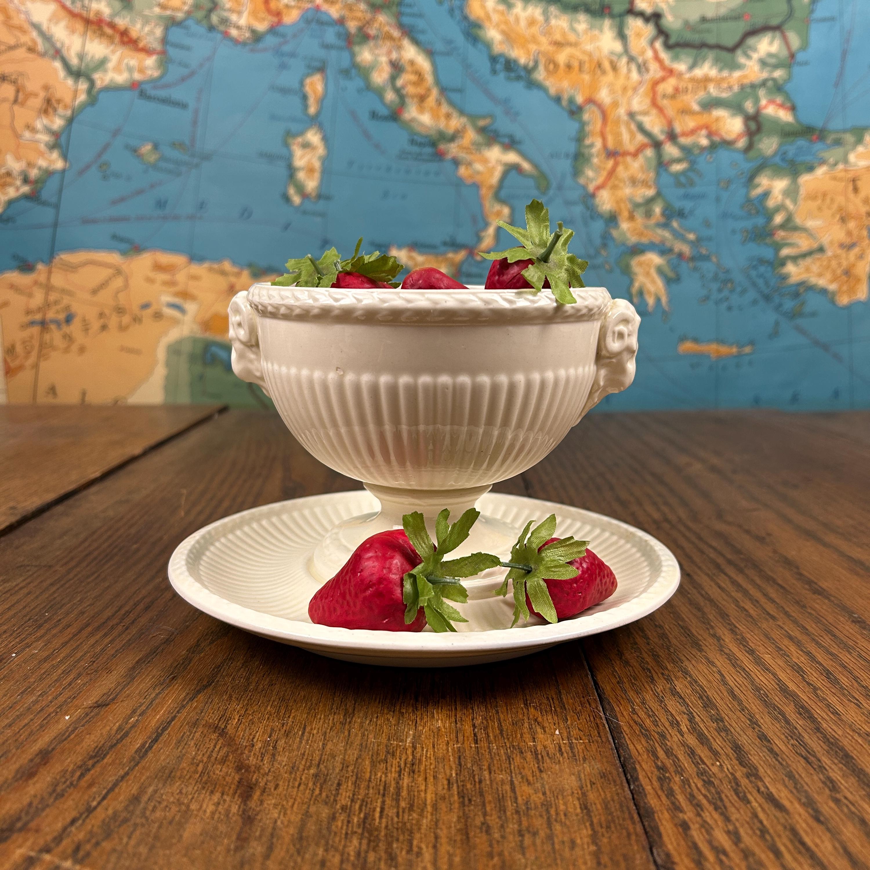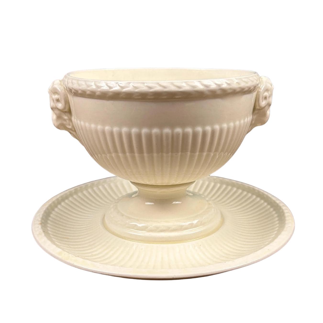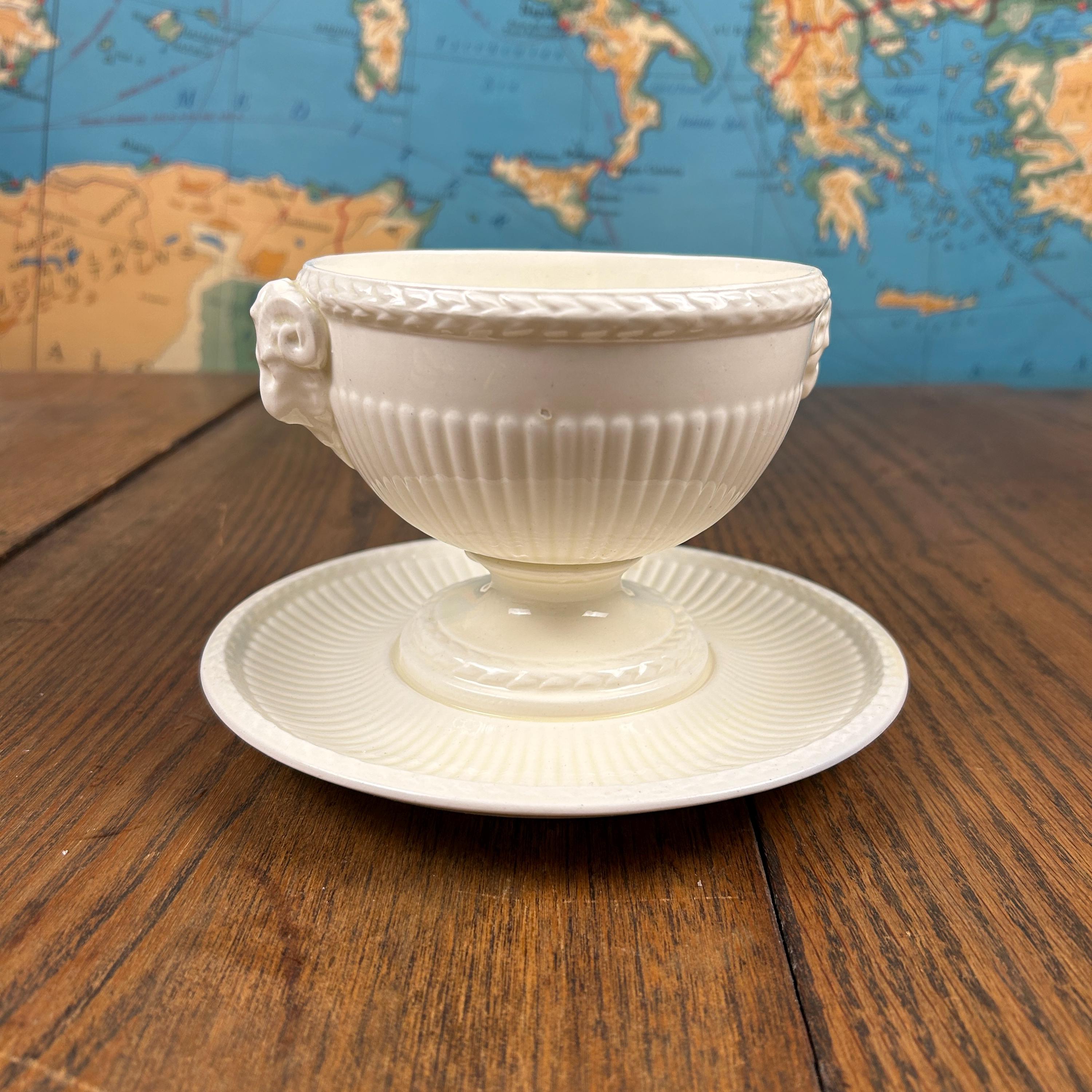 The bowl features graceful ram’s head handles, fluted detailing, and a pedestal base, lending it a sculptural presence that works beautifully both at the table and on display. Designed by John Goodwin, Wedgwood’s former art director, the Edme pattern is known for its neoclassical influence and enduring appeal.