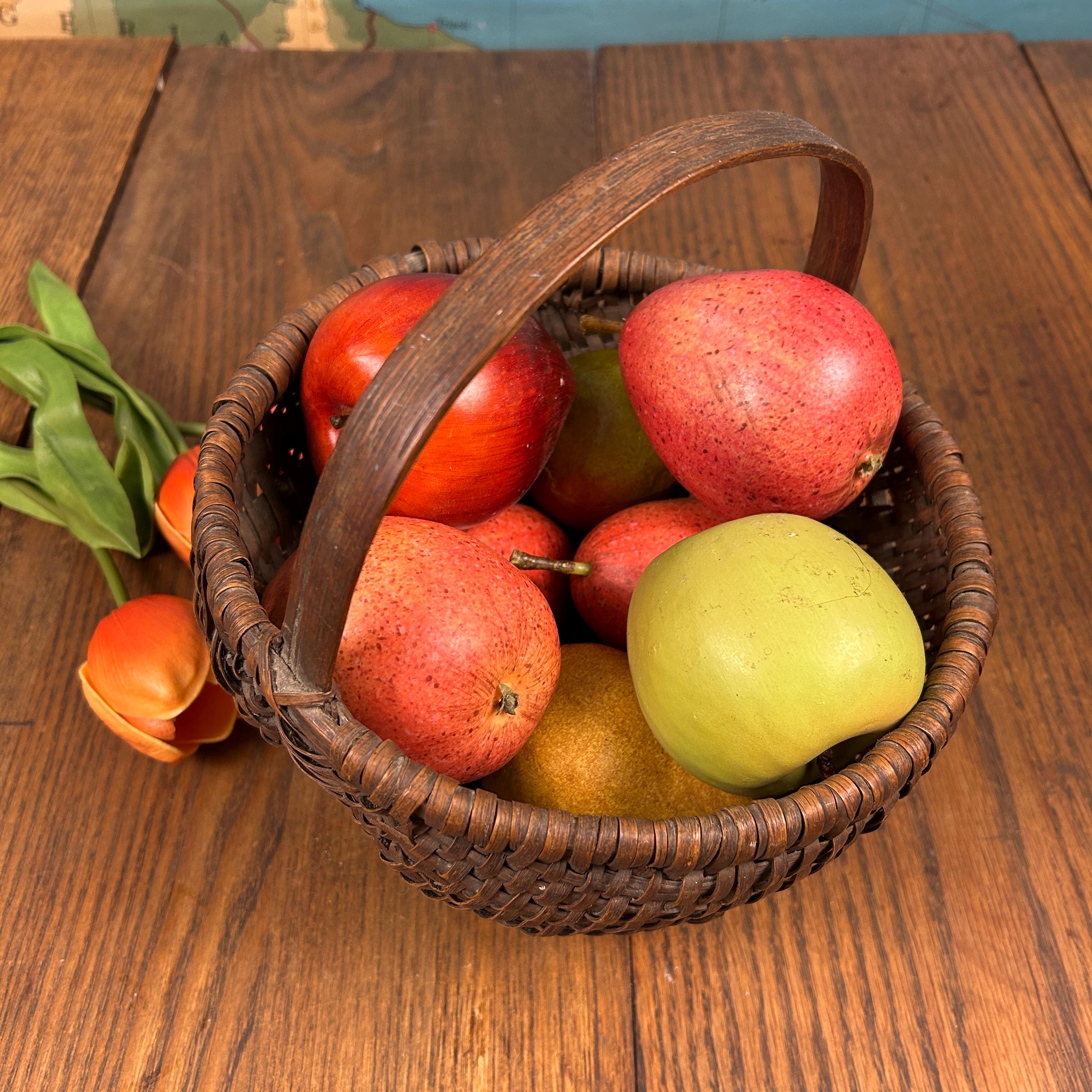 Today, this piece is best enjoyed as a decorative accent. It makes a wonderful primitive display basket, fruit bowl, or storage piece in a farmhouse, cottage, or early Americana-inspired home. A lovely addition to any antique or folk art basket collection.