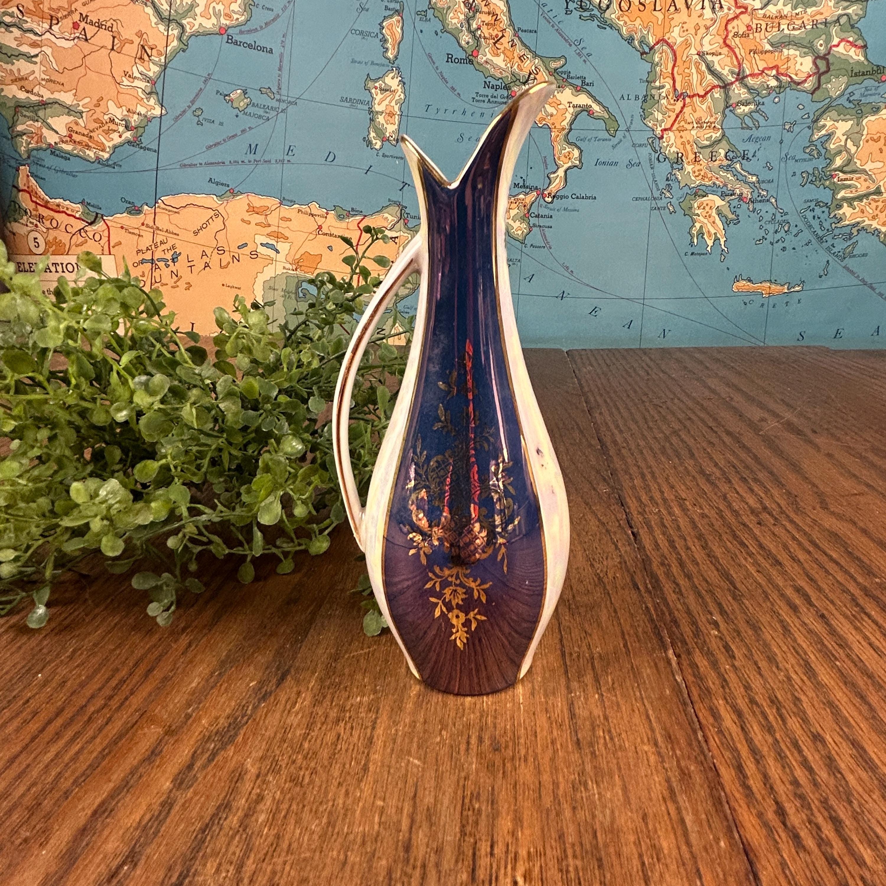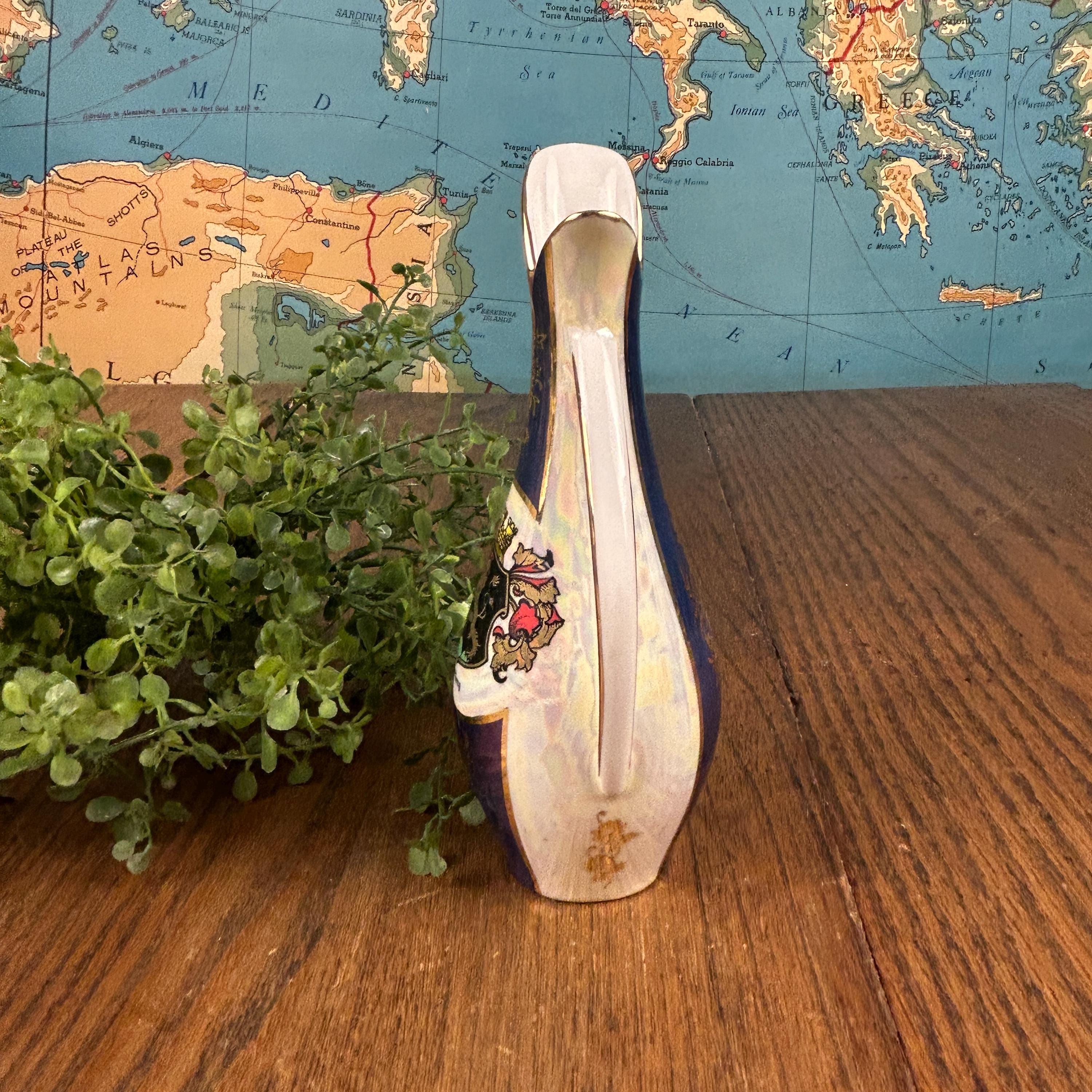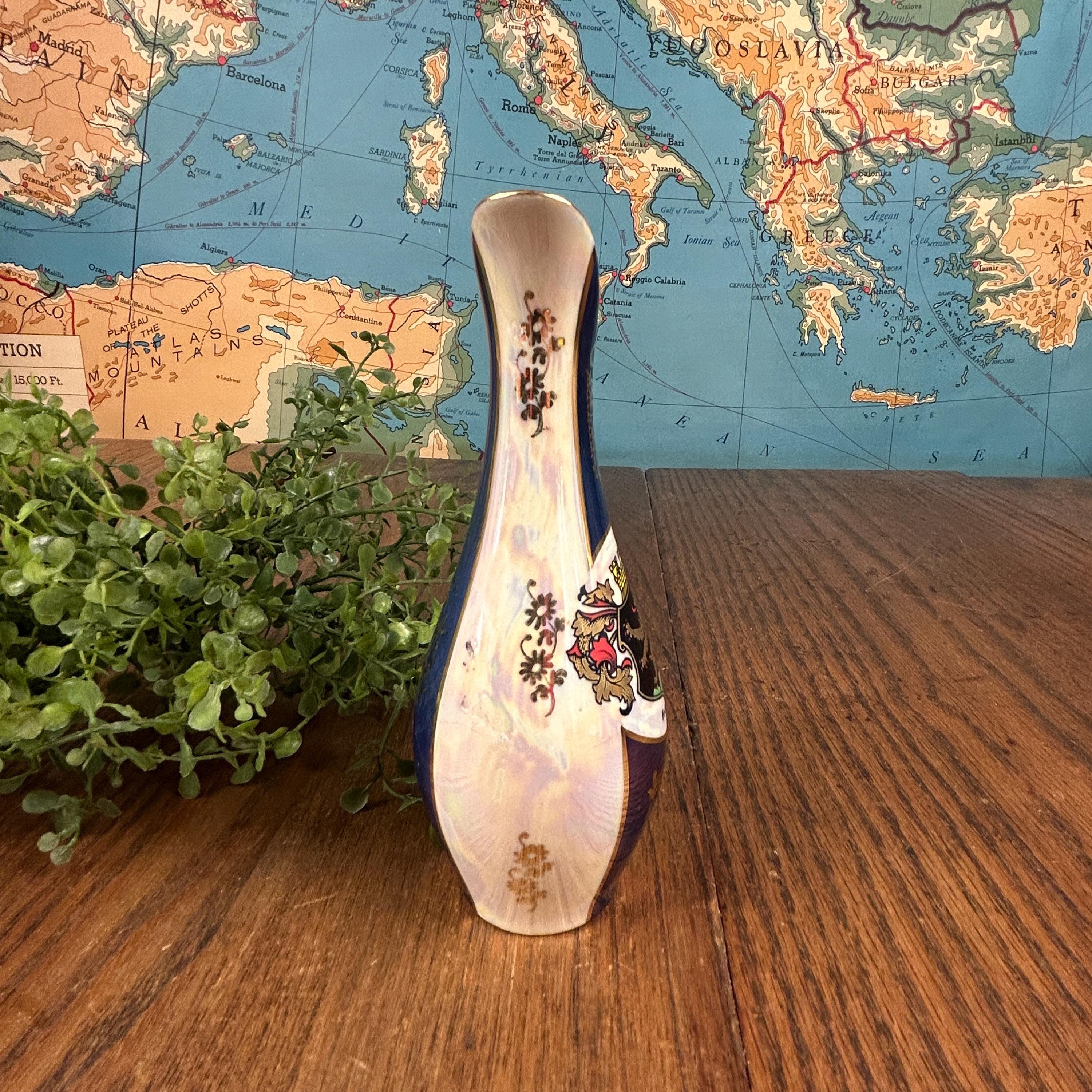 Originally created as a German souvenir or decorative accent, this piece is ideal for display on a shelf, mantel, or curio cabinet. It also works wonderfully as a bud vase, adding old-world European charm to any space.