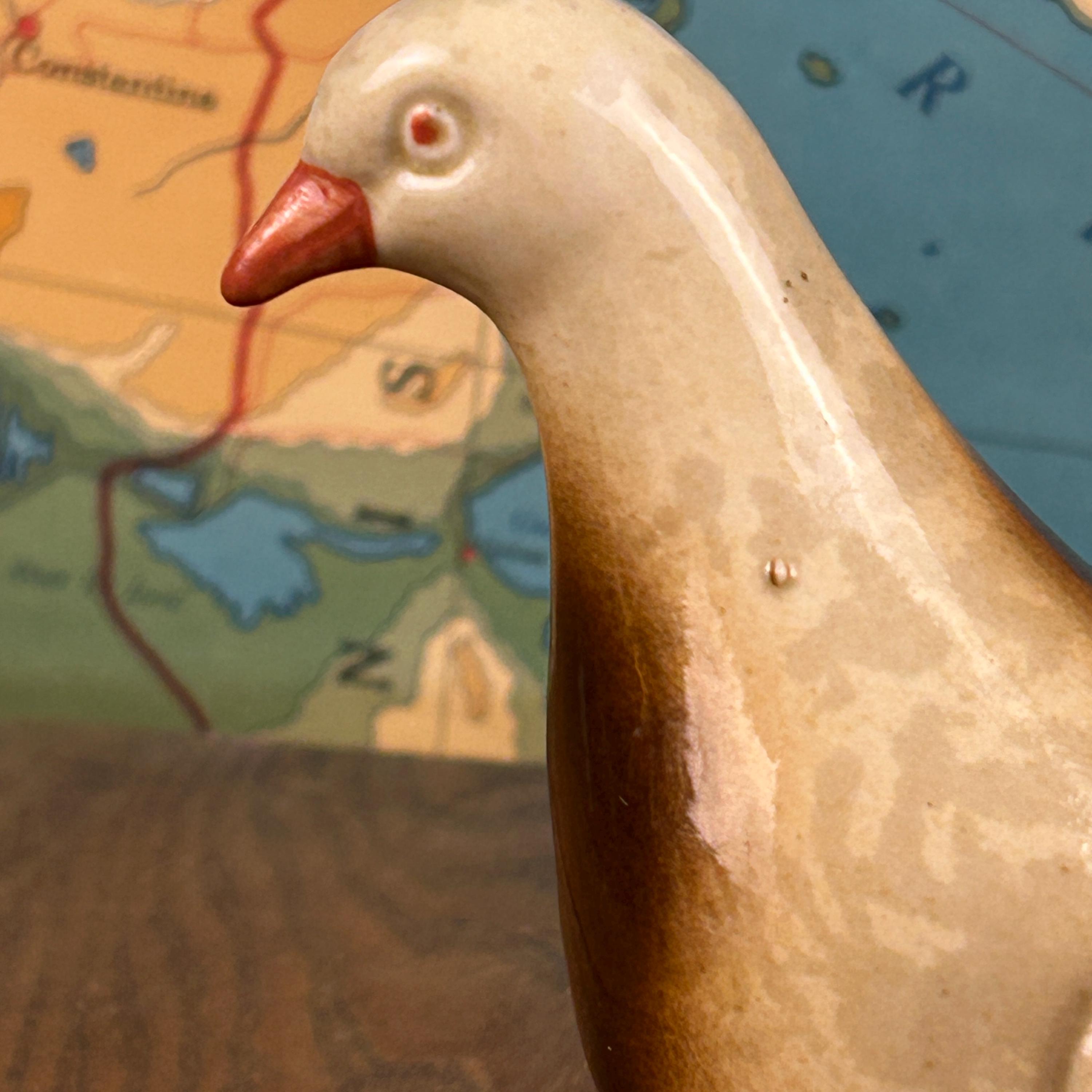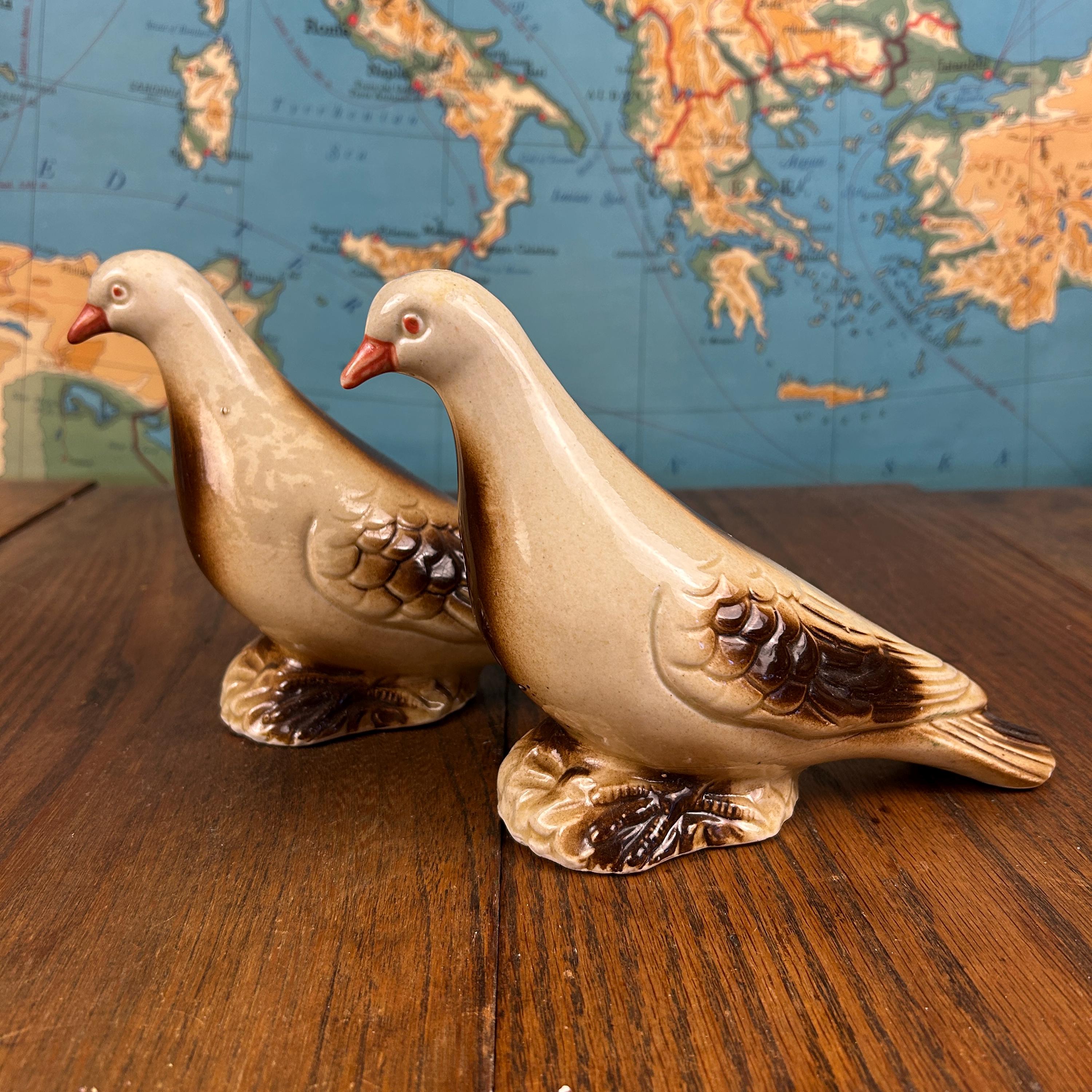 This lovely set of two vintage lusterware dove figurines adds soft shimmer and timeless charm to any space. With their graceful shape and warm iridescent finish, these birds are a beautiful example of mid-century decorative ceramics.