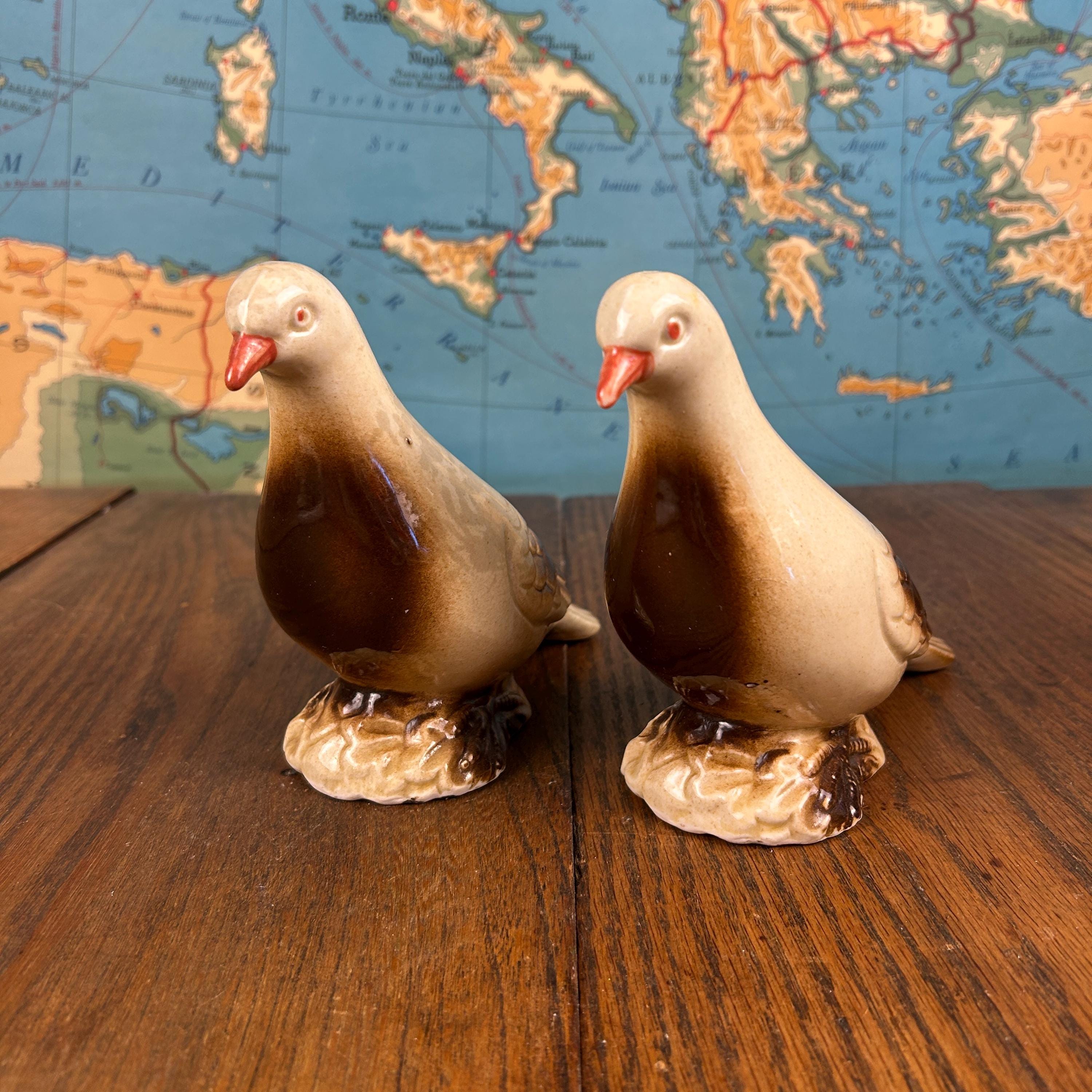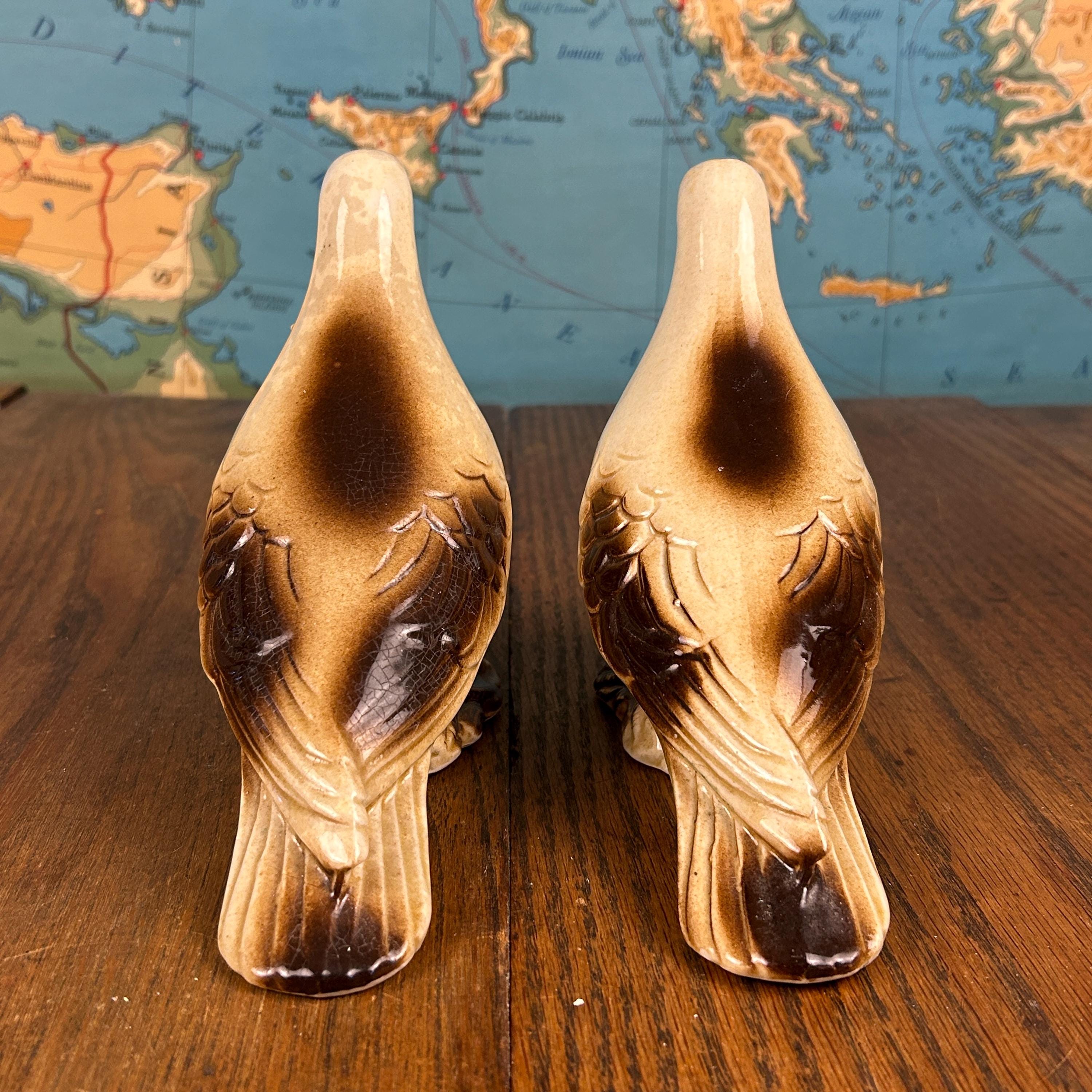 These would look wonderful on a mantel, bookshelf, vanity, or as part of a vintage bird collection.