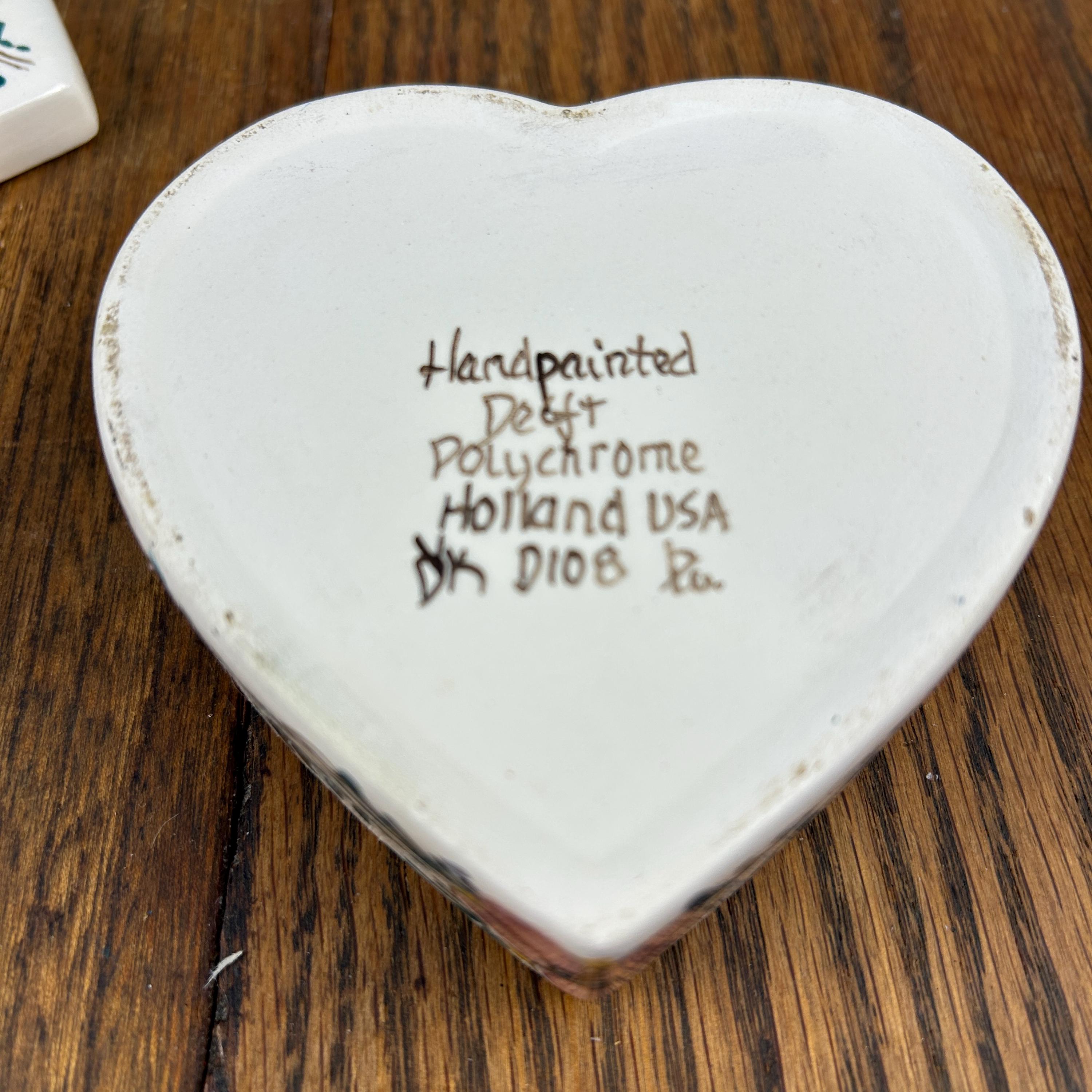 The back is marked Holland USA and is artist signed, adding to its collectible appeal. Its petite size makes it perfect as a ring dish, vanity catchall, or small display accent on a shelf or bedside table.